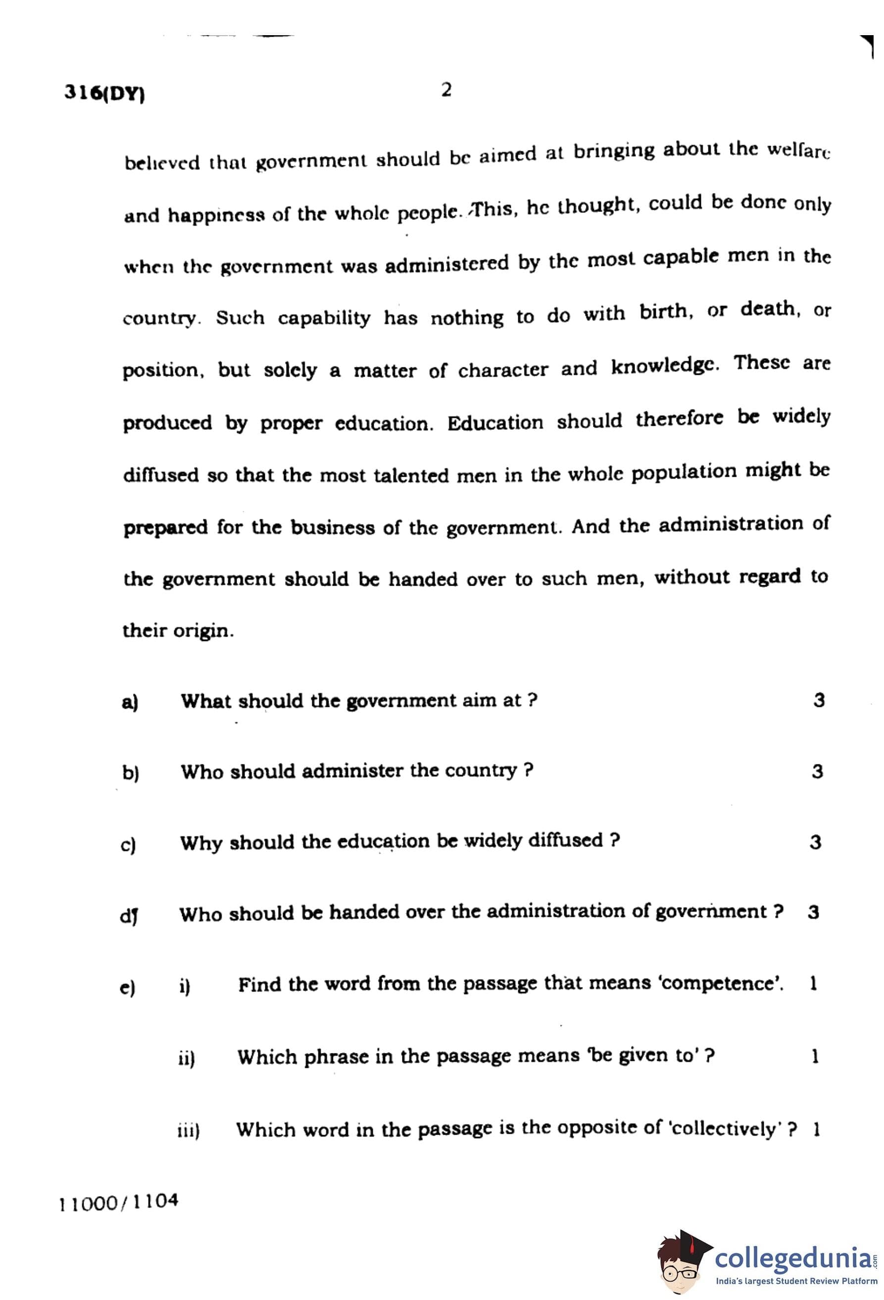 (e) iii) Which word in the passage is the opposite of ‘collectively’?