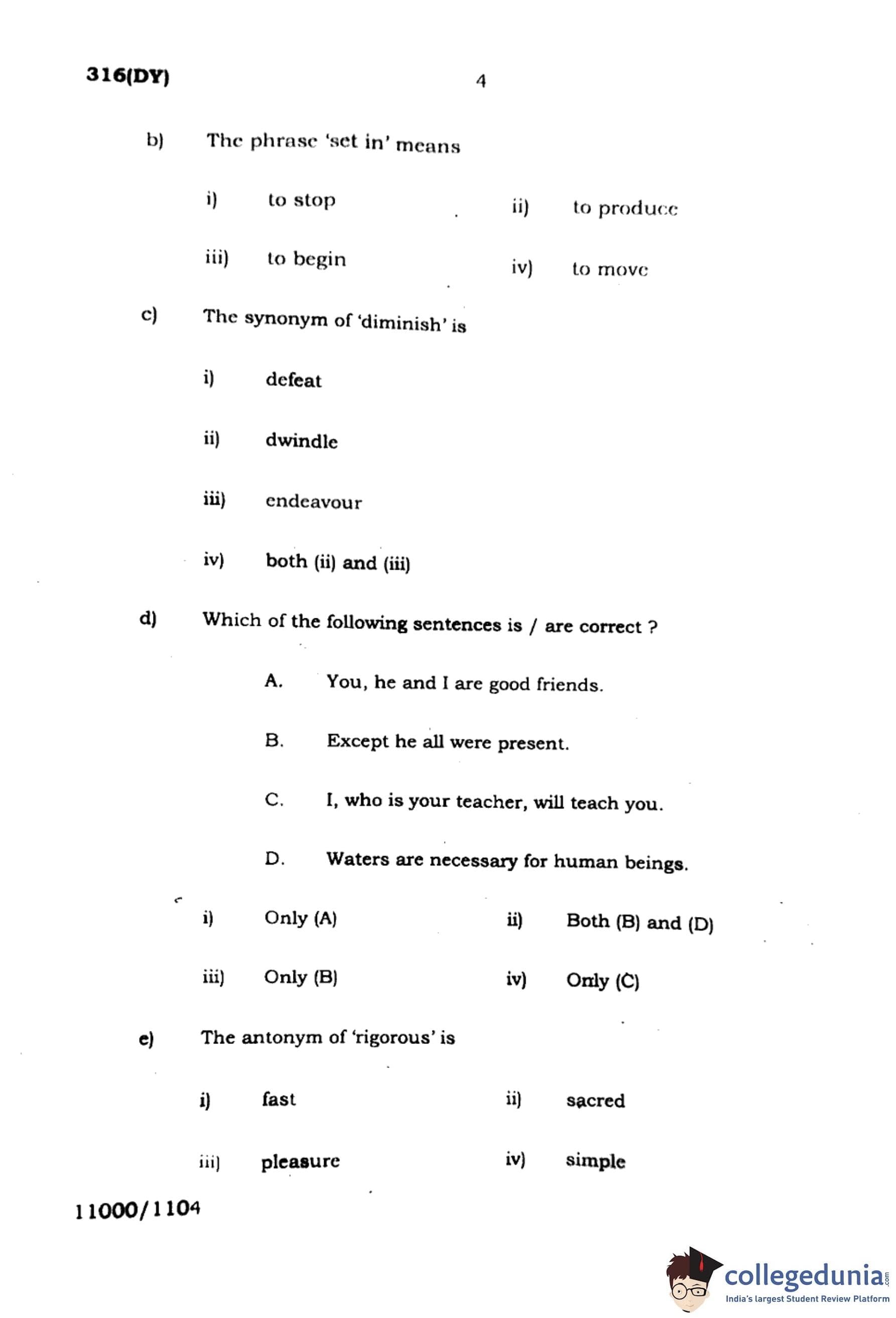 (d) Which of the following sentences is/are correct?