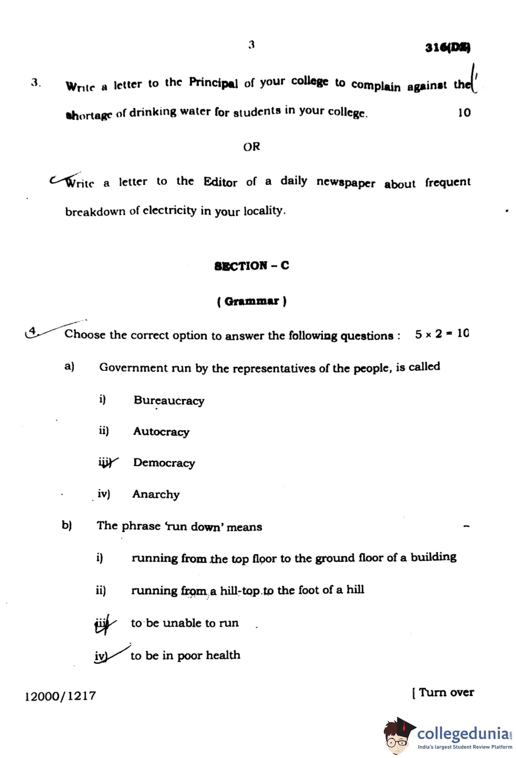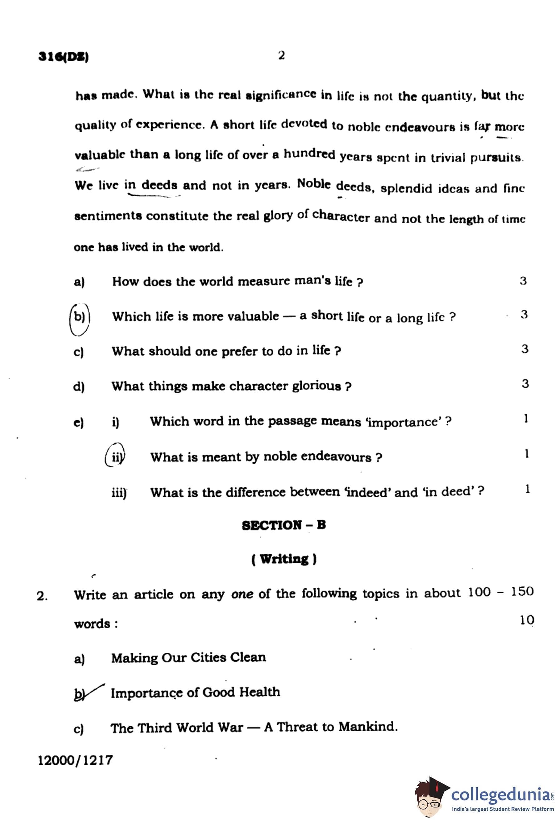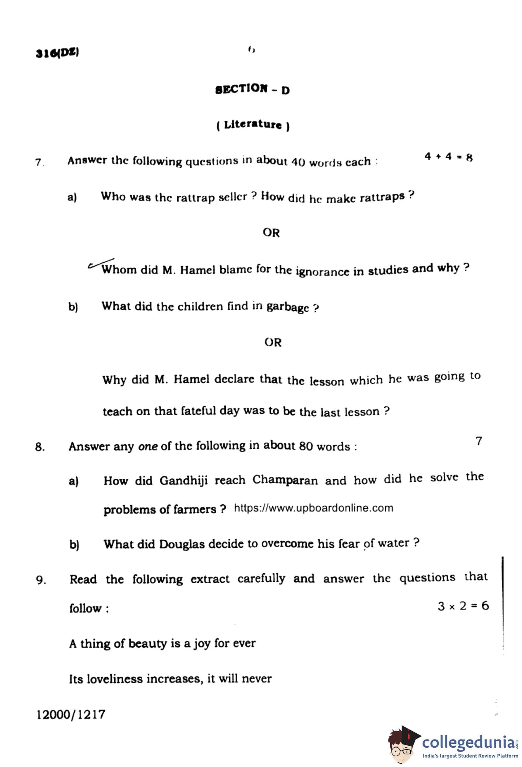 | UP Board Class 12 English Question Paper with Answer Key | Check Solution |