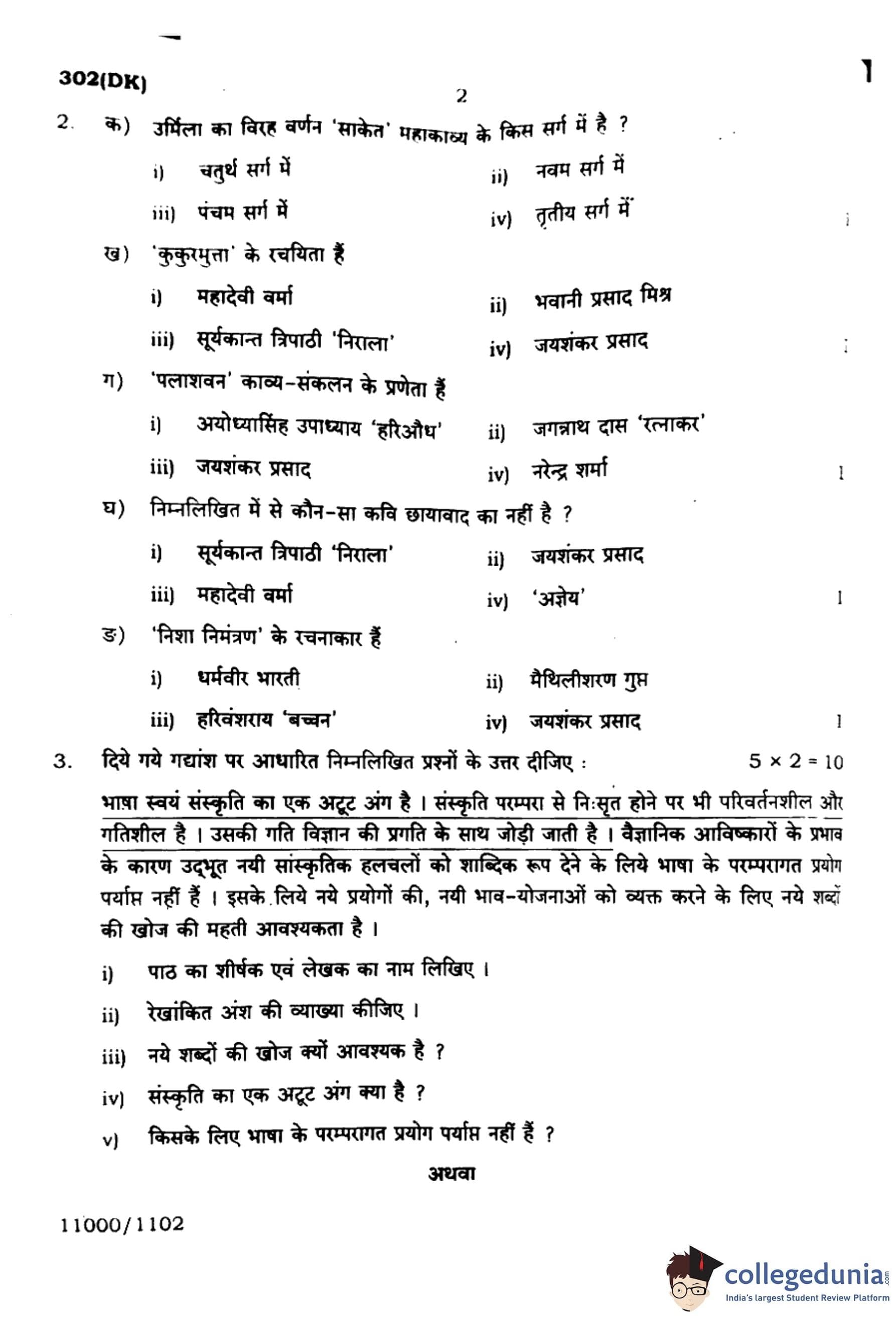 UP Board Class 12 General Hindi Question Paper 2024 (Code 302 DK) with Solutions