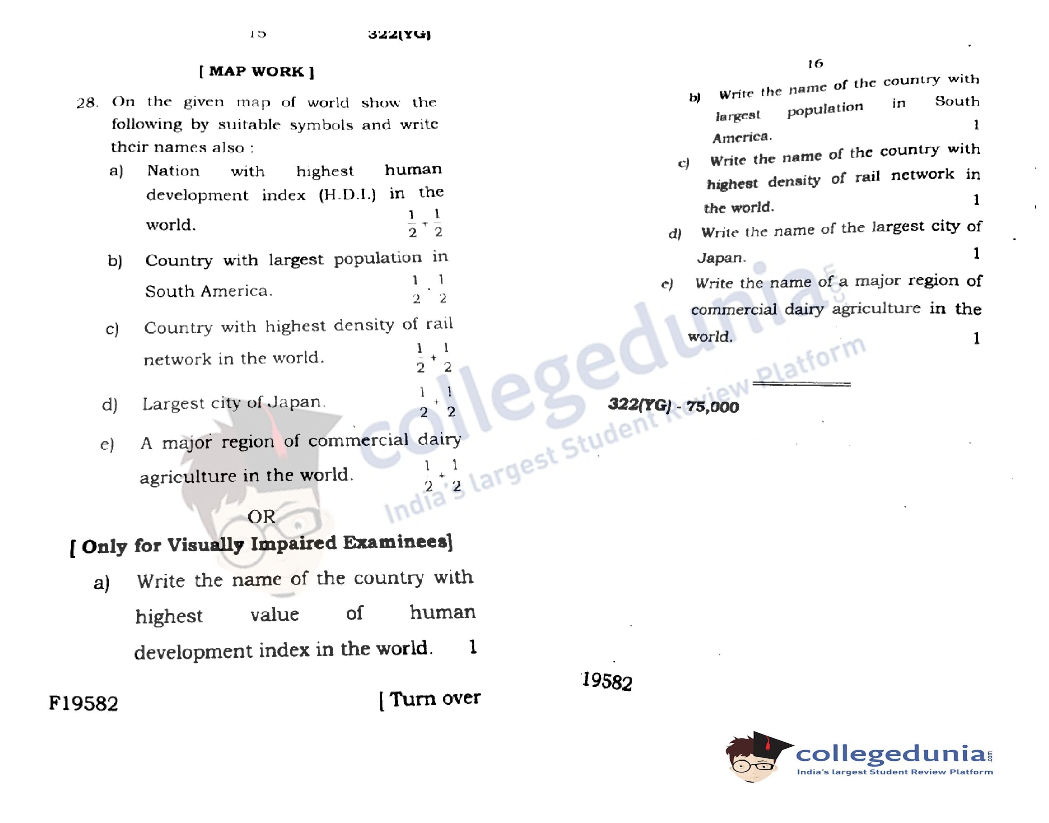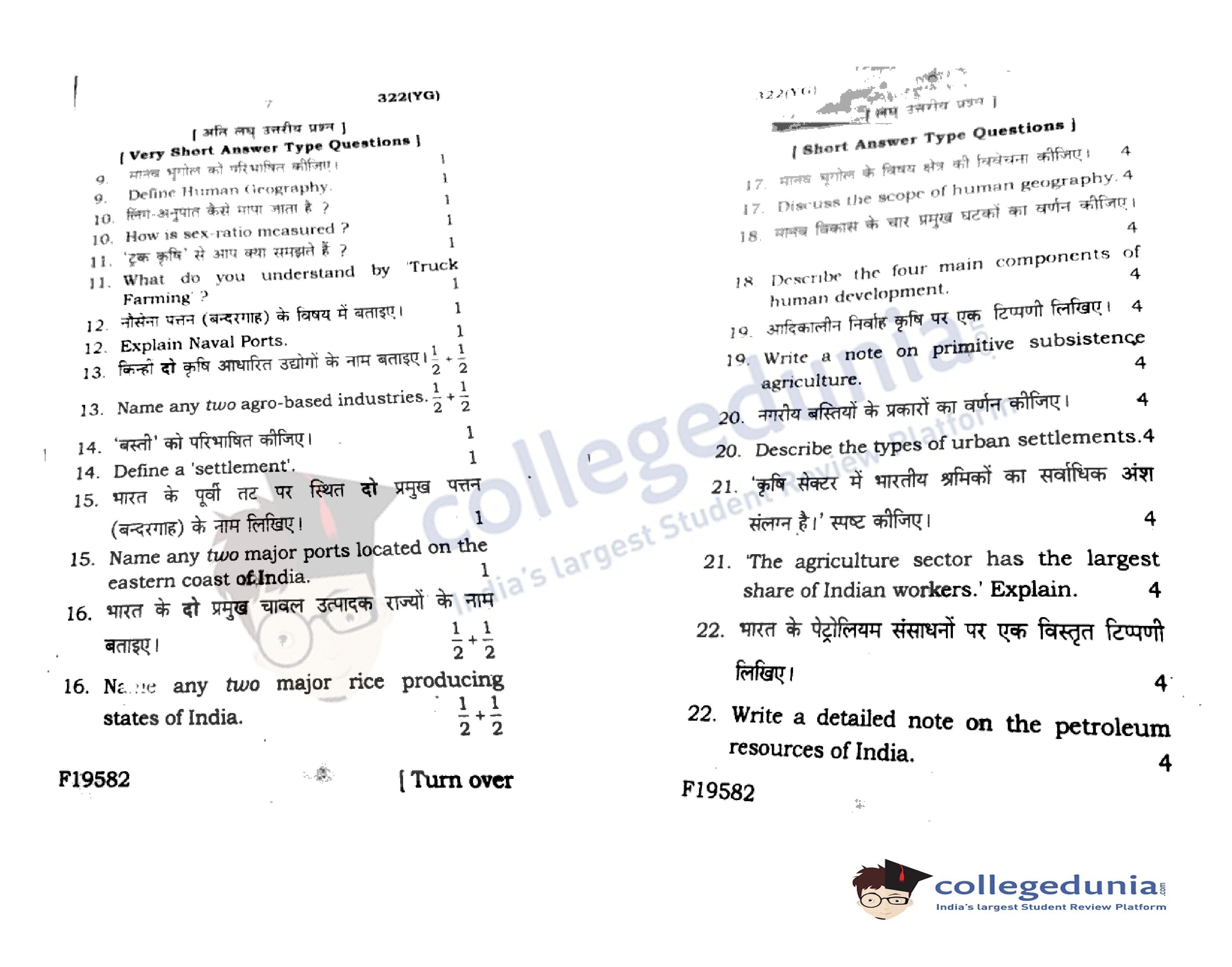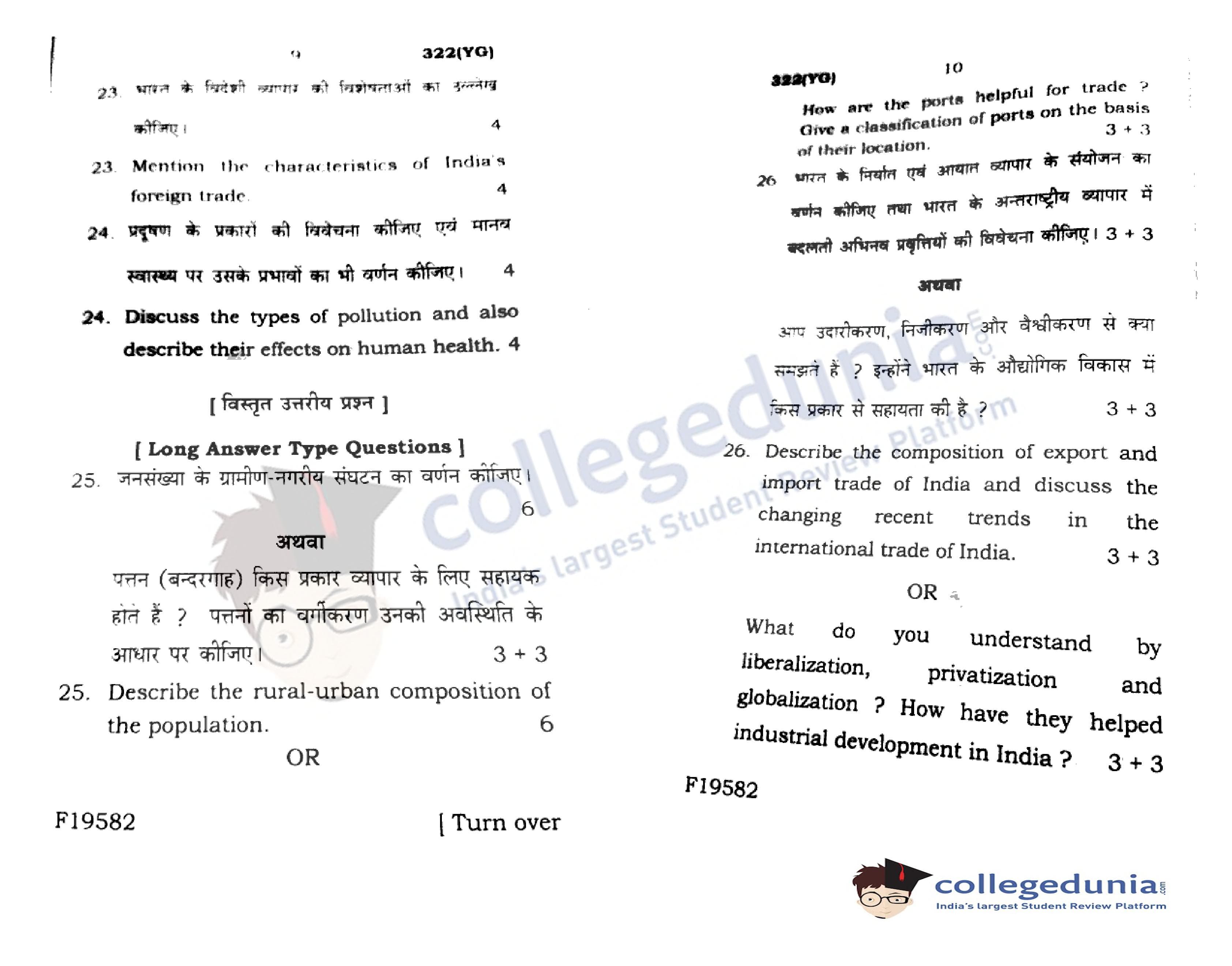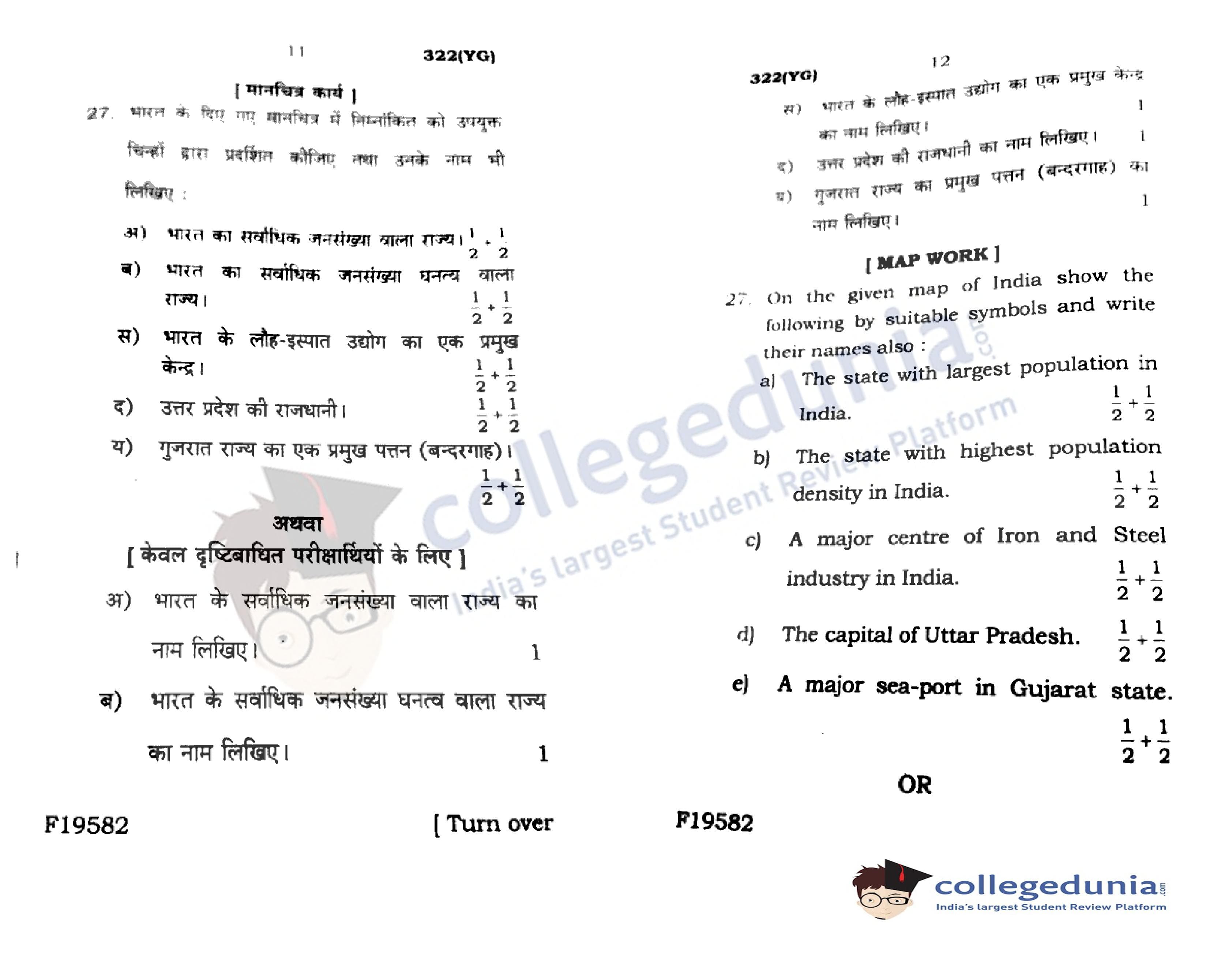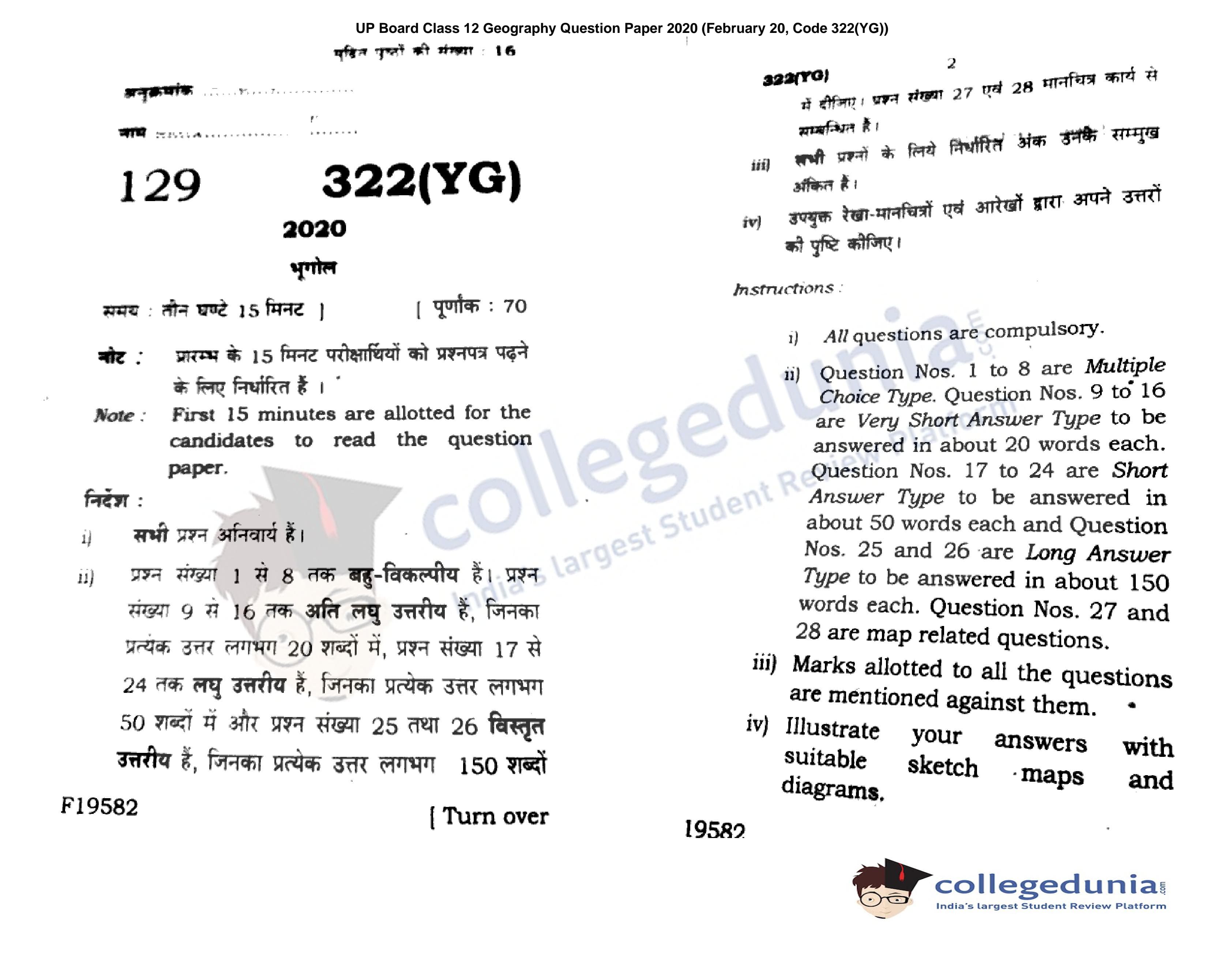 UP Board Class 12 Geography Code 322(YG) Question Paper 2020 with Answer Key (February 20)