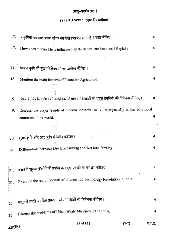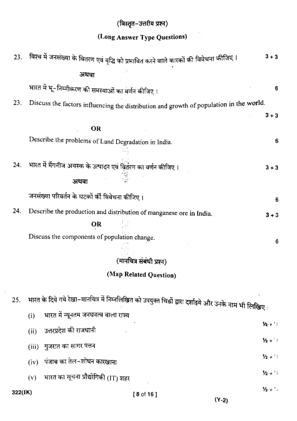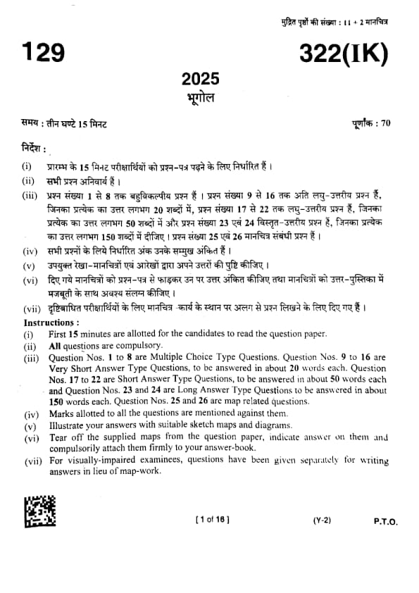 UP Board Class 12 Geography Question Paper 2025 (Code 322 IK) with Solutions
