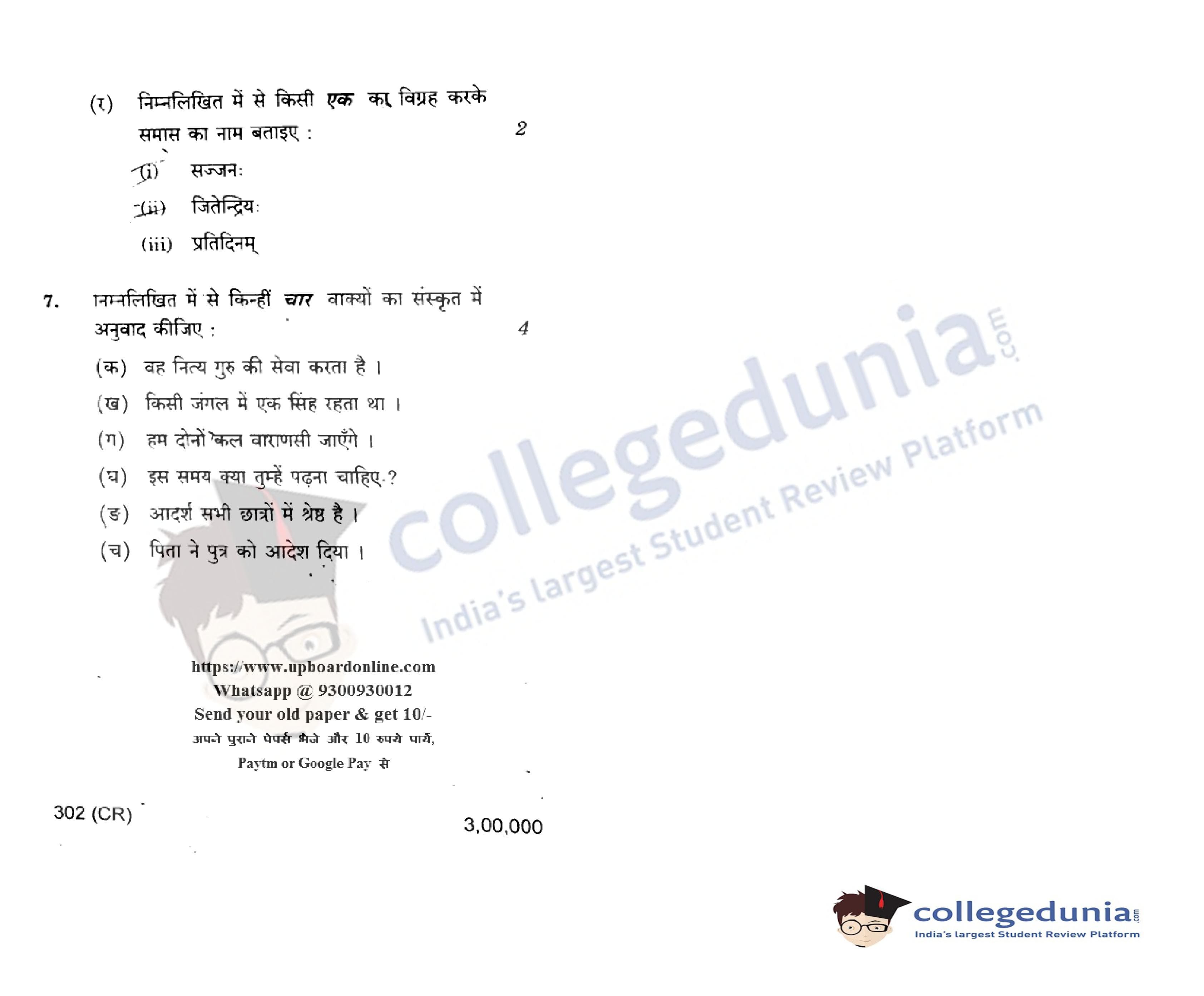 UP Board Class 12 Hindi-2 Question Paper 2015 with Answer Key Code 302(CR) is available for download. The exam was conducted by the Uttar Pradesh Madhyamik Shiksha Parishad (UPMSP) on March 21, 2015 in the Afternoon Session 2 PM to 5:15 PM. The medium of paper was Hindi. The question paper comprised a total of 7 questions.