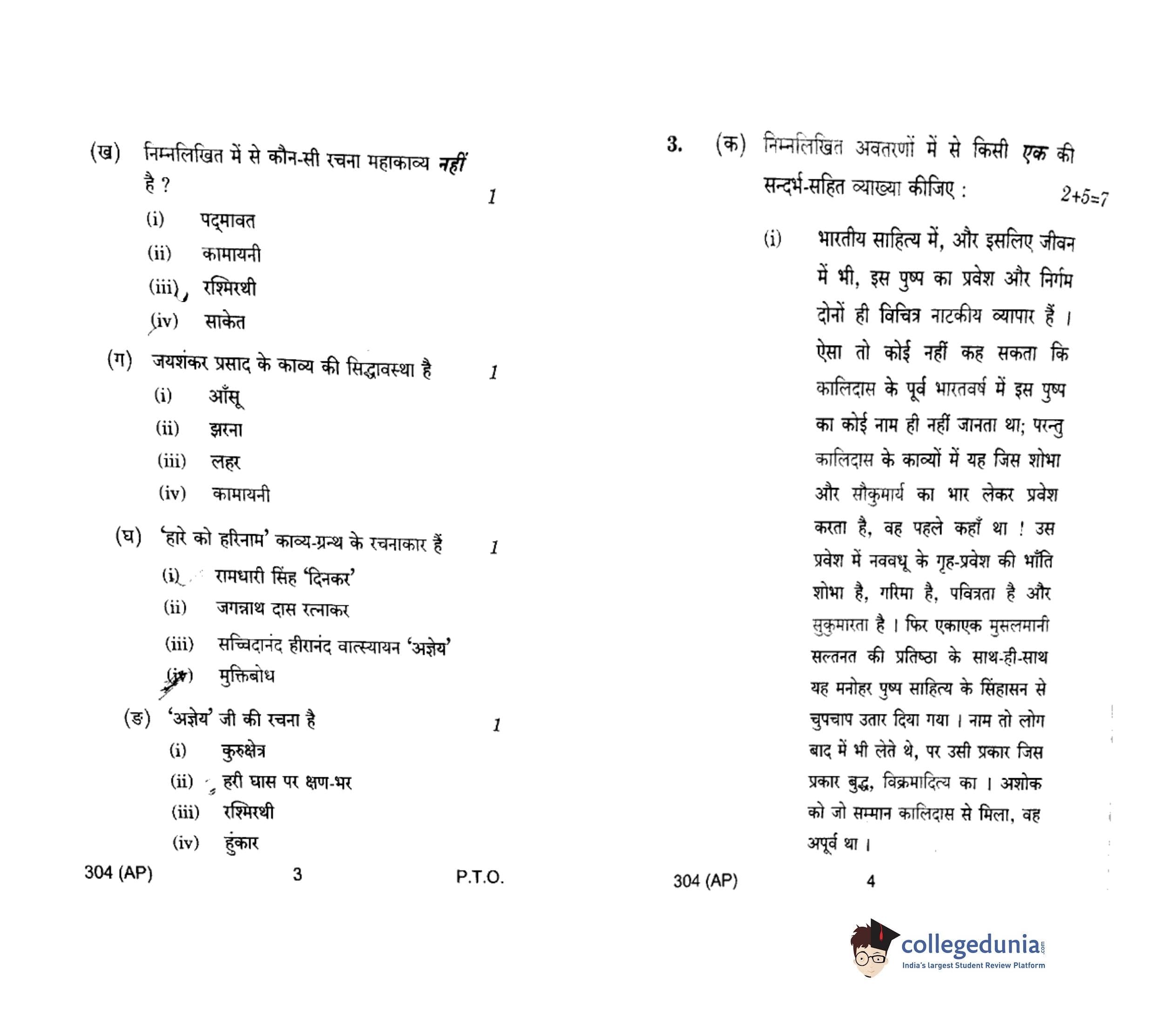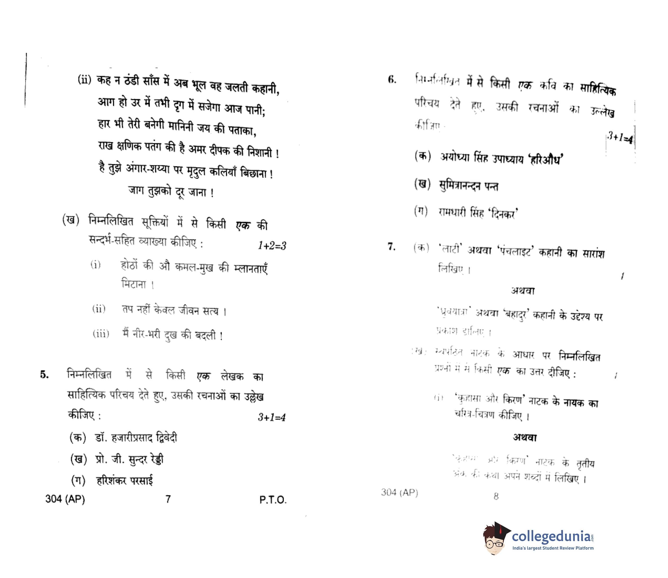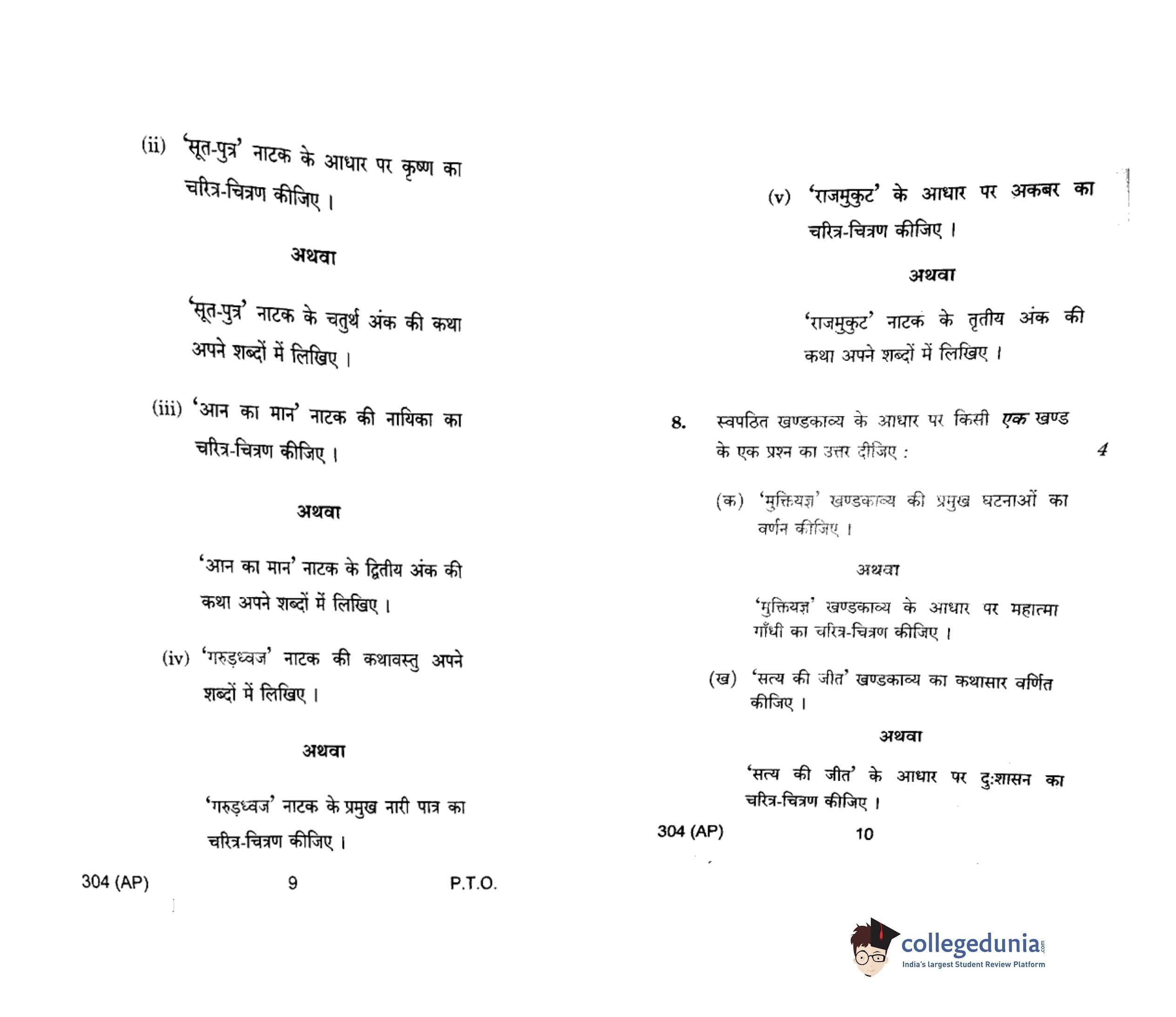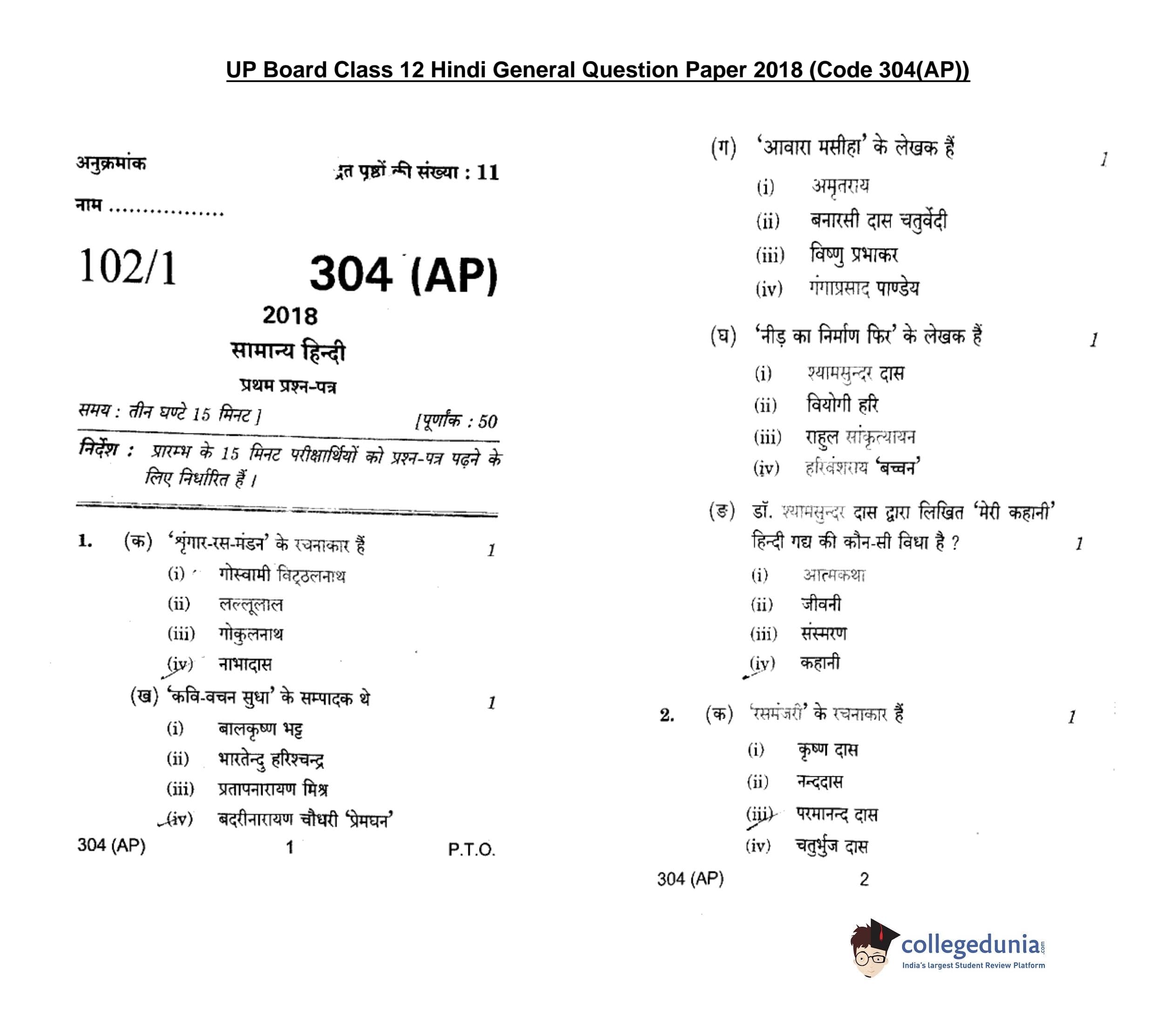 UP Board Class 12 Hindi General-1 Question Paper 2018 with Answer Key Code 304(AP) is available for download. The exam was conducted by the Uttar Pradesh Madhyamik Shiksha Parishad (UPMSP) on February 6, 2018 in the Afternoon Session 2 PM to 5:15 PM. The medium of paper was Hindi. The question paper comprised a total of 8 questions.