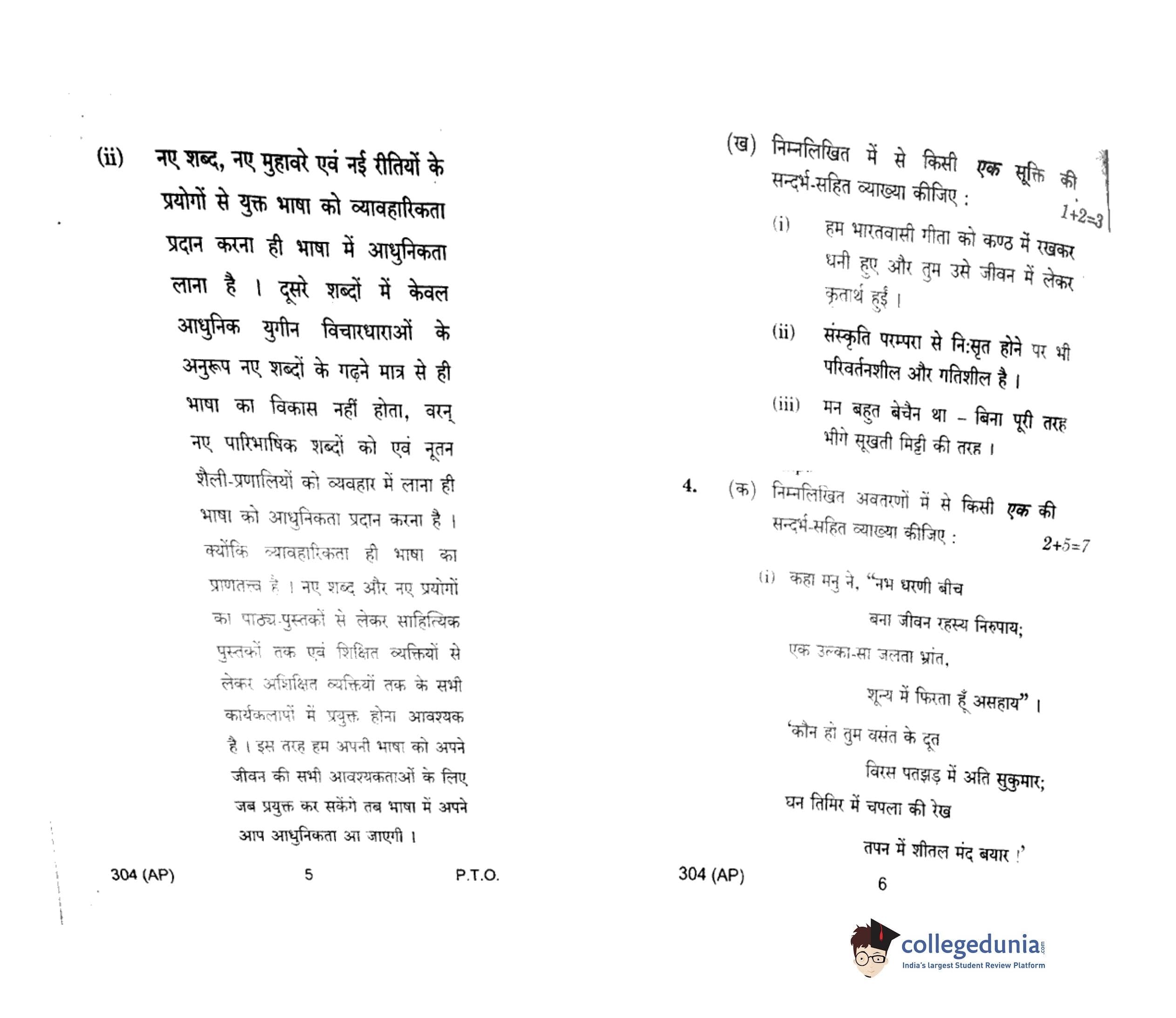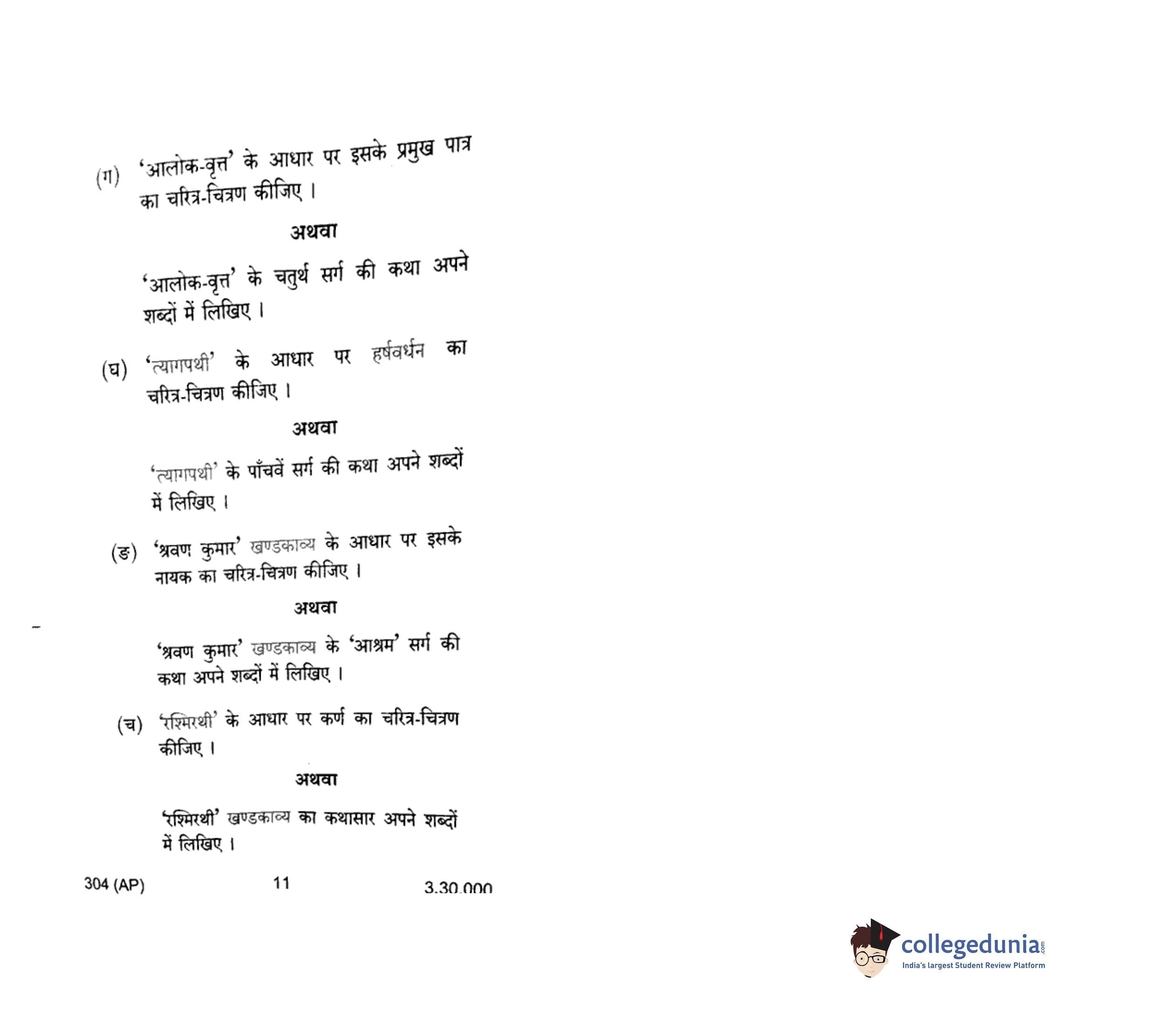 UP Board Class 12 Hindi General-1 Code 304(AP) Question Paper 2018 with Answer Key (February 6)