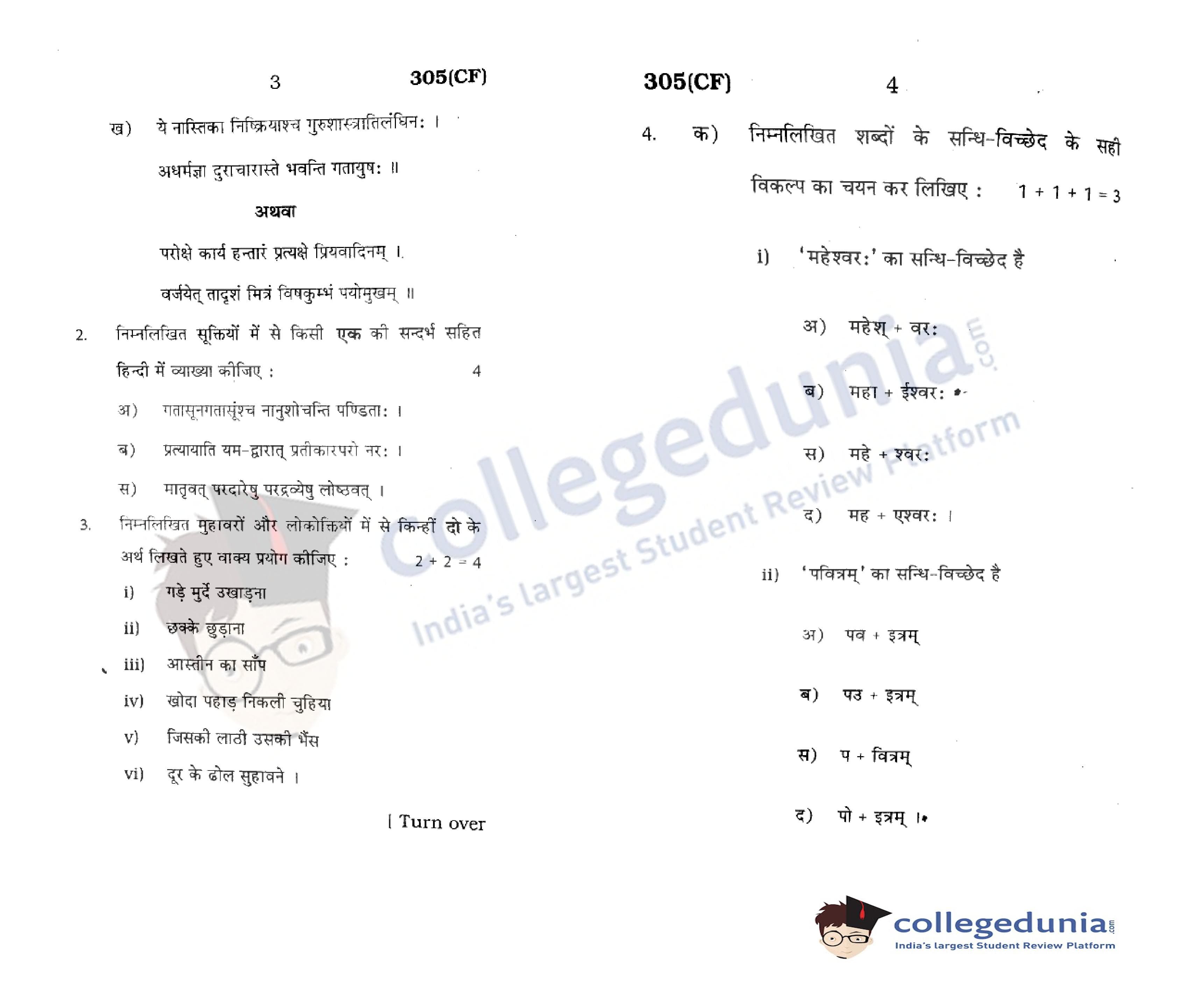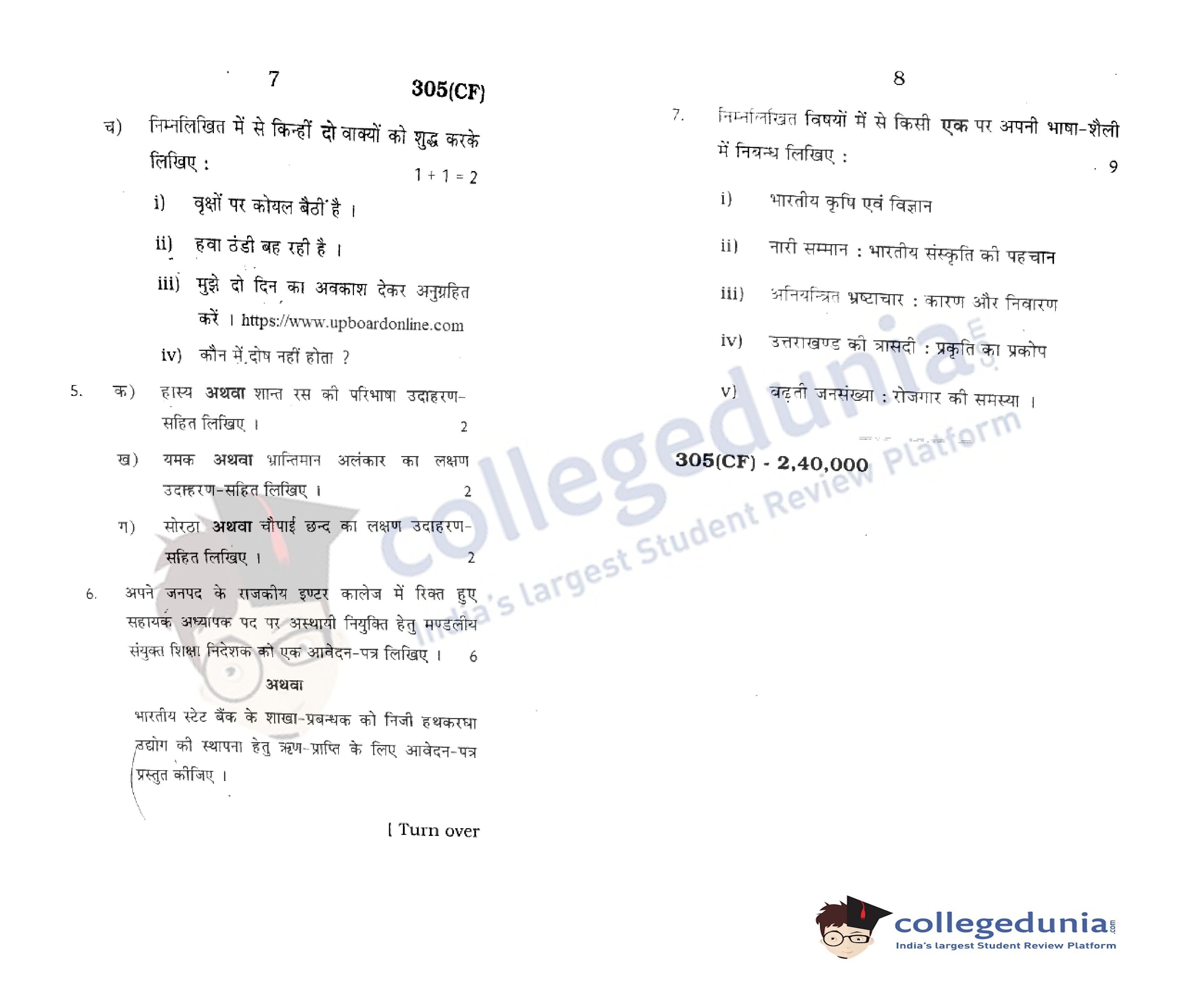 UP Board Class 12 Hindi General-2 Question Paper 2014 with Answer Key Code 305(CF) is available for download. The exam was conducted by the Uttar Pradesh Madhyamik Shiksha Parishad (UPMSP) on March 5, 2014 in the Afternoon Session 2 PM to 5:15 PM. The medium of paper was Hindi. The question paper comprised a total of 7 questions.