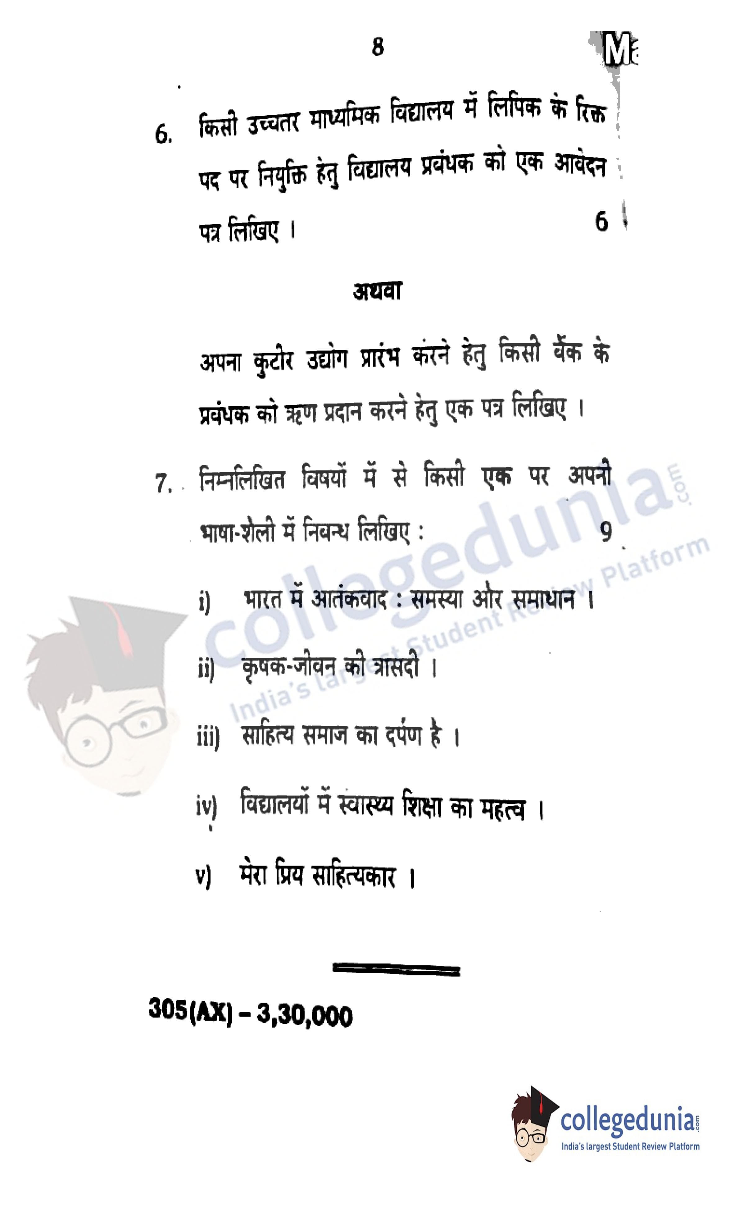 UP Board Class 12 Hindi General-2 Question Paper 2018 with Answer Key Code 305(AX) is available for download. The exam was conducted by the Uttar Pradesh Madhyamik Shiksha Parishad (UPMSP) on February 8, 2018 in the Afternoon Session 2 PM to 5:15 PM. The medium of paper was Hindi. The question paper comprised a total of 7 questions.
