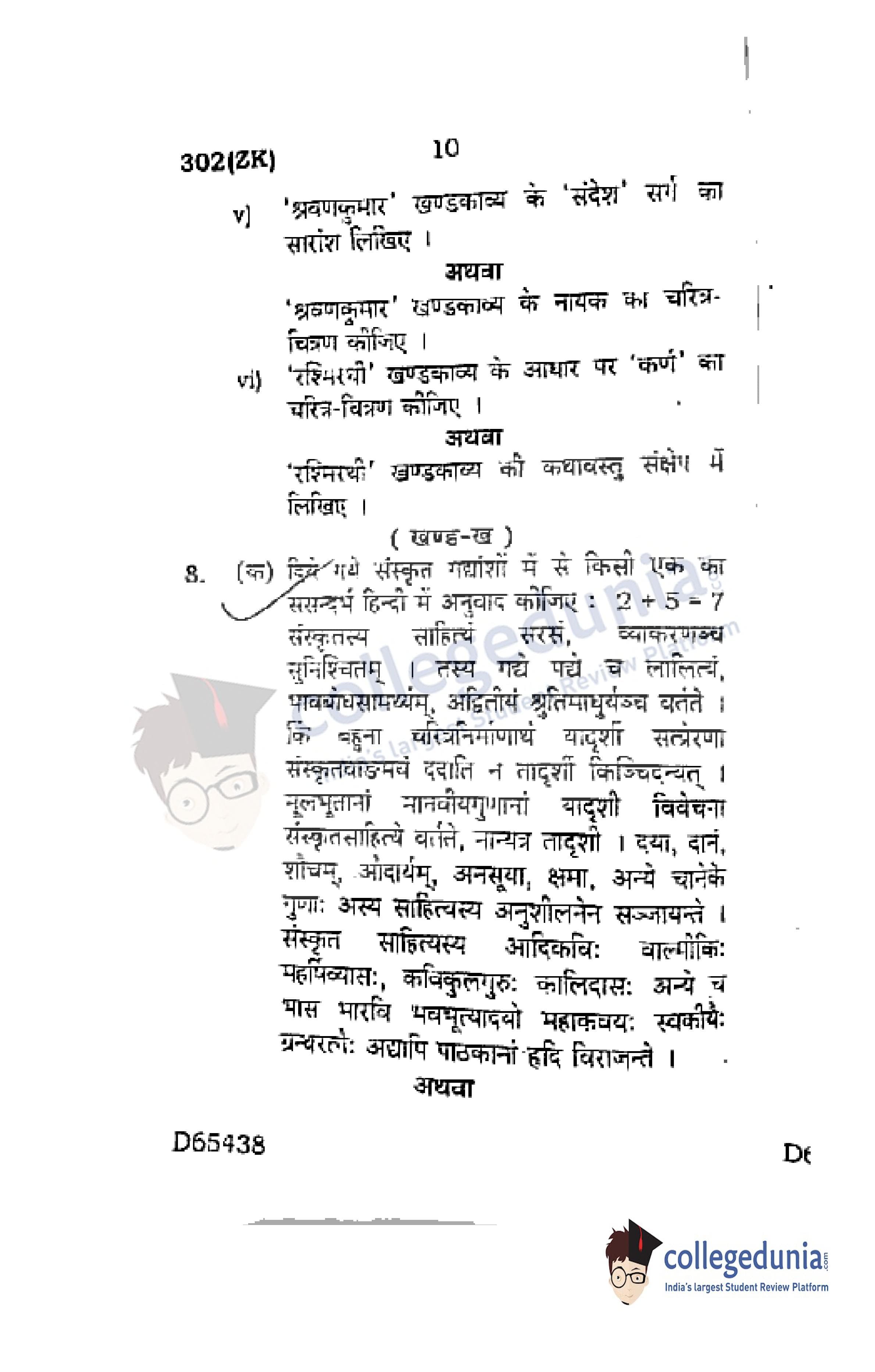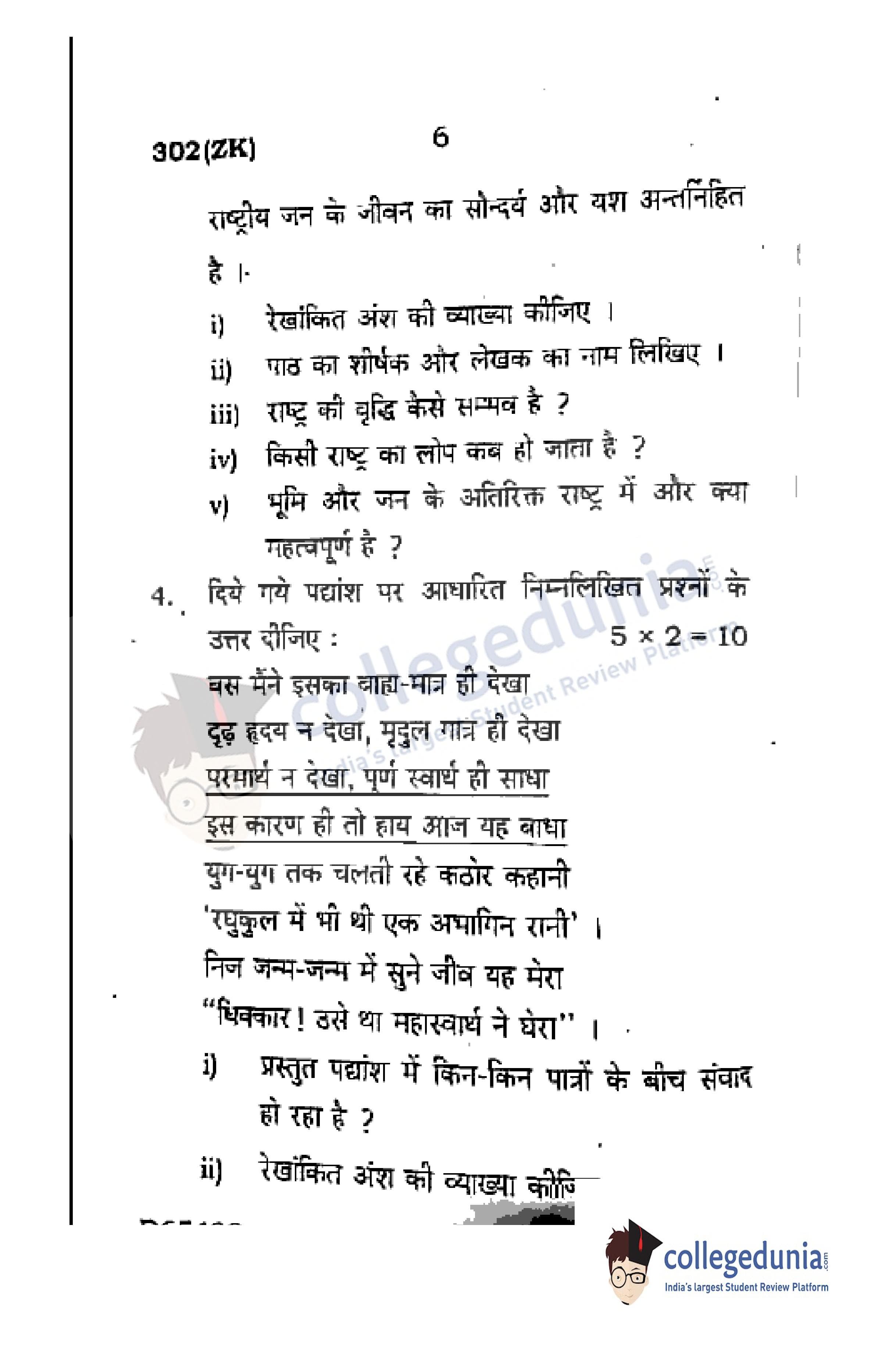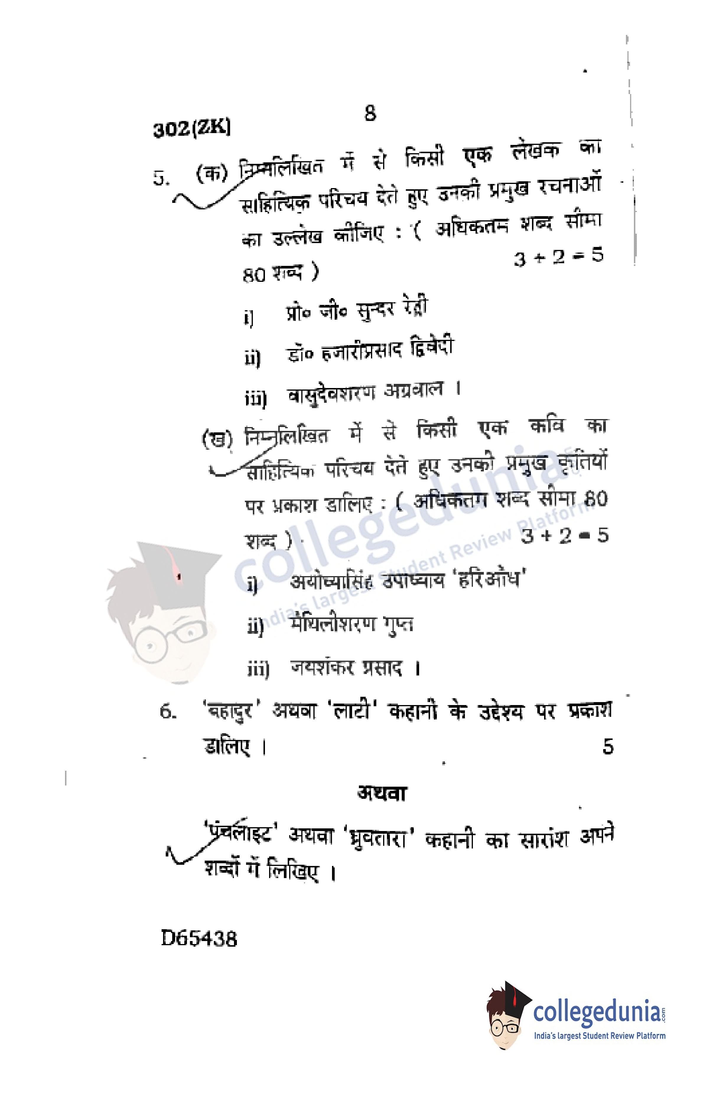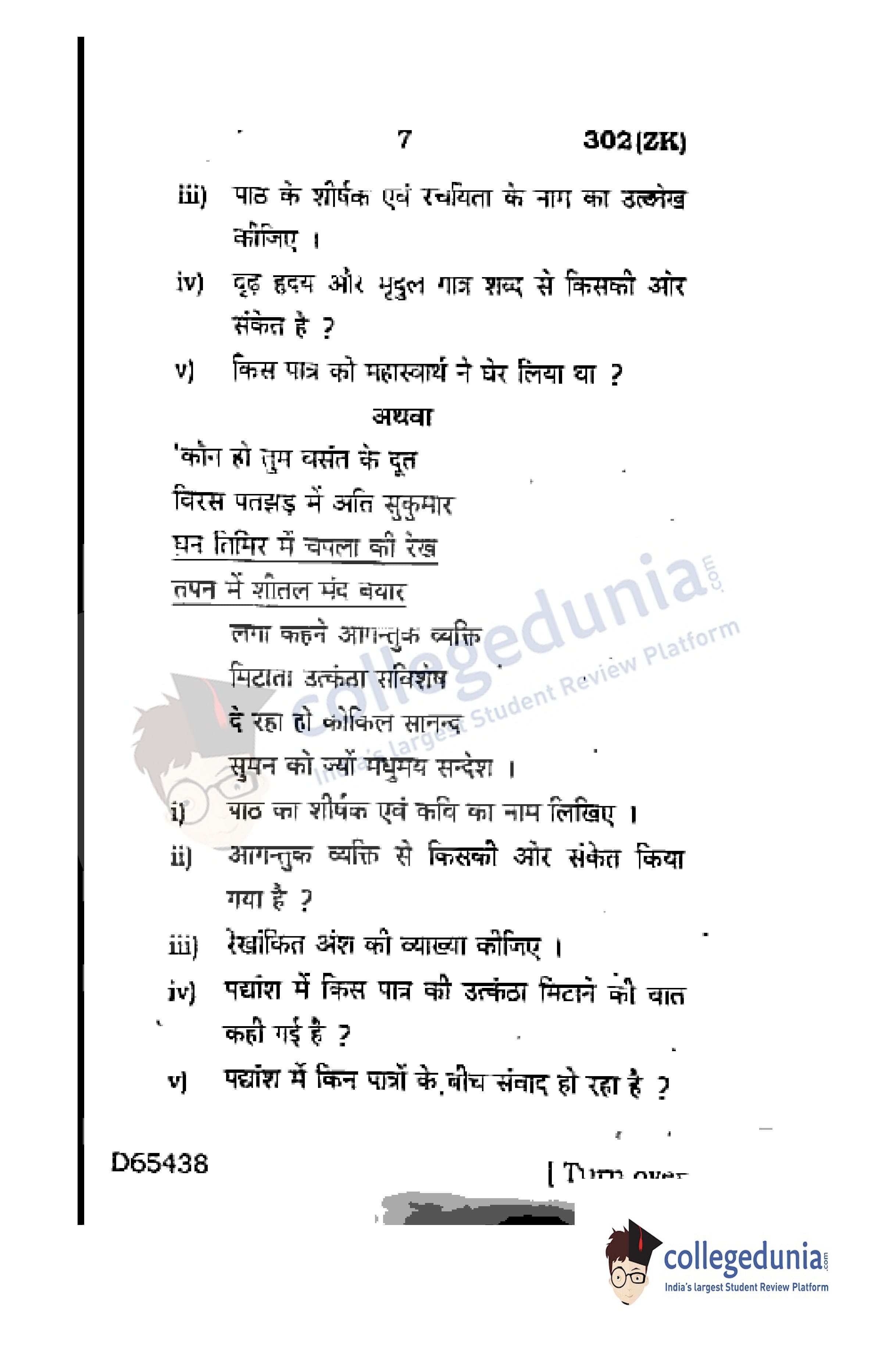 UP Board Class 12 Hindi General Code 302(ZK) Question Paper 2020 with Answer Key (February 18)