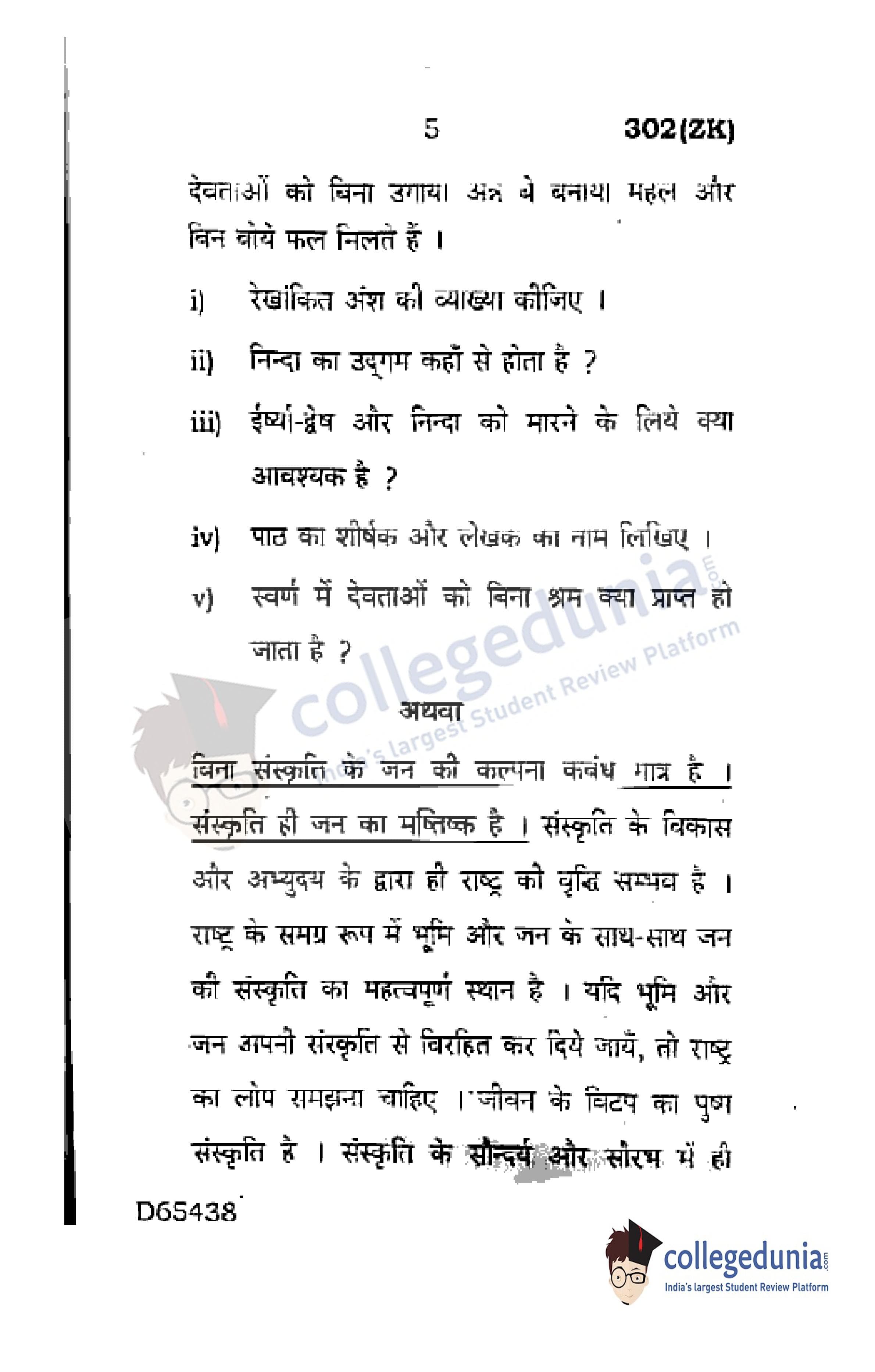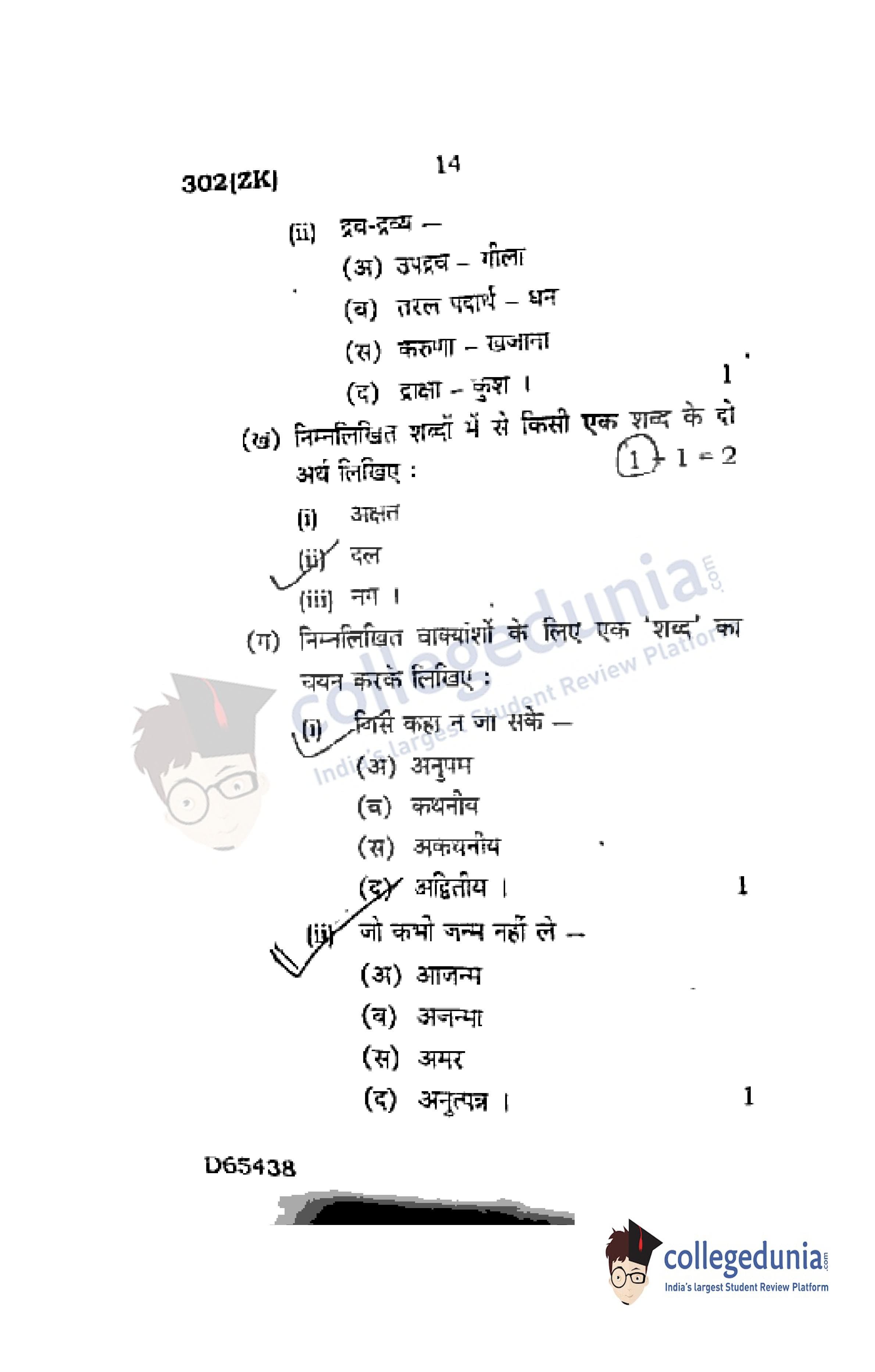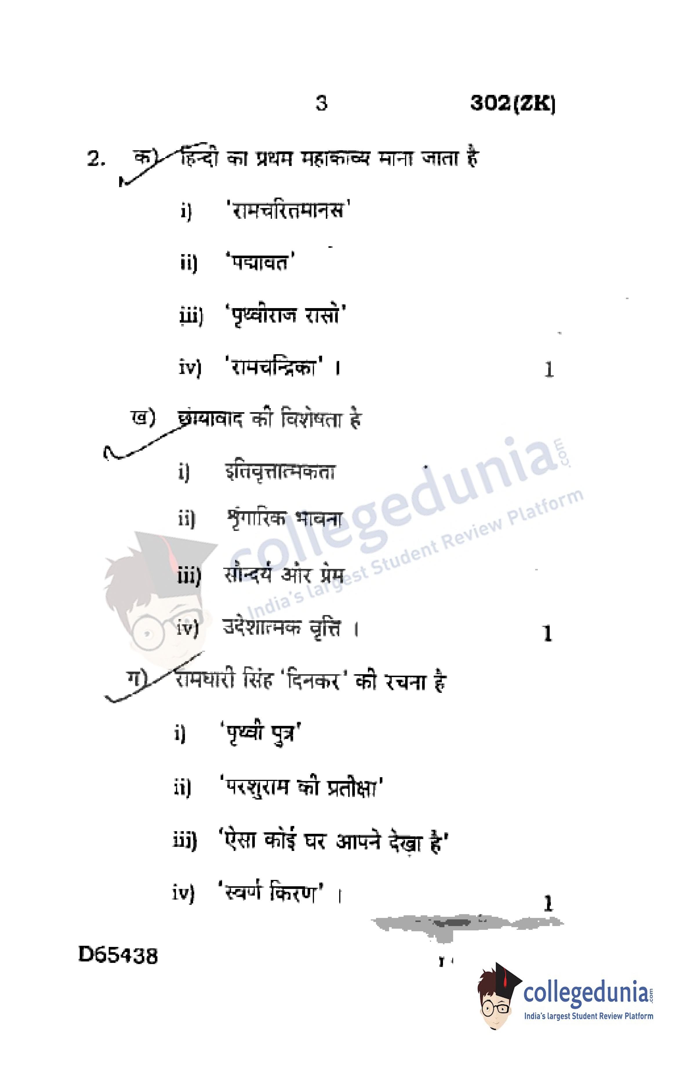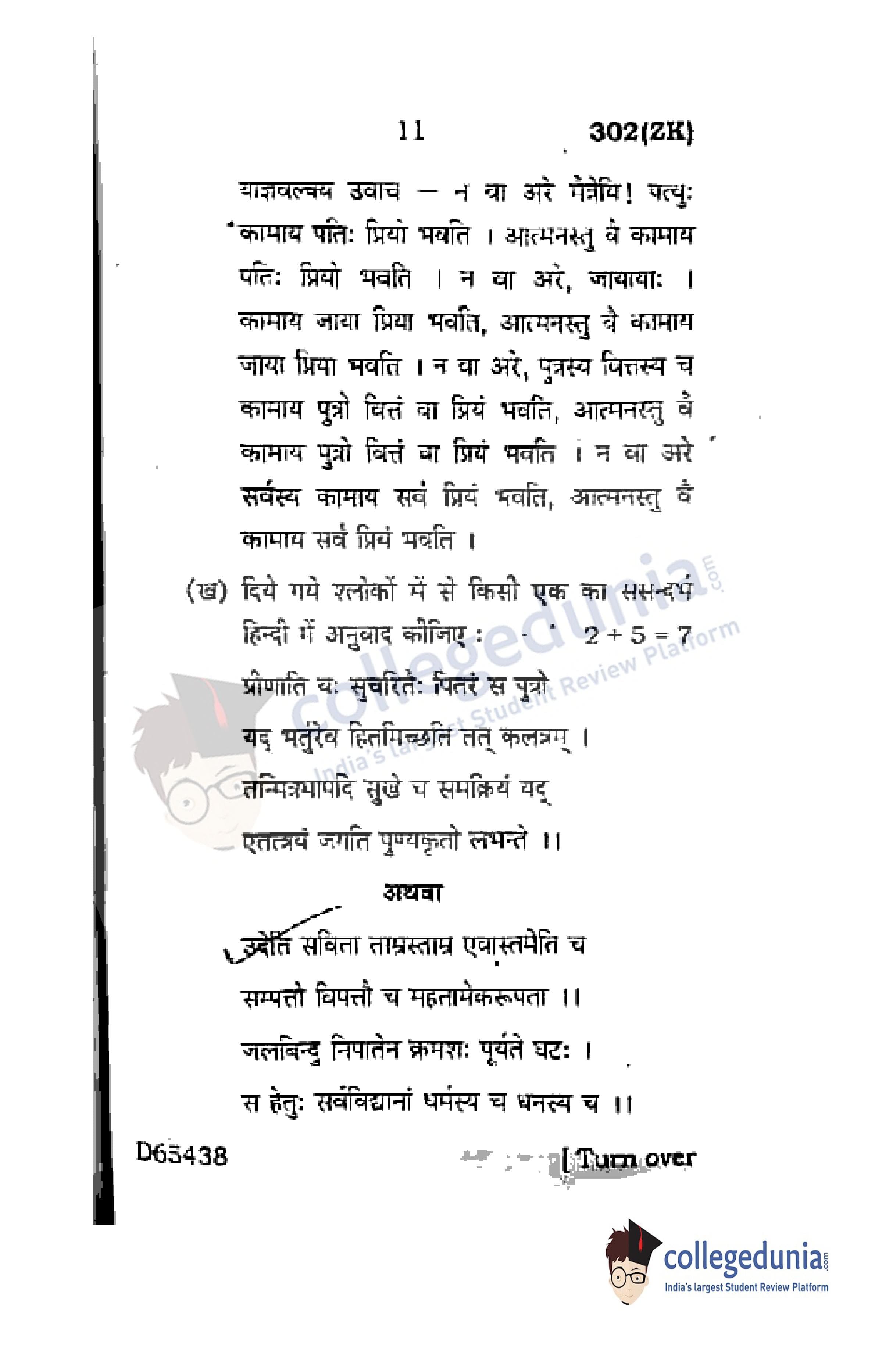UP Board Class 12 Hindi General Code 302(ZK) Question Paper 2020 with Answer Key (February 18)