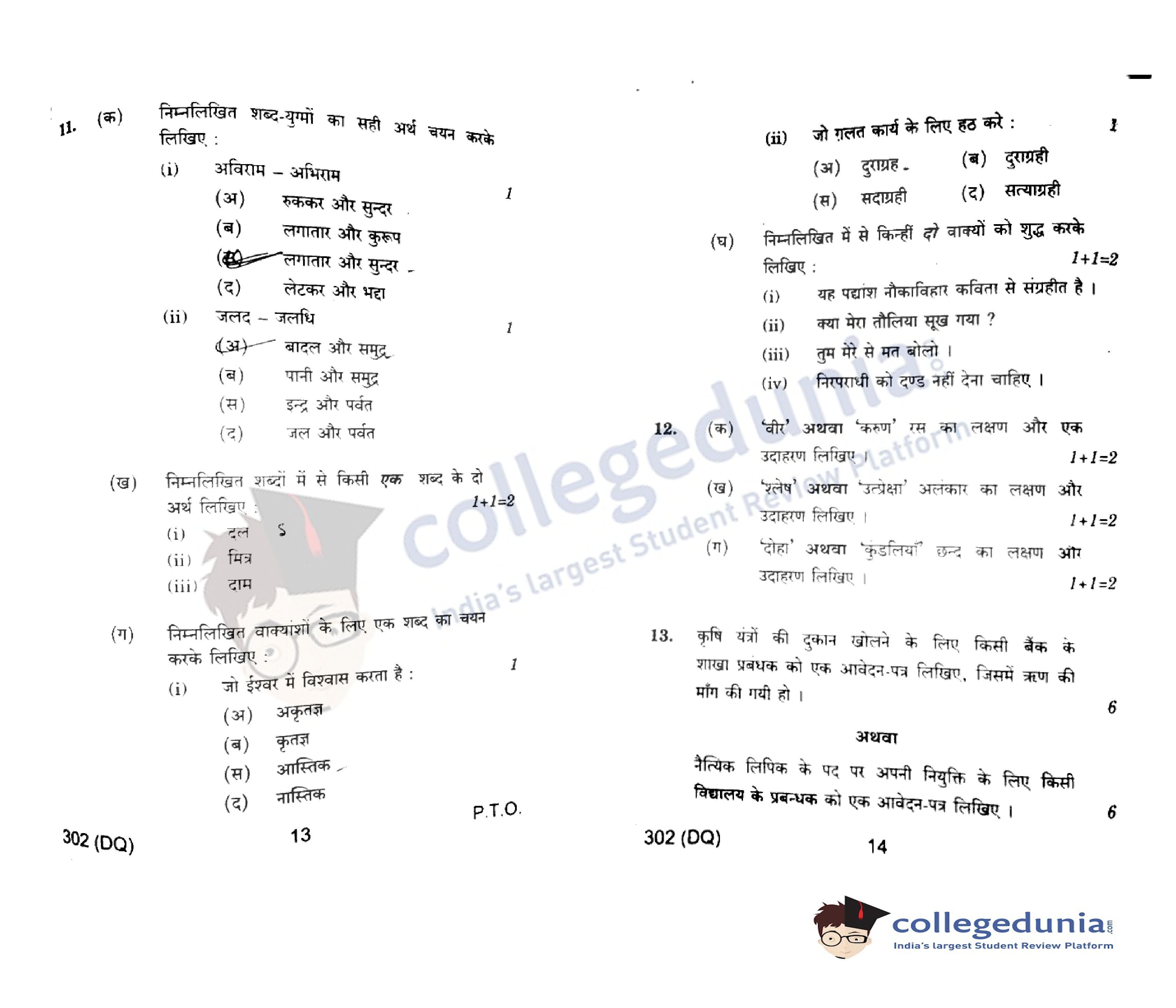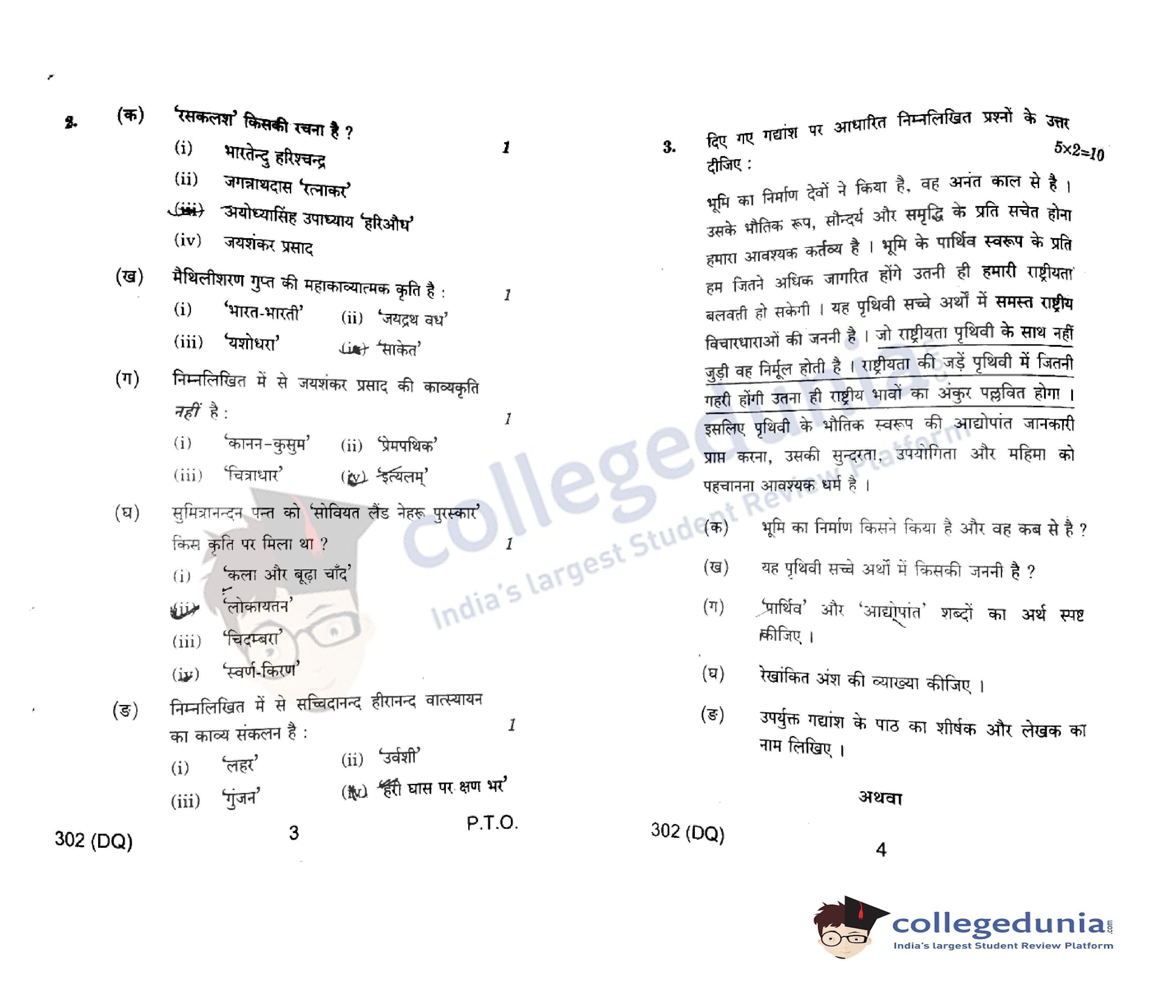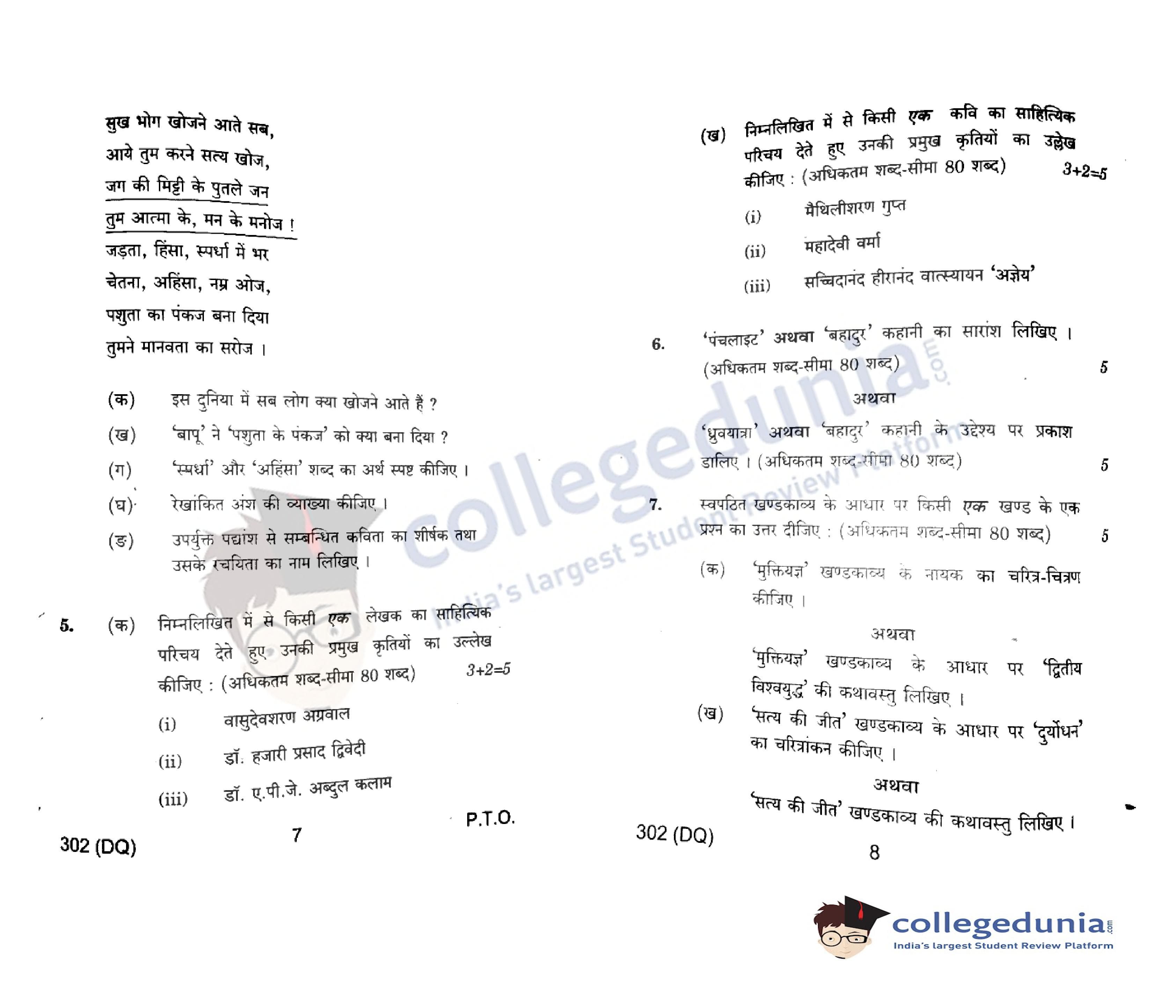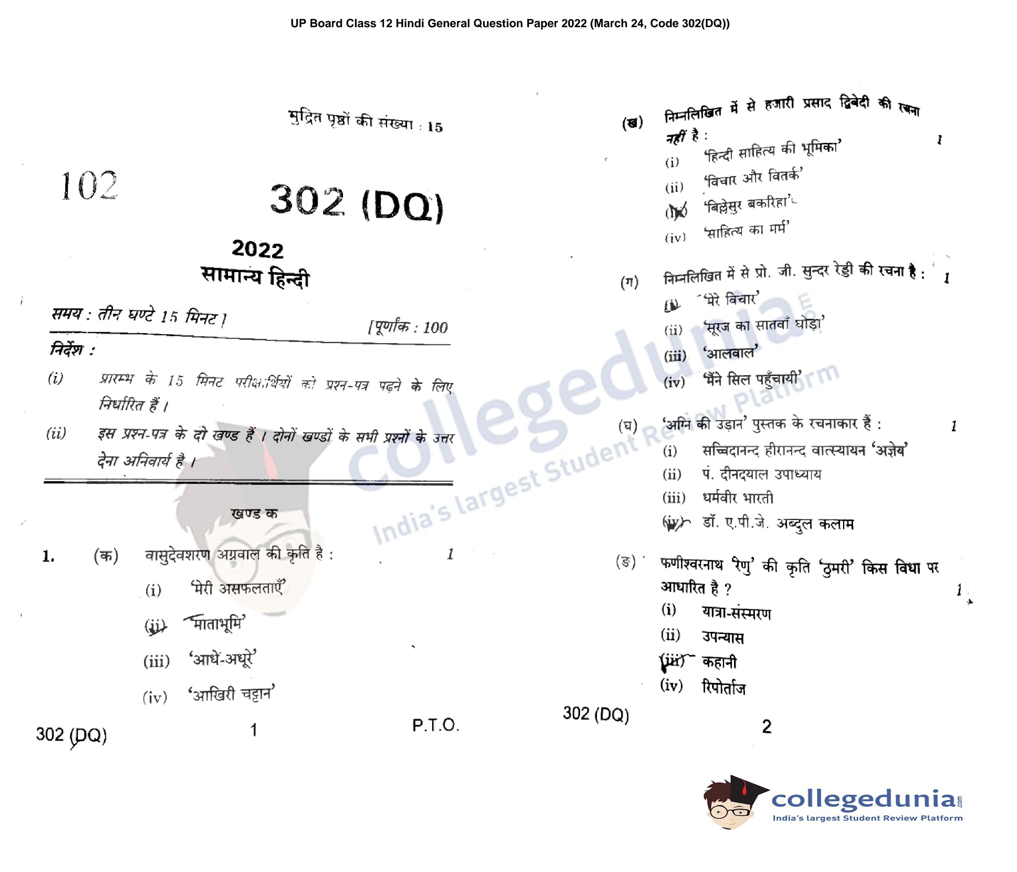 UP Board Class 12 Hindi General Question Paper 2022 with Answer Key Code 302(DQ) is available for download. The exam was conducted by the Uttar Pradesh Madhyamik Shiksha Parishad (UPMSP) on March 24, 2022 in the Afternoon Session 2 PM to 5:15 PM. The medium of paper was Hindi. The question paper comprised a total of 14 questions.