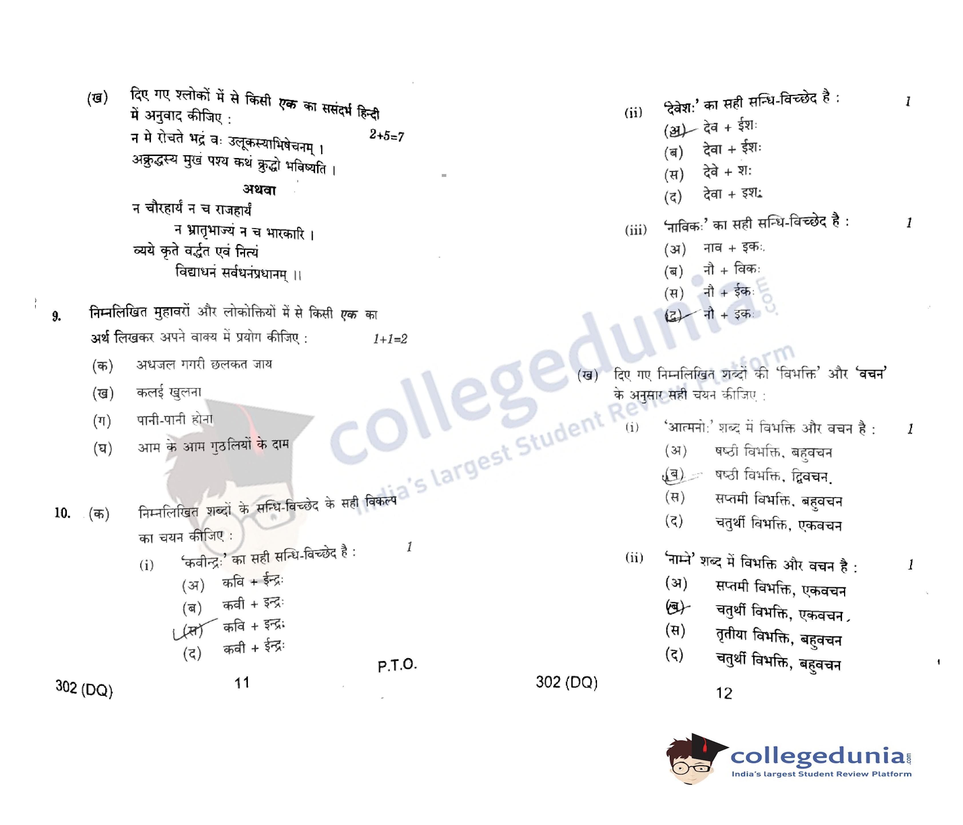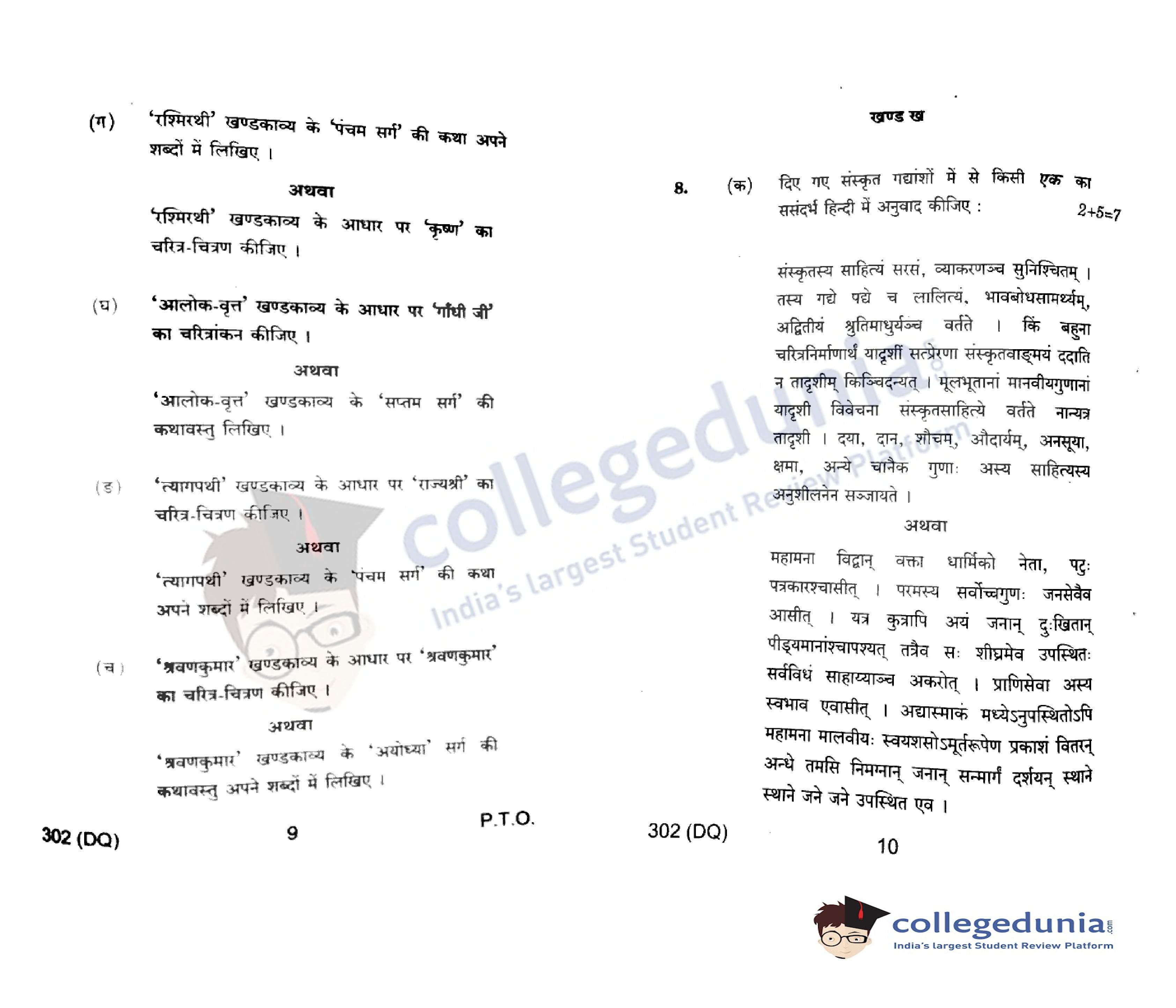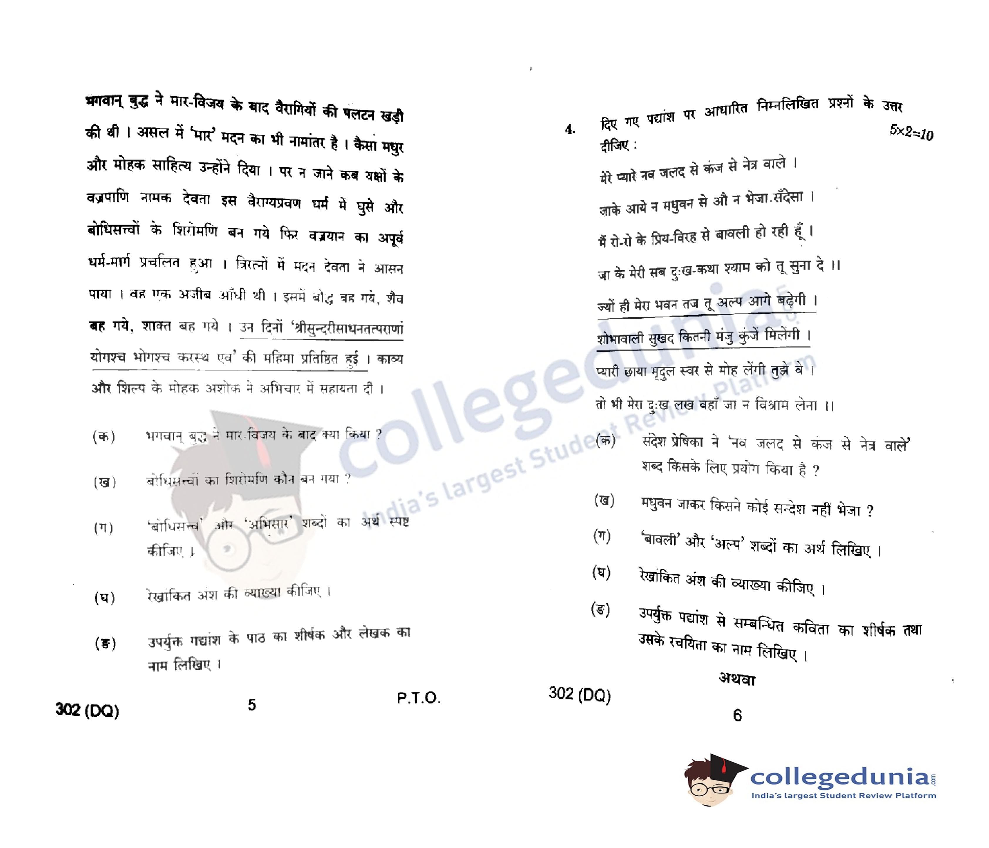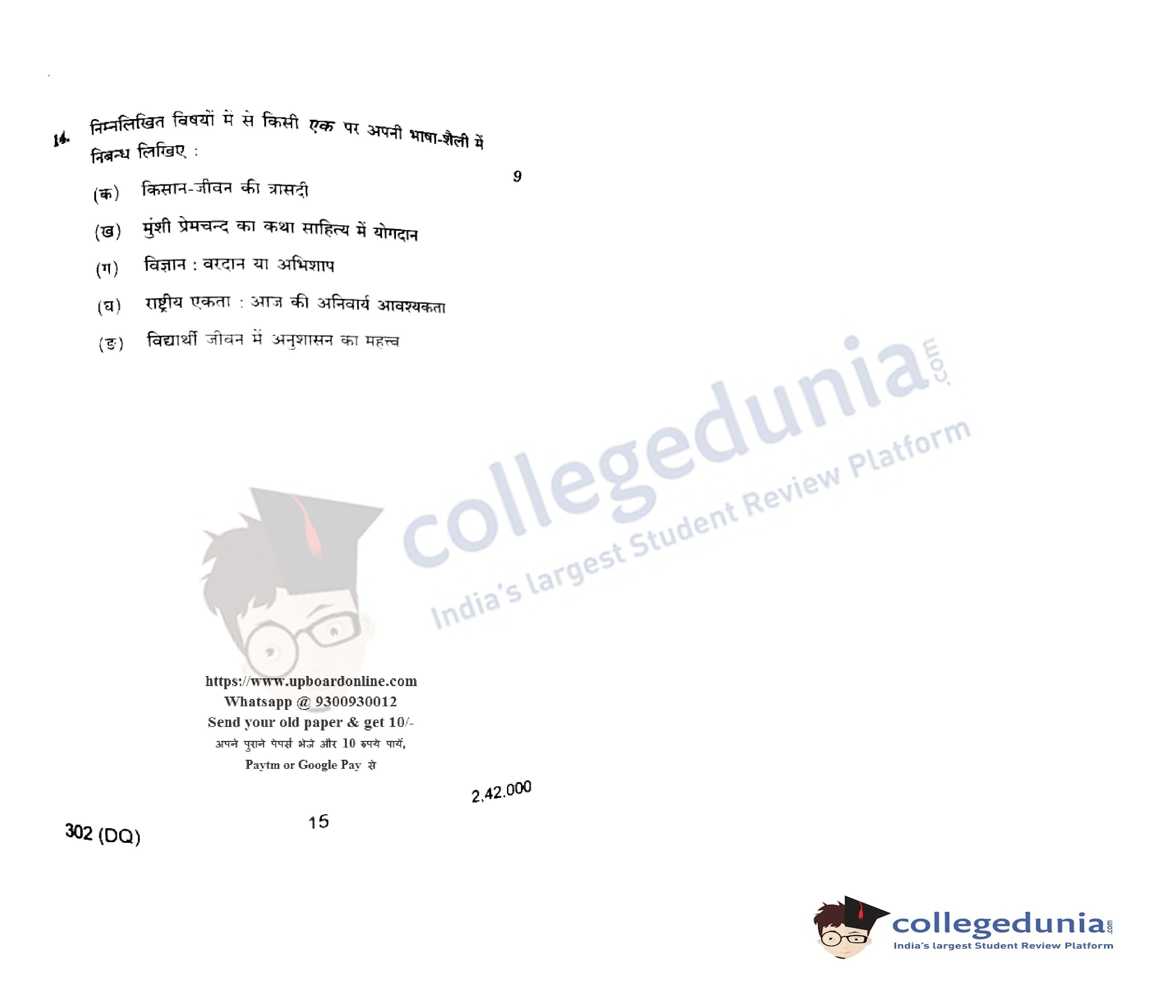 UP Board Class 12 Hindi General Code 302(DQ) Question Paper 2022 with Answer Key (March 24)