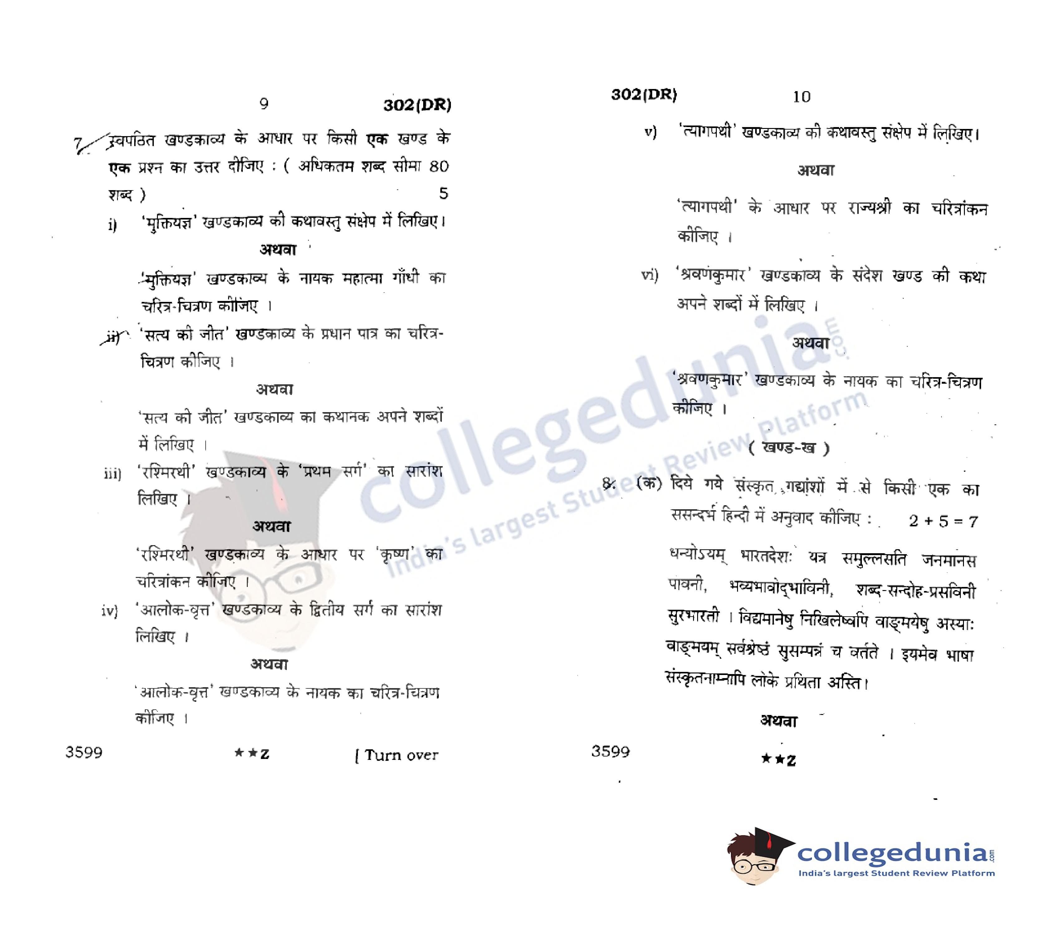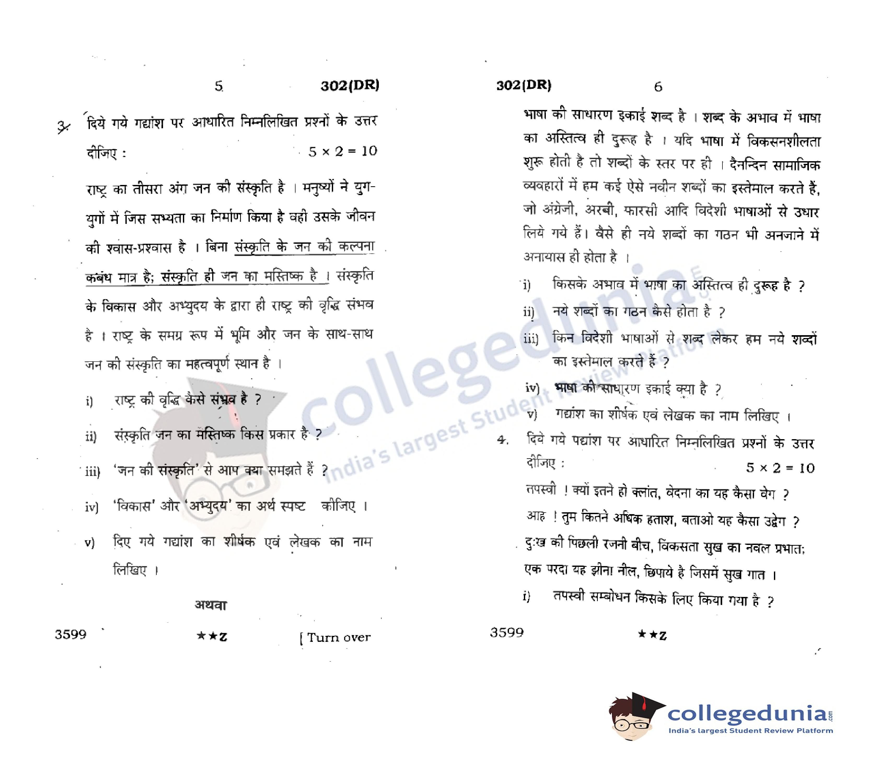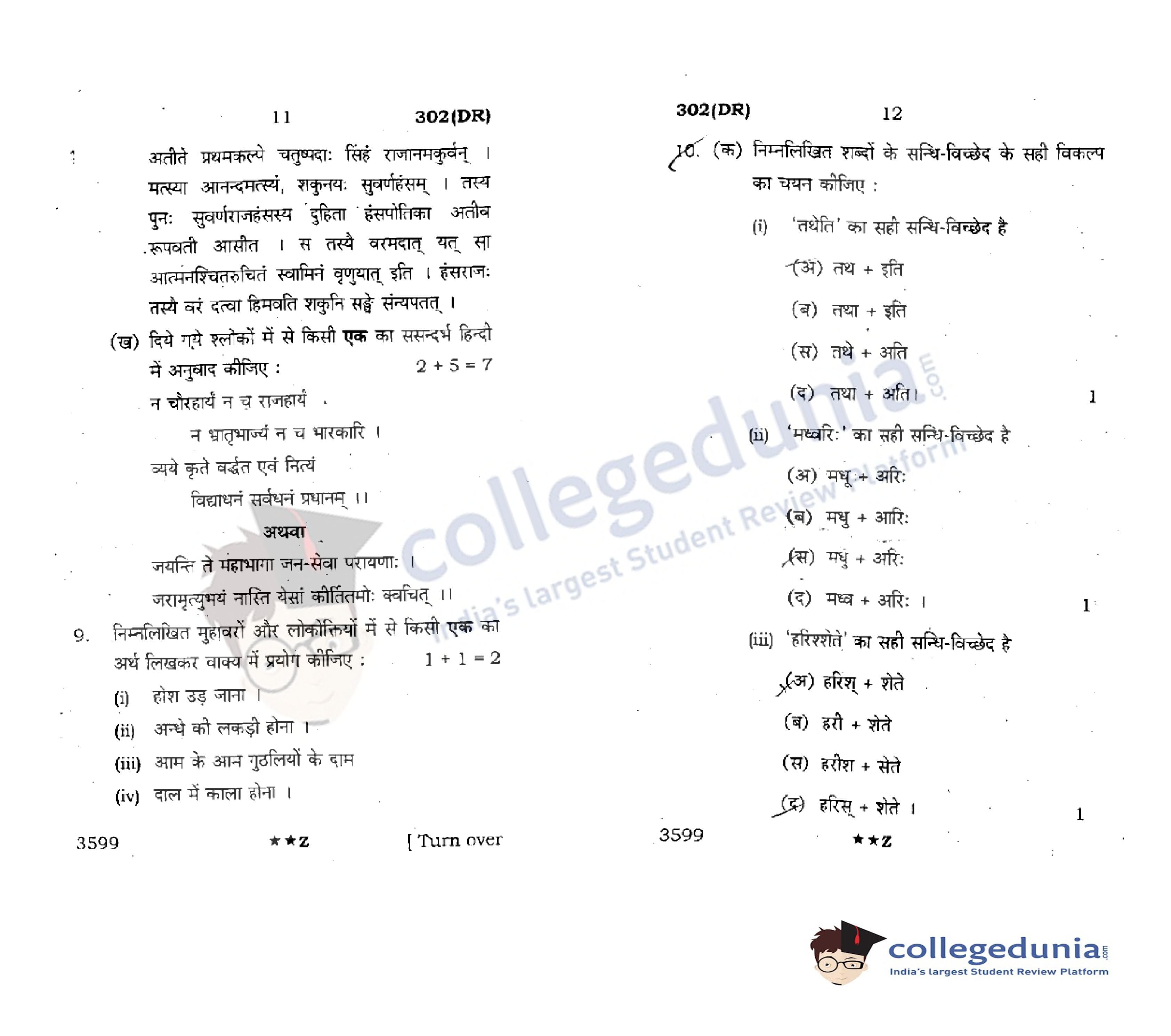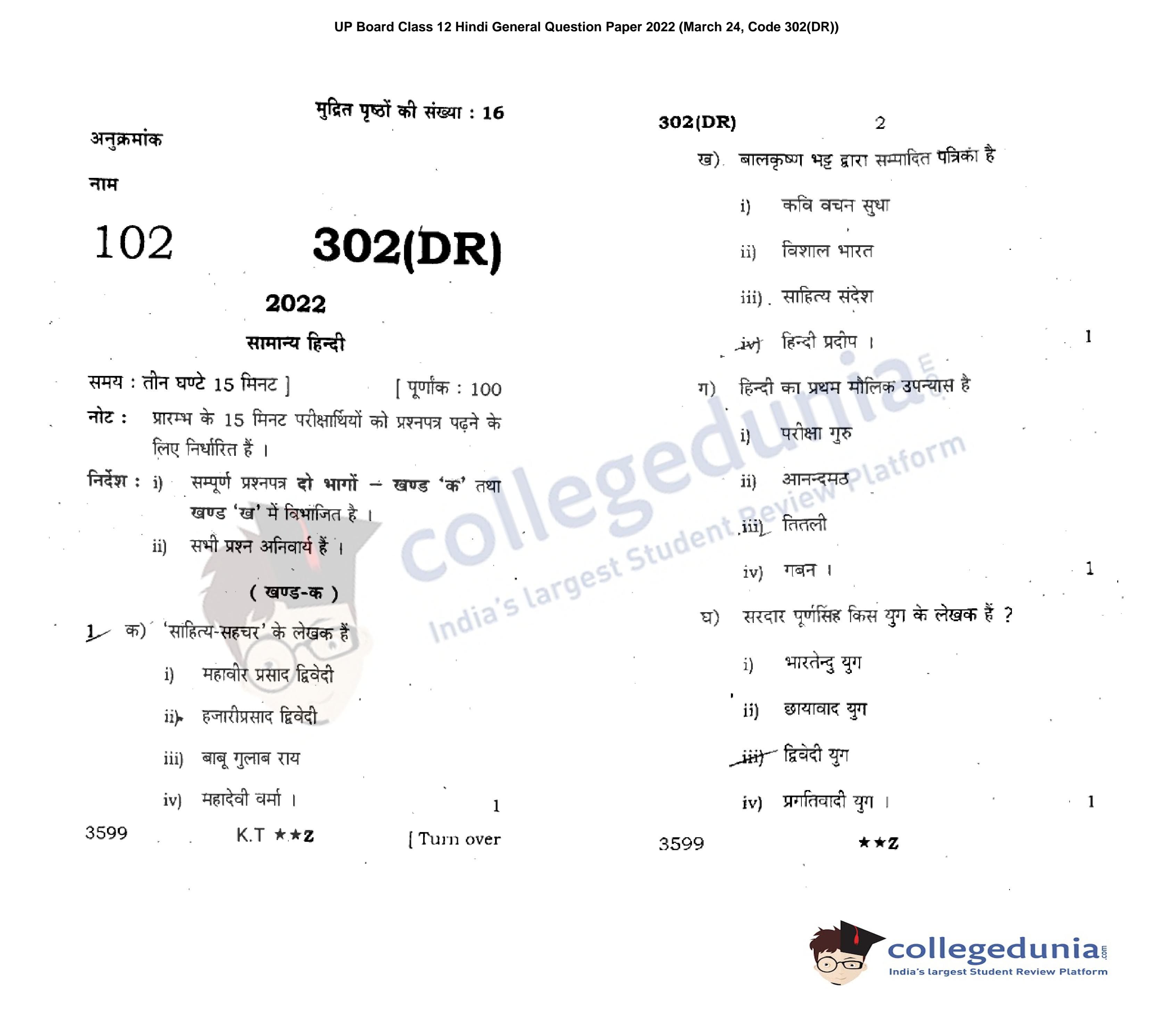 UP Board Class 12 Hindi General Code 302(DR) Question Paper 2022 with Answer Key (March 24)