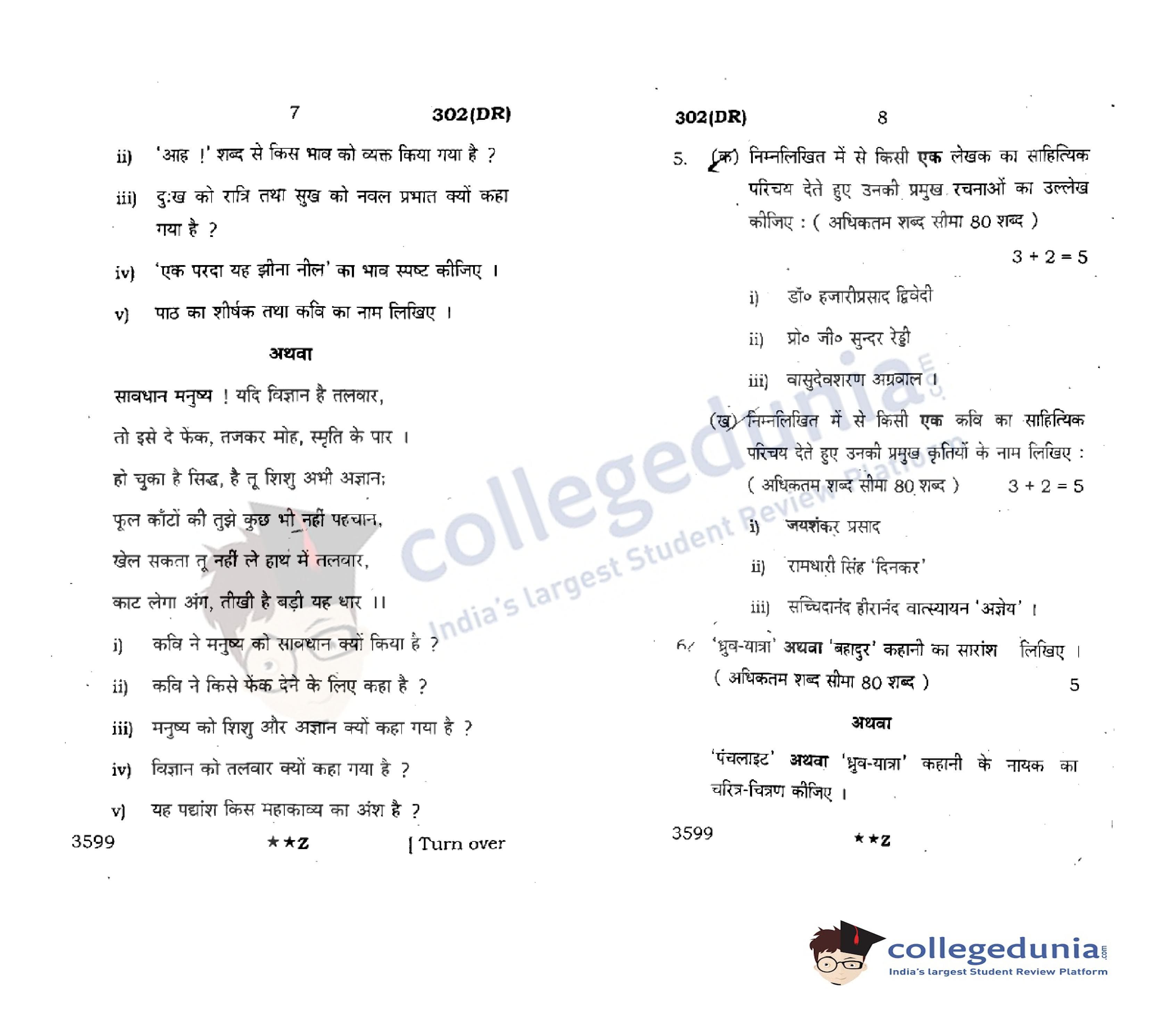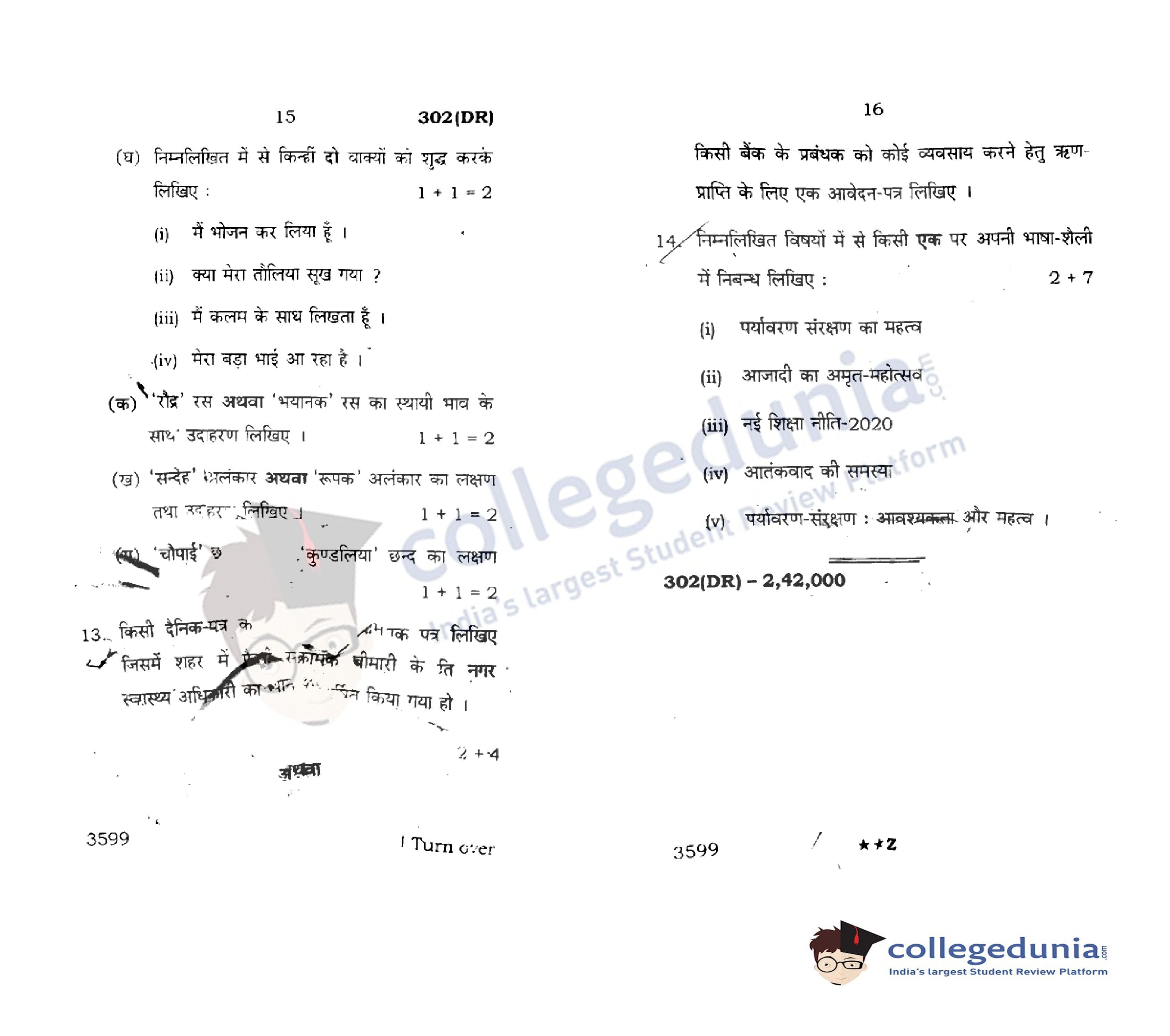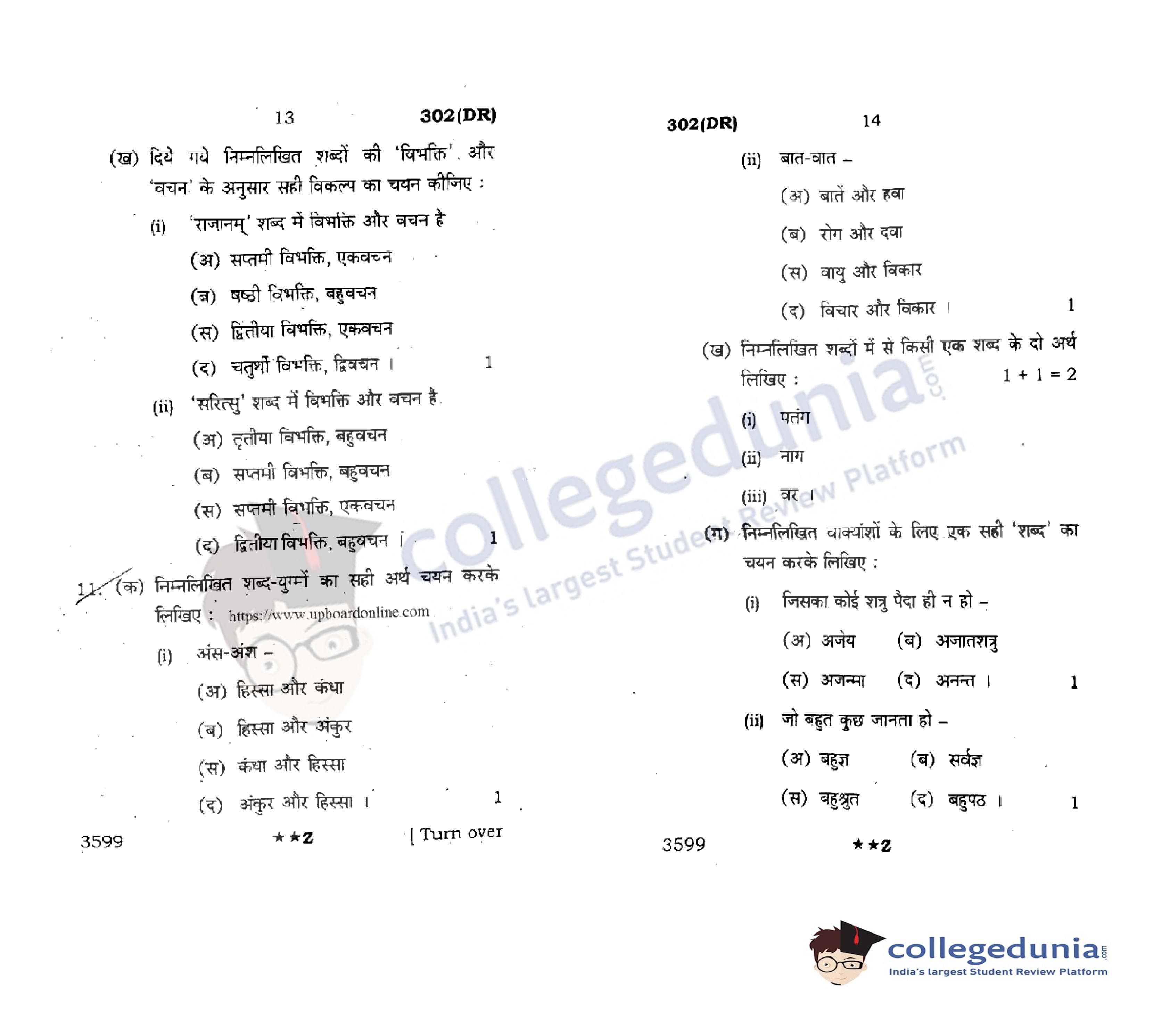 UP Board Class 12 Hindi General Question Paper 2022 with Answer Key Code 302(DR) is available for download. The exam was conducted by the Uttar Pradesh Madhyamik Shiksha Parishad (UPMSP) on March 24, 2022 in the Afternoon Session 2 PM to 5:15 PM. The medium of paper was Hindi. The question paper comprised a total of 14 questions.