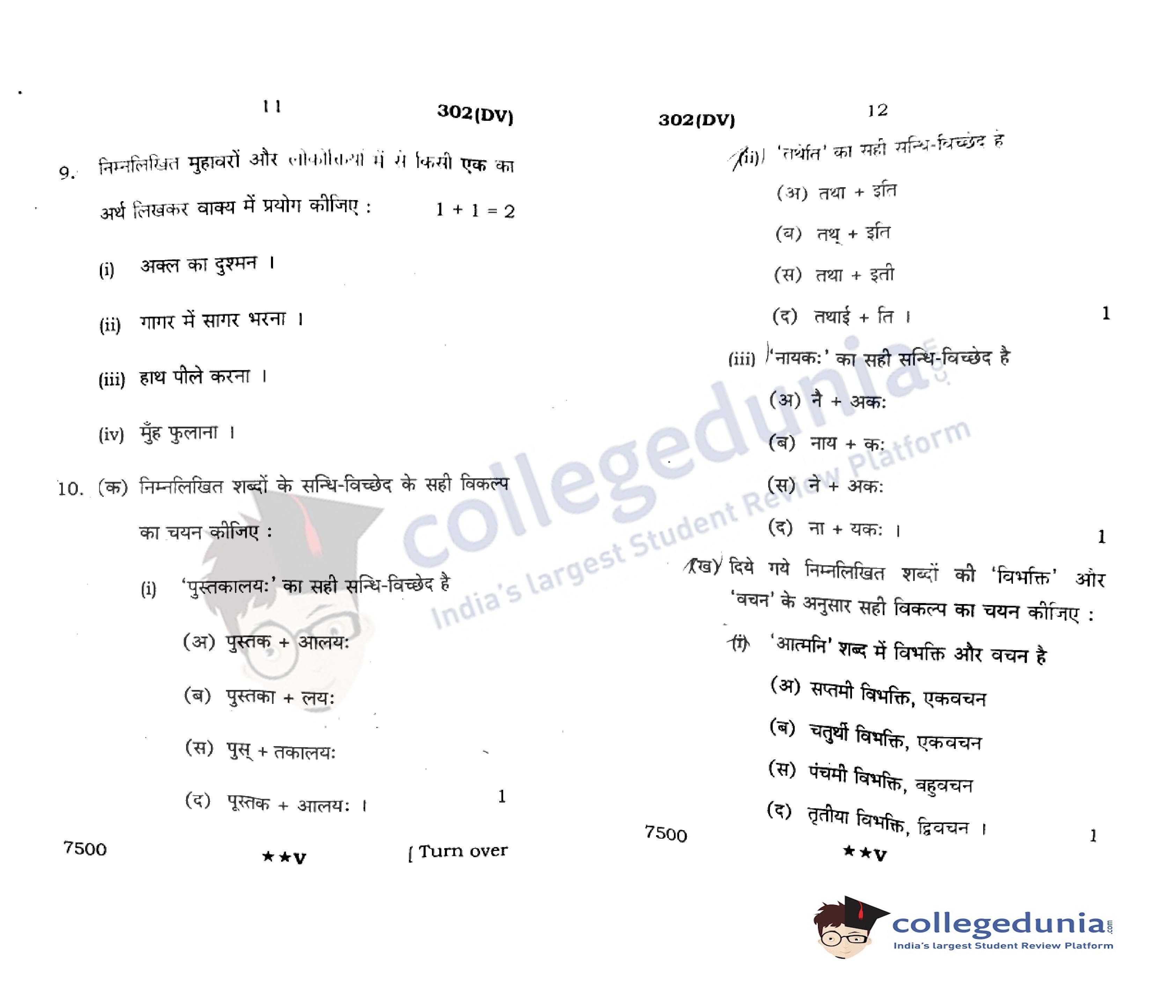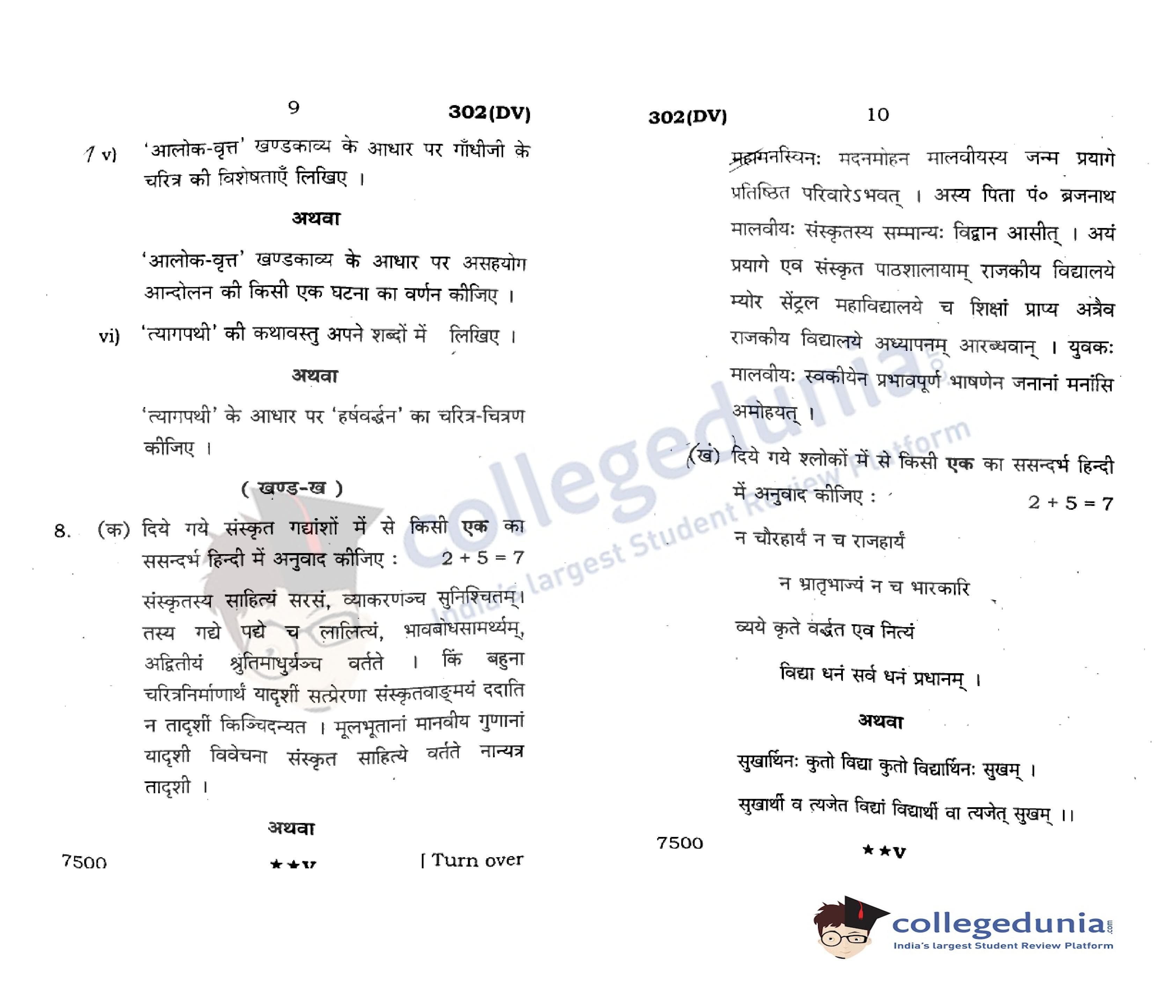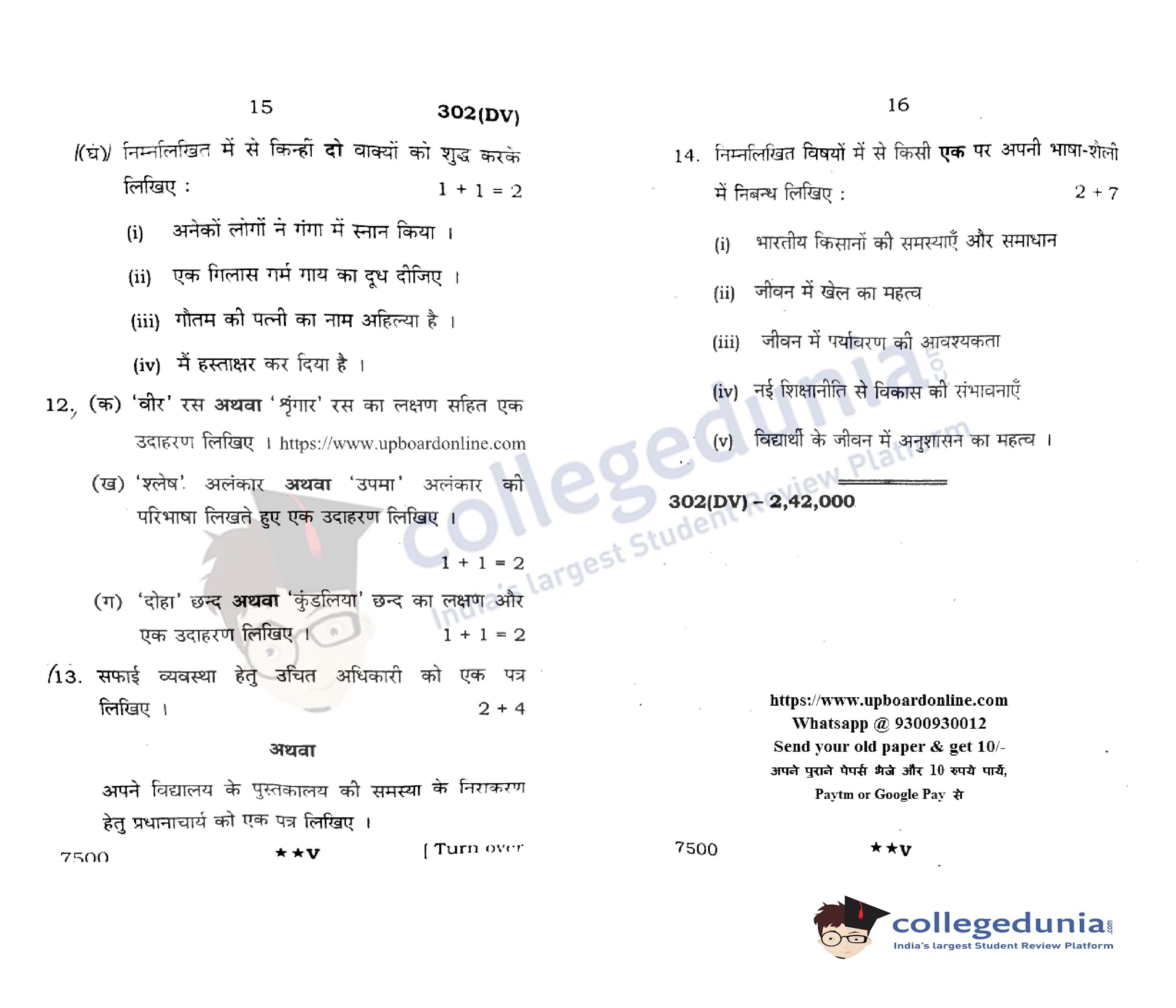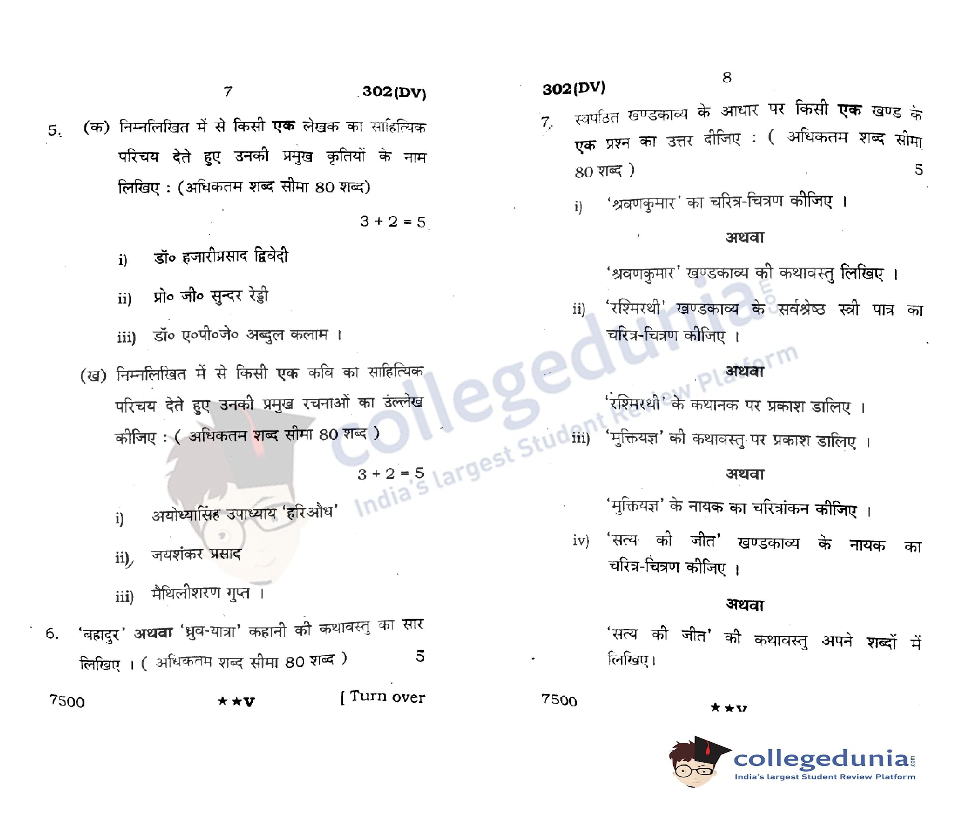 UP Board Class 12 Hindi General Code 302(DV) Question Paper 2022 with Answer Key (March 24)