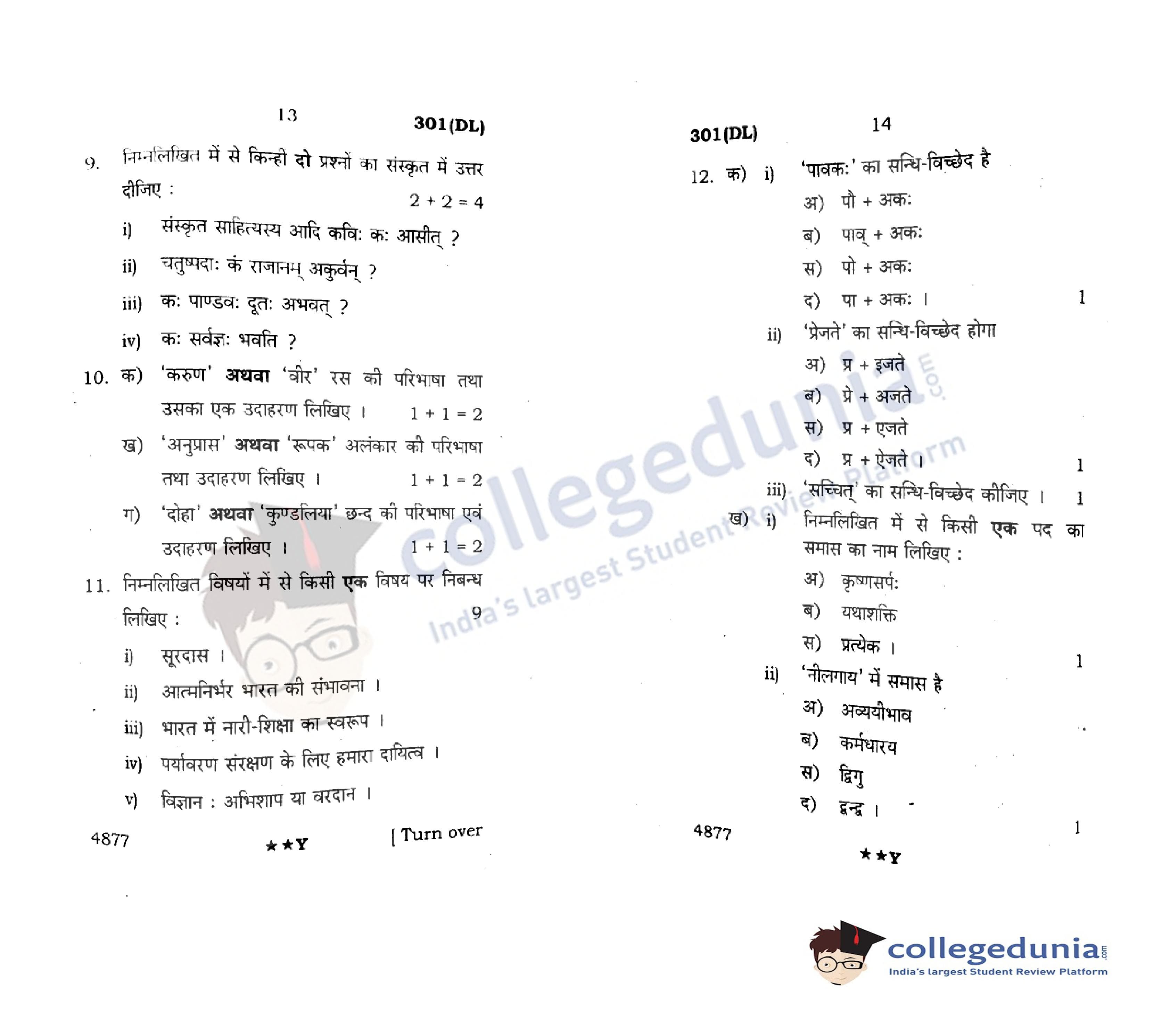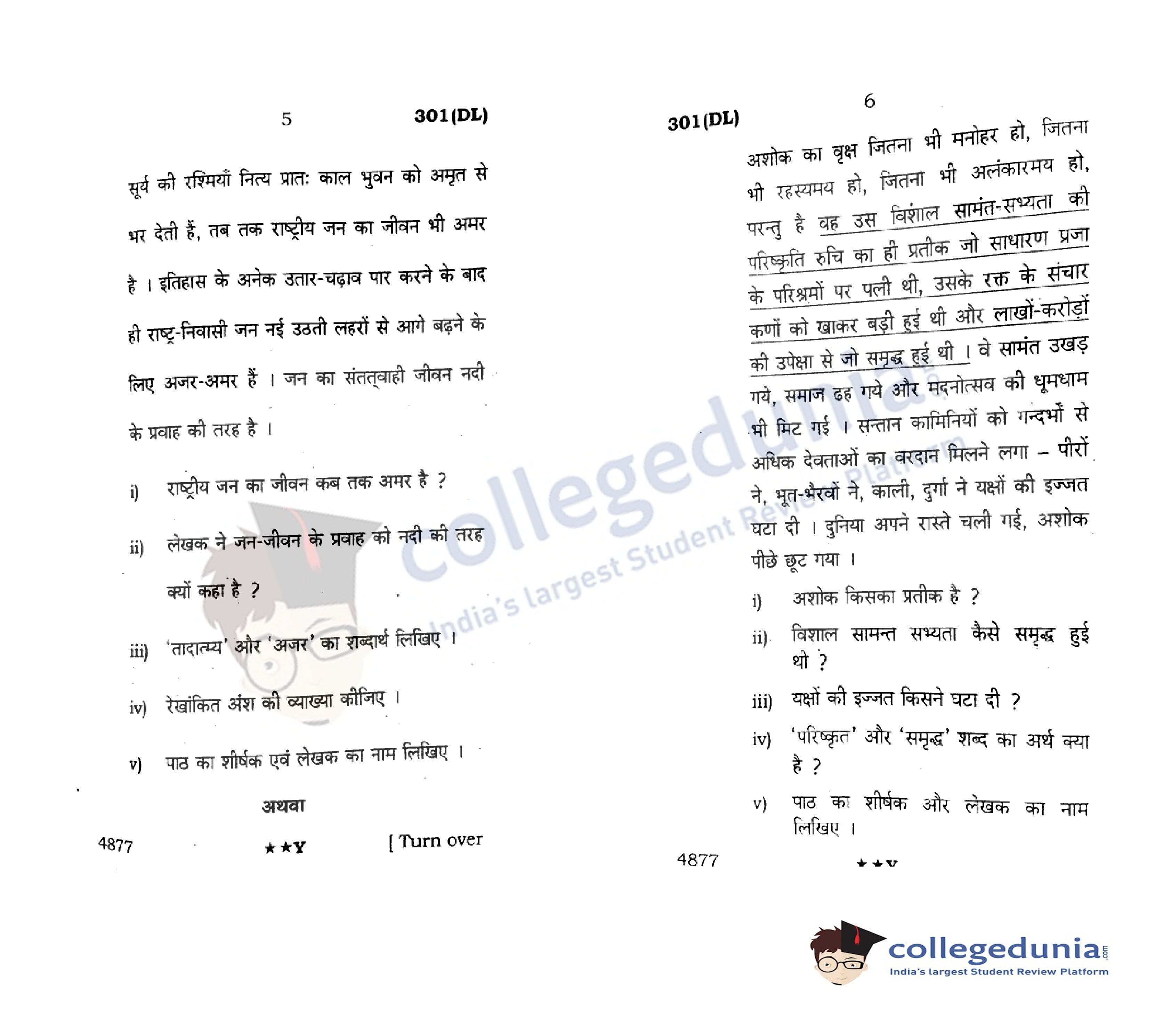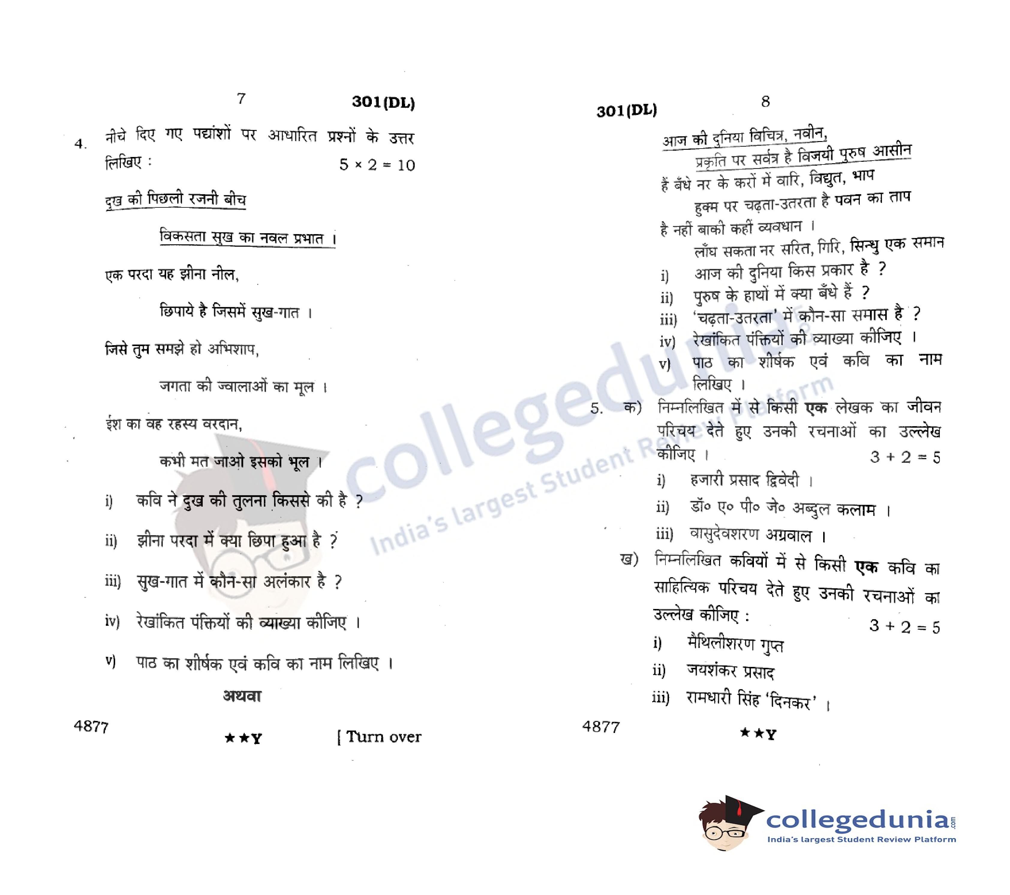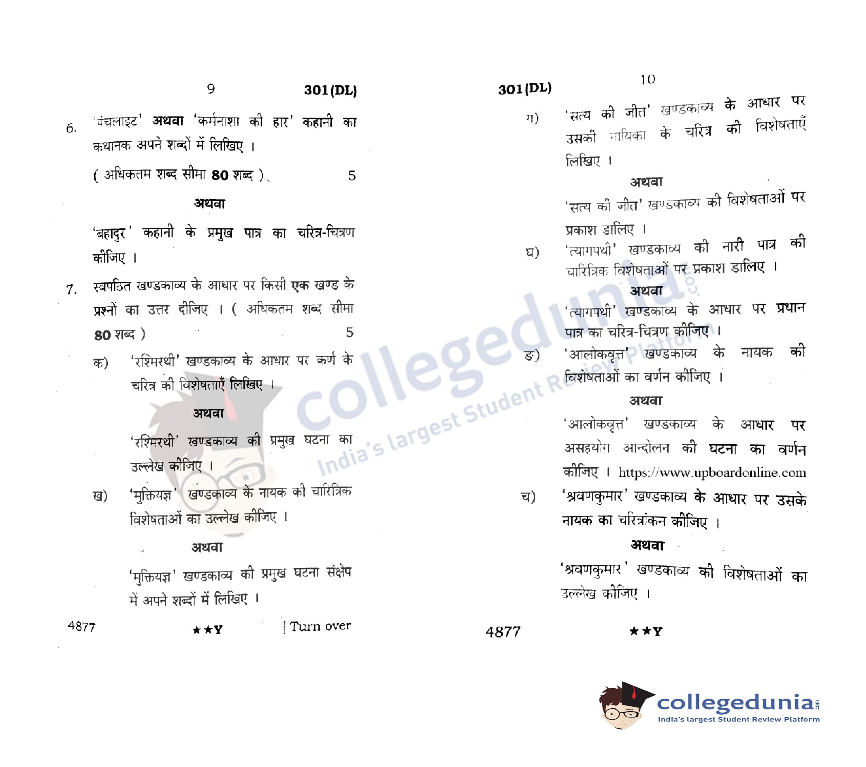 UP Board Class 12 Hindi Code 301(DL) Question Paper 2022 with Answer Key (March 24)