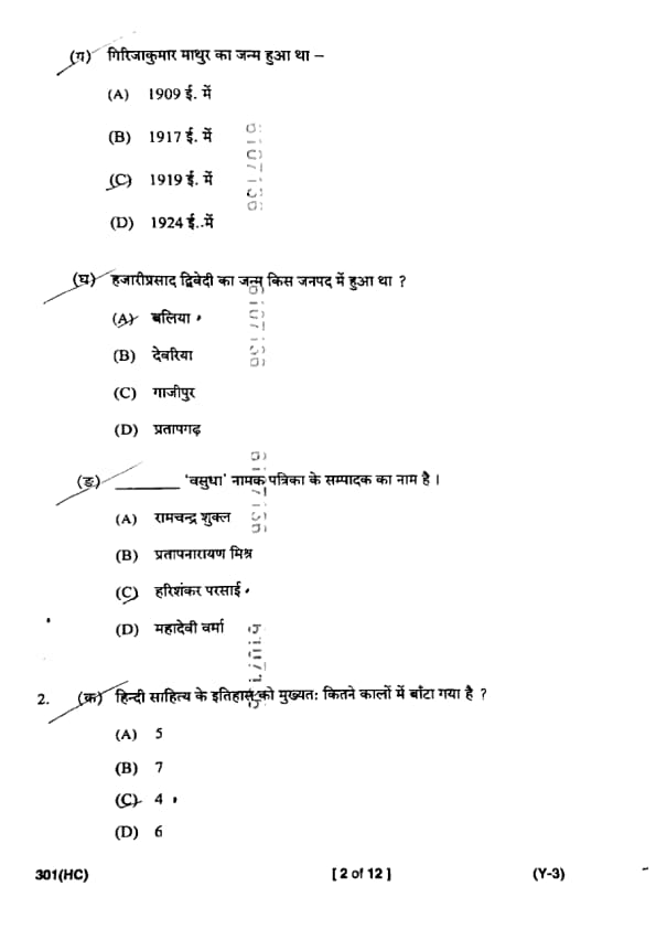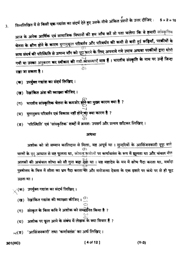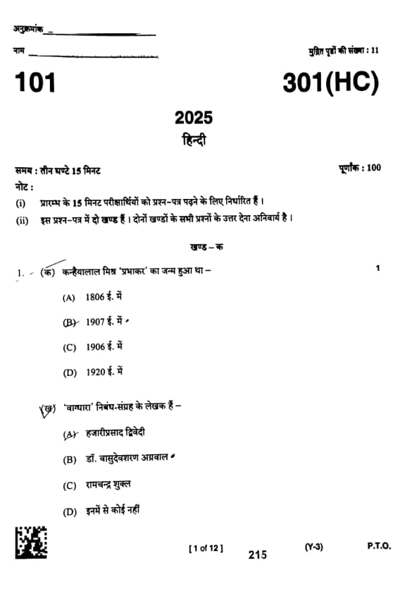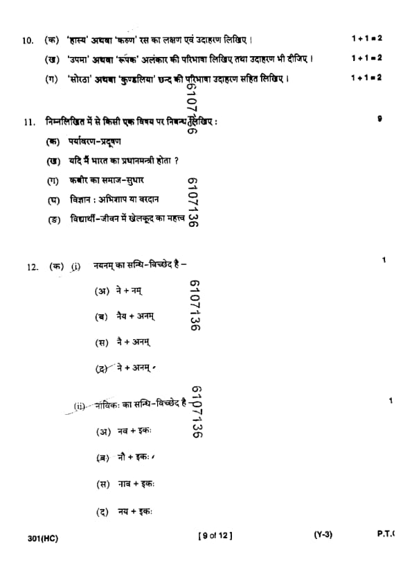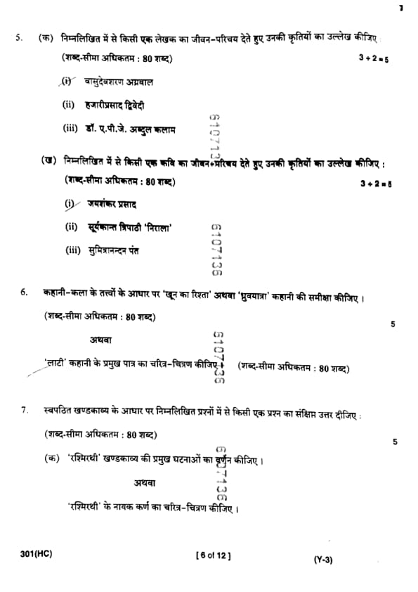 UP Board Class 12 Hindi Question Paper 2025 (Code 301 HC) with Solutions