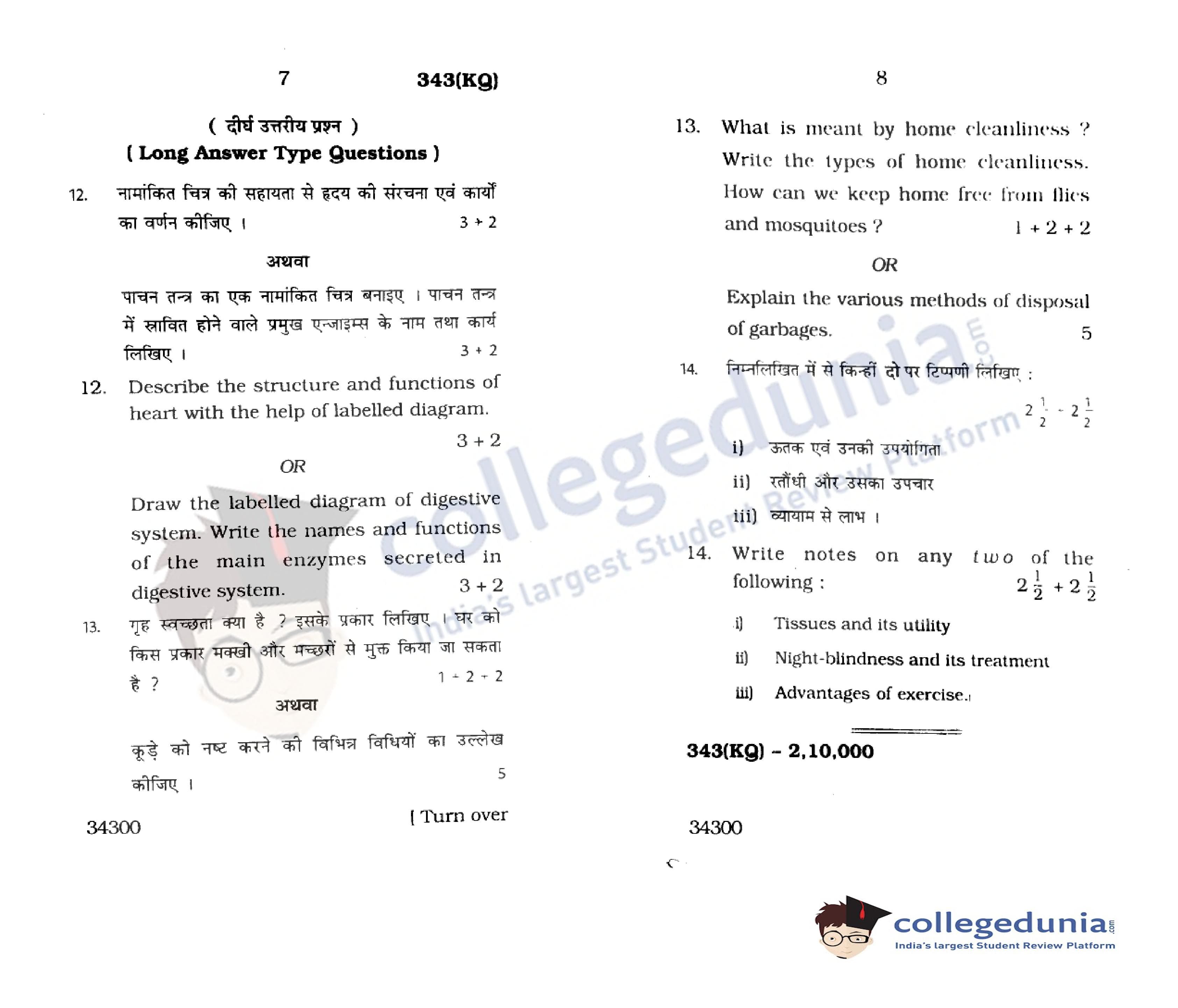 UP Board Class 12 Home Science-1 Question Paper 2015 with Answer Key Code 343(KQ) is available for download. The exam was conducted by the Uttar Pradesh Madhyamik Shiksha Parishad (UPMSP) on March 10, 2015 in the Morning Session 7:30 AM to 10:45 AM. The medium of paper was English and Hindi. The question paper comprised a total of 14 questions.
