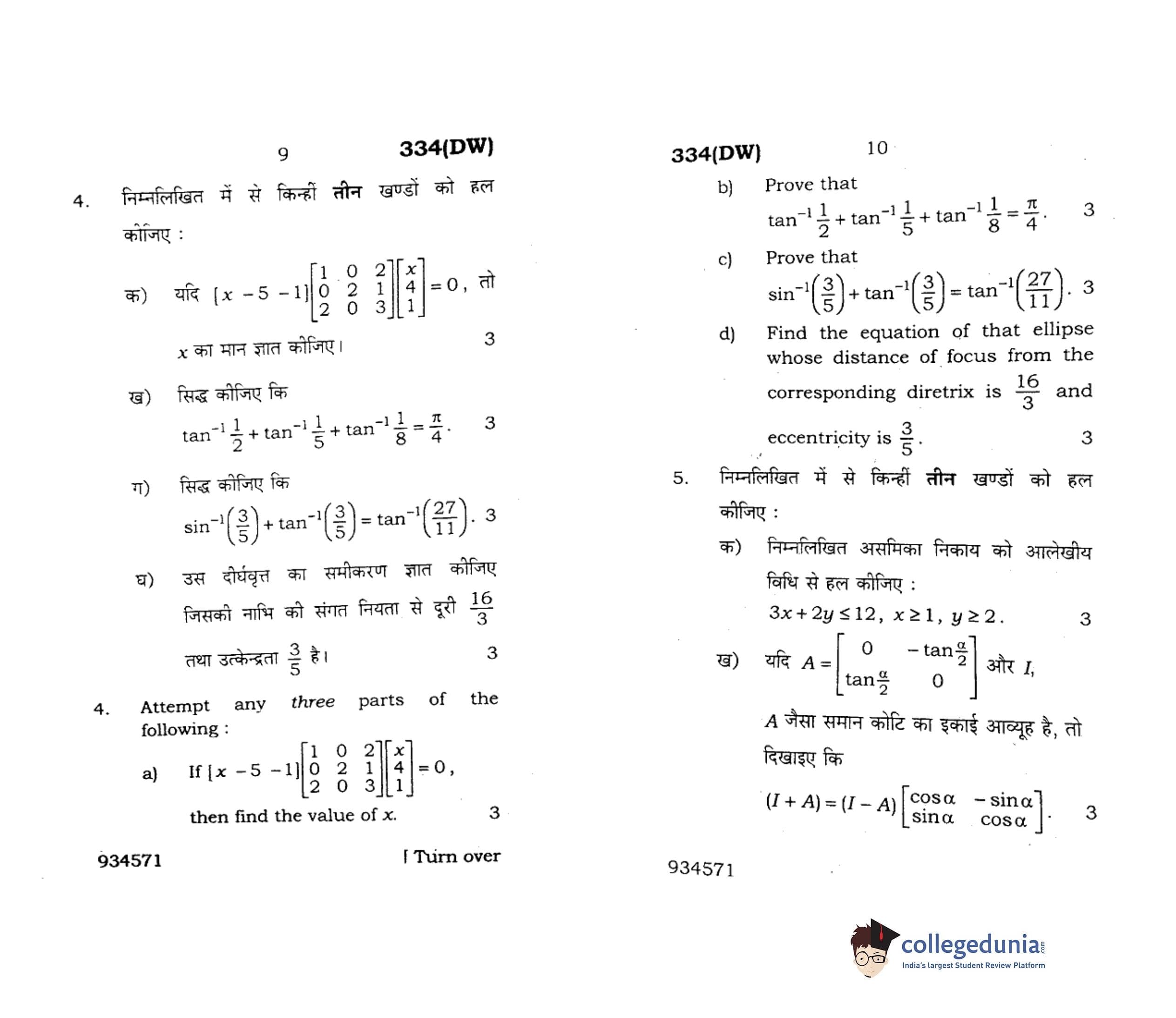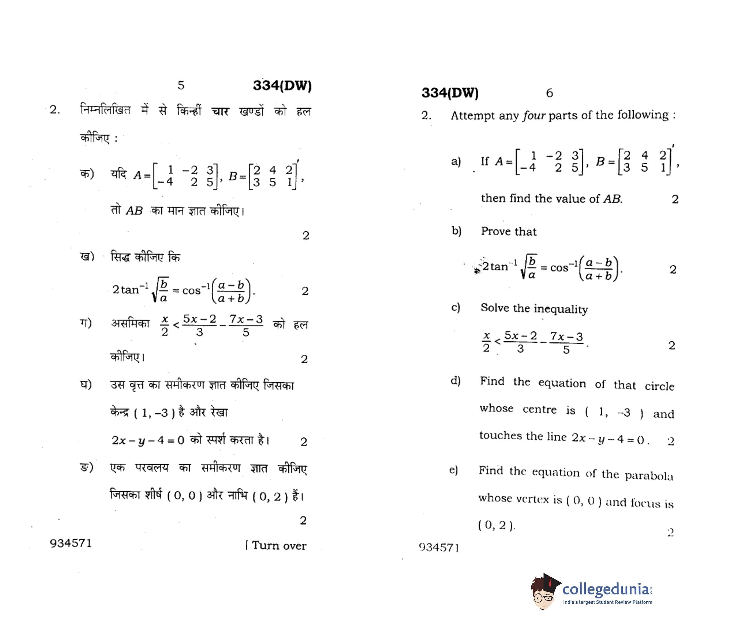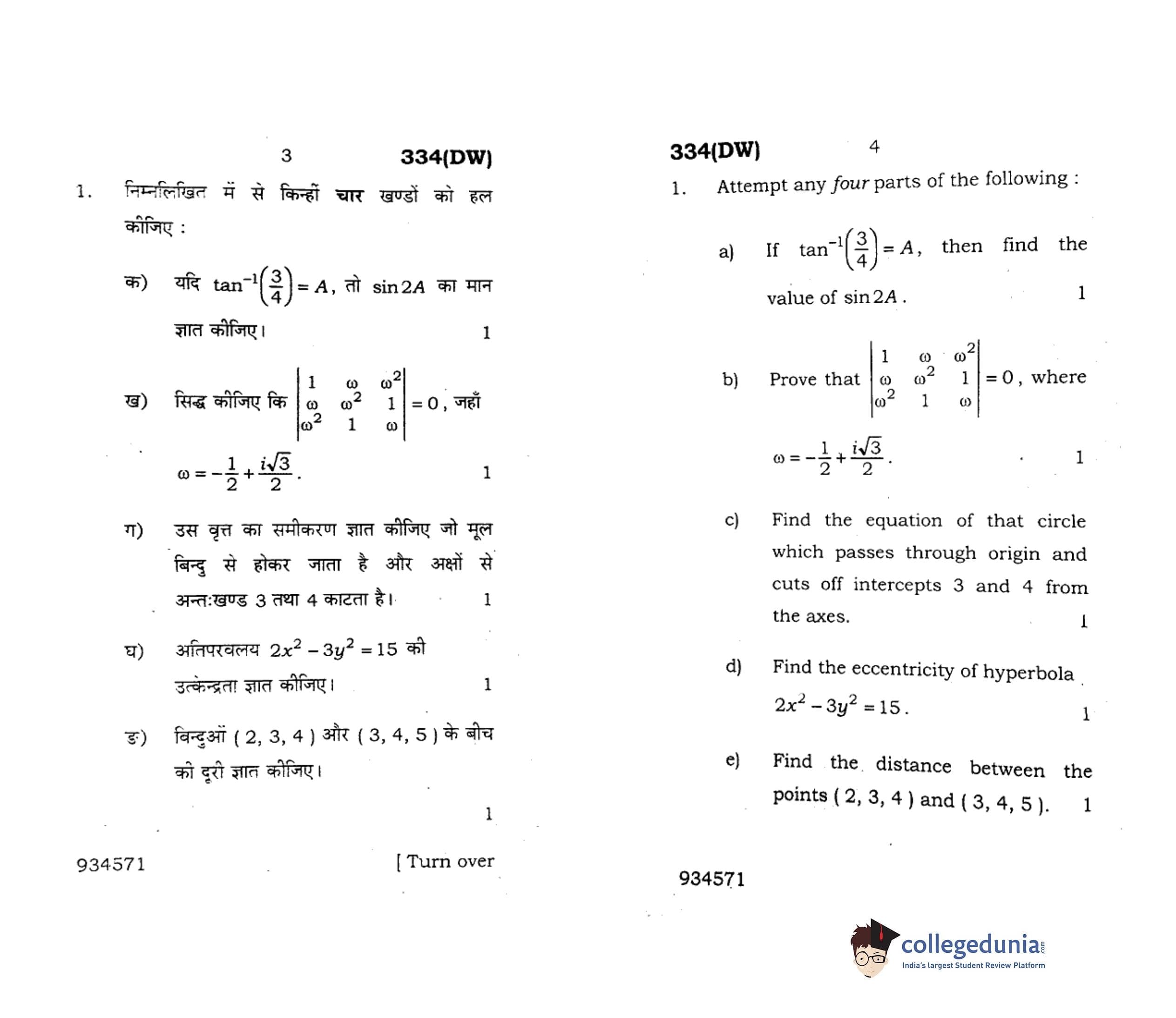 UP Board Class 12 Mathematics-1 Question Paper 2018 with Answer Key Code 334(DW) is available for download. The exam was conducted by the Uttar Pradesh Madhyamik Shiksha Parishad (UPMSP) on February 9, 2018 in the Afternoon Session 2 PM to 5:15 PM. The medium of paper was English and Hindi. The question paper comprised a total of 8 questions.