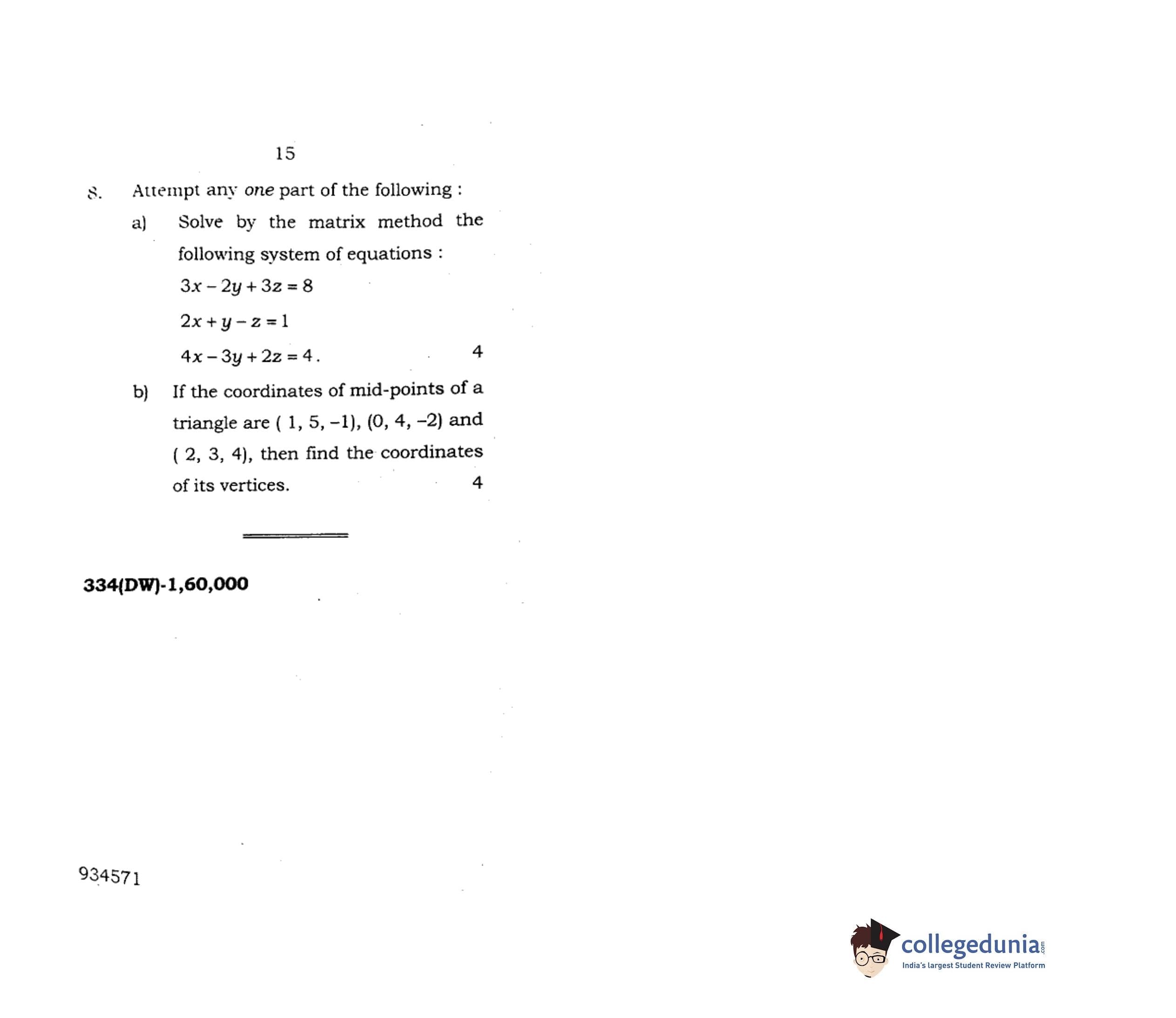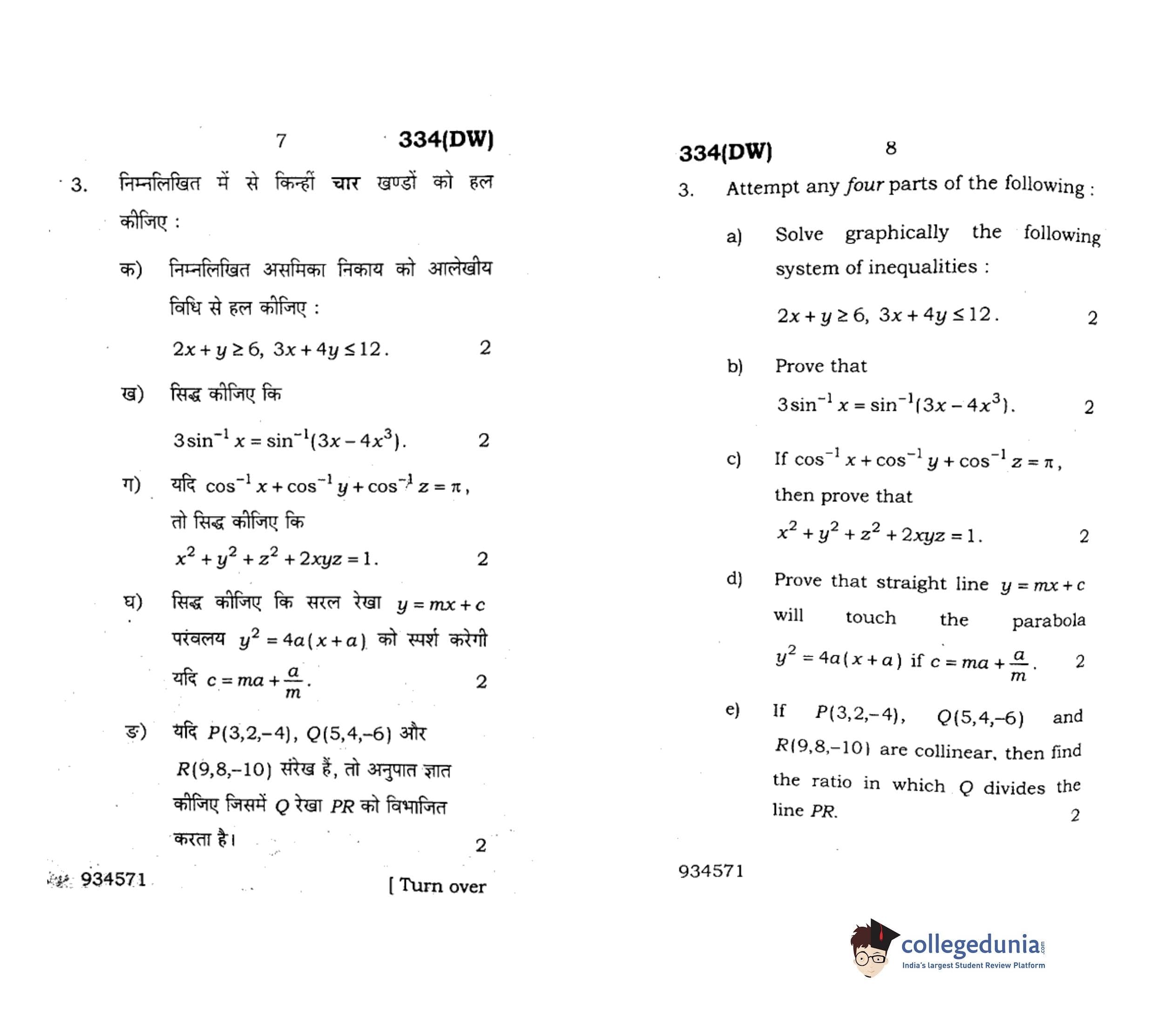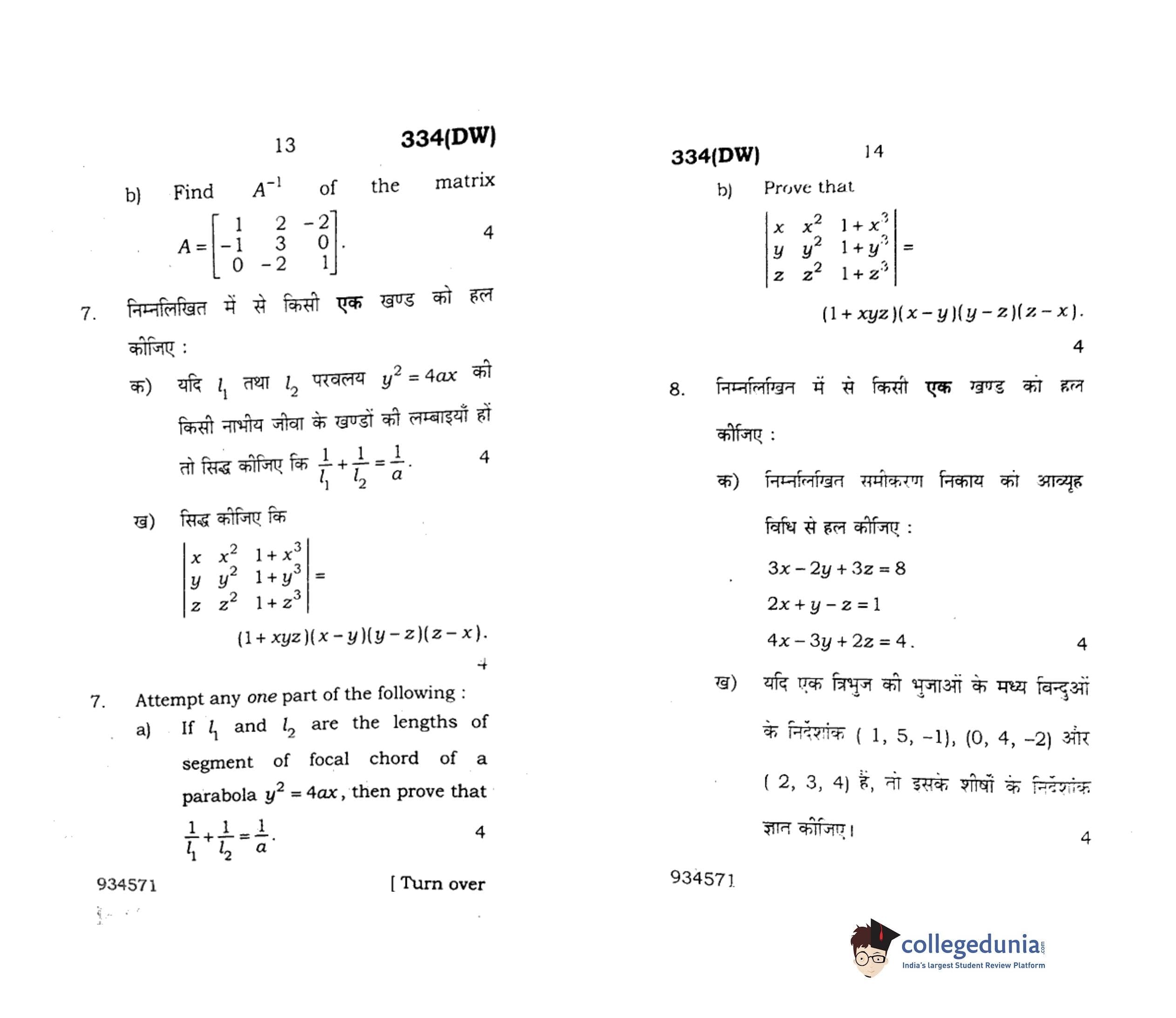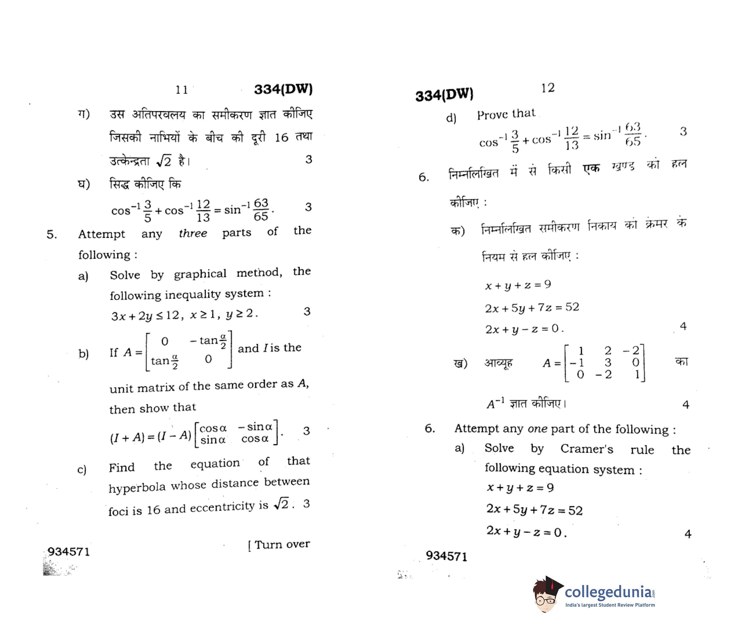UP Board Class 12 Mathematics-1 Question Paper 2018 with Answer Key Code 334(DW) is available for download. The exam was conducted by the Uttar Pradesh Madhyamik Shiksha Parishad (UPMSP) on February 9, 2018 in the Afternoon Session 2 PM to 5:15 PM. The medium of paper was English and Hindi. The question paper comprised a total of 8 questions.