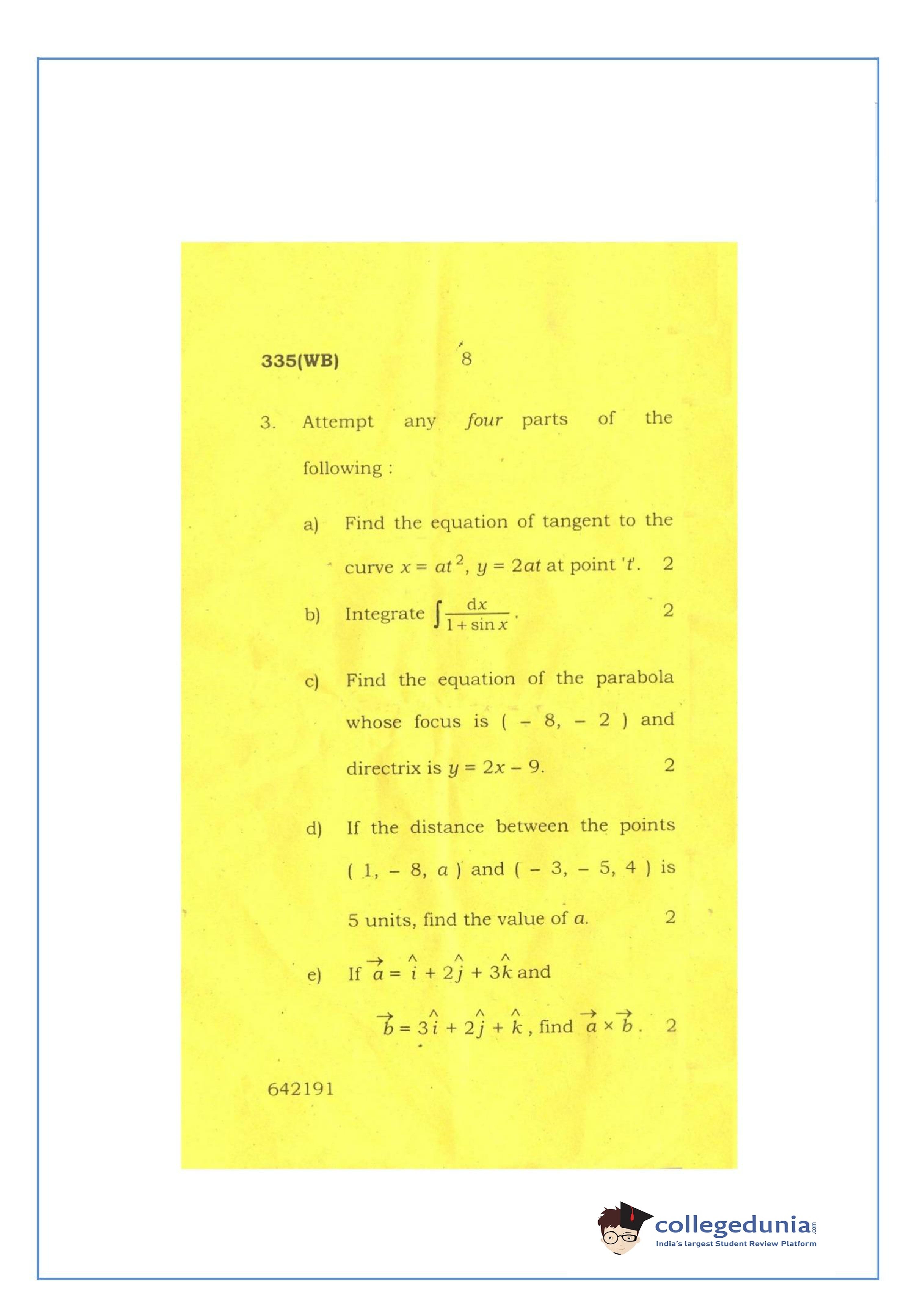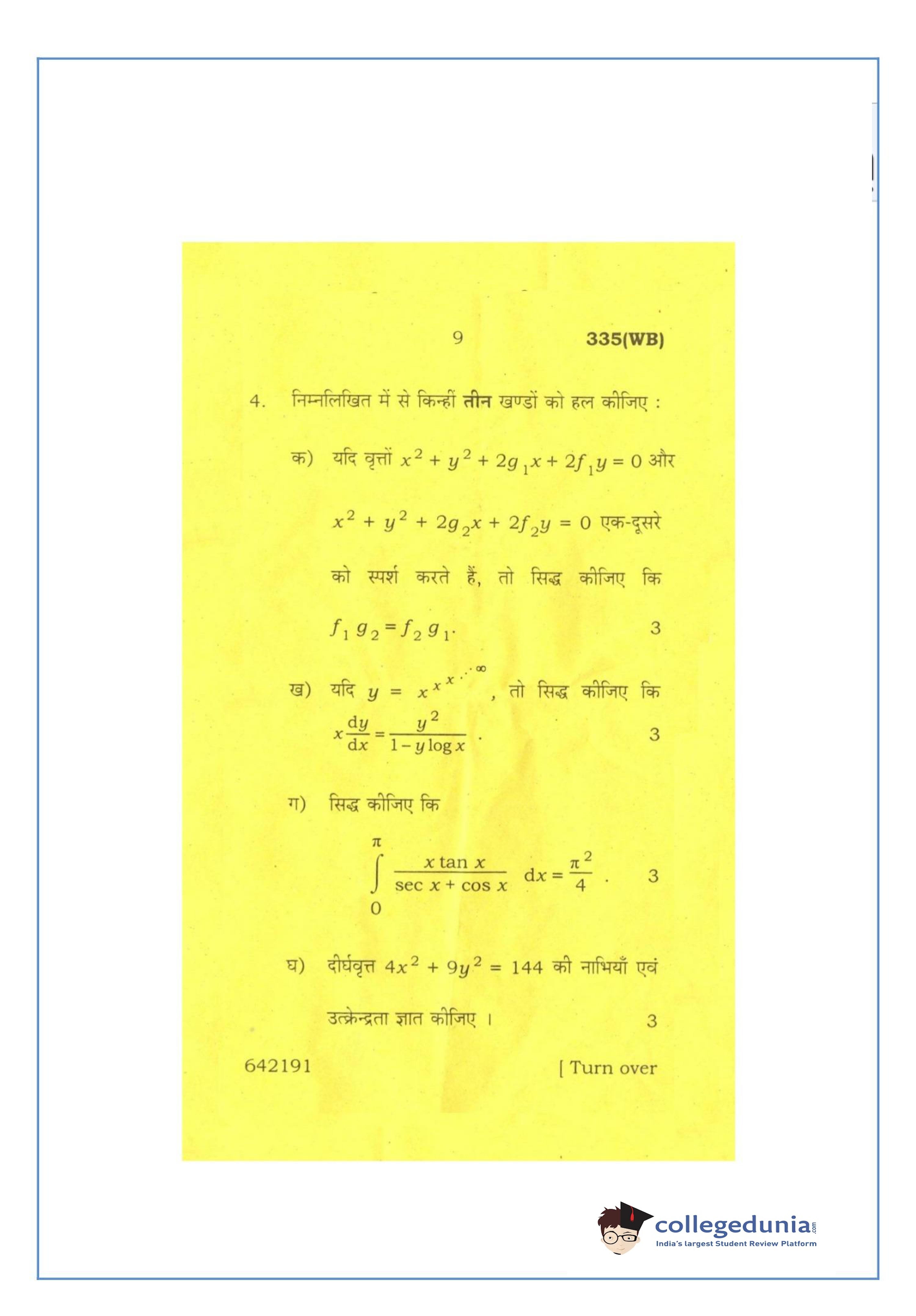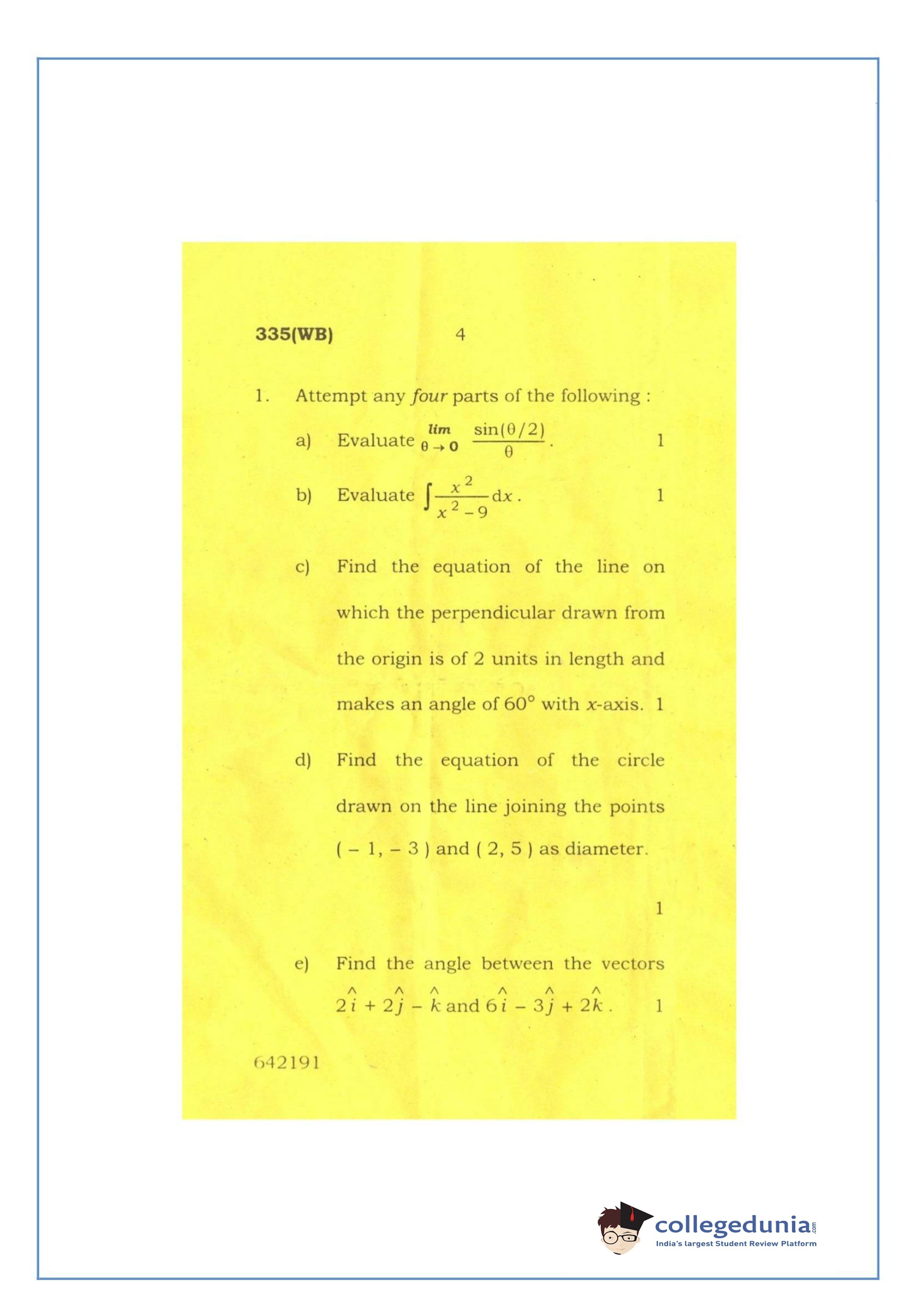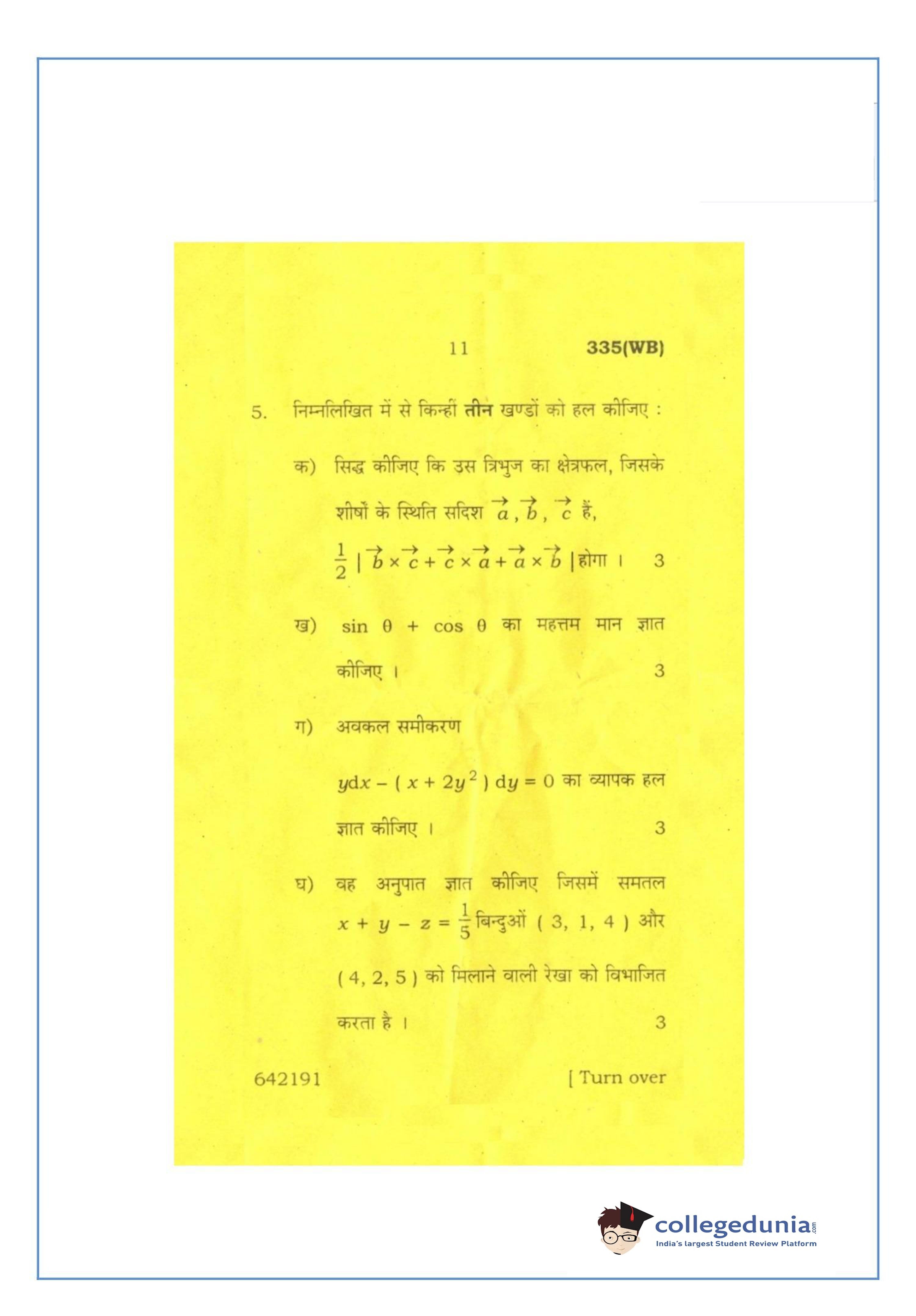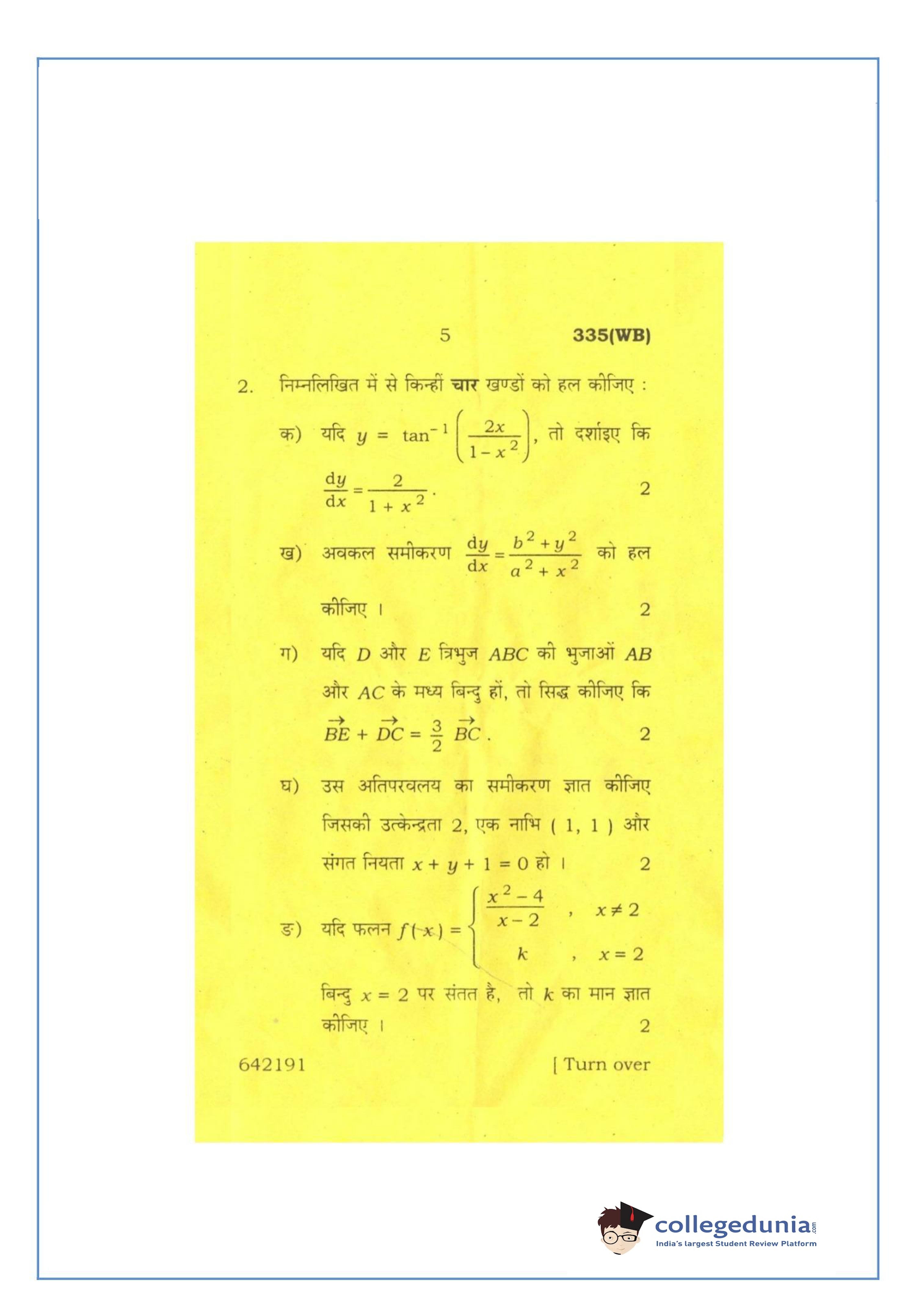 UP Board Class 12 Mathematics-2 Question Paper 2016 with Answer Key Code 335(WB) is available for download. The exam was conducted by the Uttar Pradesh Madhyamik Shiksha Parishad (UPMSP) on March 12, 2016 in the Afternoon Session 2 PM to 5:15 PM. The medium of paper was English and Hindi. The question paper comprised a total of 8 questions.