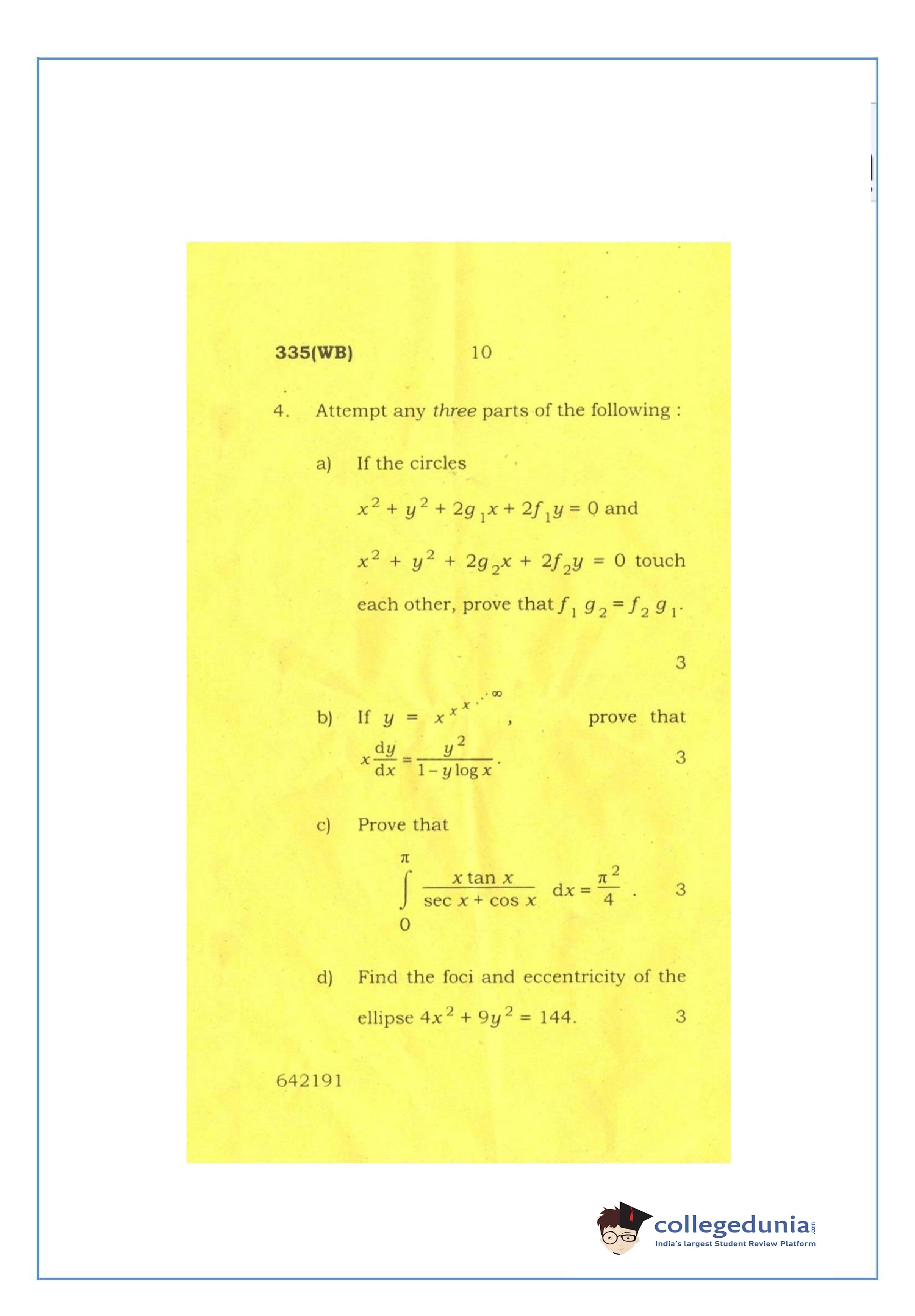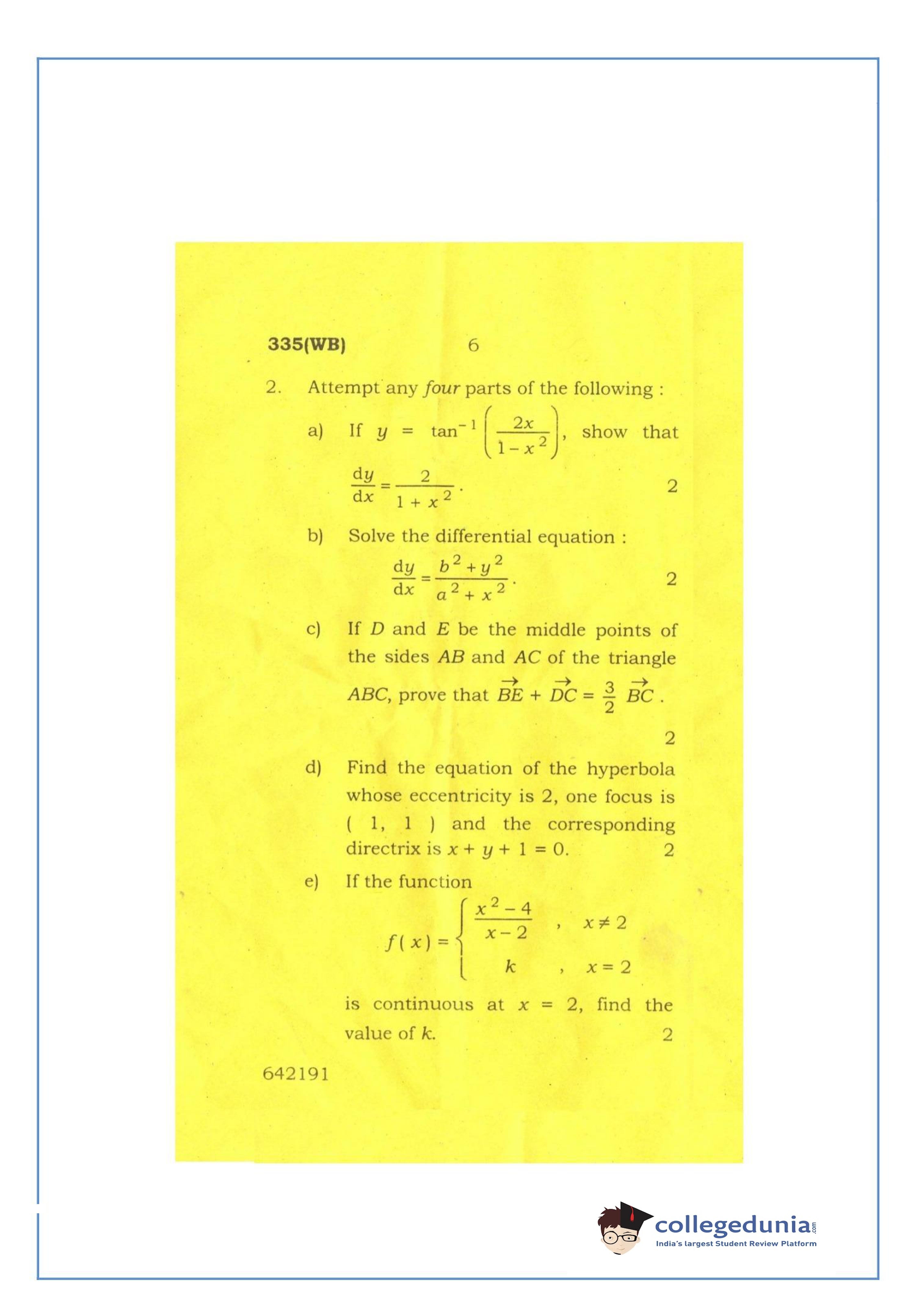 UP Board Class 12 Mathematics-2 Code 335(WB) Question Paper 2016 with Answer Key (March 12)