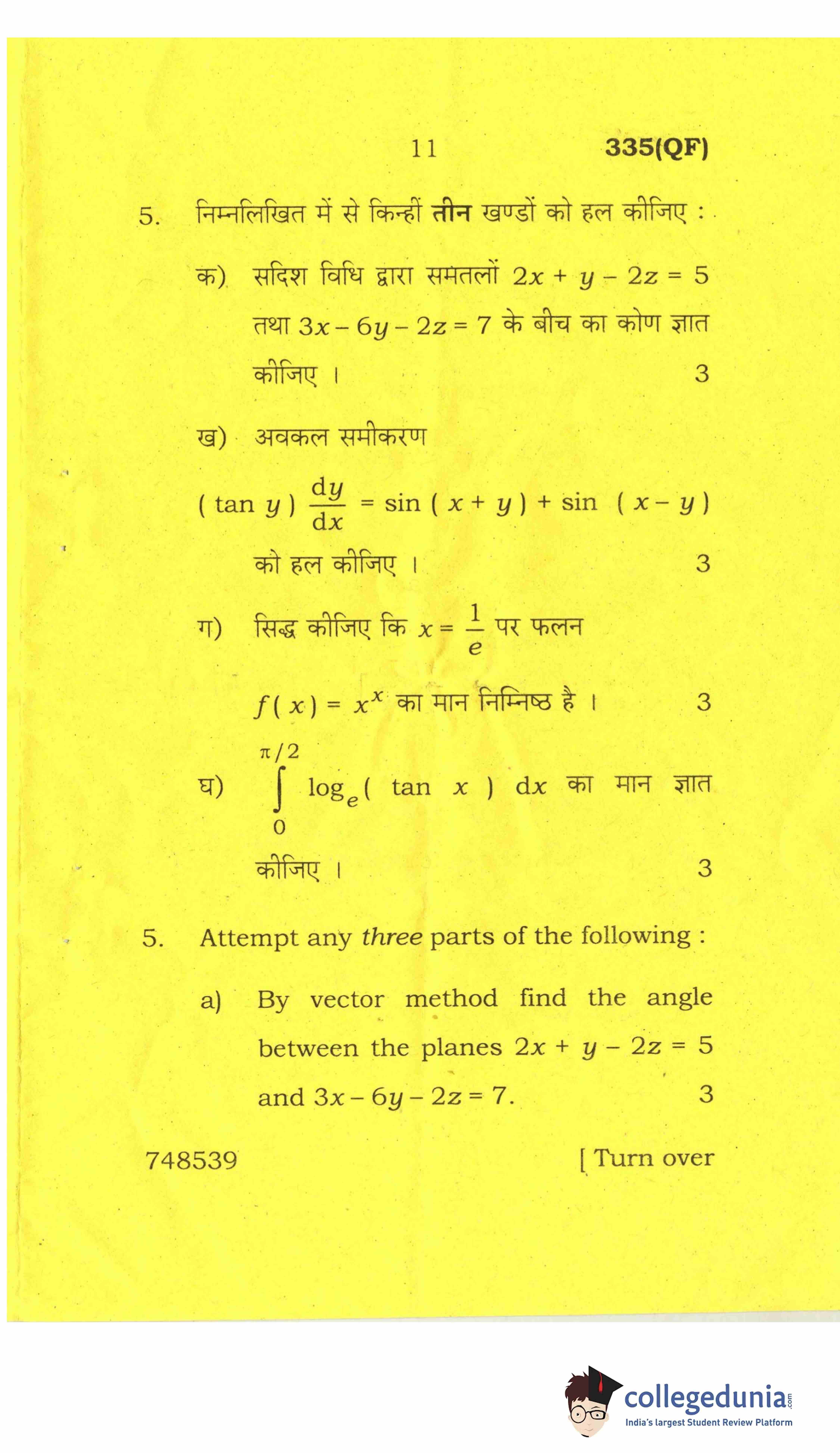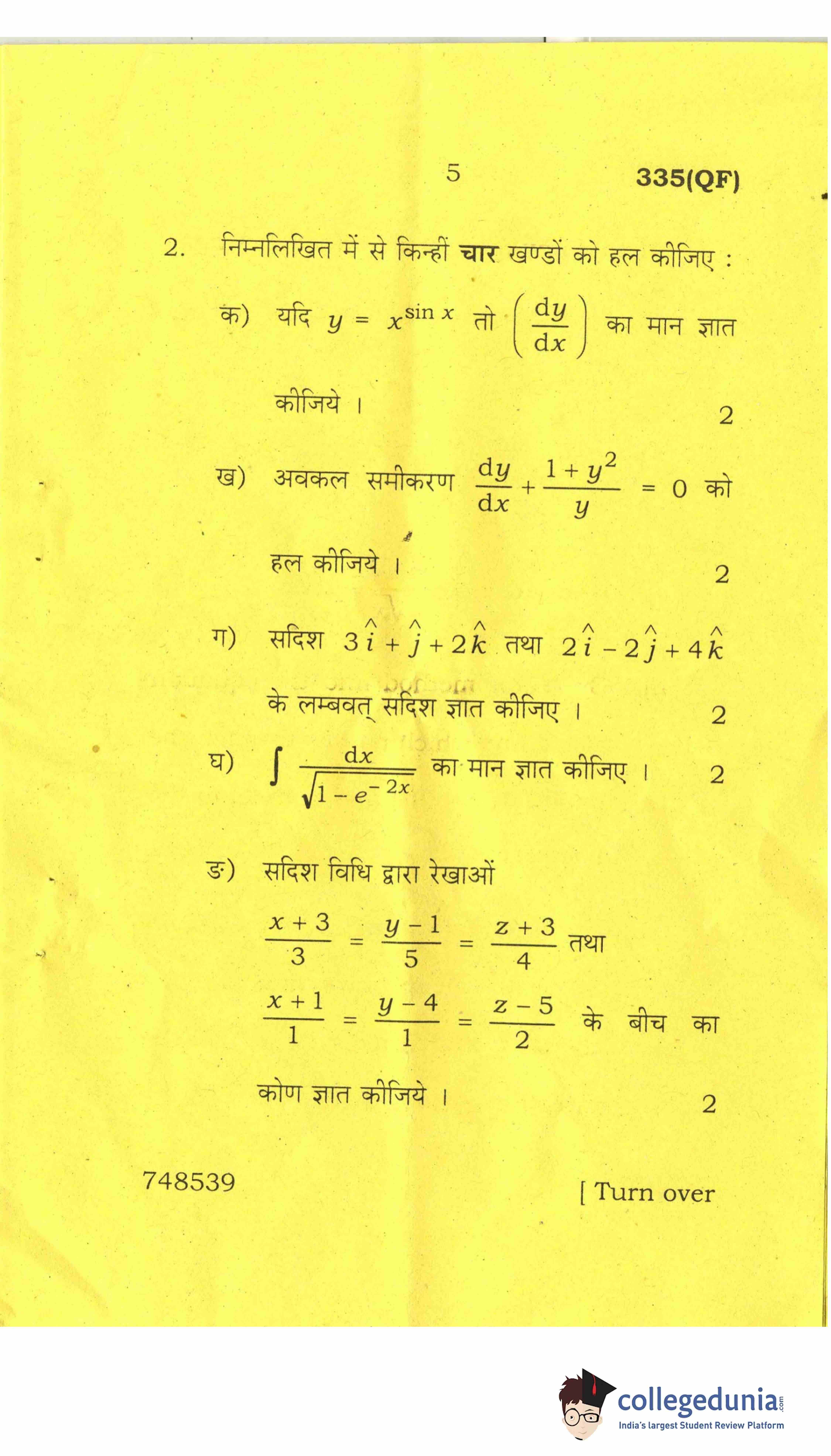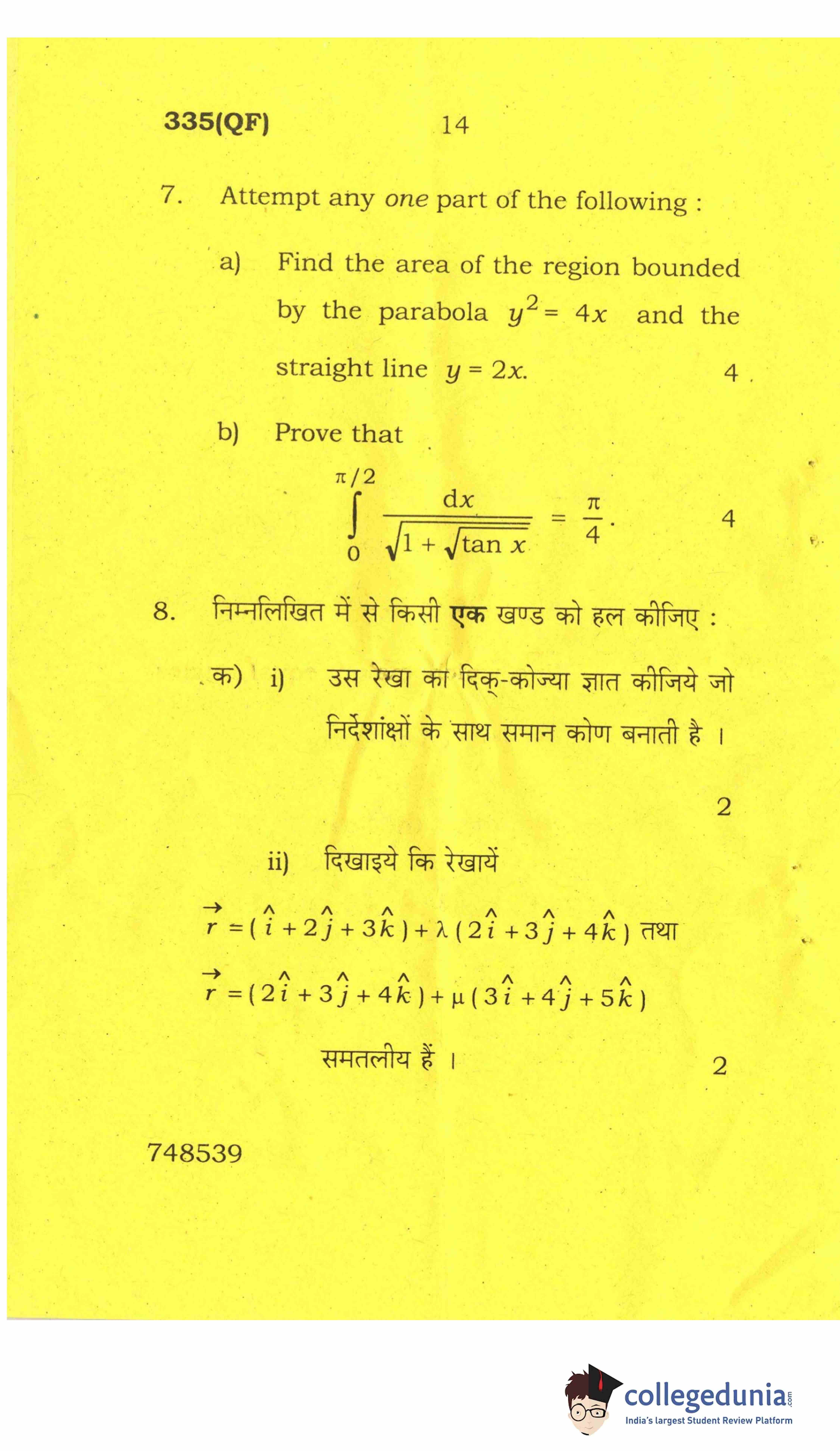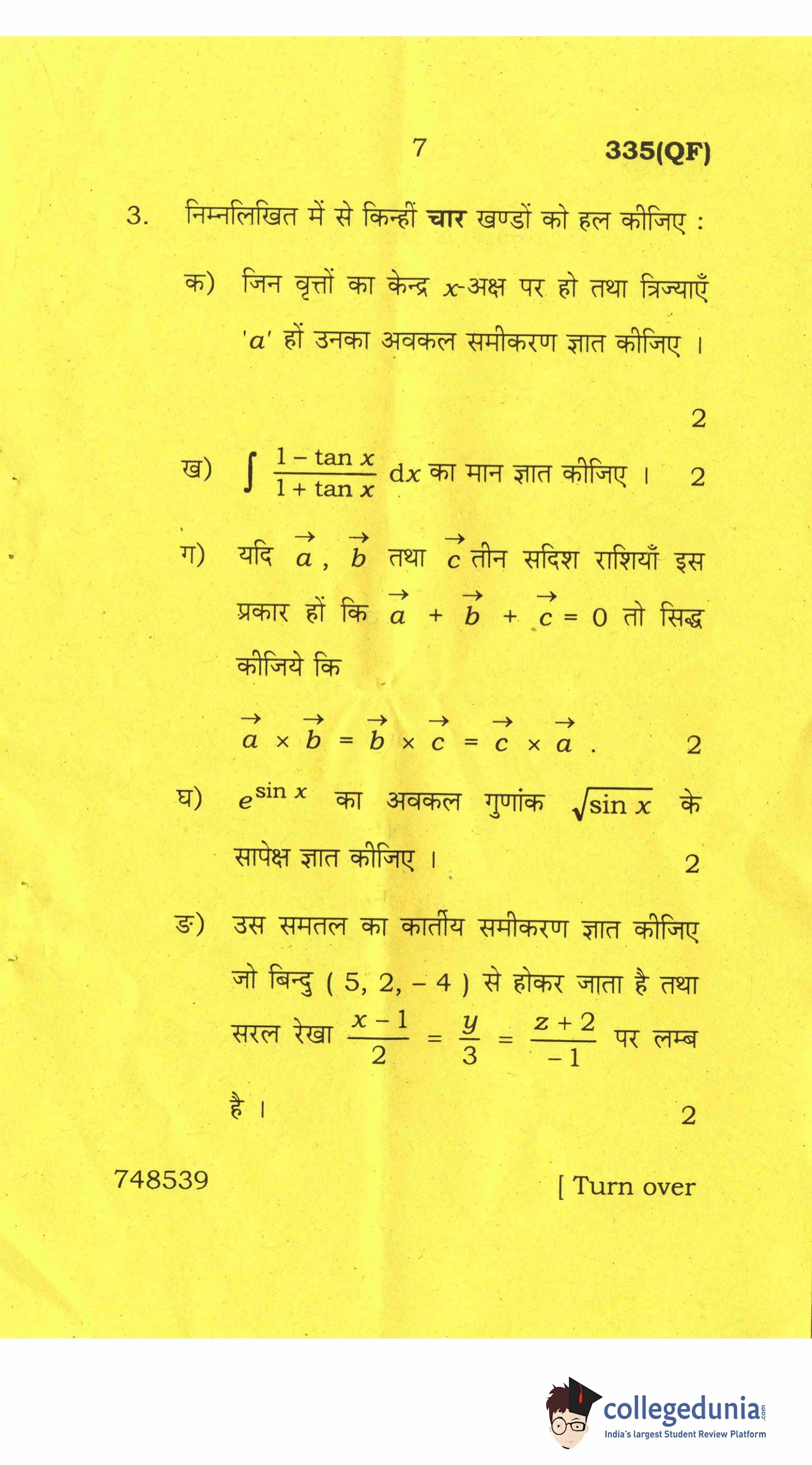 UP Board Class 12 Mathematics-2 Question Paper 2017 with Answer Key Code 335(QF) is available for download. The exam was conducted by the Uttar Pradesh Madhyamik Shiksha Parishad (UPMSP) on April 8, 2017 in the Afternoon Session 2 PM to 5:15 PM. The medium of paper was English and Hindi. The question paper comprised a total of 8 questions.