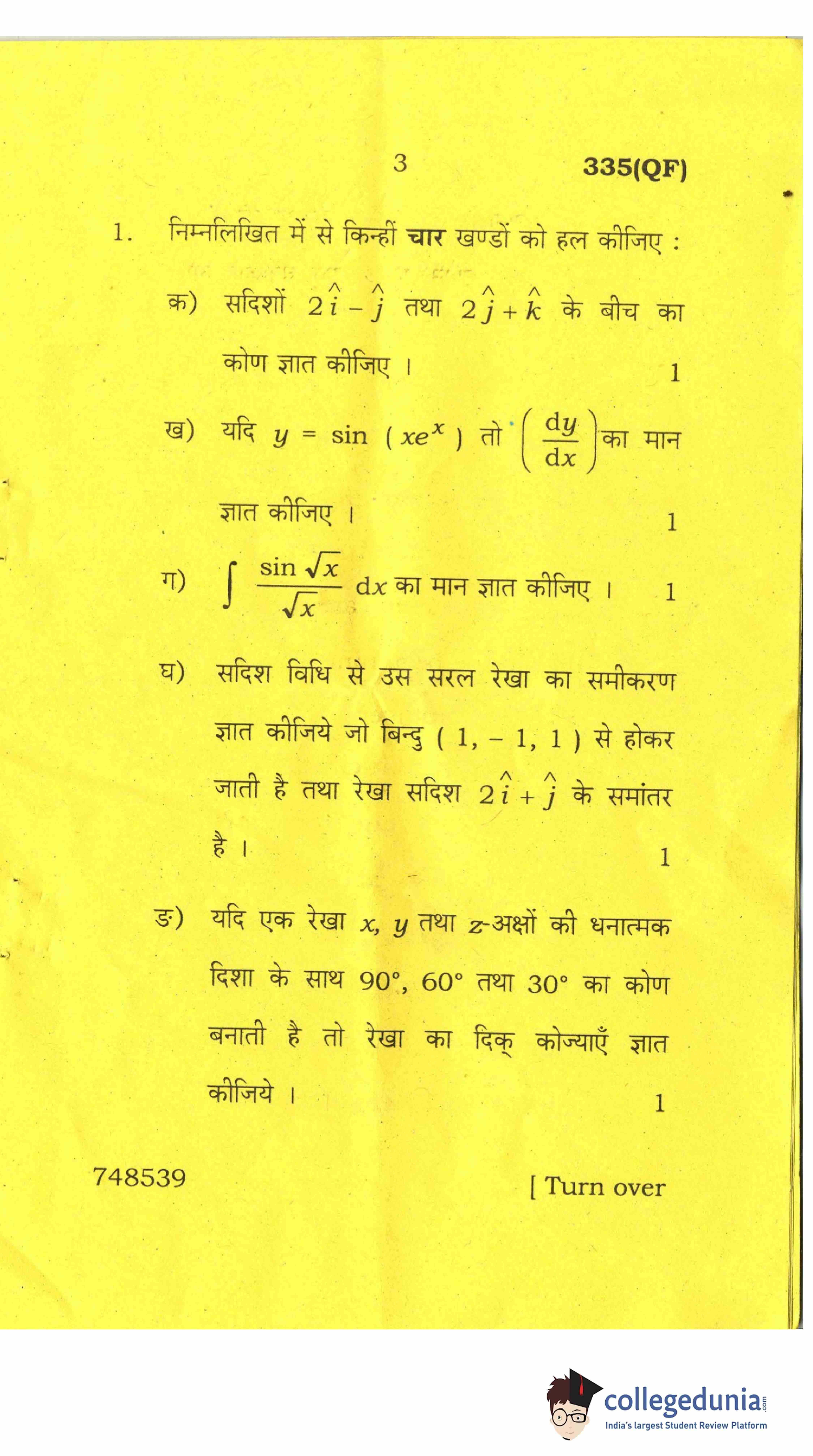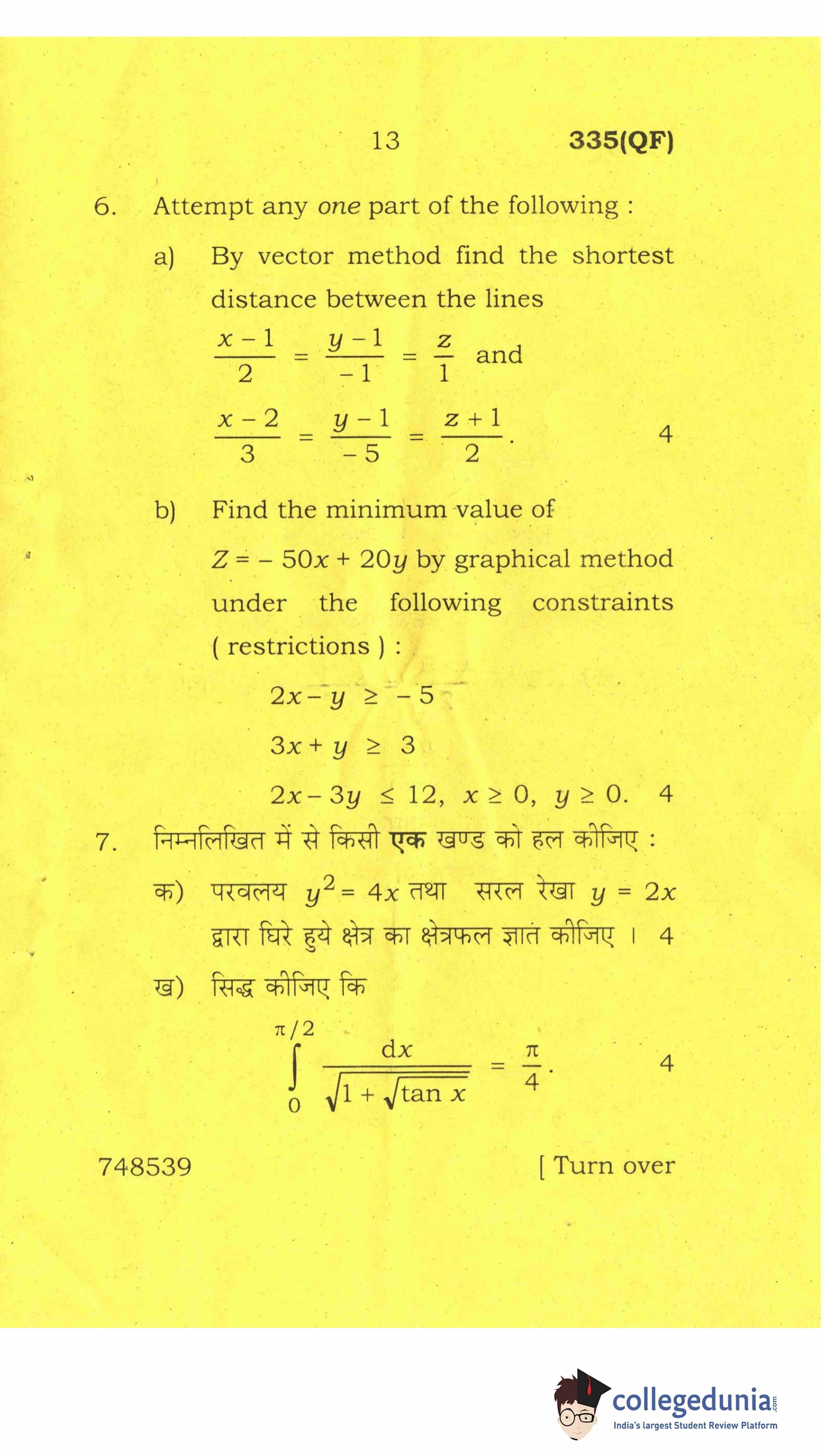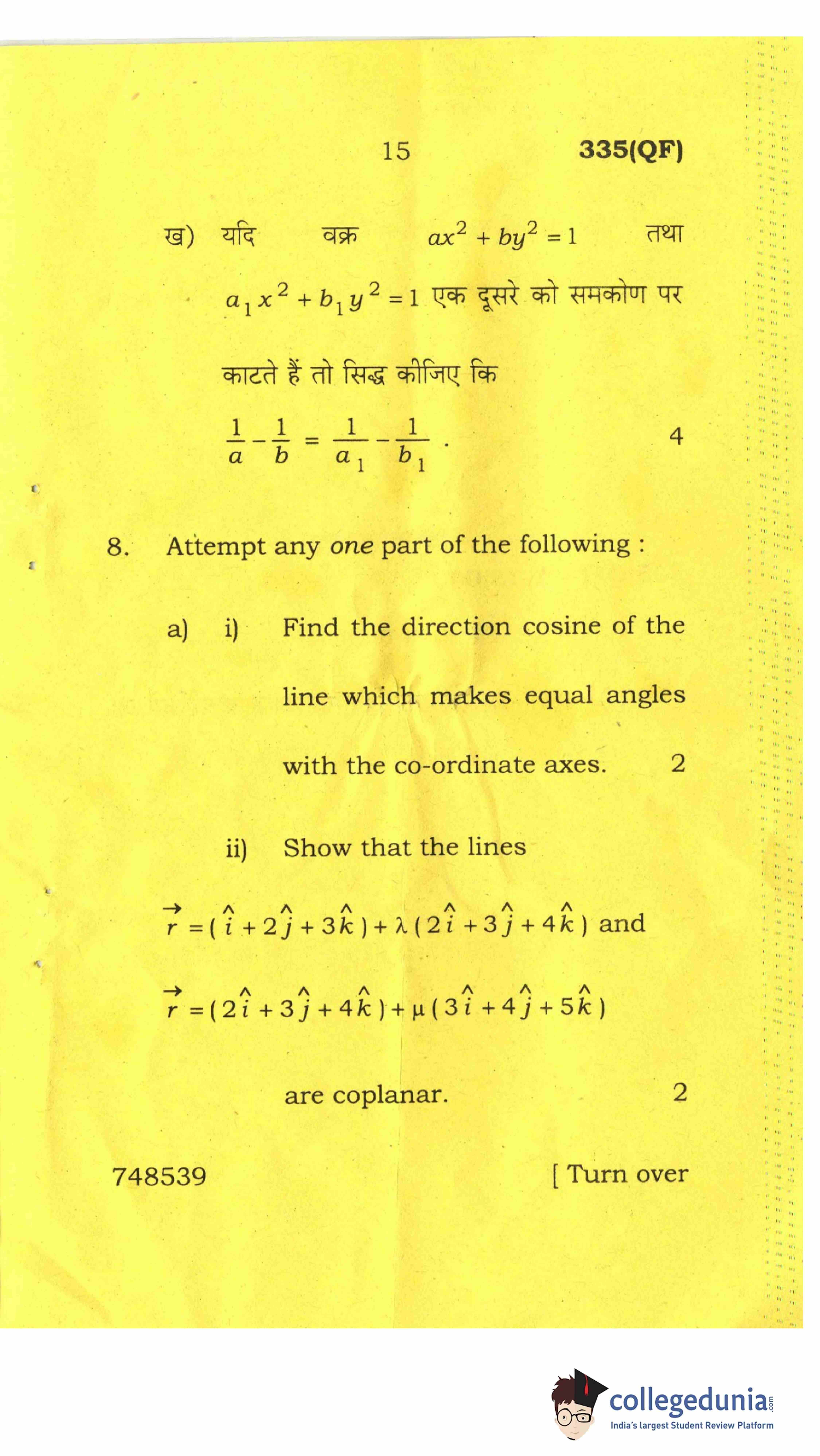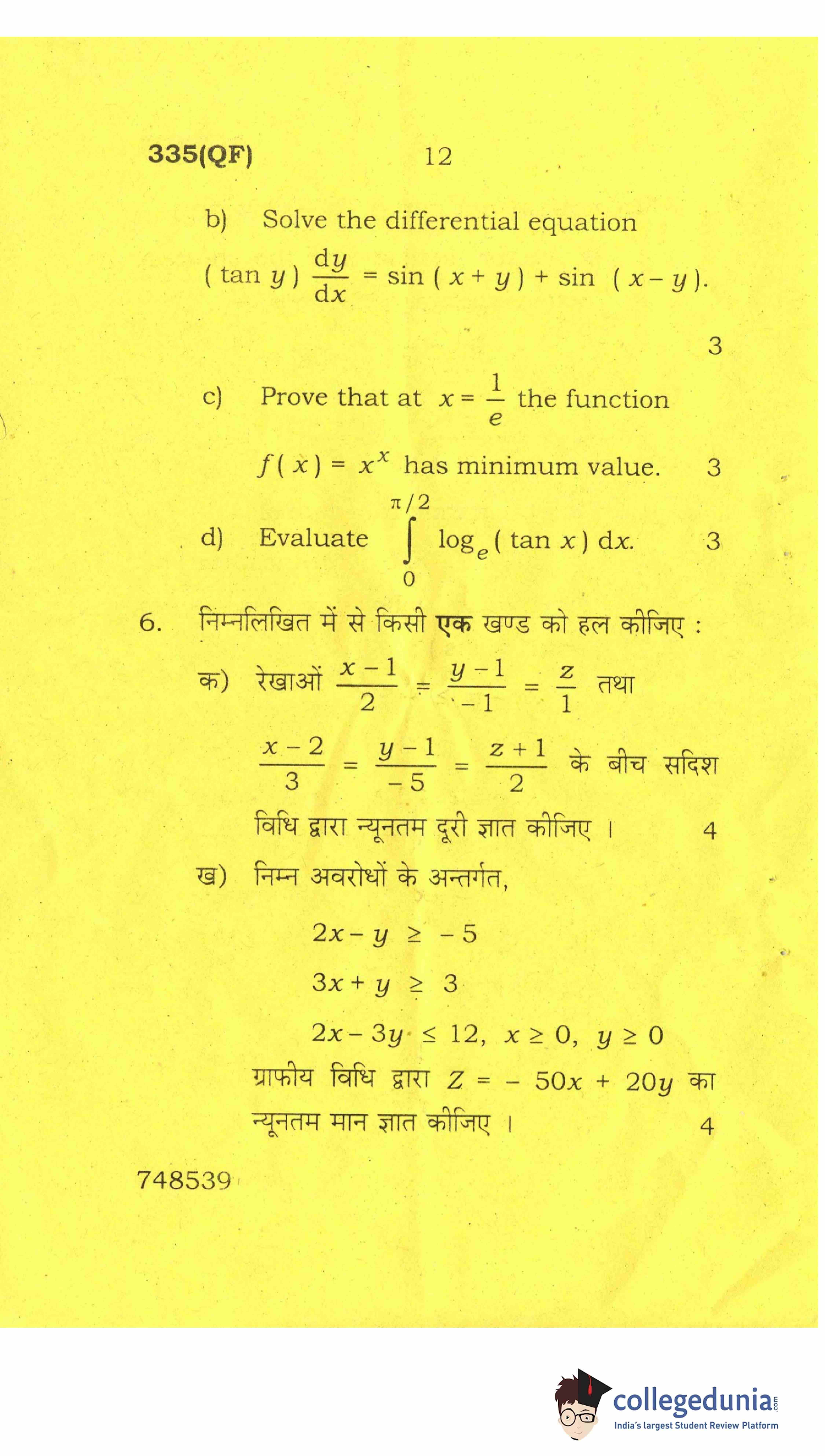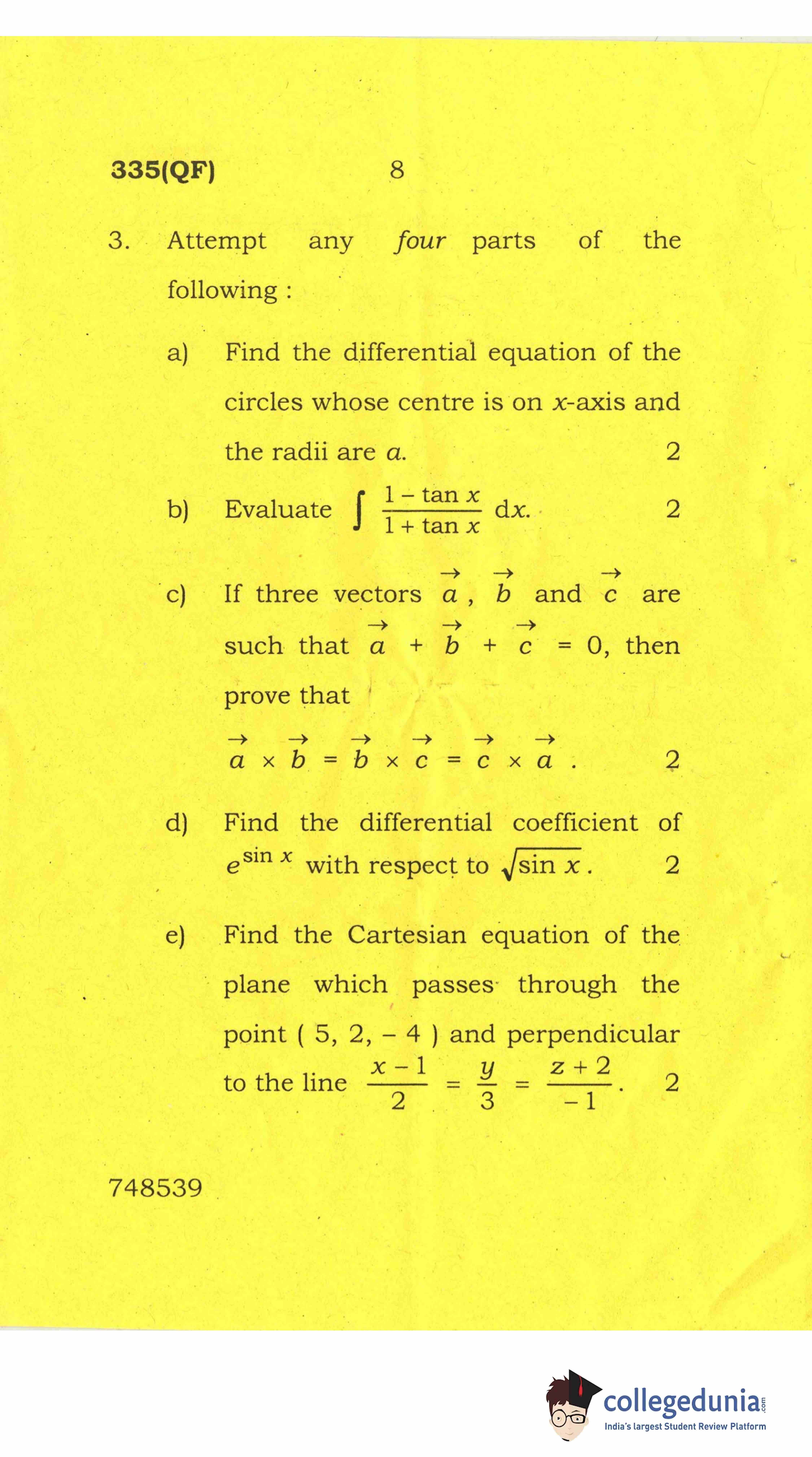 UP Board Class 12 Mathematics-2 Question Paper 2017 with Answer Key Code 335(QF) is available for download. The exam was conducted by the Uttar Pradesh Madhyamik Shiksha Parishad (UPMSP) on April 8, 2017 in the Afternoon Session 2 PM to 5:15 PM. The medium of paper was English and Hindi. The question paper comprised a total of 8 questions.
