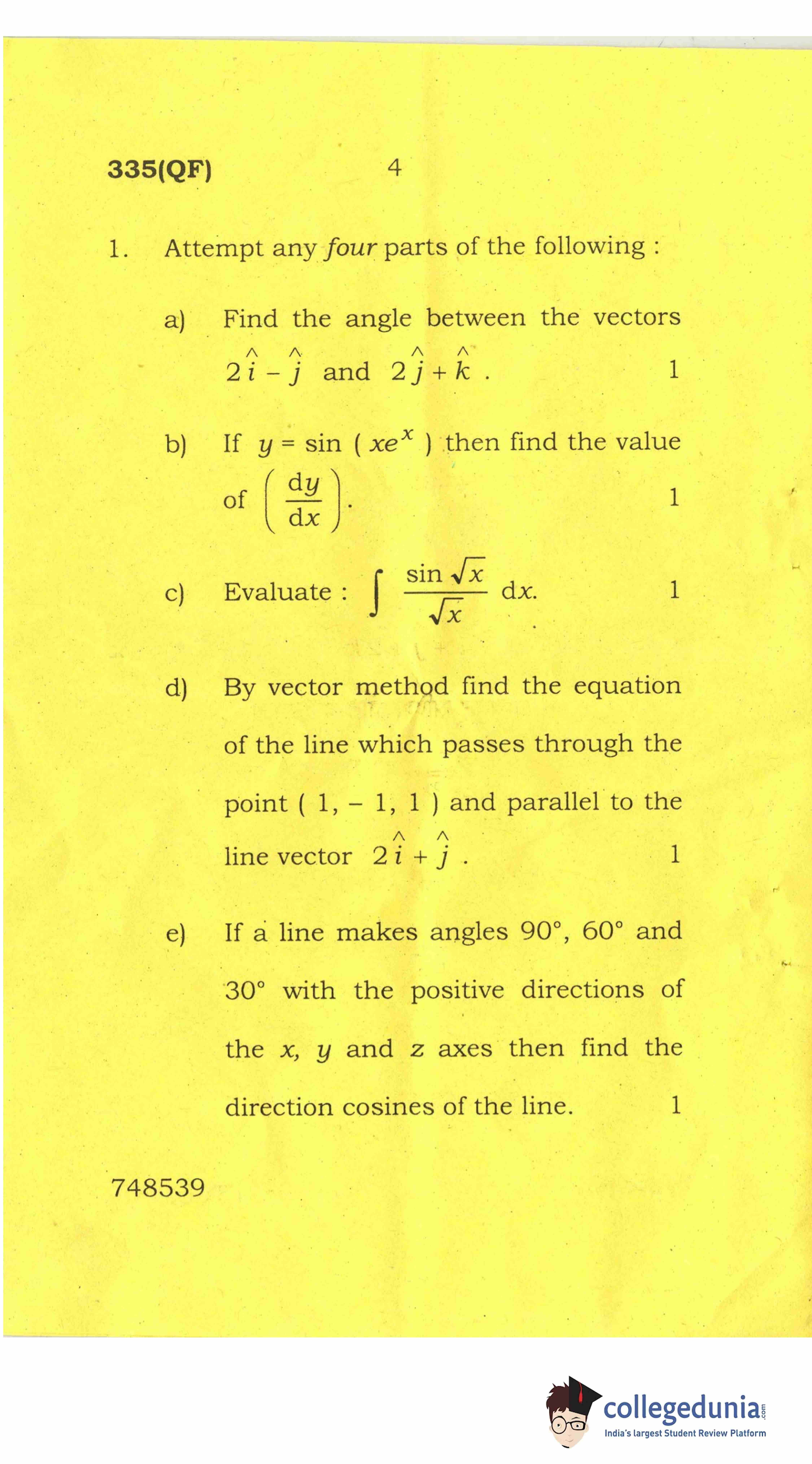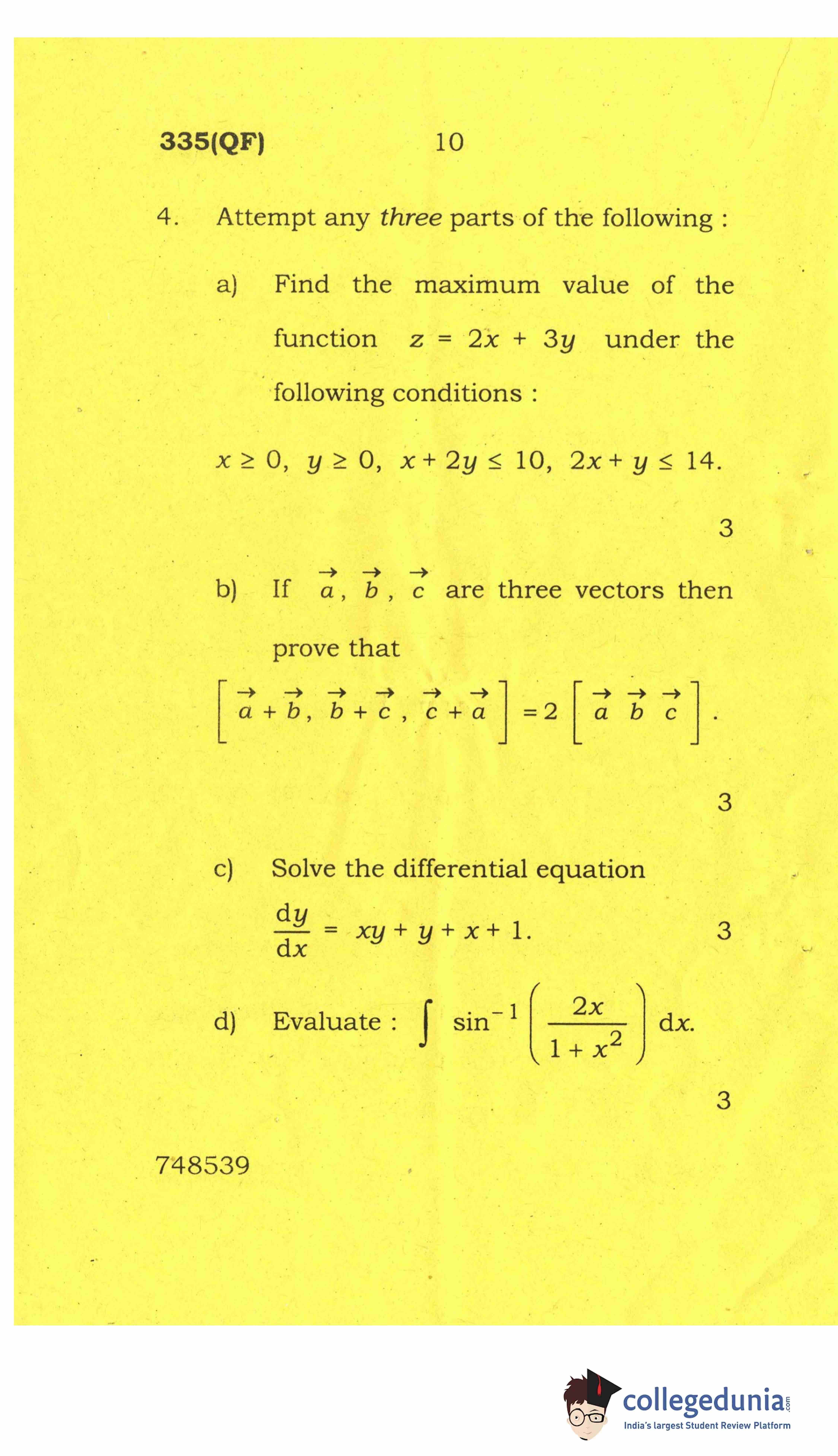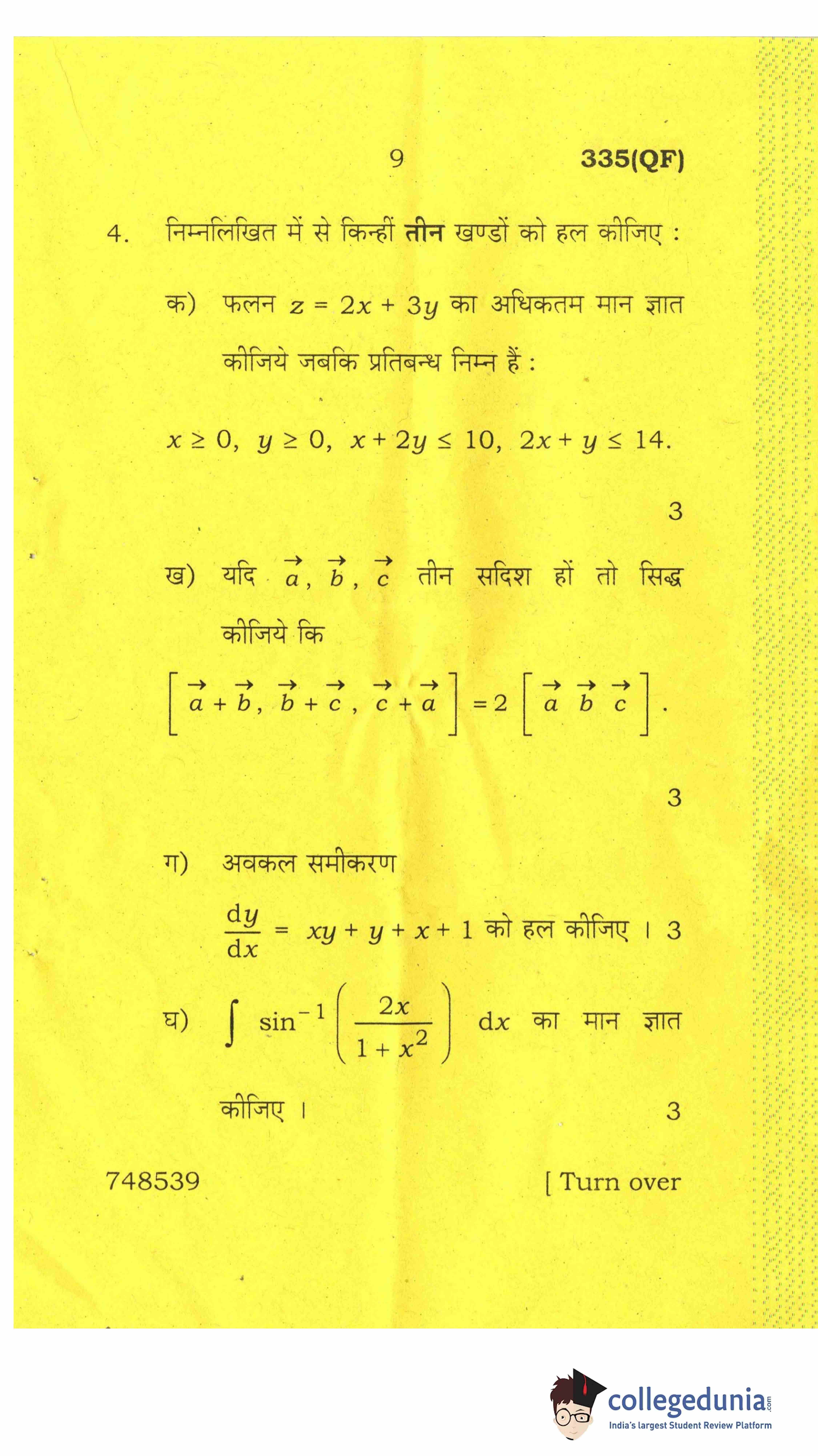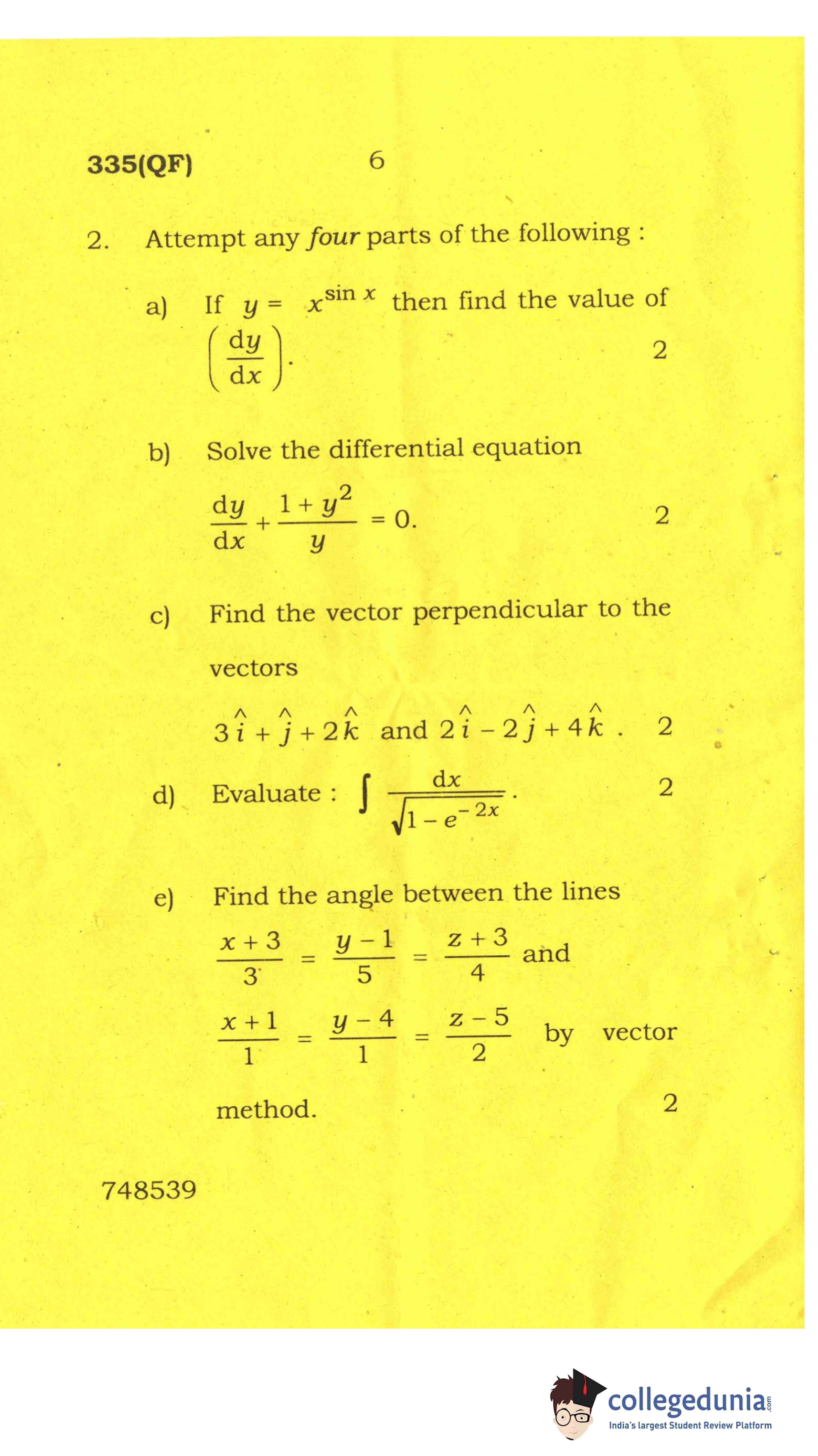 UP Board Class 12 Mathematics-2 Question Paper 2017 with Answer Key Code 335(QF) is available for download. The exam was conducted by the Uttar Pradesh Madhyamik Shiksha Parishad (UPMSP) on April 8, 2017 in the Afternoon Session 2 PM to 5:15 PM. The medium of paper was English and Hindi. The question paper comprised a total of 8 questions.