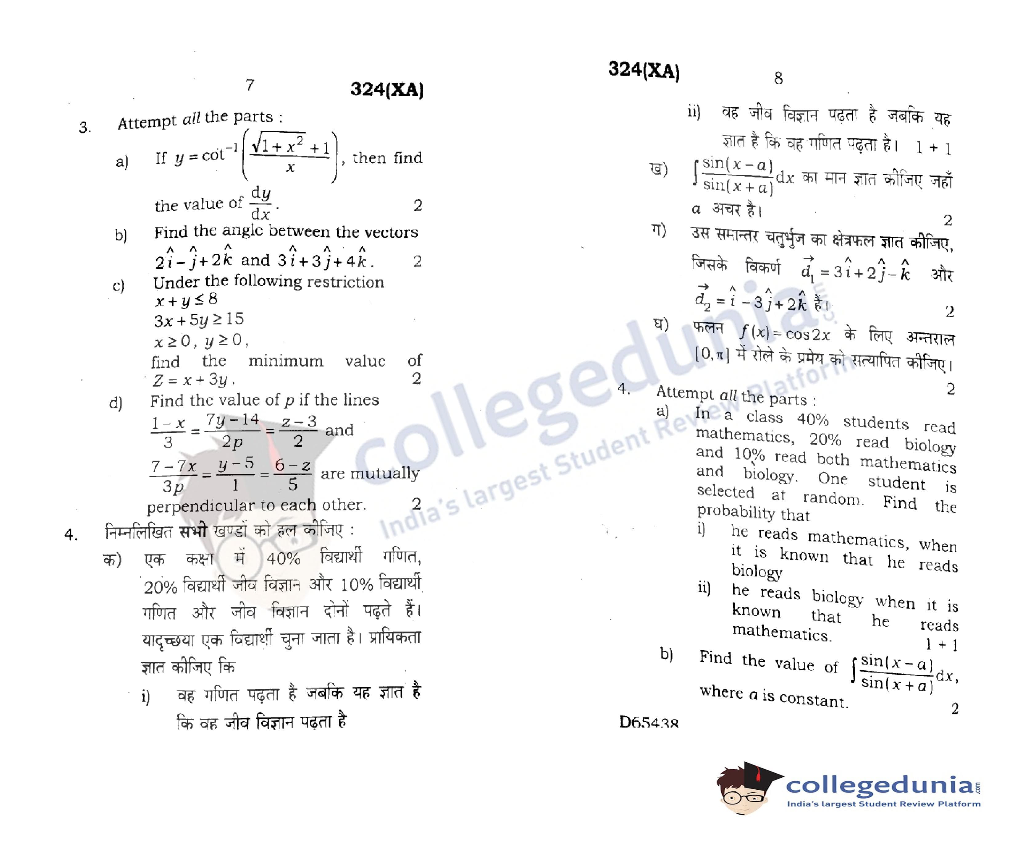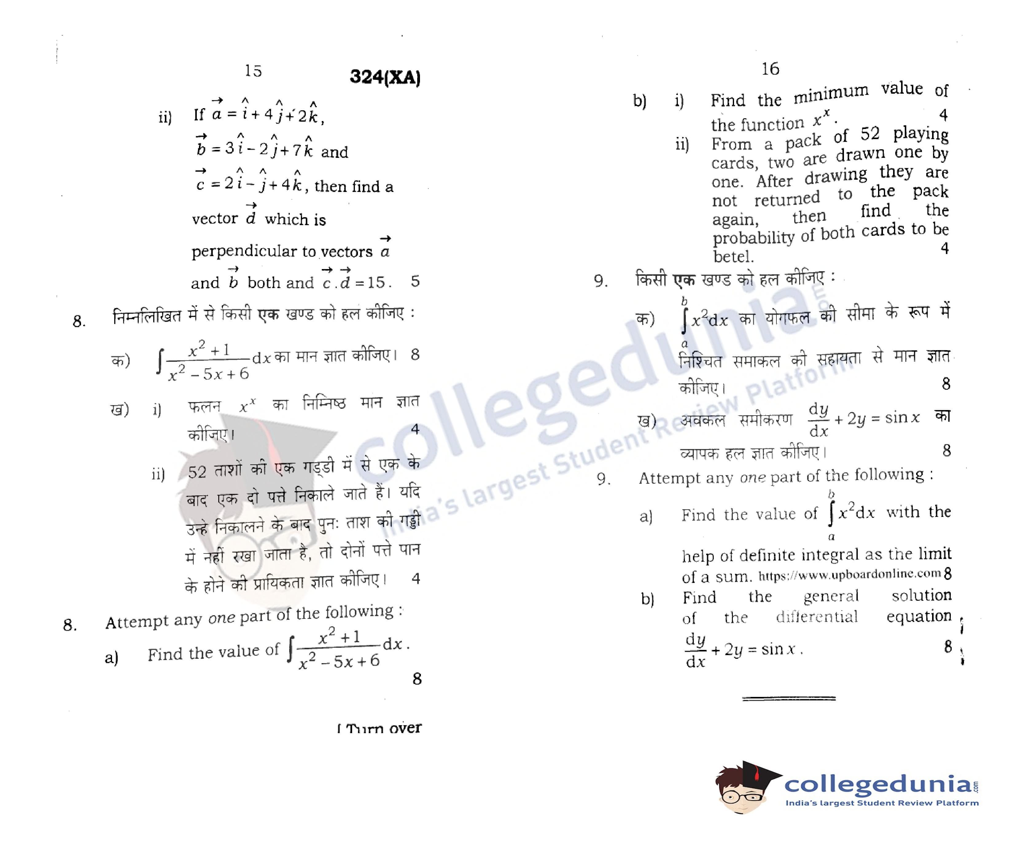 UP Board Class 12 Mathematics Question Paper 2020 with Answer Key Code 324(XA) is available for download. The exam was conducted by the Uttar Pradesh Madhyamik Shiksha Parishad (UPMSP) on February 29, 2020 in the Afternoon Session 2 PM to 5:15 PM. The medium of paper was English and Hindi. The question paper comprised a total of 9 questions.