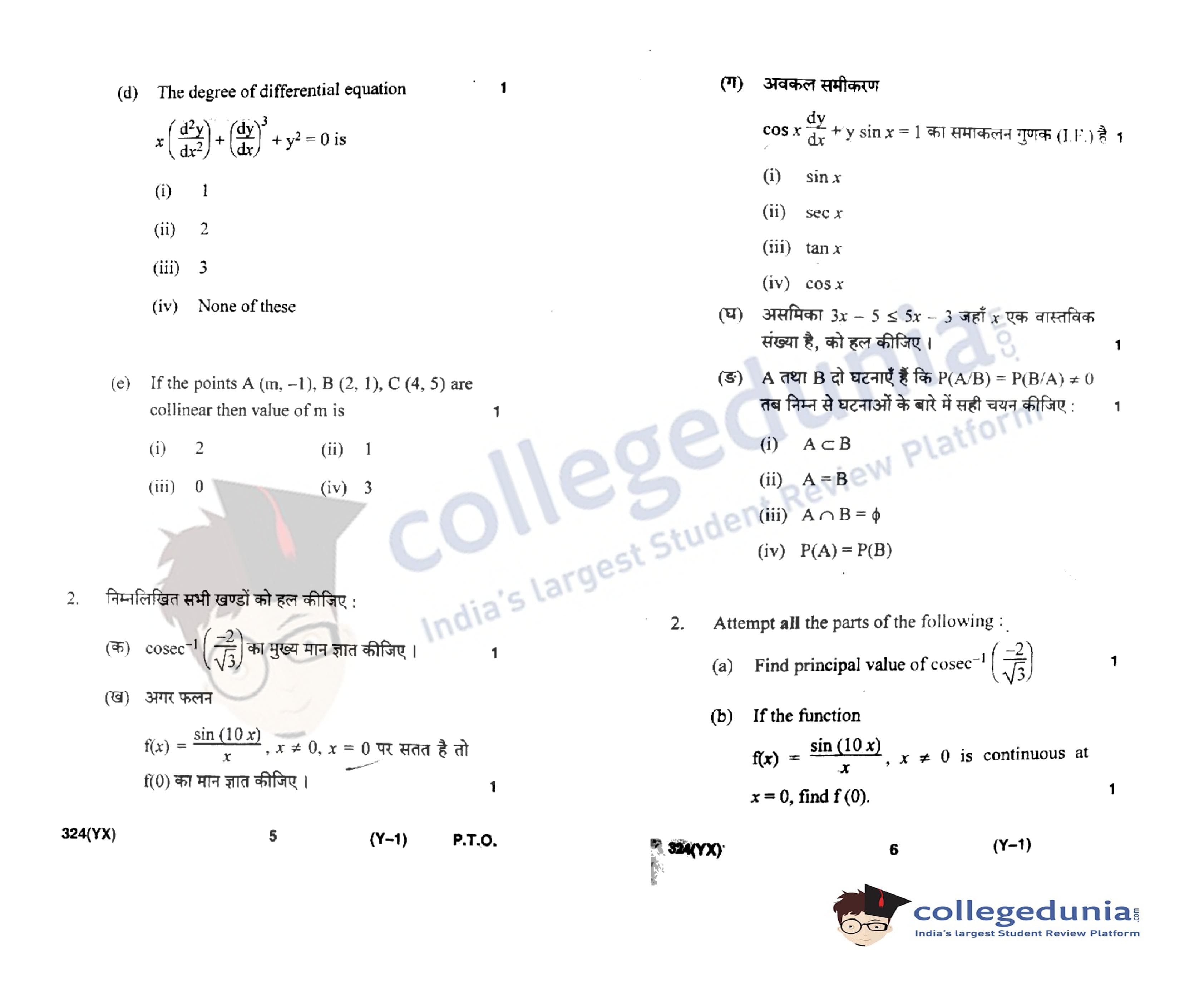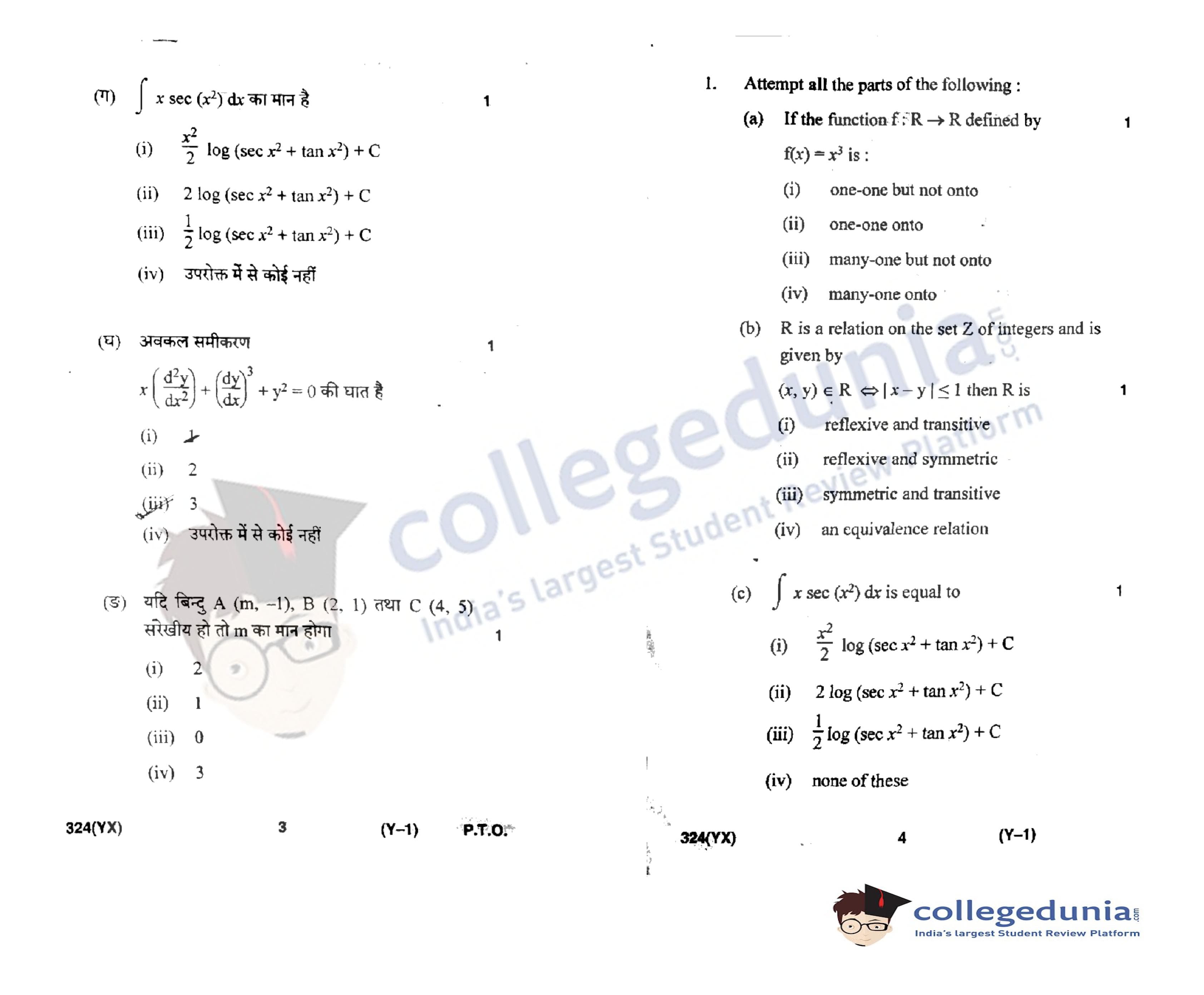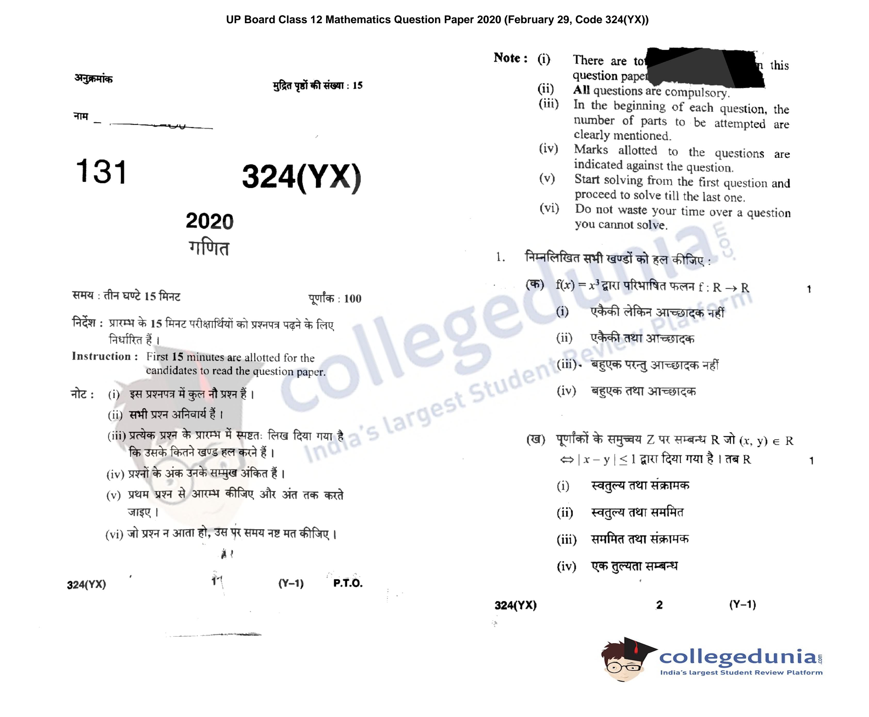 UP Board Class 12 Mathematics Question Paper 2020 with Answer Key Code 324(YX) is available for download. The exam was conducted by the Uttar Pradesh Madhyamik Shiksha Parishad (UPMSP) on February 29, 2020 in the Afternoon Session 2 PM to 5:15 PM. The medium of paper was English and Hindi. The question paper comprised a total of 9 questions.