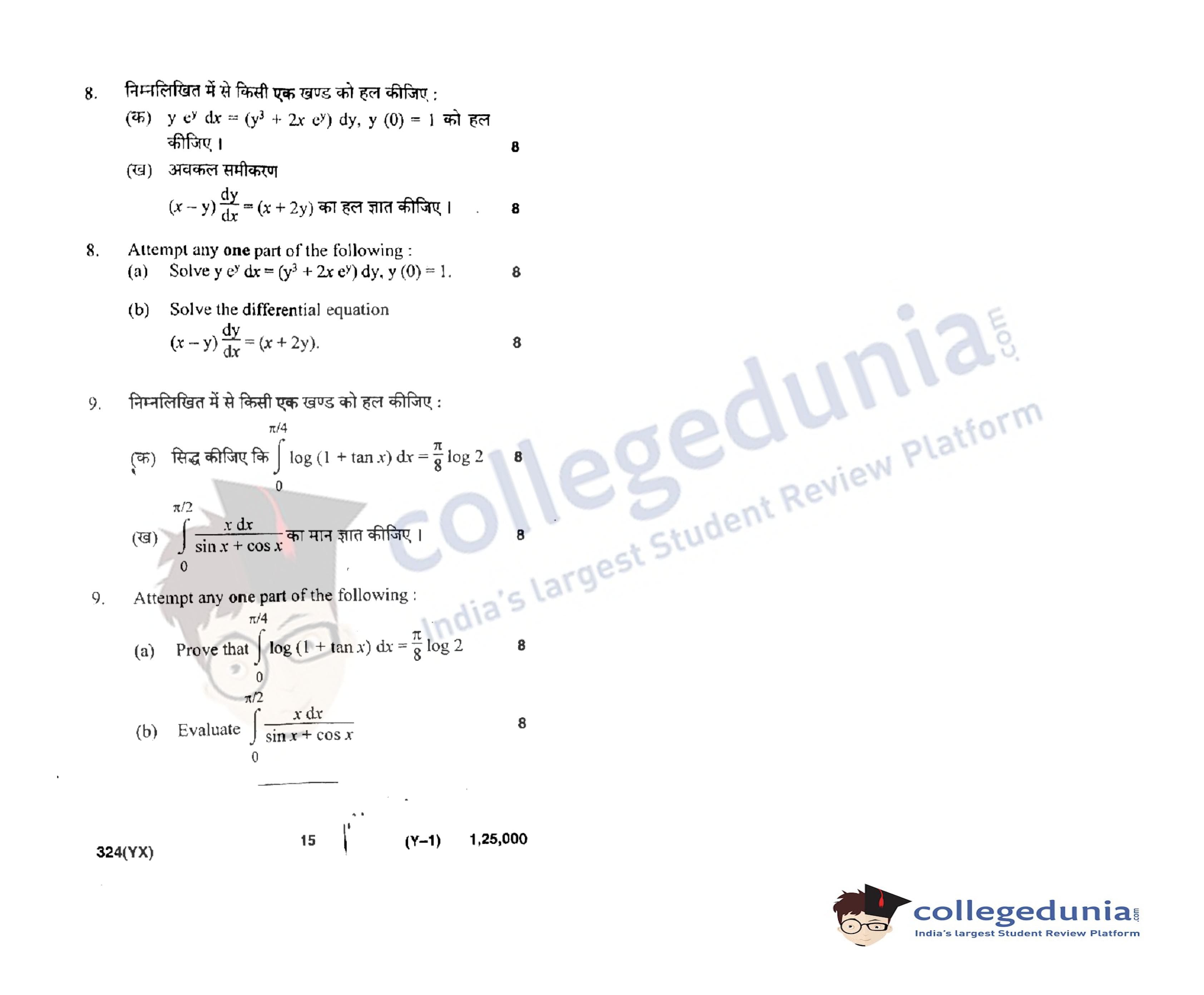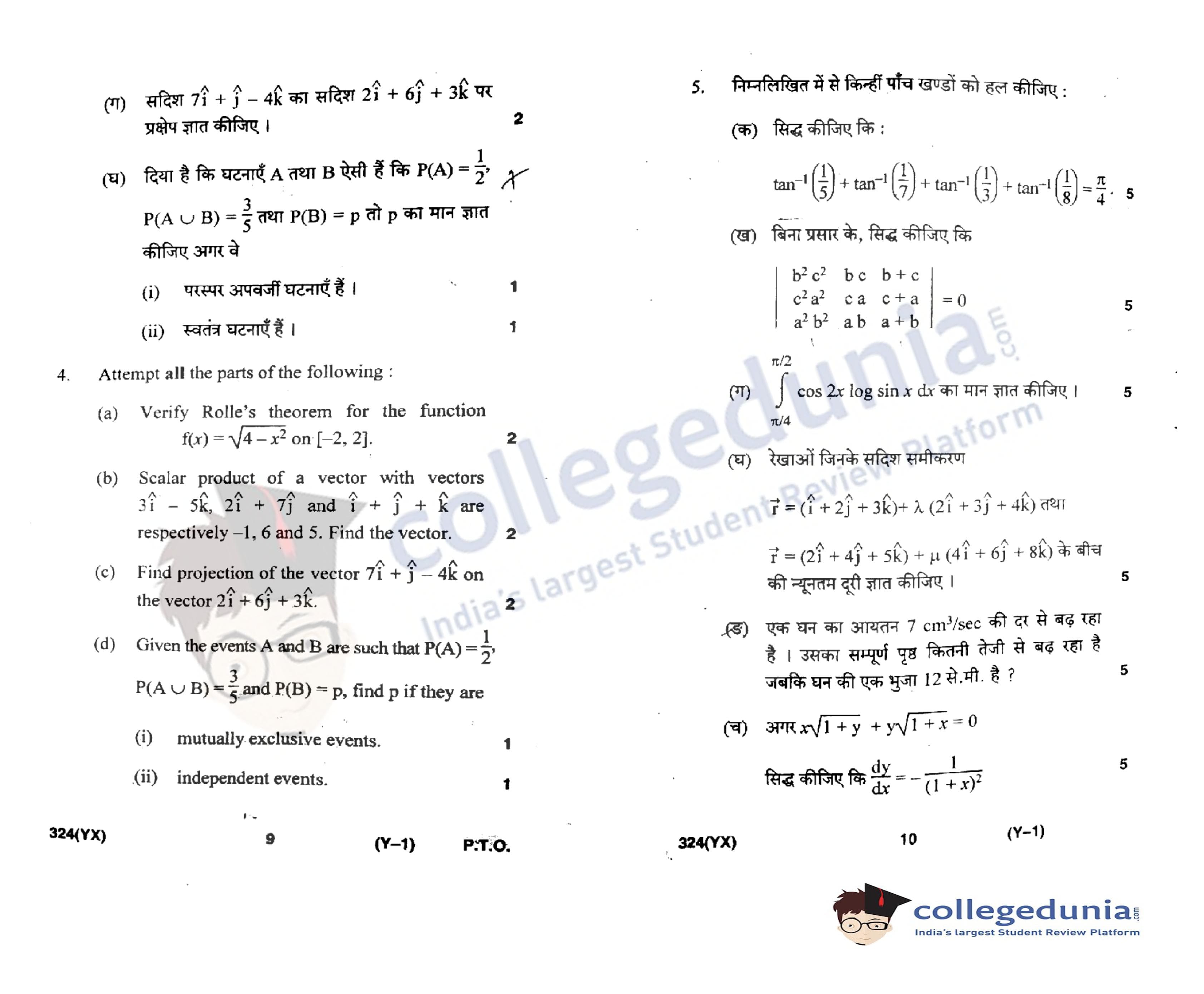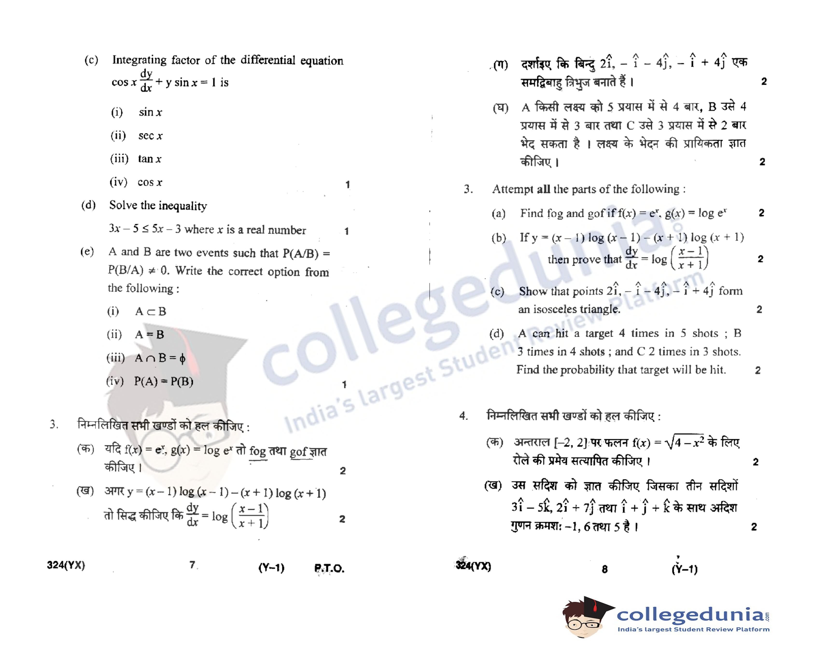 UP Board Class 12 Mathematics Question Paper 2020 with Answer Key Code 324(YX) is available for download. The exam was conducted by the Uttar Pradesh Madhyamik Shiksha Parishad (UPMSP) on February 29, 2020 in the Afternoon Session 2 PM to 5:15 PM. The medium of paper was English and Hindi. The question paper comprised a total of 9 questions.
