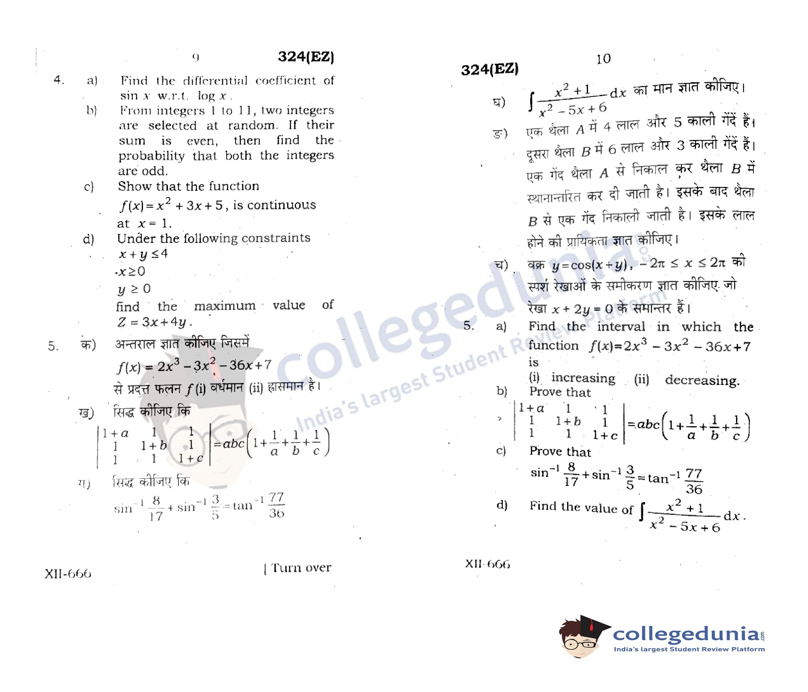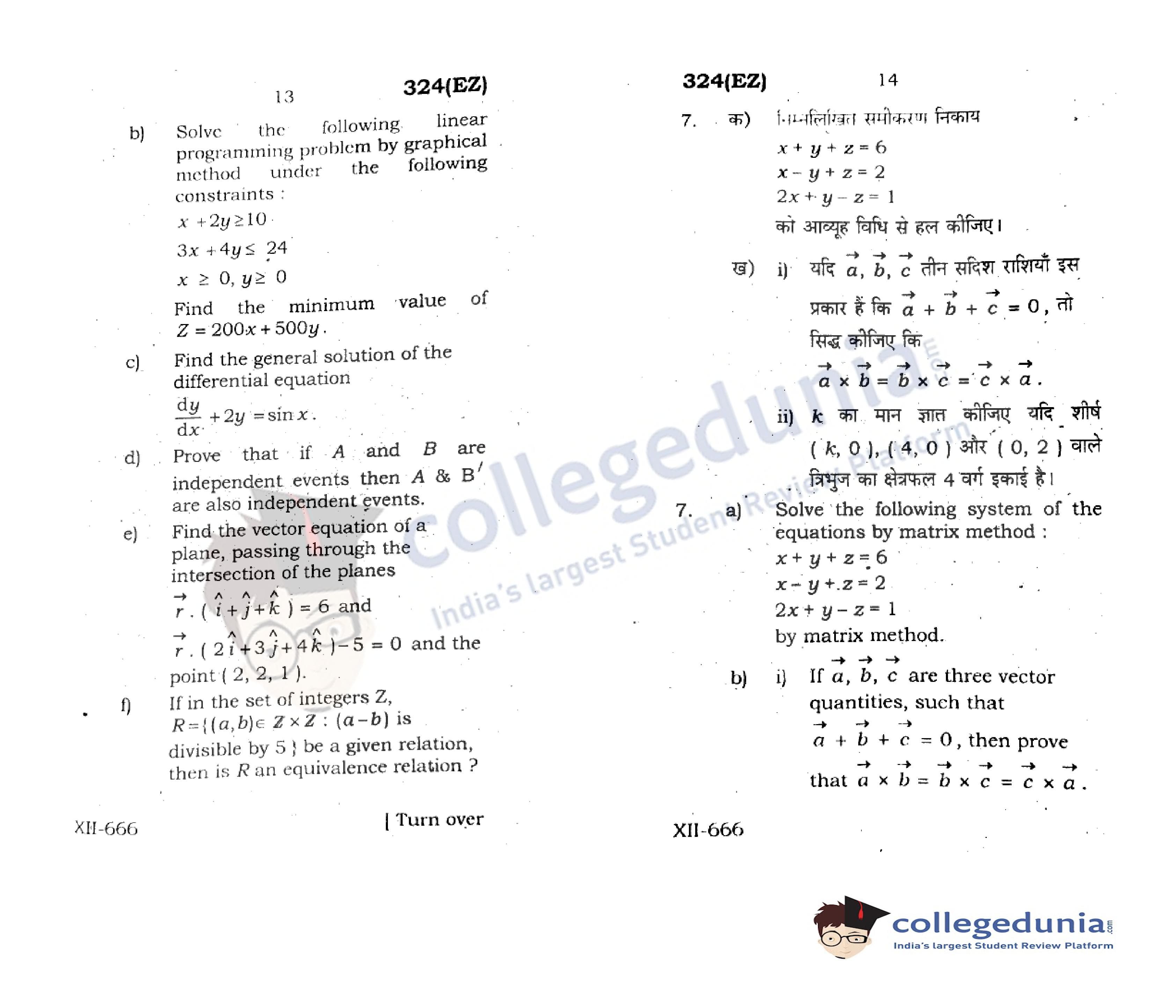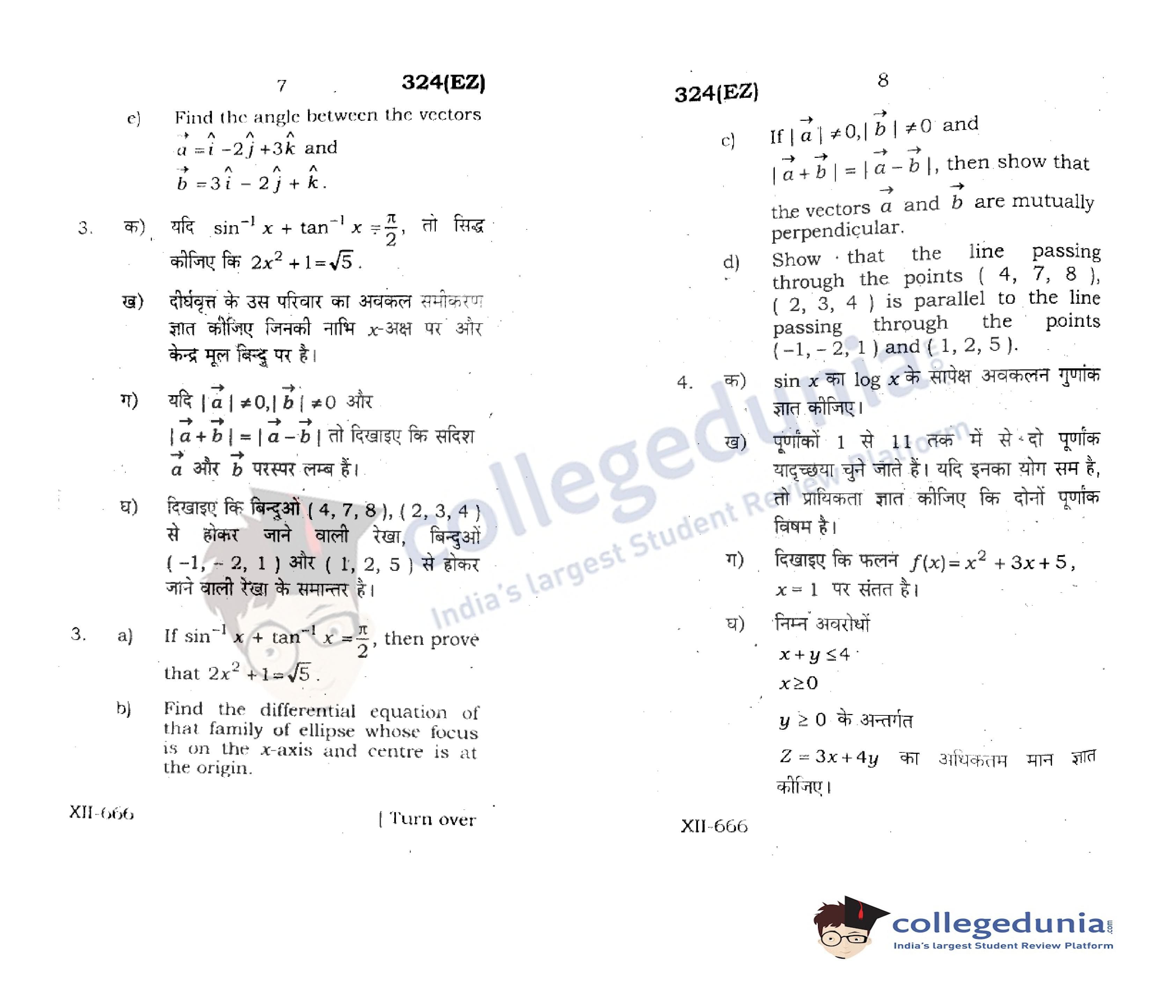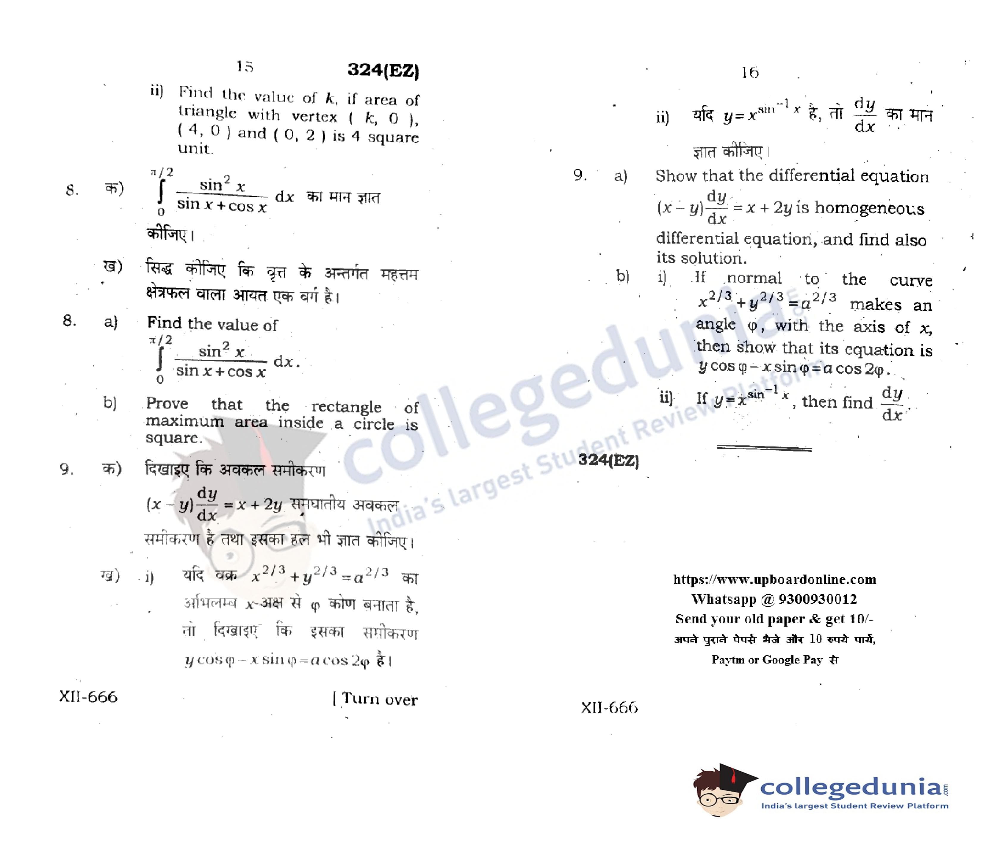 UP Board Class 12 Mathematics Question Paper 2021 with Answer Key Code 324(EZ) is available for download. The exam was conducted by the Uttar Pradesh Madhyamik Shiksha Parishad (UPMSP) on May 6, 2021 in the Afternoon Session 2 PM to 5:15 PM. The medium of paper was English and Hindi. The question paper comprised a total of 9 questions.