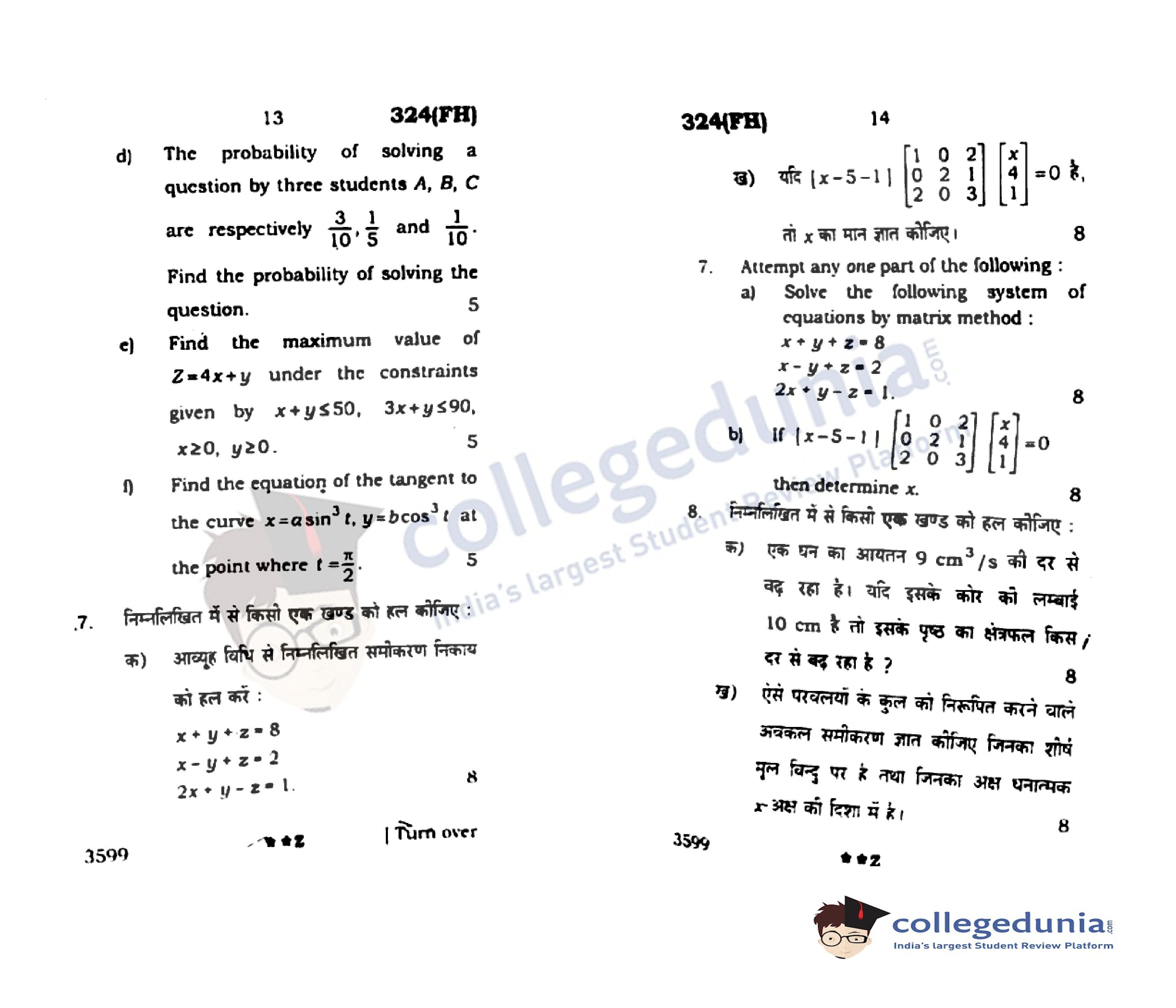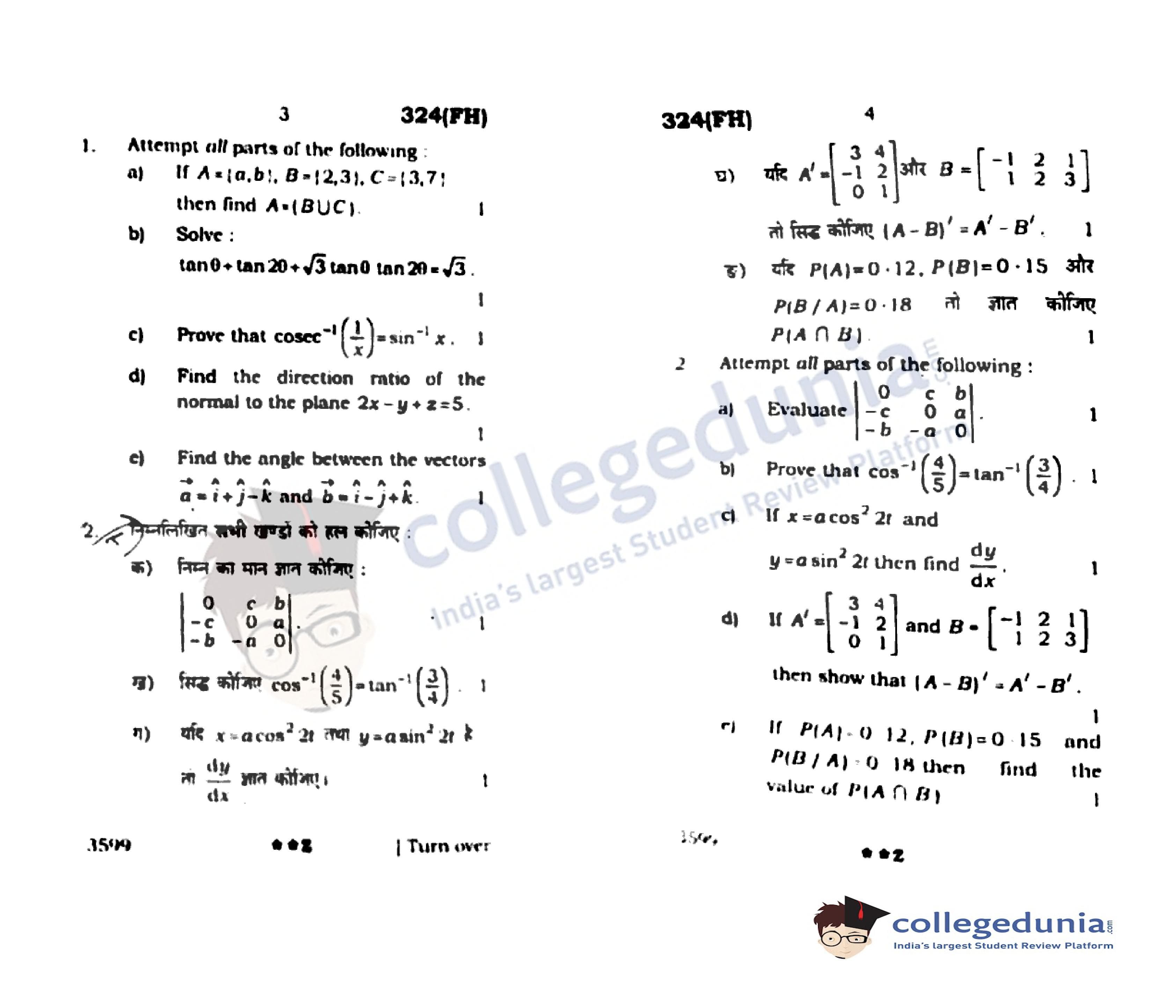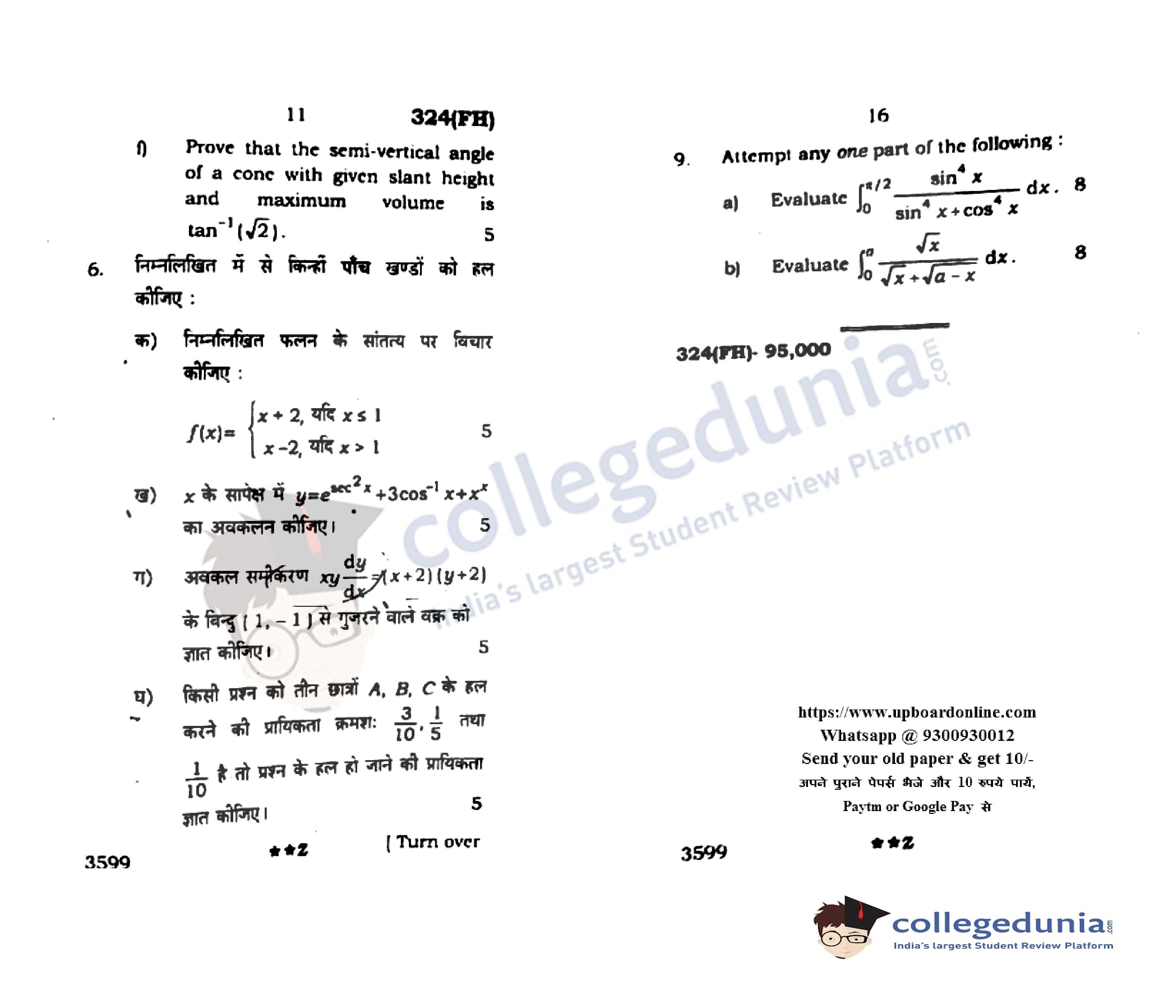 UP Board Class 12 Mathematics Question Paper 2022 with Answer Key Code 324(FH) is available for download. The exam was conducted by the Uttar Pradesh Madhyamik Shiksha Parishad (UPMSP) on April 4, 2022 in the Afternoon Session 2 PM to 5:15 PM. The medium of paper was English and Hindi. The question paper comprised a total of 9 questions.