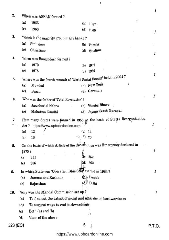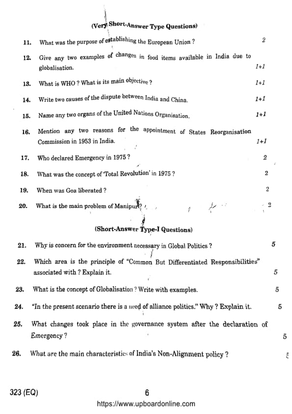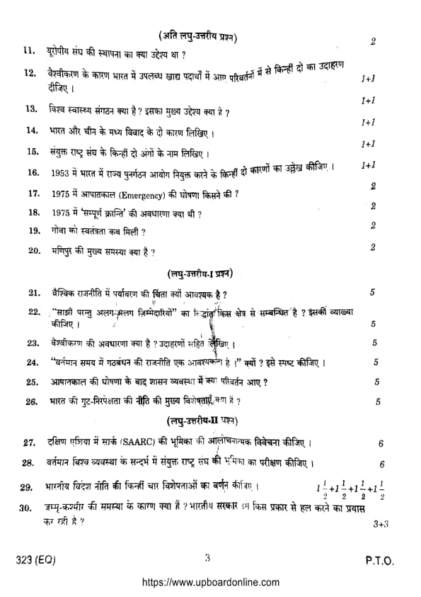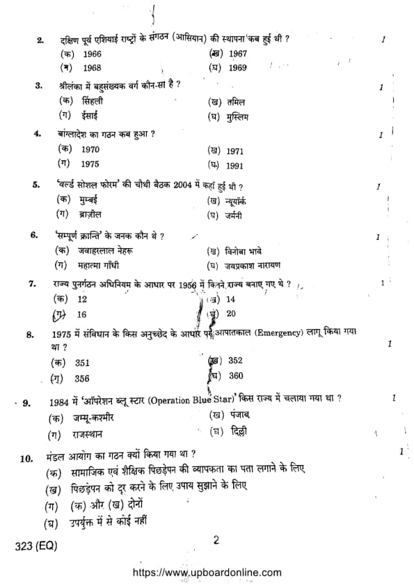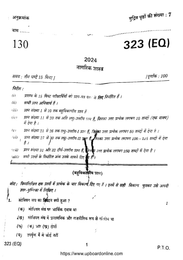 UP Board Class 12 Nagrik Shastra (Code 323 EQ) Question Paper 2024 with Answer Key (February 23)