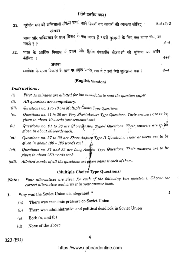 UP Board Class 12 Nagrik Shastra Question Paper 2024 with Answer Key Code 323 EQ is available for download. The exam was conducted by the Uttar Pradesh Madhyamik Shiksha Parishad (UPMSP) on February 23, 2024 in Morning Session 8:30 to 11:45 AM. The medium of paper was English and Hindi. In terms of difficulty level, UP Board Class 12 Nagrik Shastra paper was . The question paper comprised a total of 32 questions.