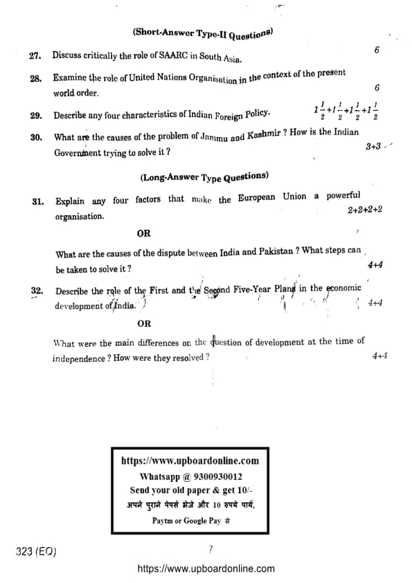 | UP Board Class 12 Nagrik Shastra Question Paper with Answer Key |
