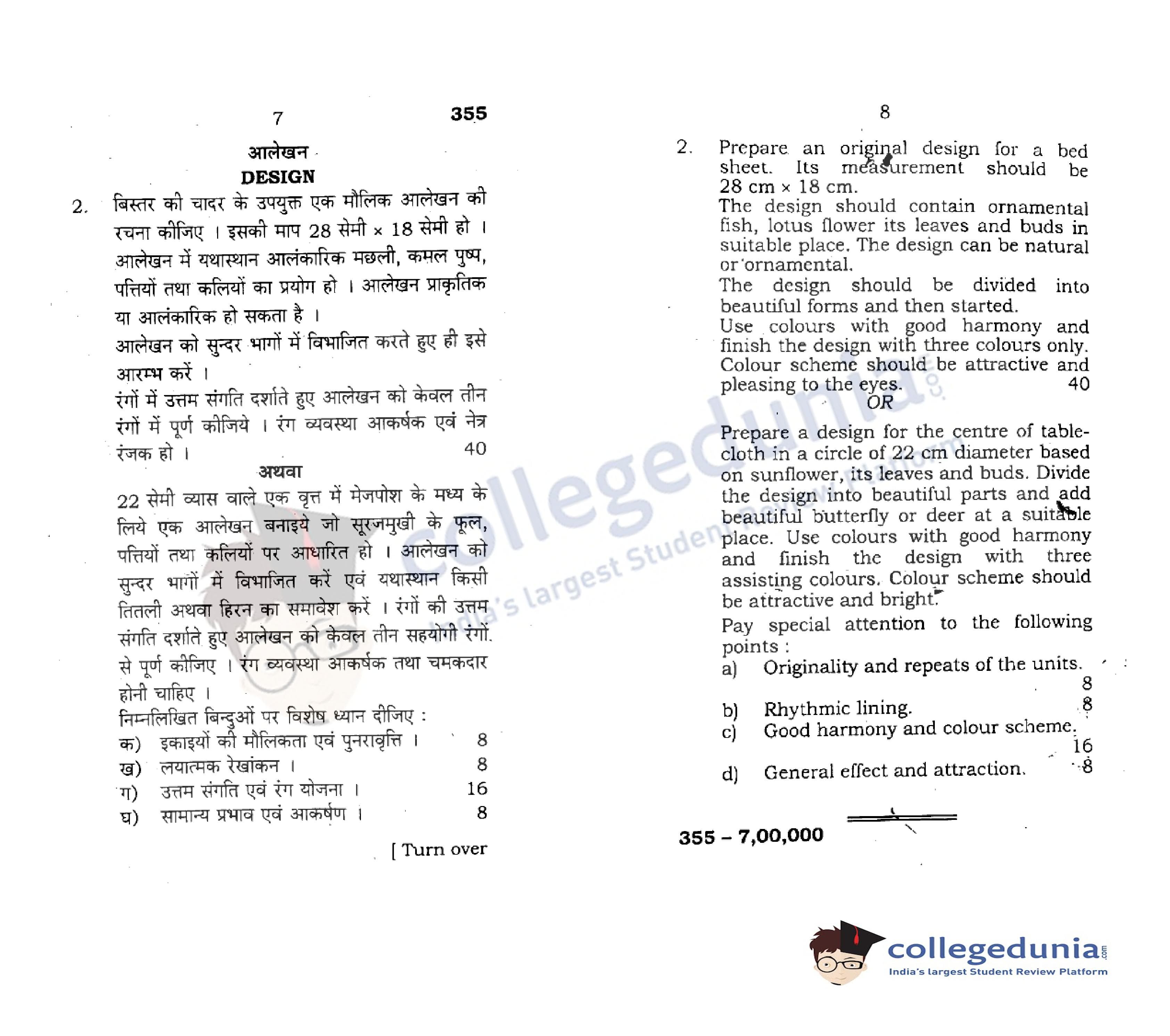 UP Board Class 12 Painting (Drafting)-1 Question Paper 2018 with Answer Key Code 355 is available for download. The exam was conducted by the Uttar Pradesh Madhyamik Shiksha Parishad (UPMSP) on February 26, 2018 in the Morning Session 7:30 AM to 10:45 AM. The medium of paper was English and Hindi. The question paper comprised a total of 2 questions.