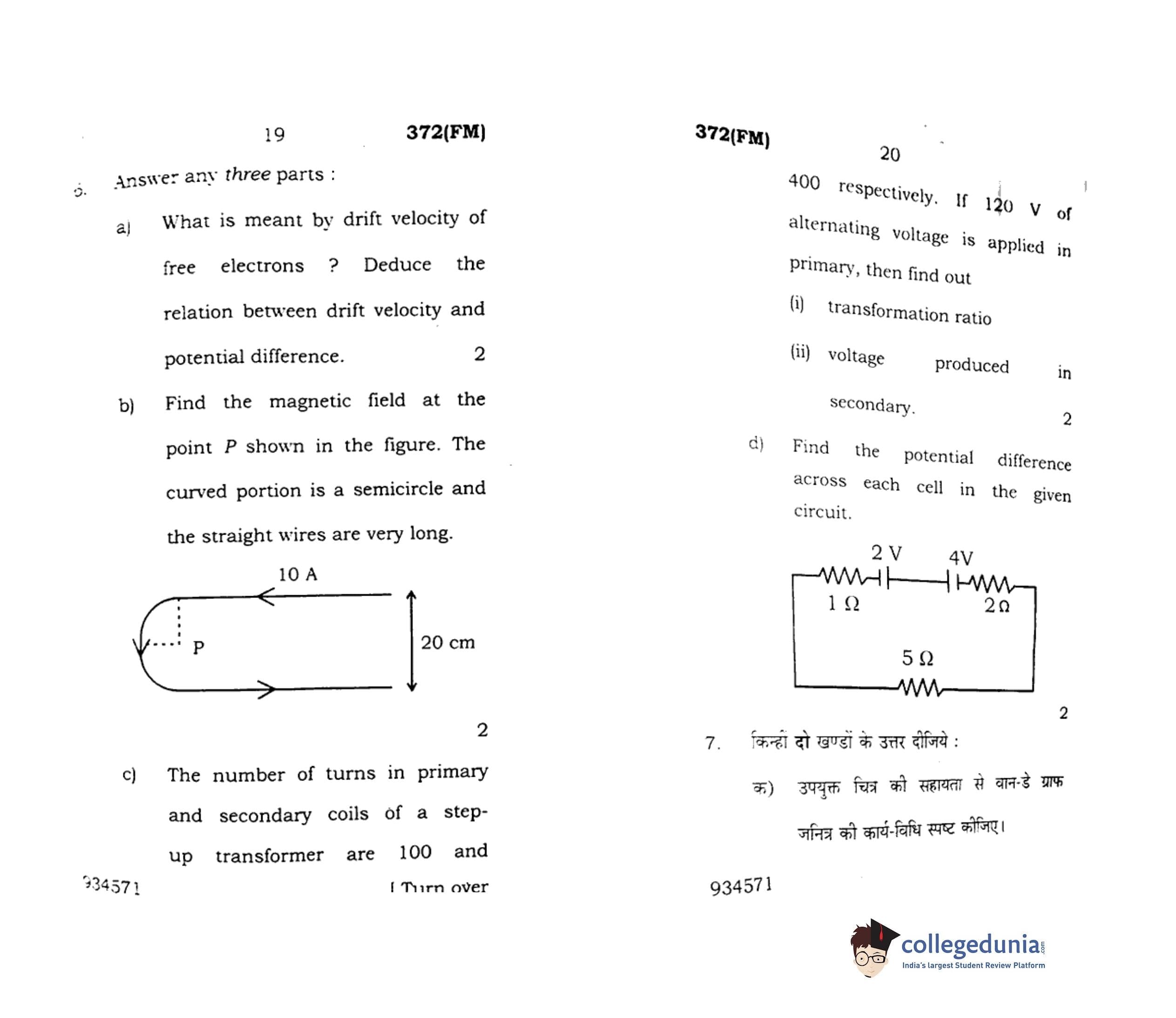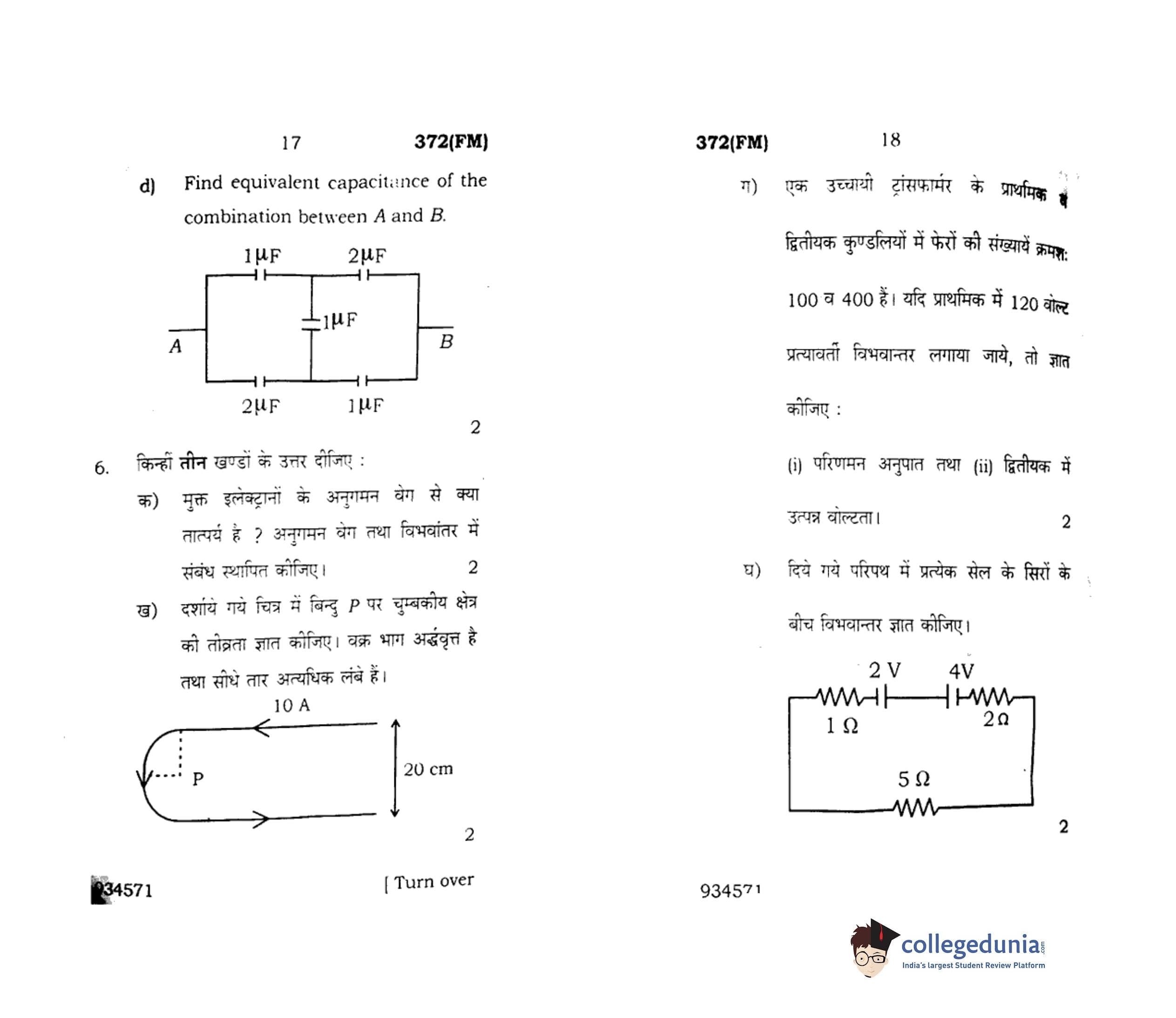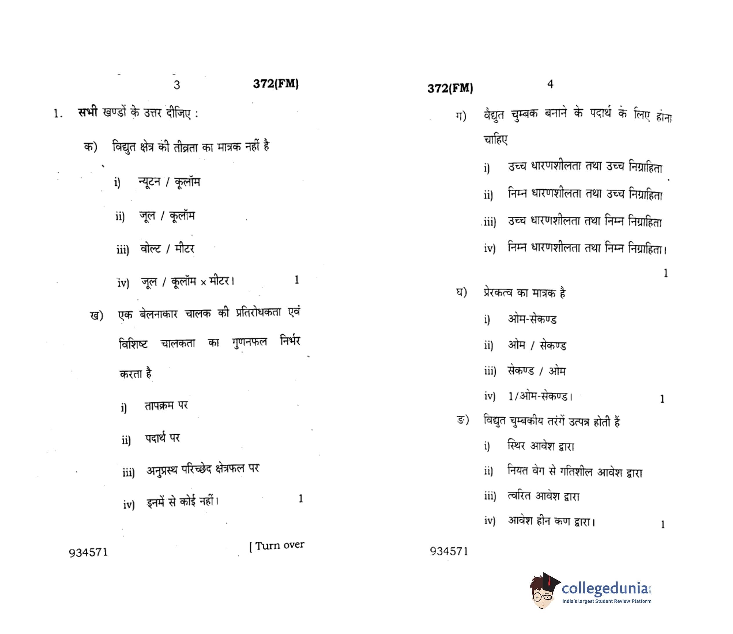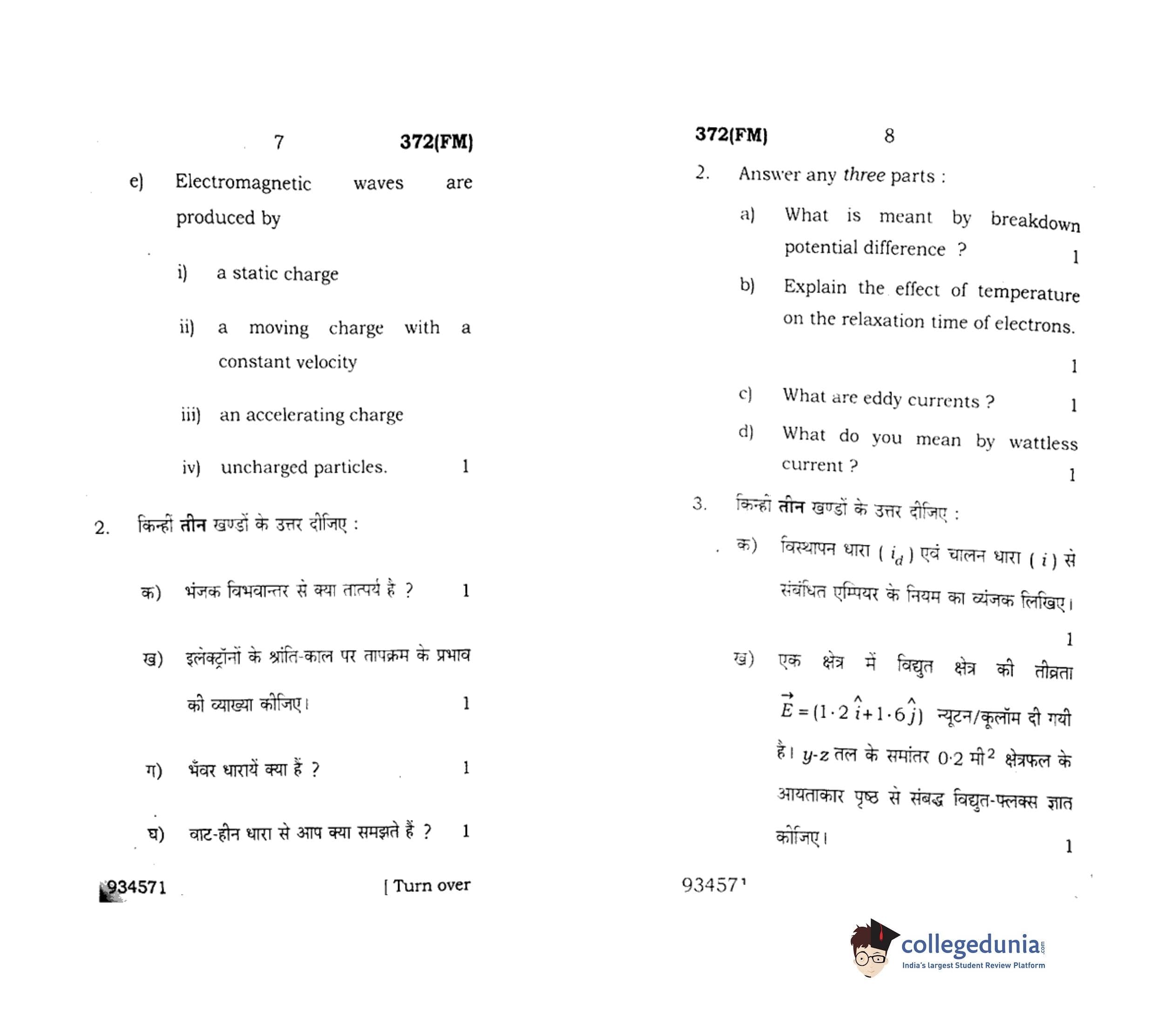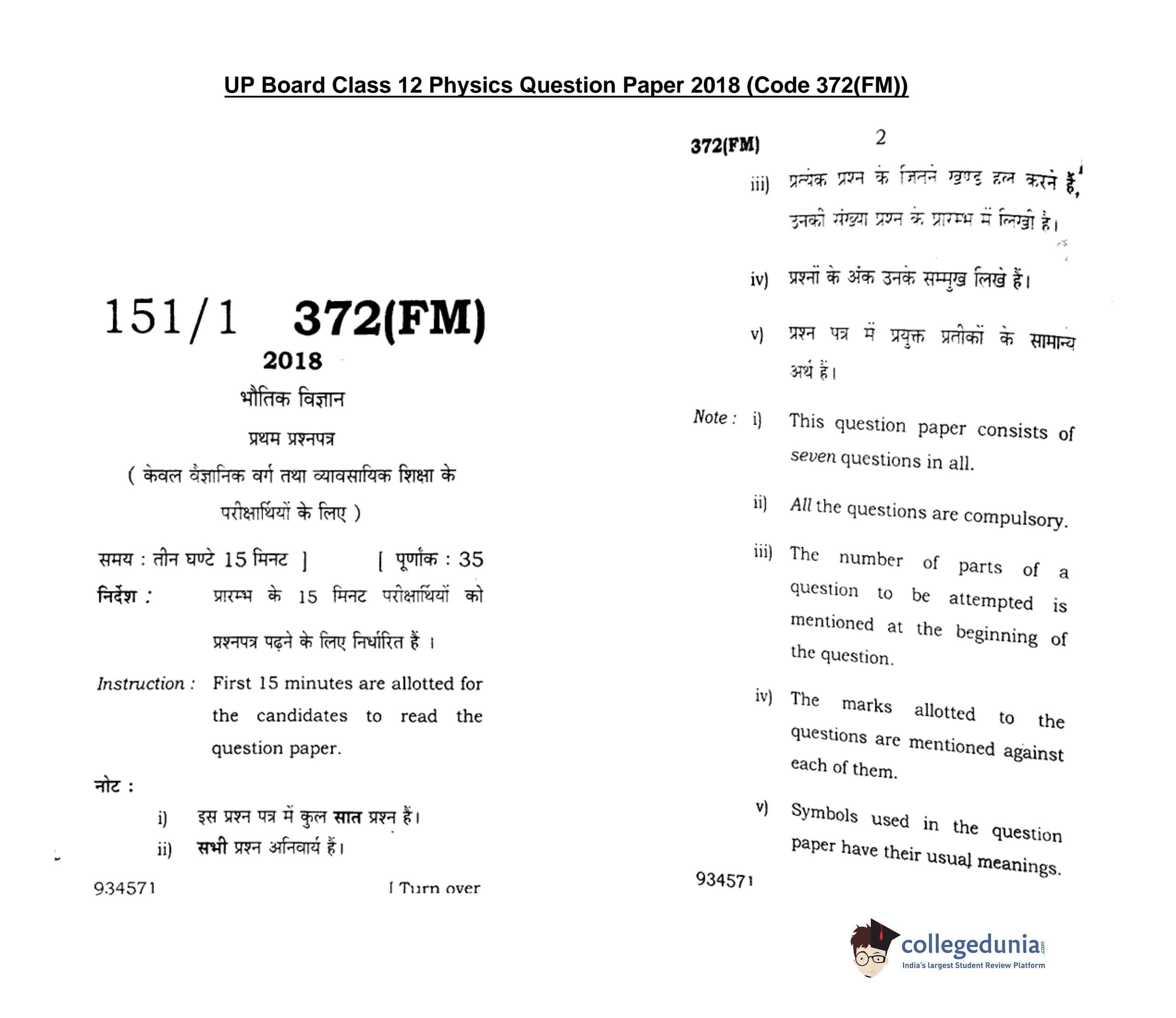 UP Board Class 12 Physics-1 Question Paper 2018 with Answer Key Code 372(FM) is available for download. The exam was conducted by the Uttar Pradesh Madhyamik Shiksha Parishad (UPMSP) on February 15, 2018 in the Afternoon Session 2 PM to 5:15 PM. The medium of paper was English and Hindi. The question paper comprised a total of 7 questions.