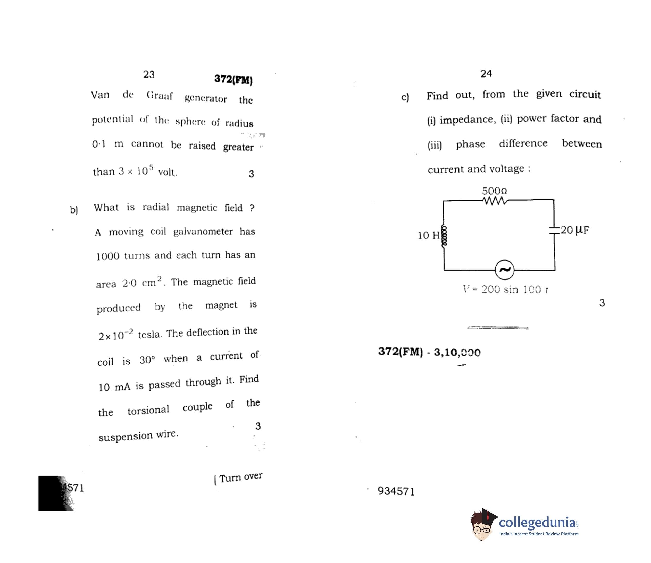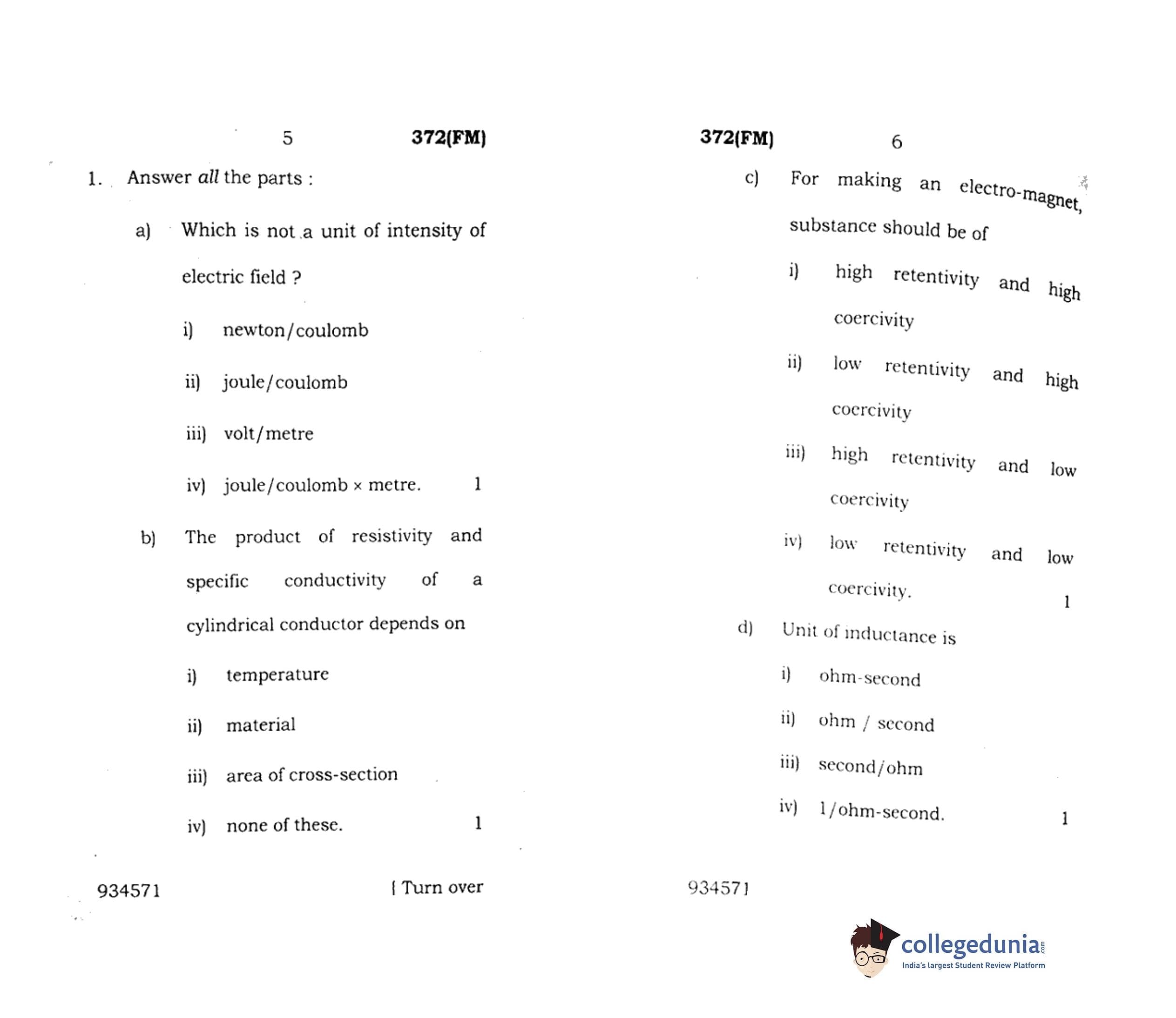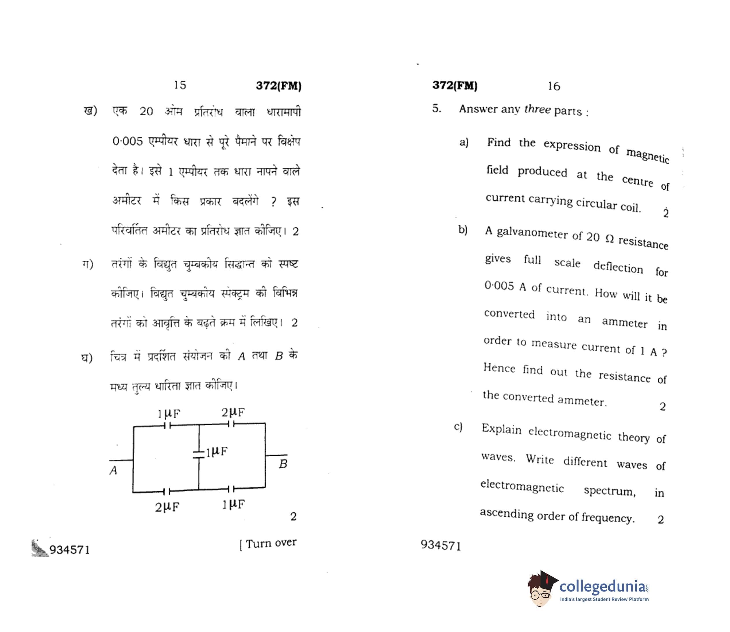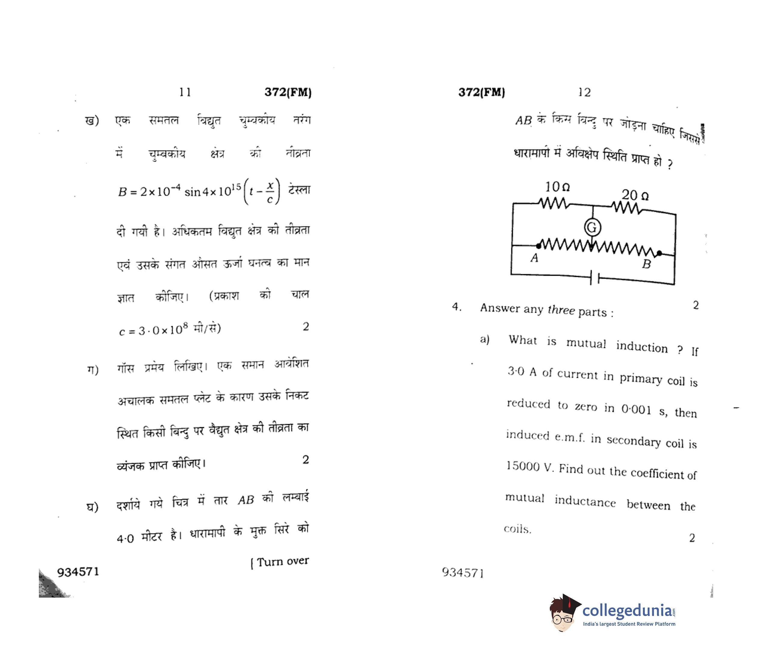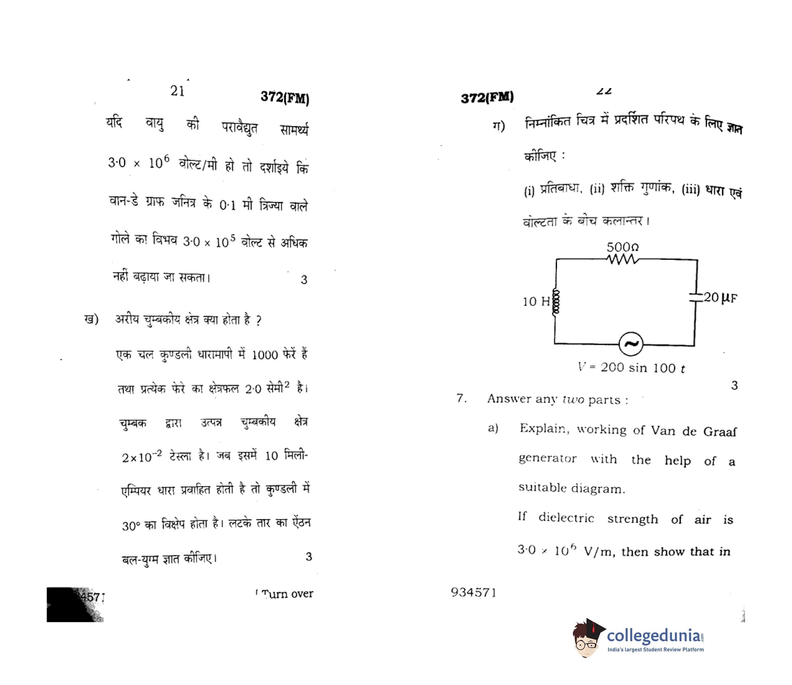UP Board Class 12 Physics-1 Question Paper 2018 with Answer Key Code 372(FM) is available for download. The exam was conducted by the Uttar Pradesh Madhyamik Shiksha Parishad (UPMSP) on February 15, 2018 in the Afternoon Session 2 PM to 5:15 PM. The medium of paper was English and Hindi. The question paper comprised a total of 7 questions.