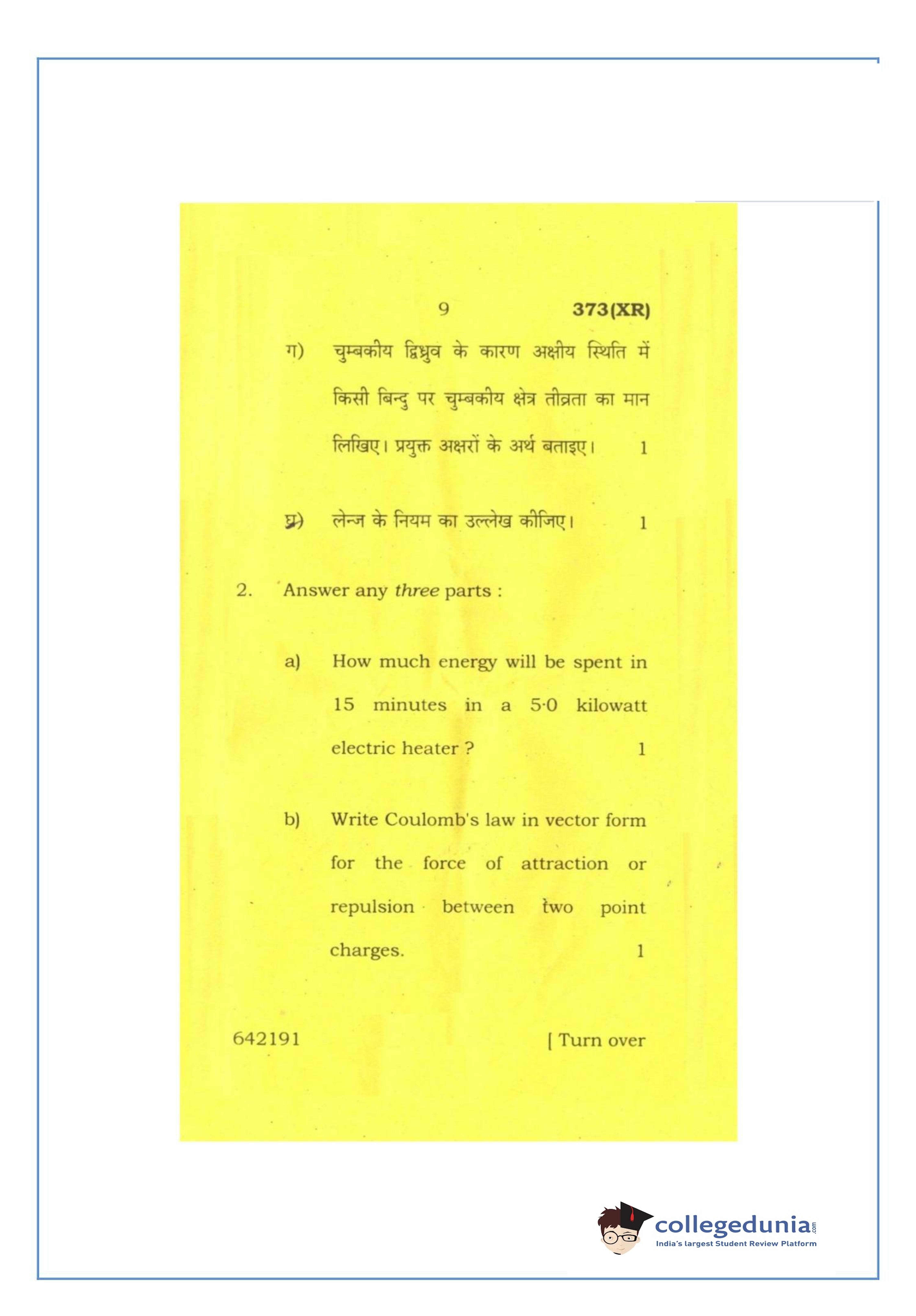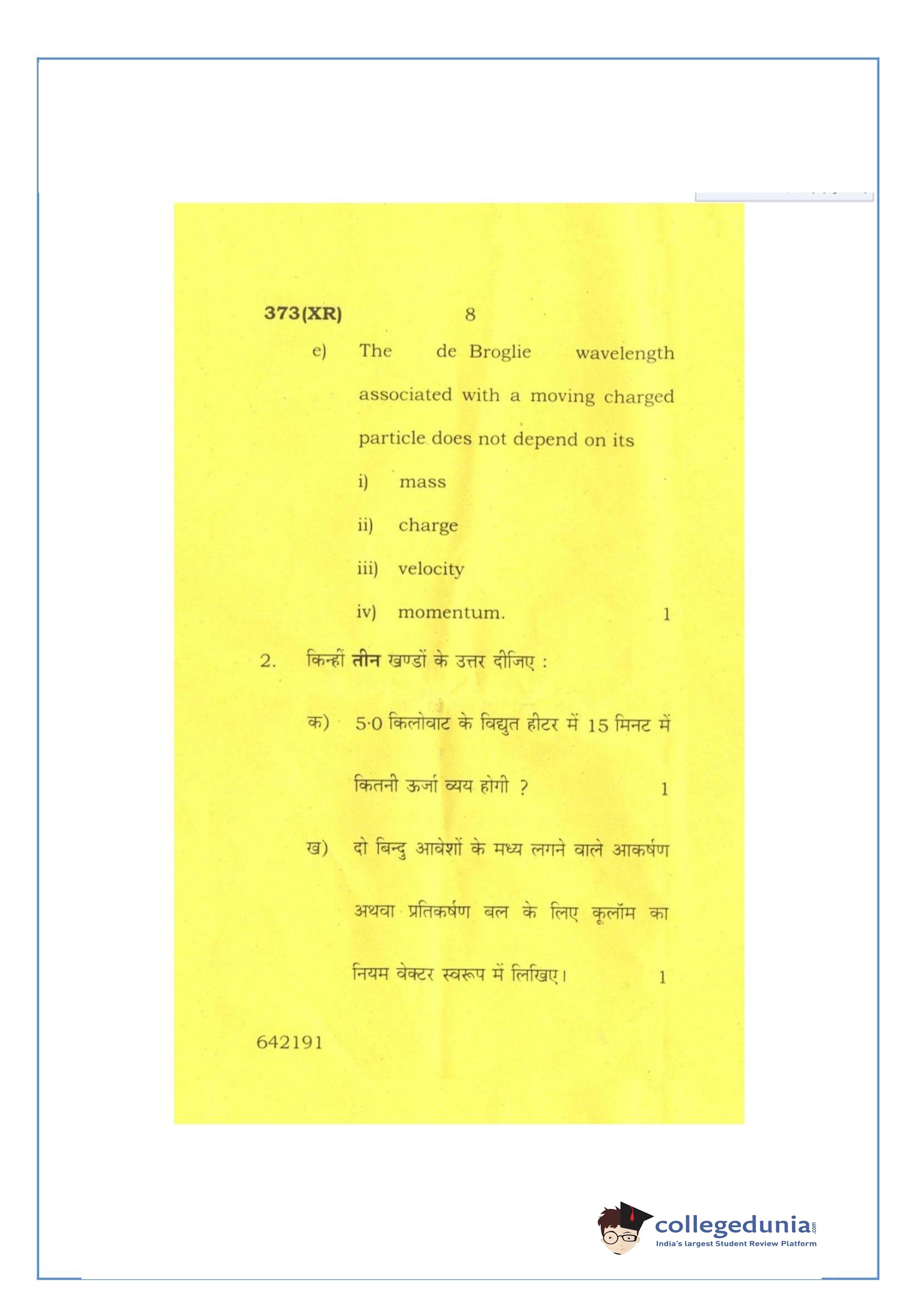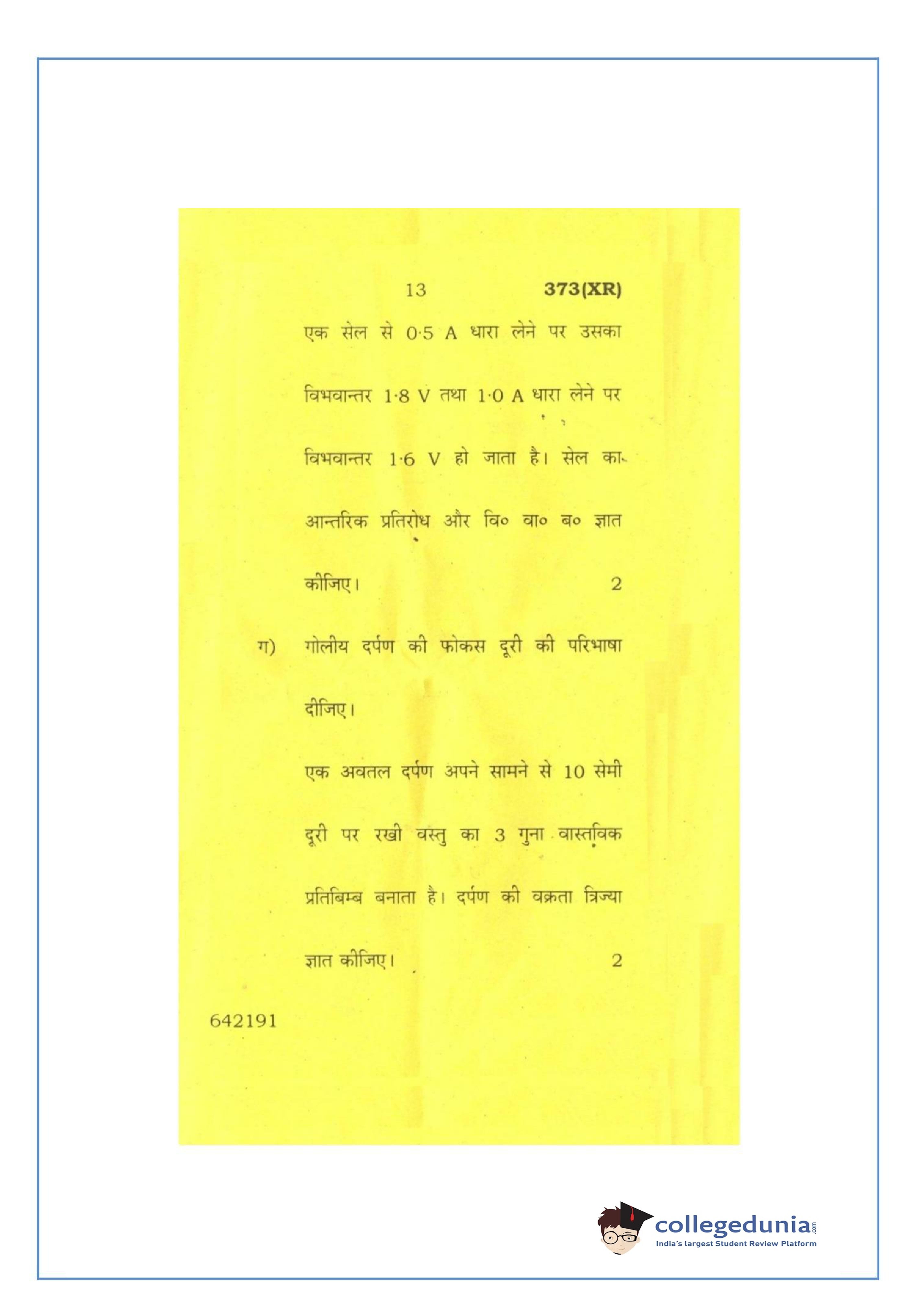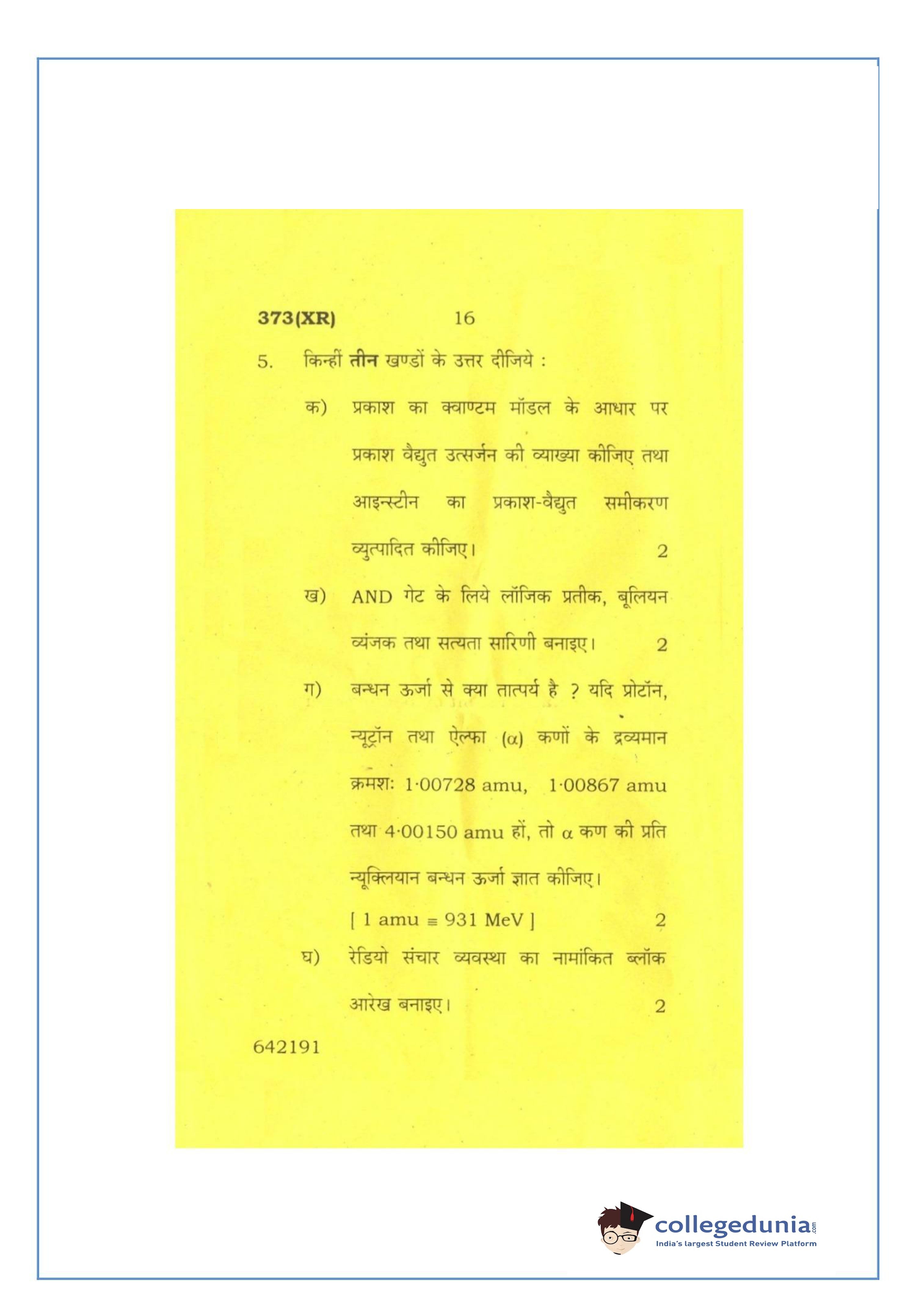 UP Board Class 12 Physics-2 Question Paper 2016 with Answer Key Code 373(XR) is available for download. The exam was conducted by the Uttar Pradesh Madhyamik Shiksha Parishad (UPMSP) on February 26, 2016 in the Afternoon Session 2 PM to 5:15 PM. The medium of paper was English and Hindi. The question paper comprised a total of 7 questions.