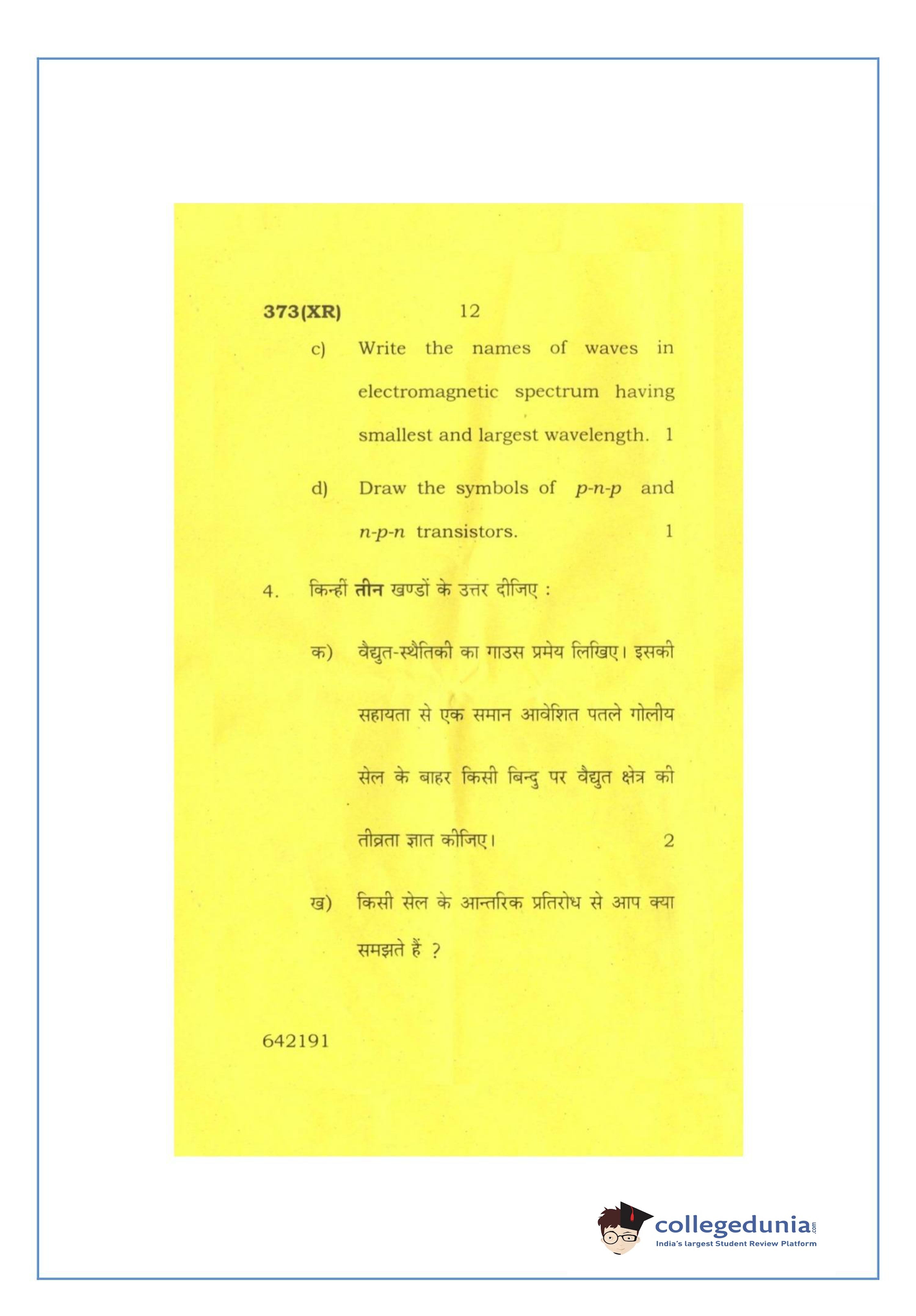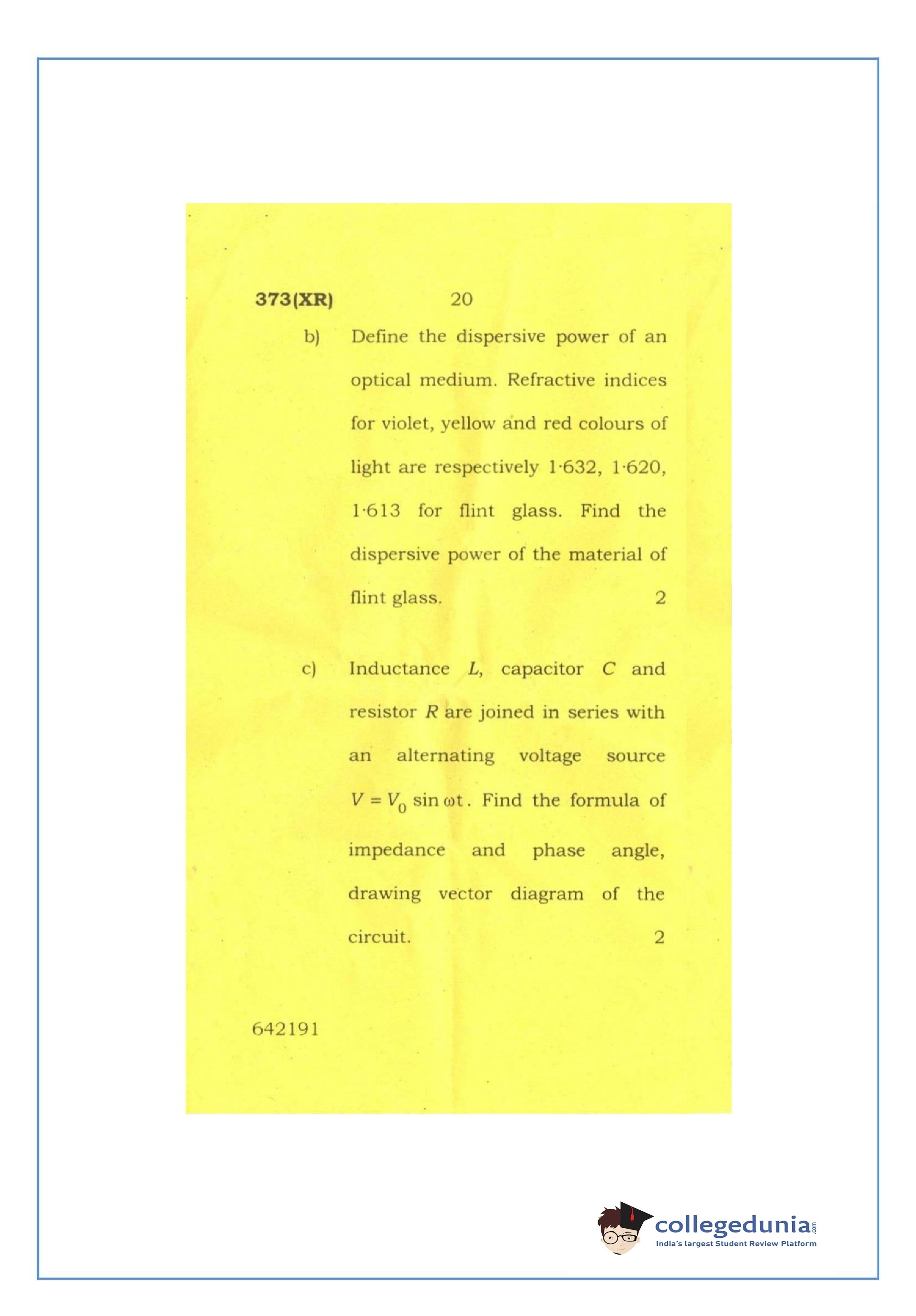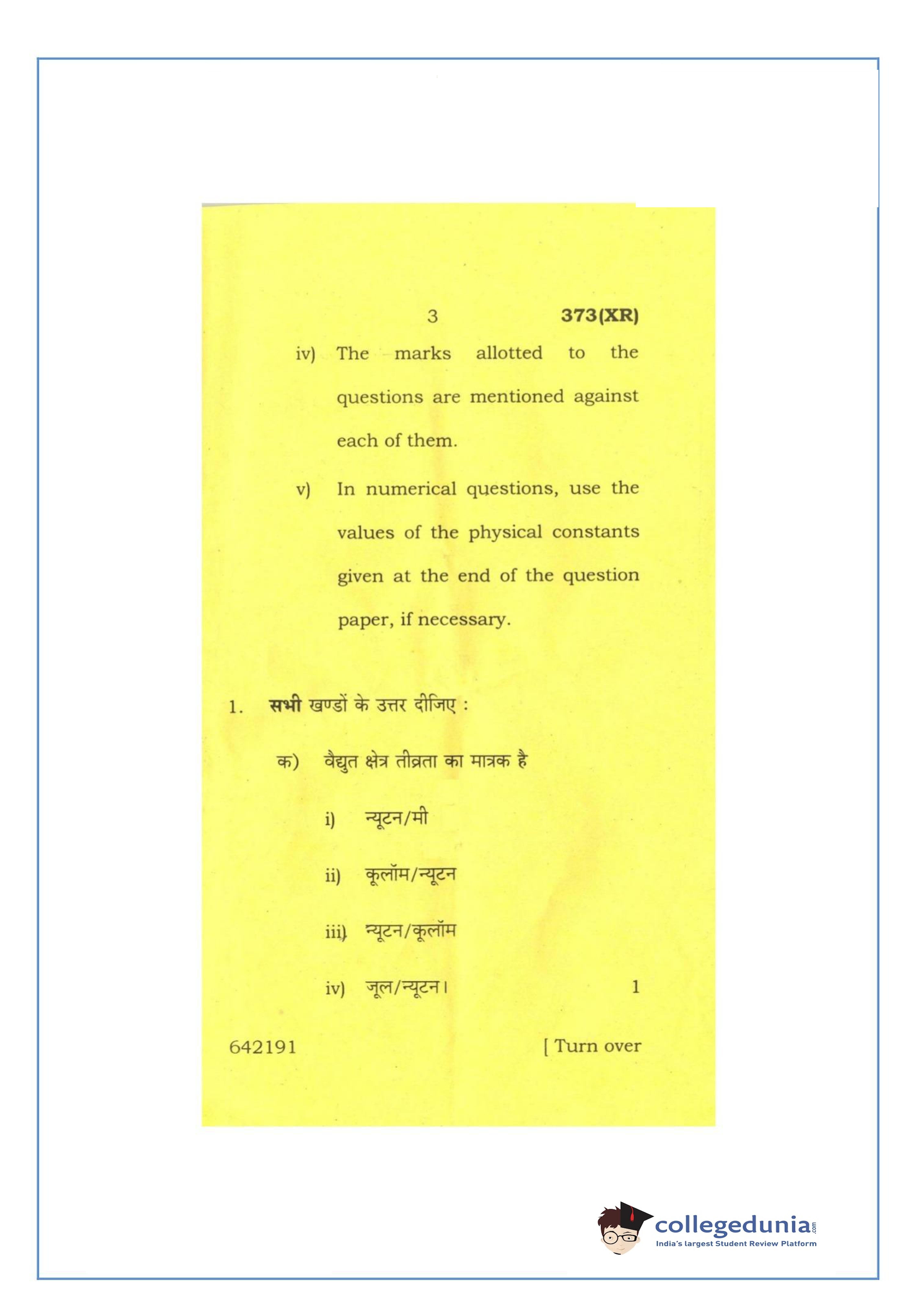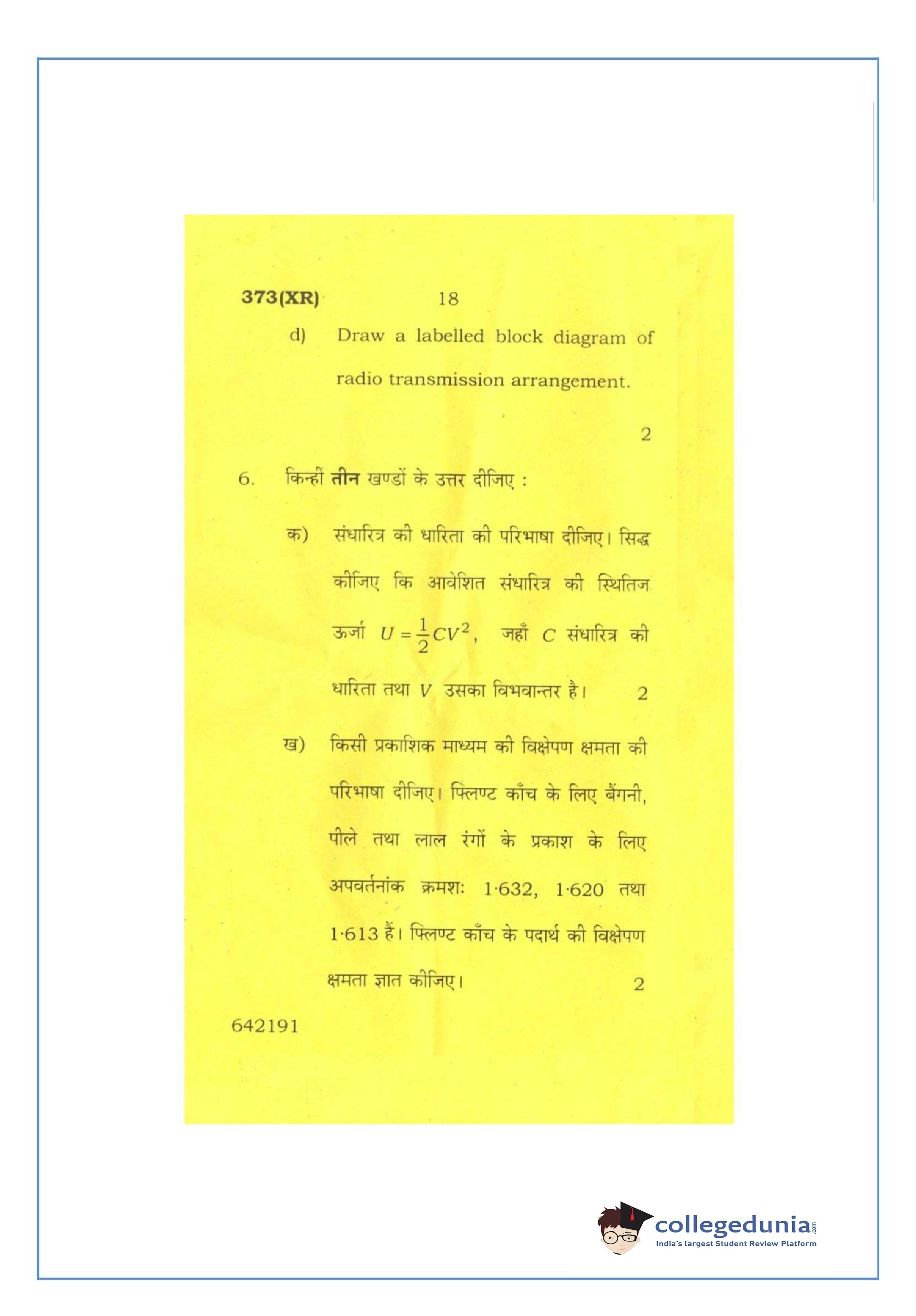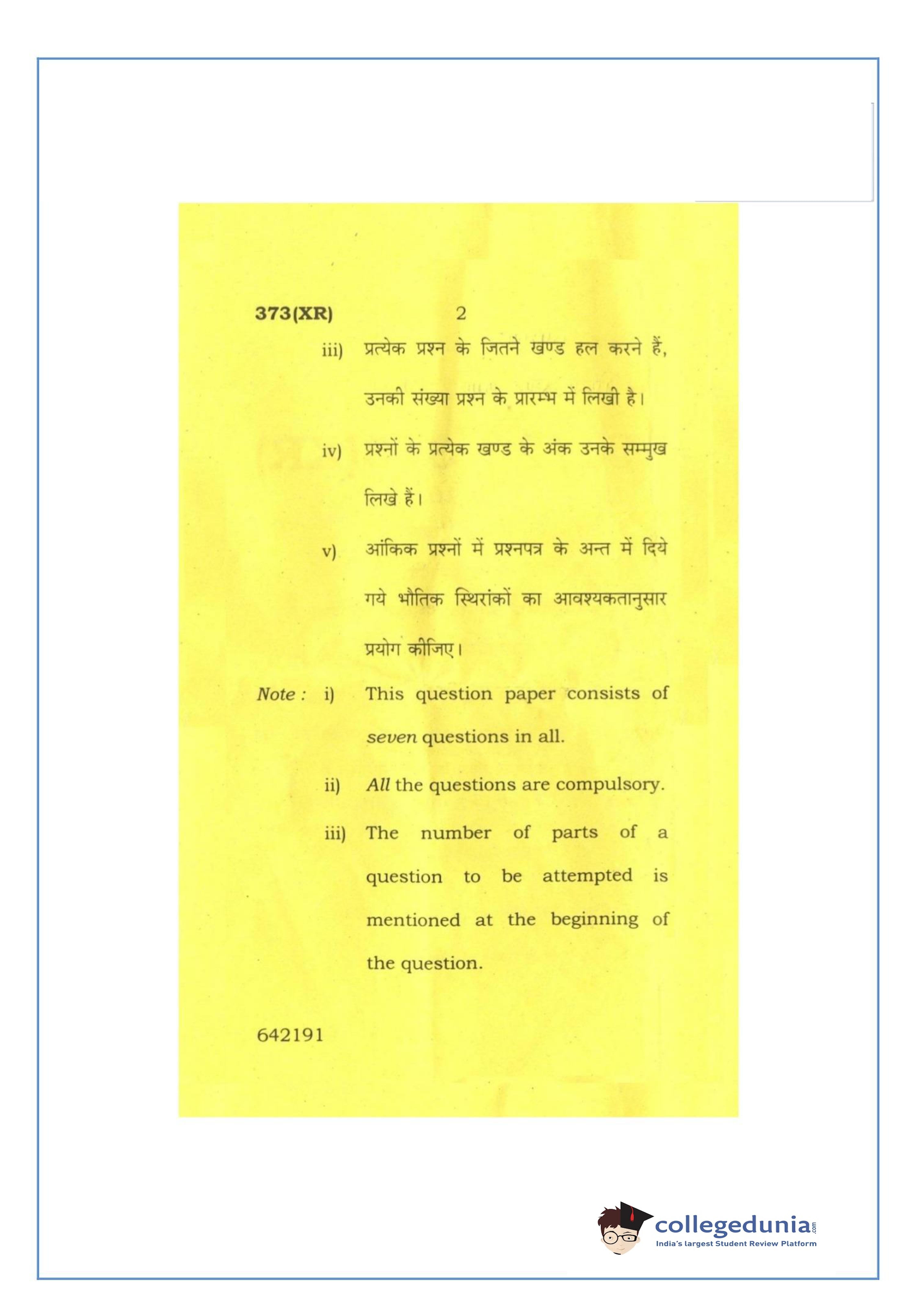 UP Board Class 12 Physics-2 Question Paper 2016 with Answer Key Code 373(XR) is available for download. The exam was conducted by the Uttar Pradesh Madhyamik Shiksha Parishad (UPMSP) on February 26, 2016 in the Afternoon Session 2 PM to 5:15 PM. The medium of paper was English and Hindi. The question paper comprised a total of 7 questions.