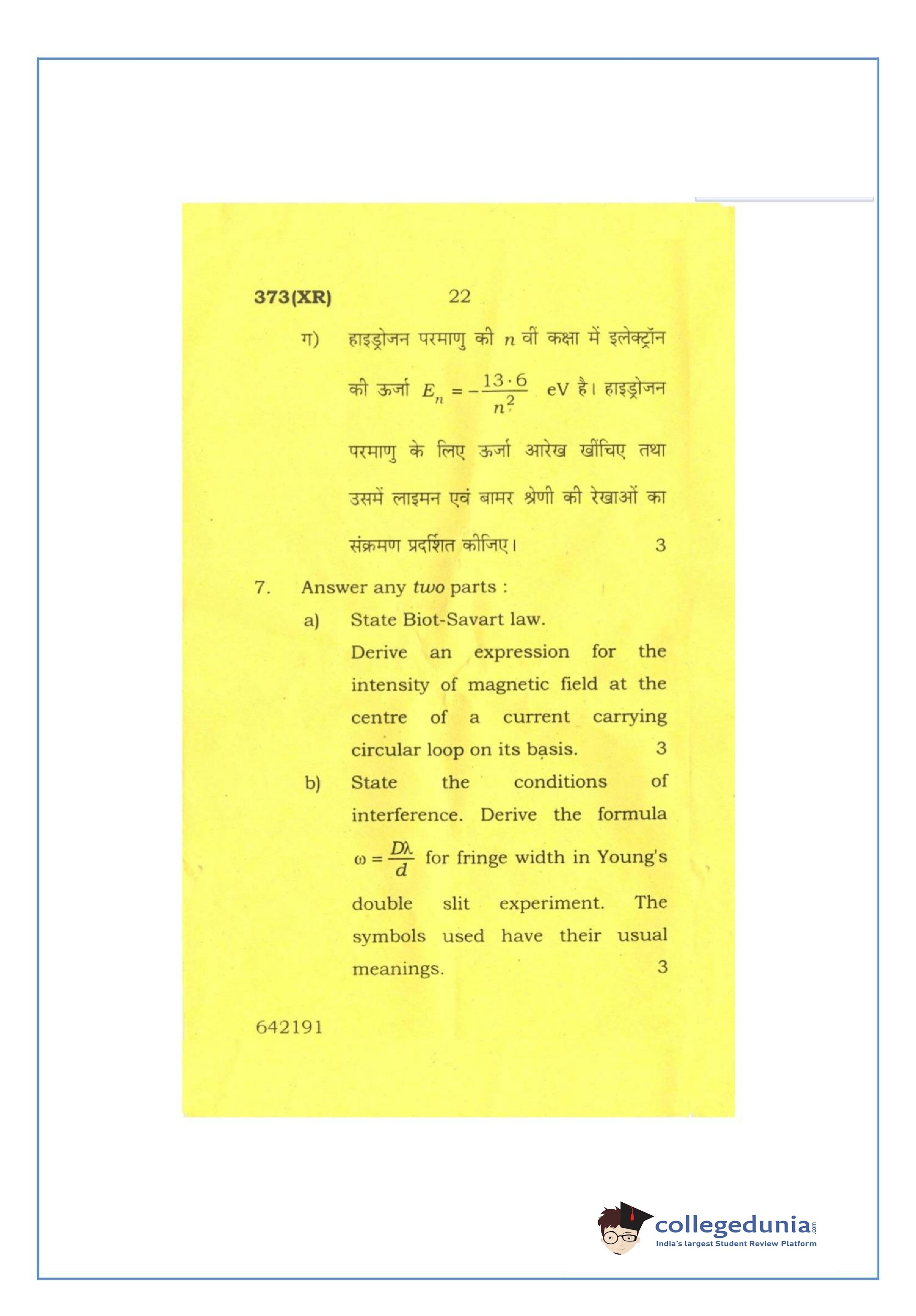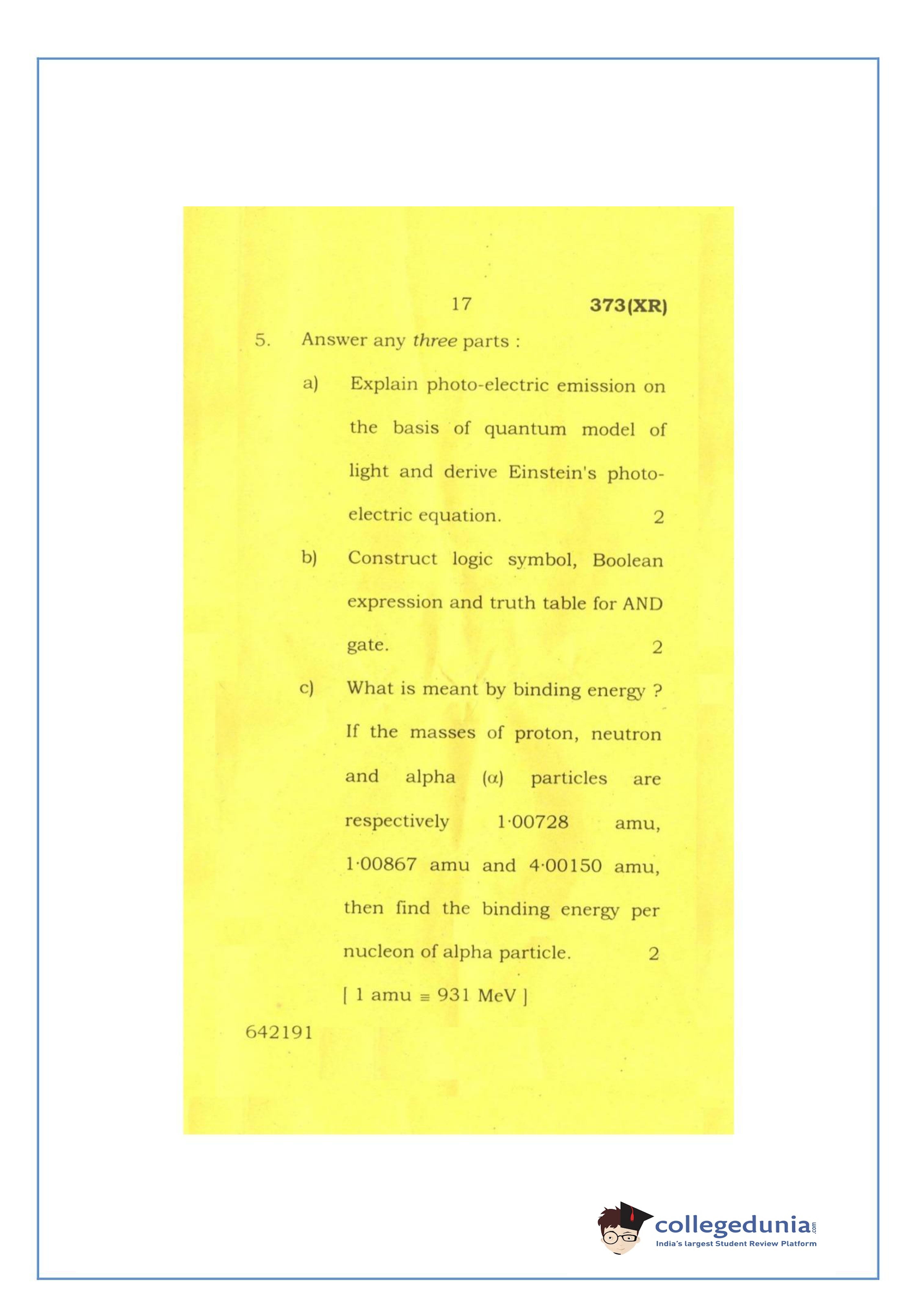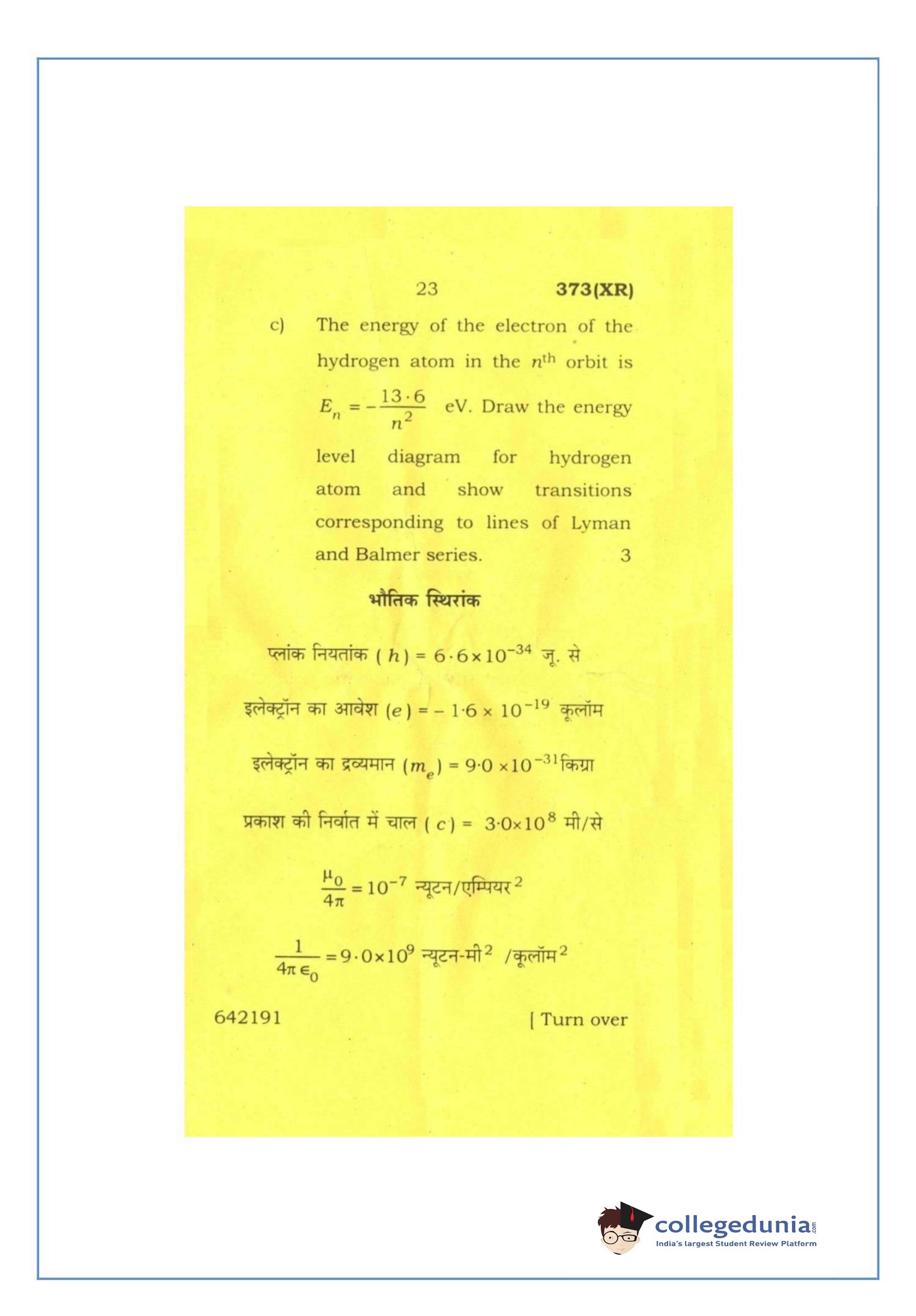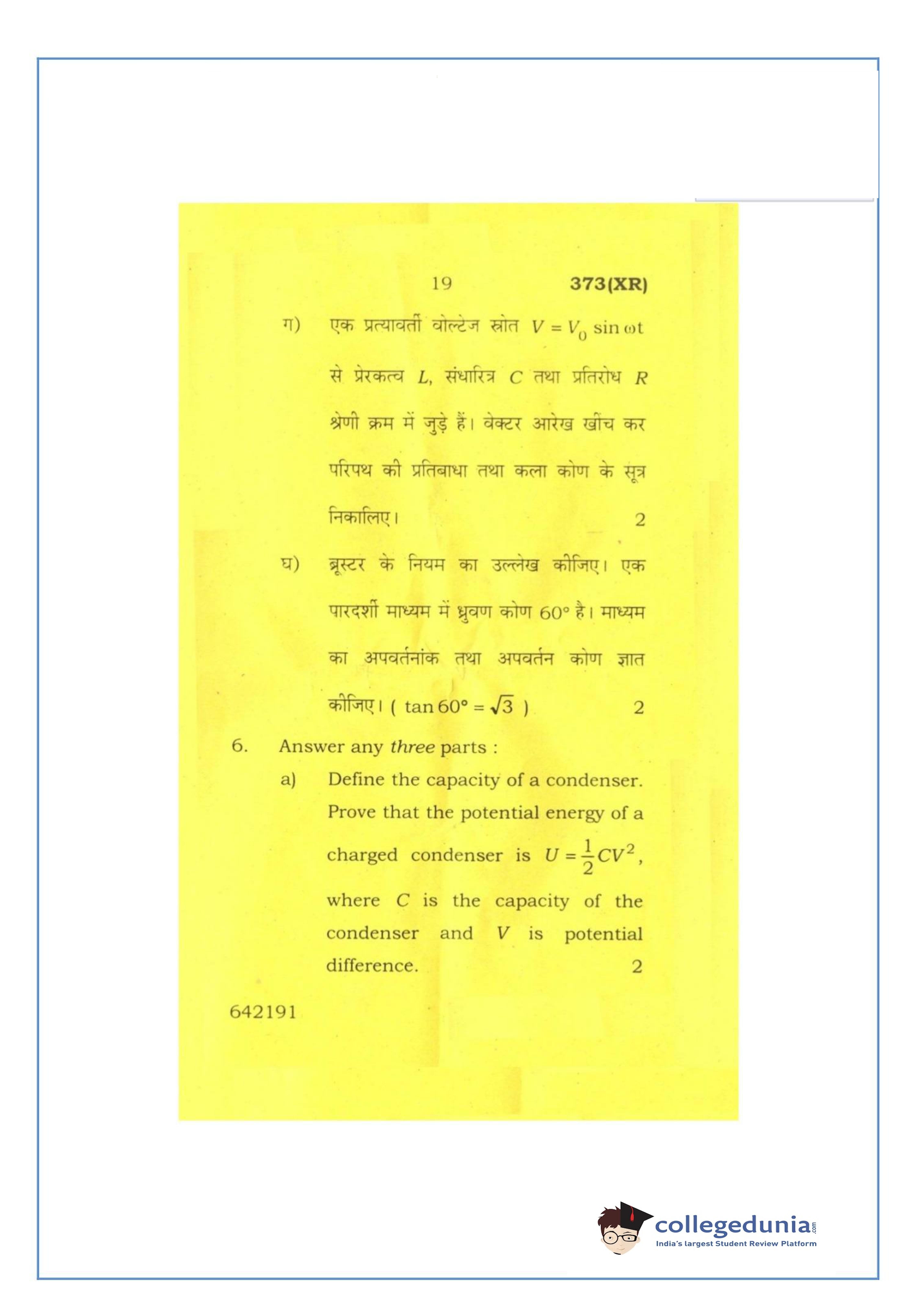UP Board Class 12 Physics-2 Question Paper 2016 with Answer Key Code 373(XR) is available for download. The exam was conducted by the Uttar Pradesh Madhyamik Shiksha Parishad (UPMSP) on February 26, 2016 in the Afternoon Session 2 PM to 5:15 PM. The medium of paper was English and Hindi. The question paper comprised a total of 7 questions.