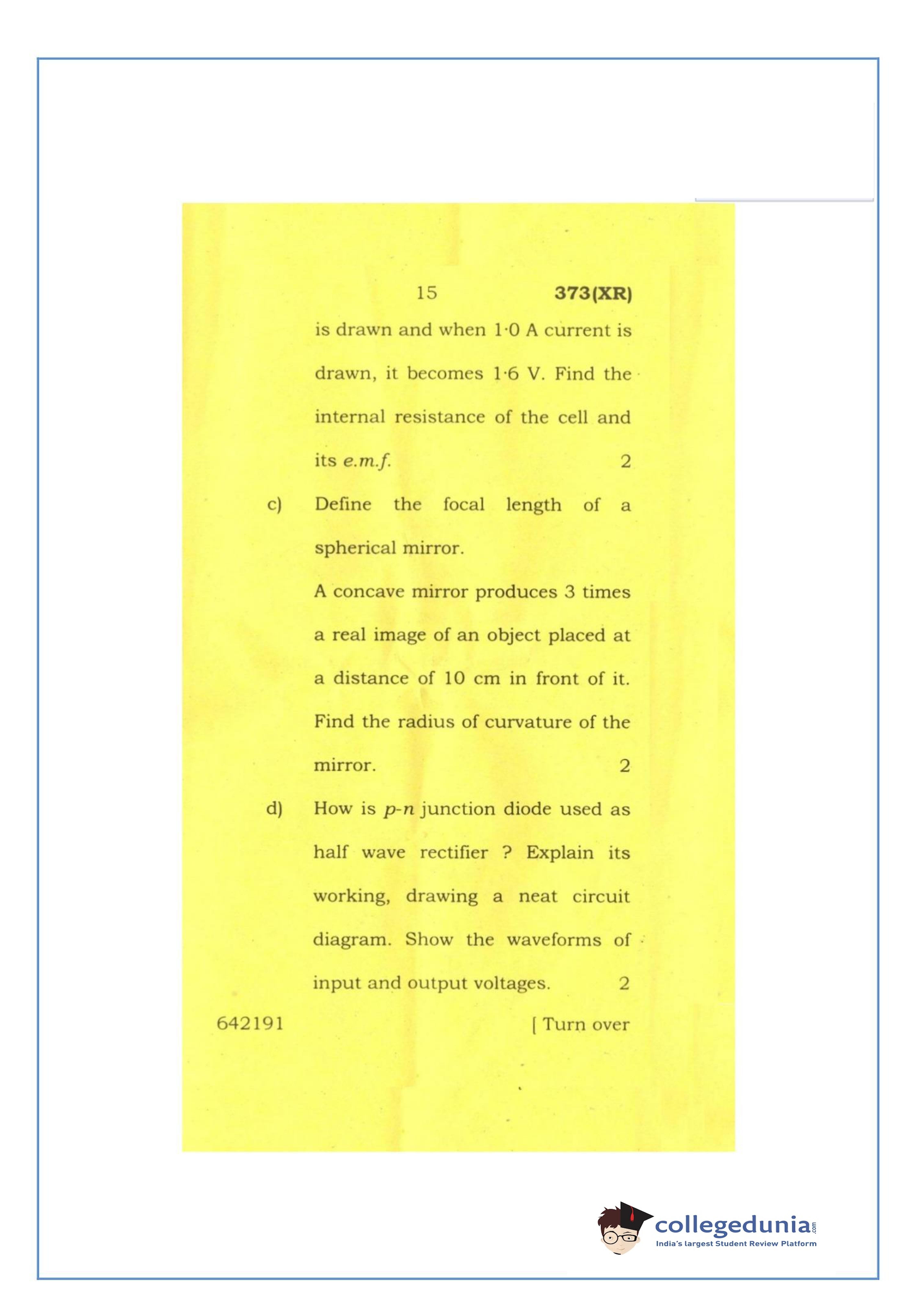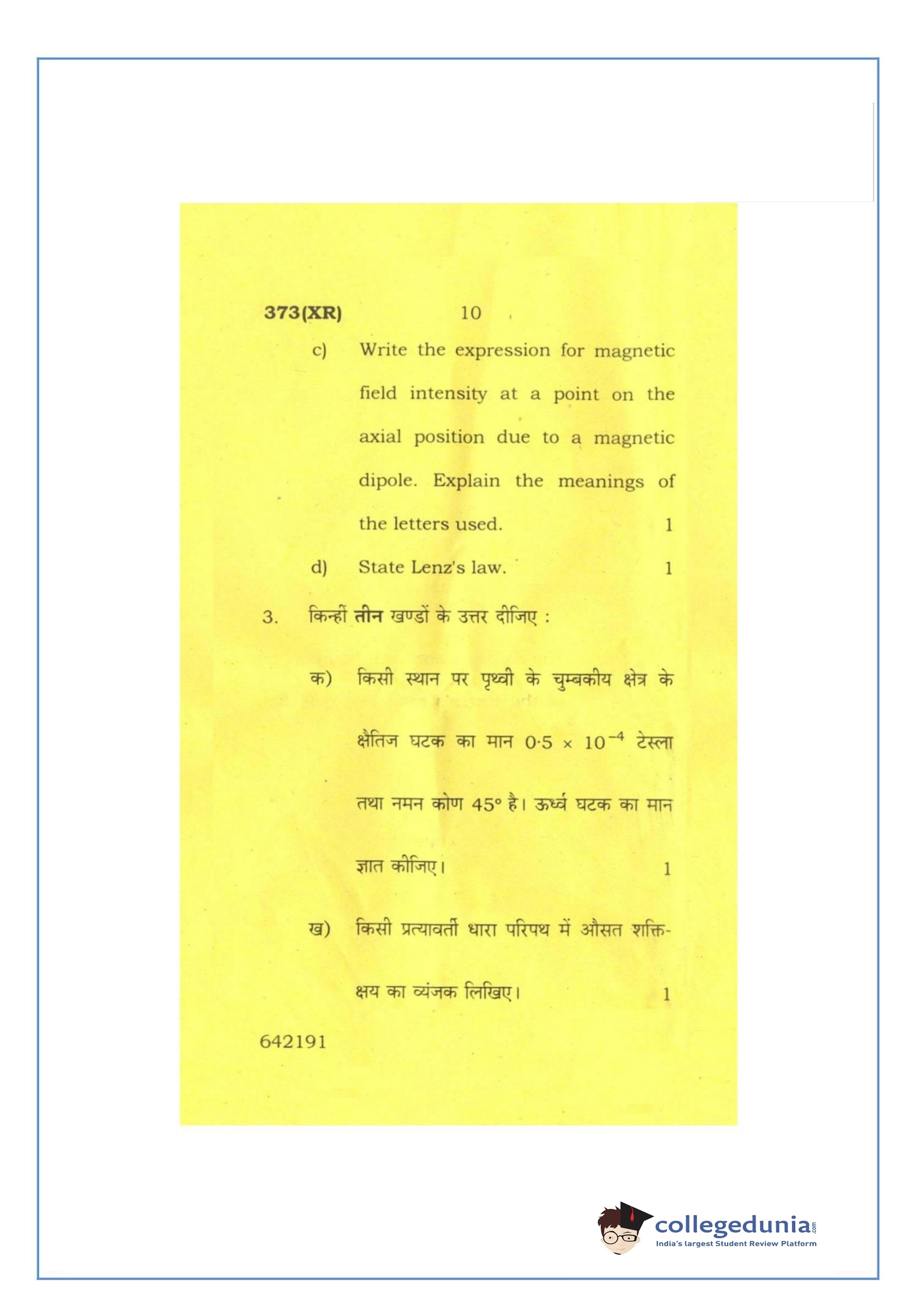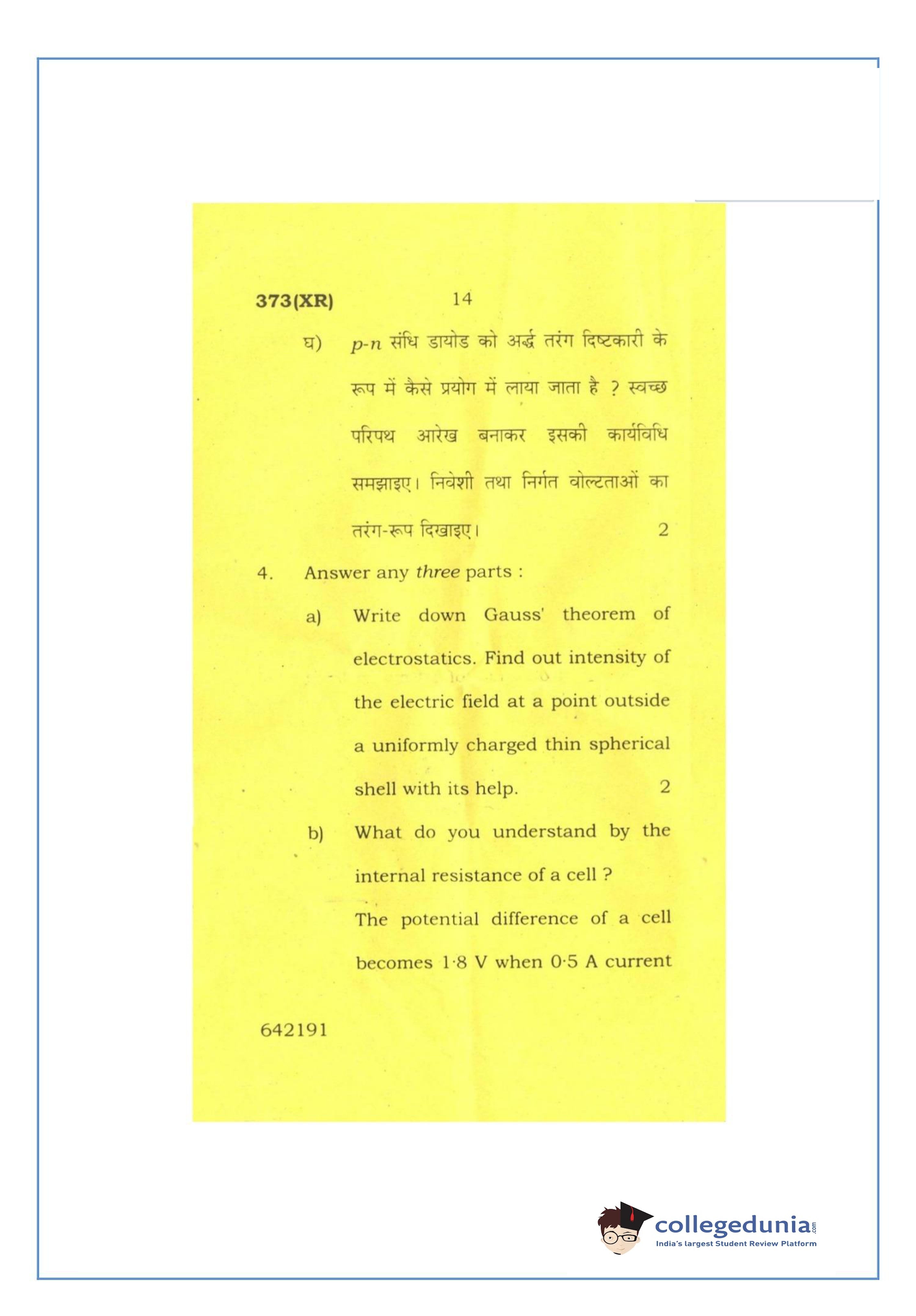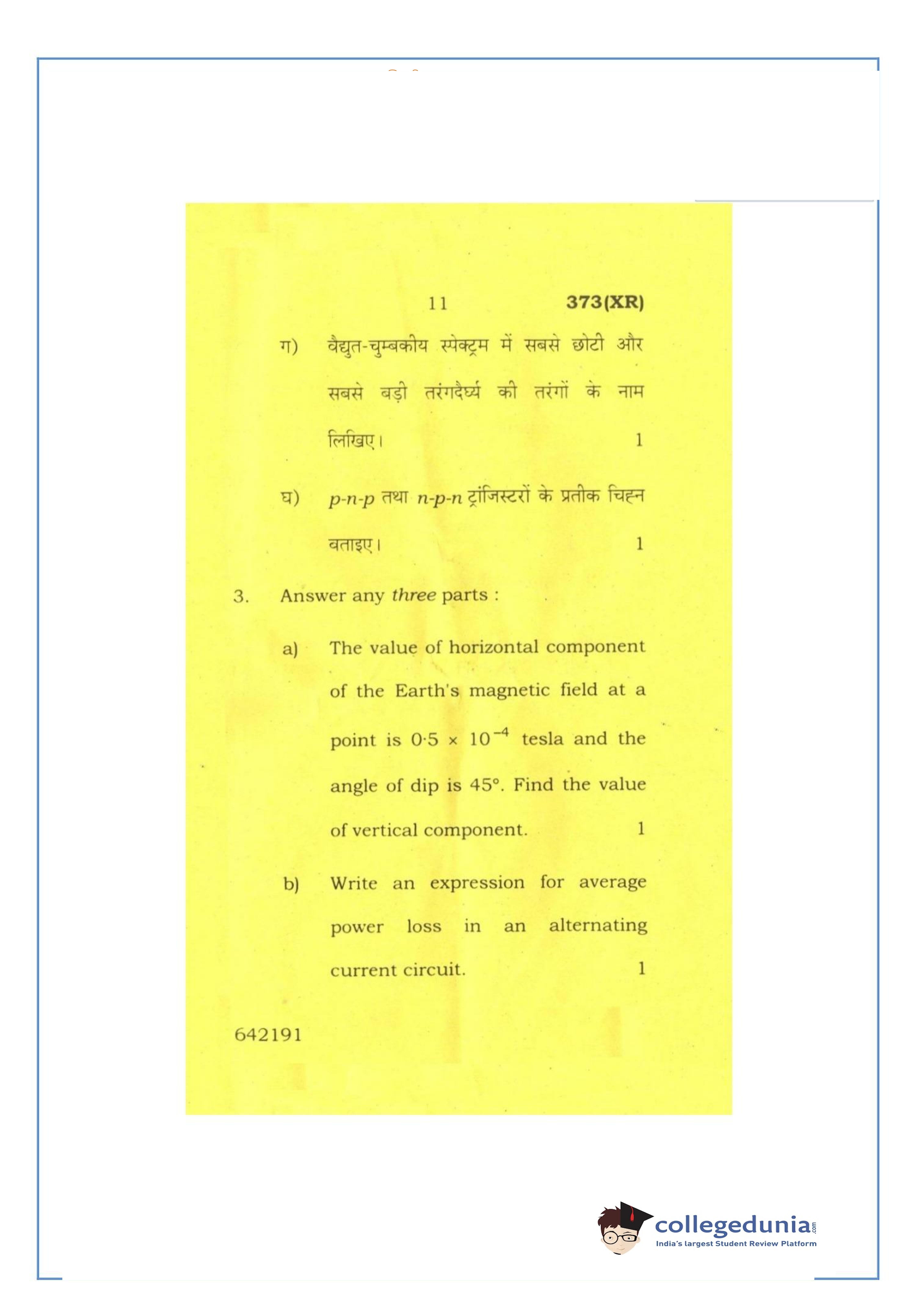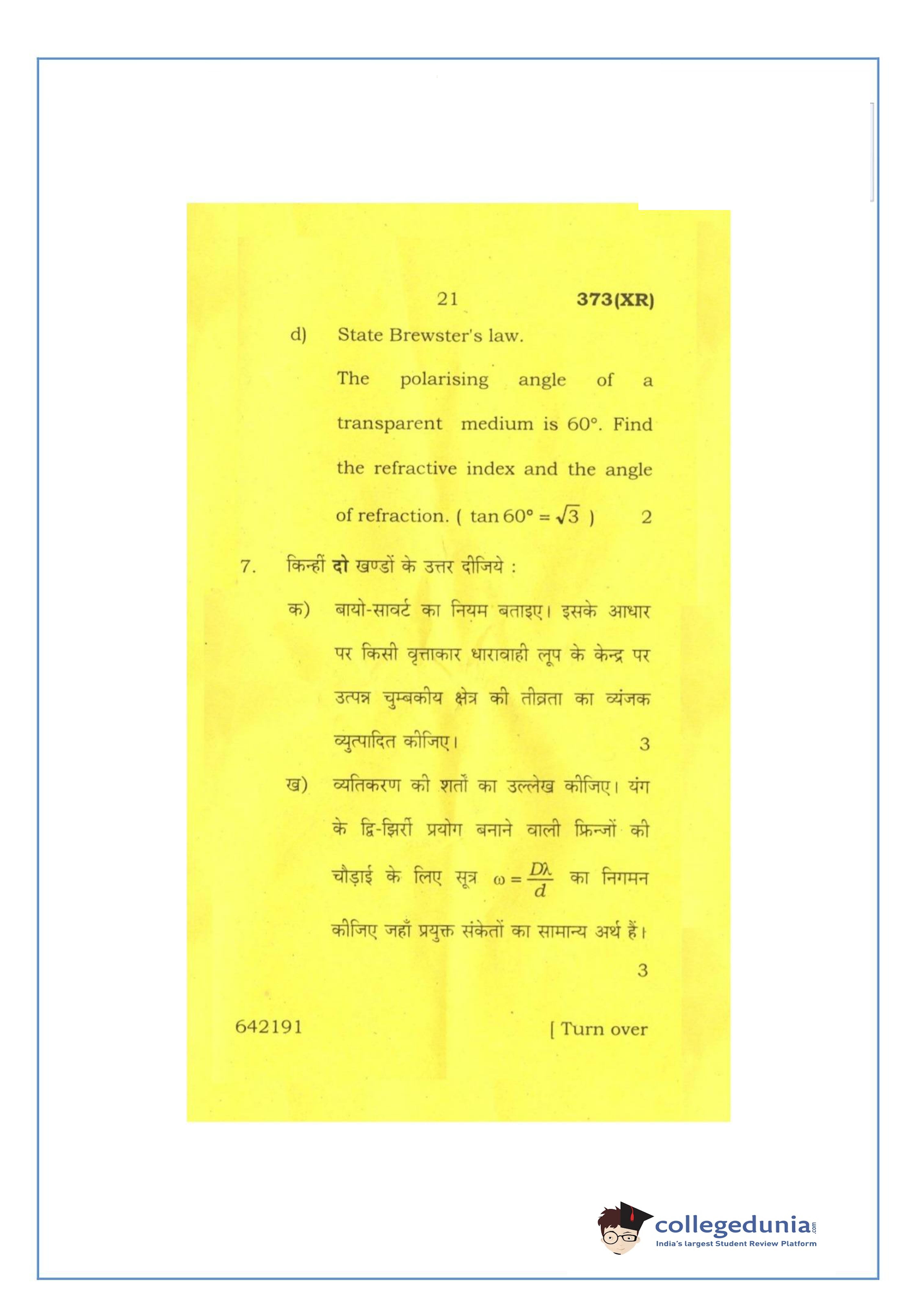 UP Board Class 12 Physics-2 Question Paper 2016 with Answer Key Code 373(XR) is available for download. The exam was conducted by the Uttar Pradesh Madhyamik Shiksha Parishad (UPMSP) on February 26, 2016 in the Afternoon Session 2 PM to 5:15 PM. The medium of paper was English and Hindi. The question paper comprised a total of 7 questions.
