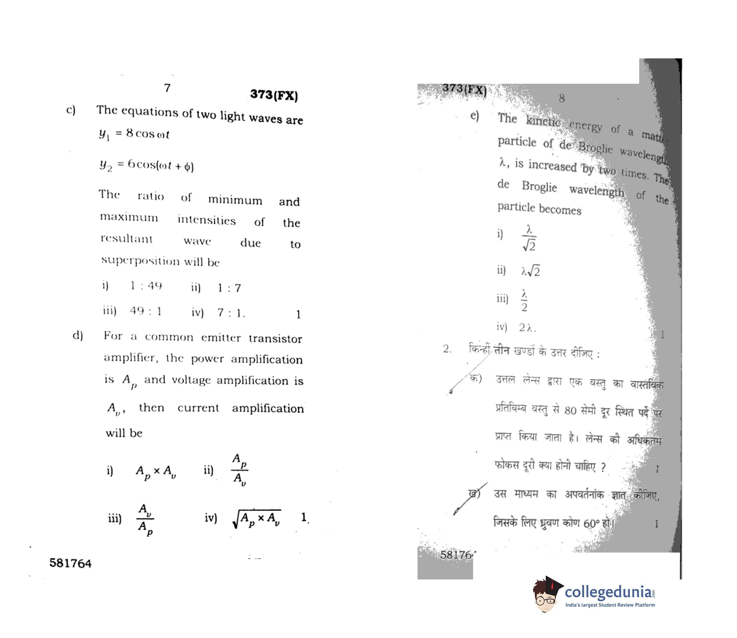 UP Board Class 12 Physics-2 Question Paper 2018 with Answer Key Code 373(FX) is available for download. The exam was conducted by the Uttar Pradesh Madhyamik Shiksha Parishad (UPMSP) on February 17, 2018 in the Afternoon Session 2 PM to 5:15 PM. The medium of paper was English and Hindi. The question paper comprised a total of 7 questions.