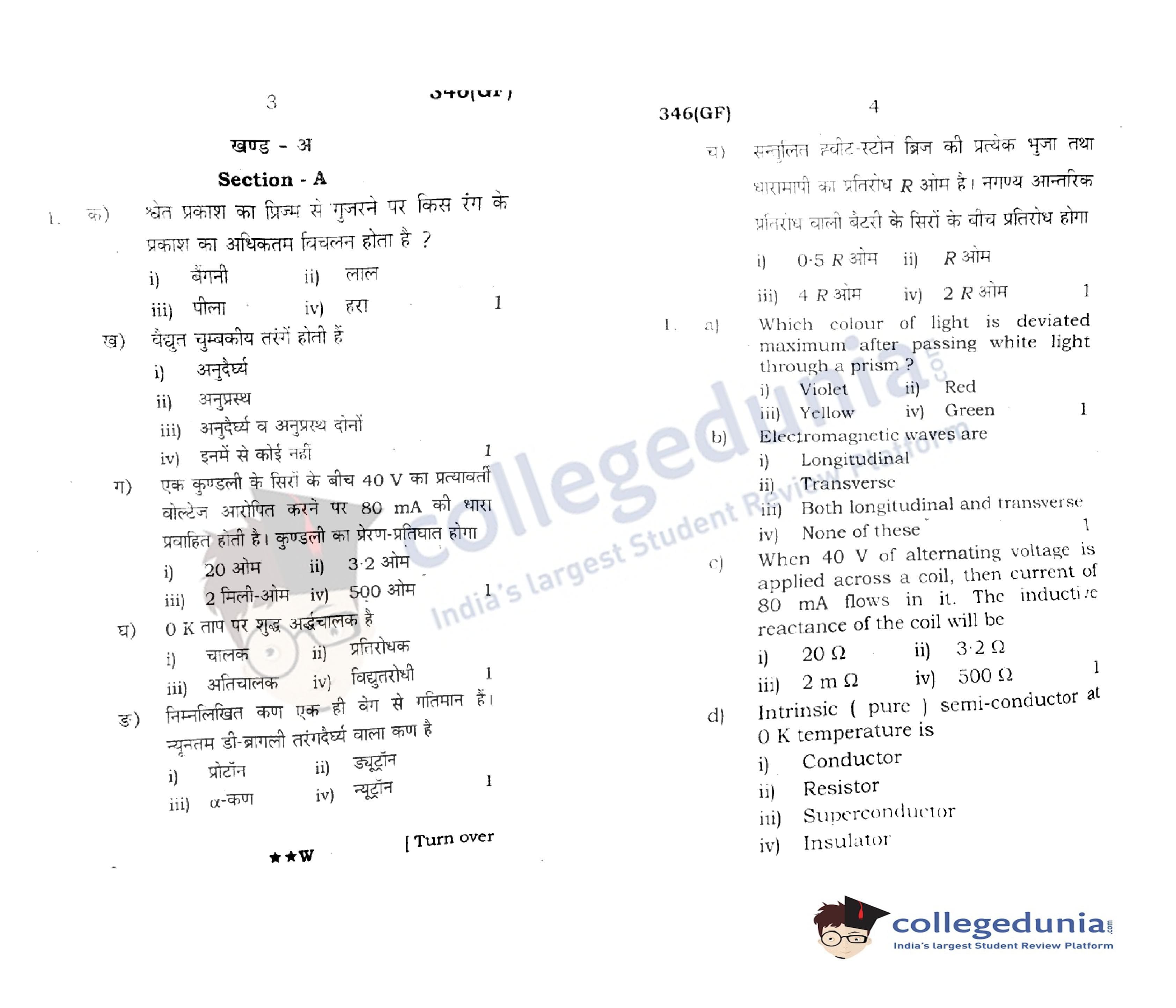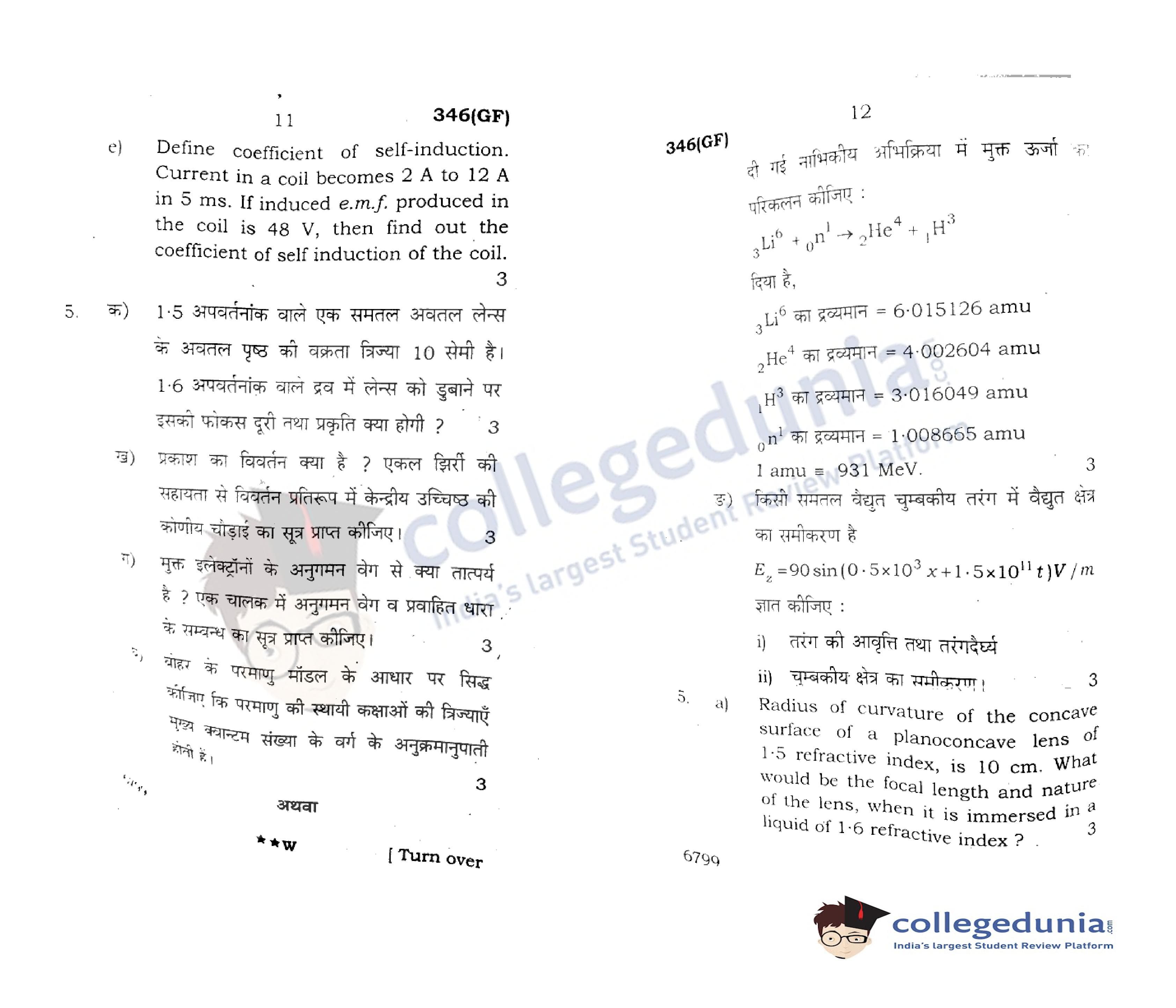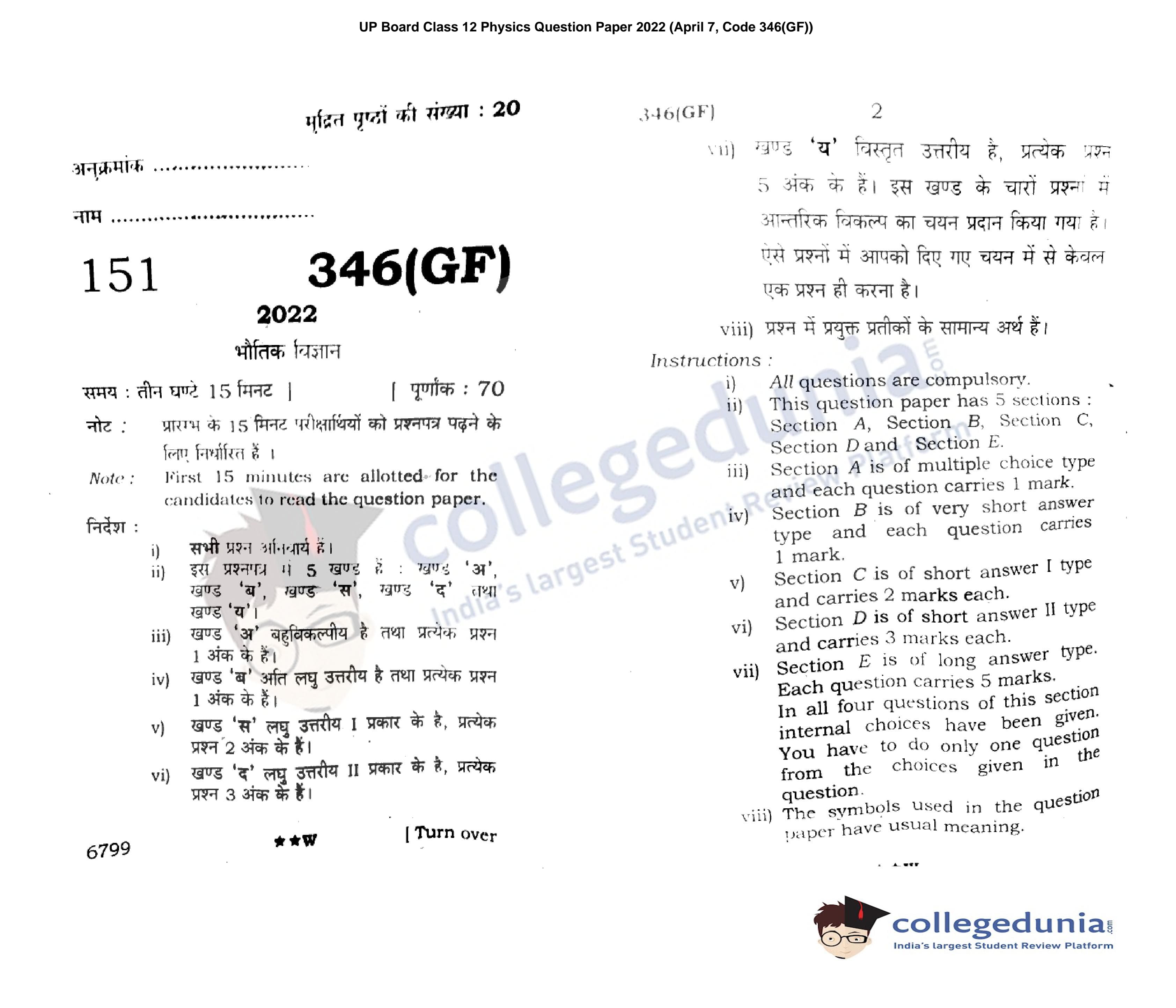 UP Board Class 12 Physics Question Paper 2022 with Answer Key Code 346(GF) is available for download. The exam was conducted by the Uttar Pradesh Madhyamik Shiksha Parishad (UPMSP) on April 7, 2022 in the Afternoon Session 2 PM to 5:15 PM. The medium of paper was English and Hindi. The question paper comprised a total of 9 questions.