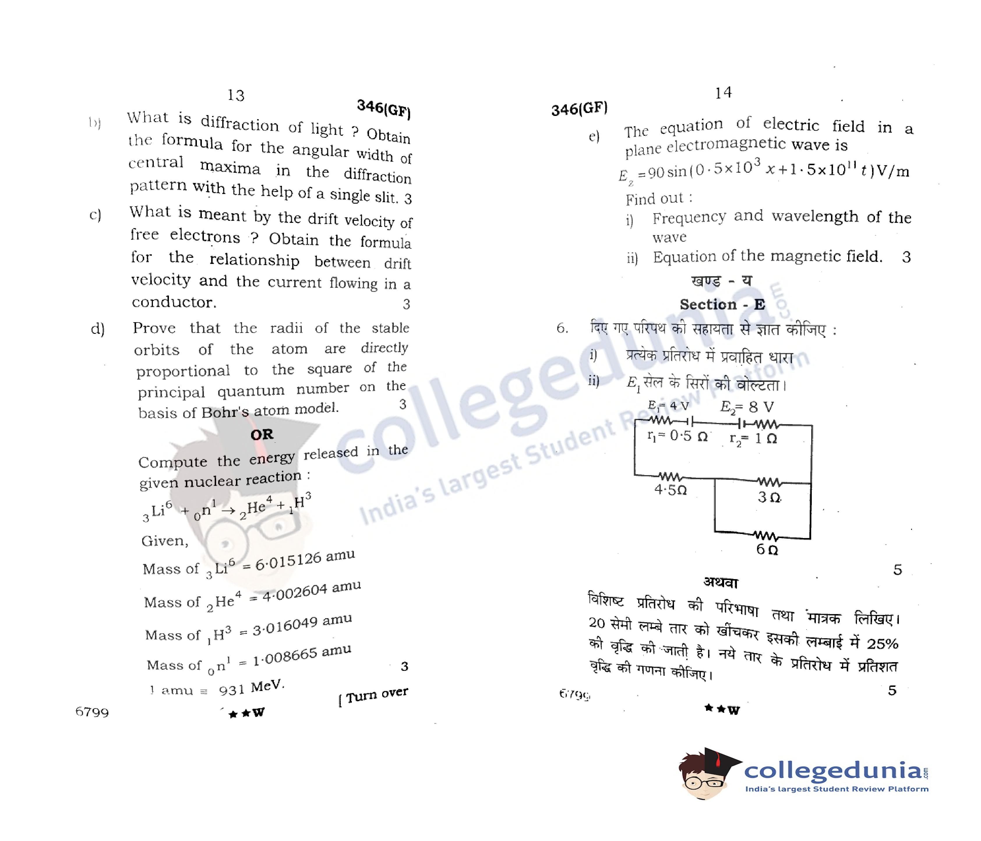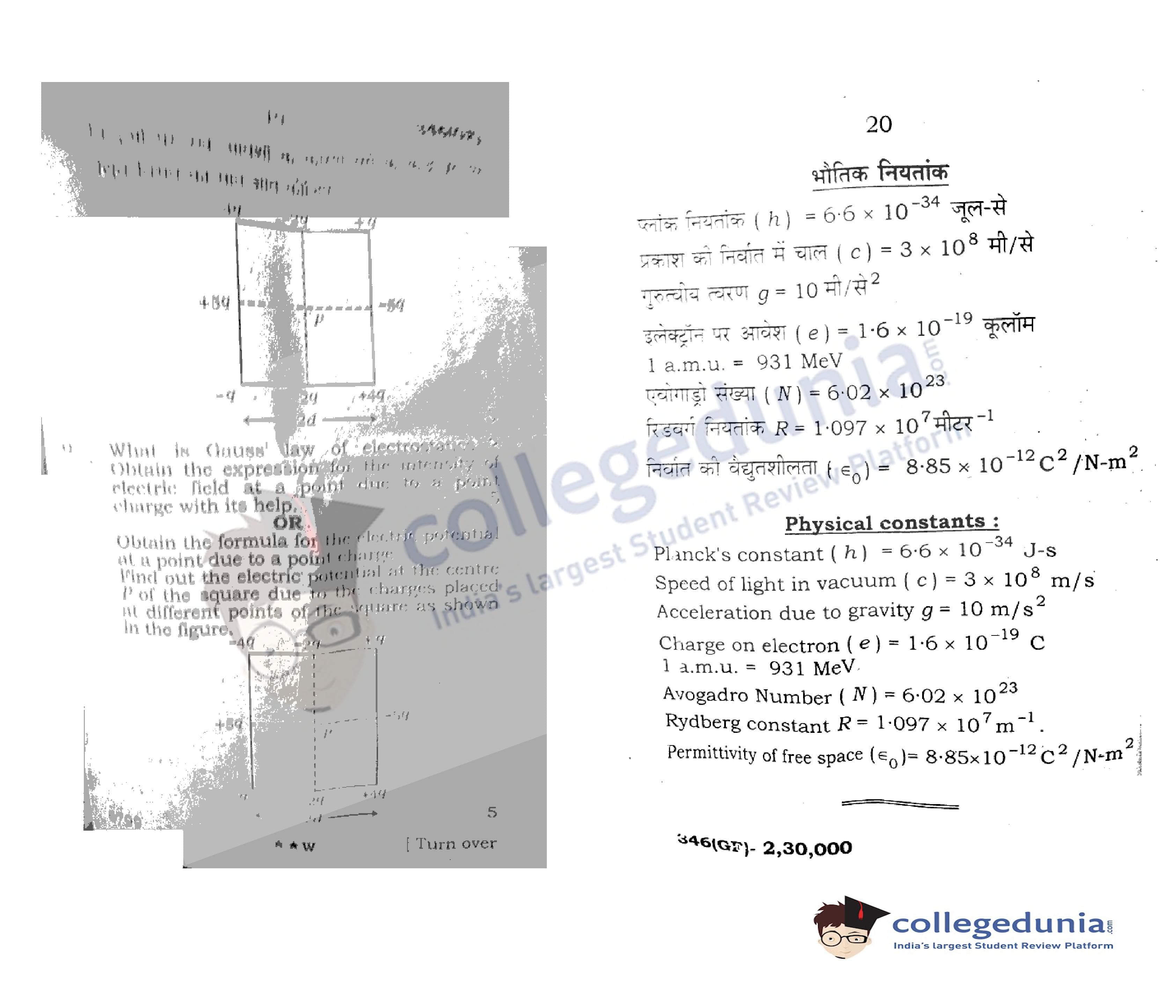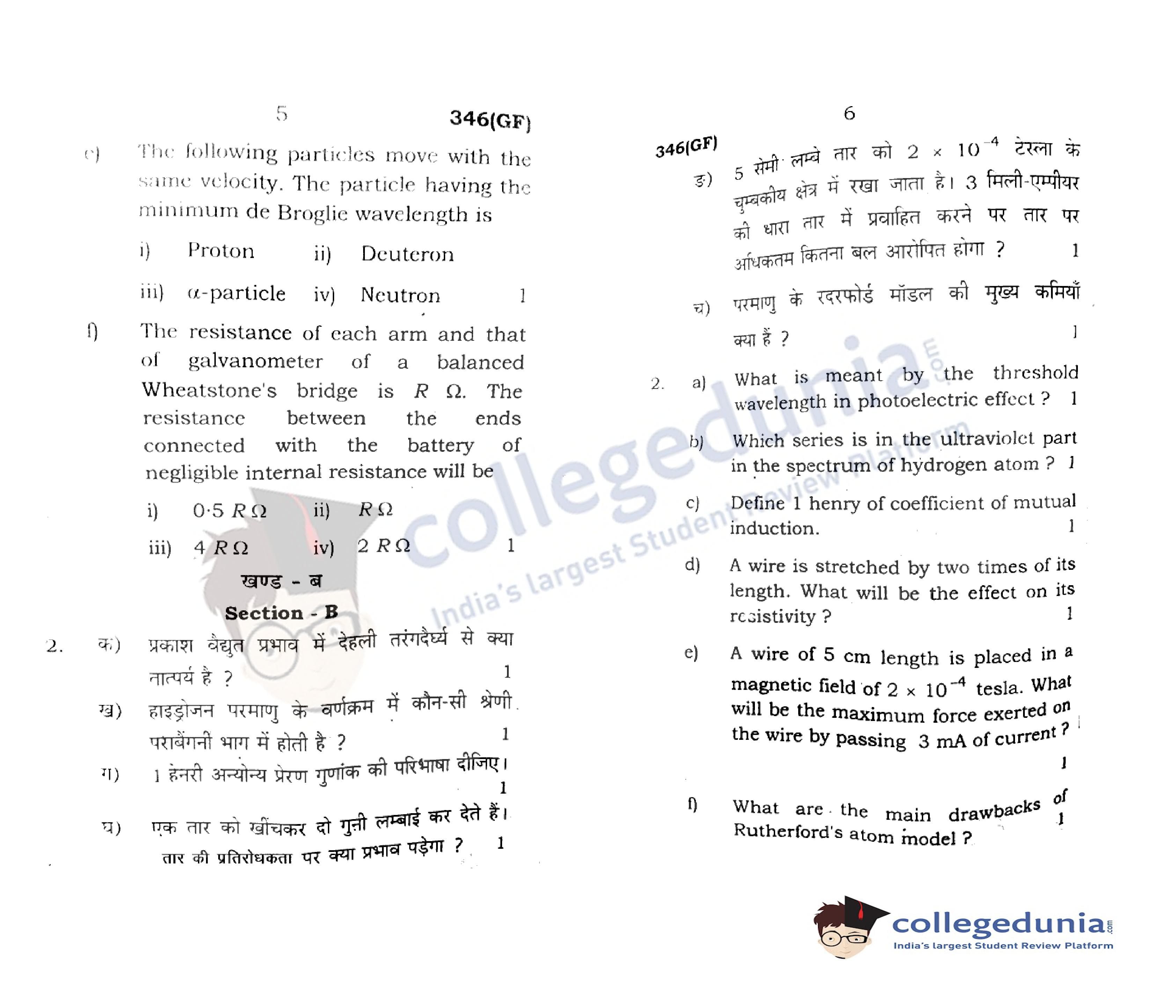 UP Board Class 12 Physics Code 346(GF) Question Paper 2022 with Answer Key (April 7)
