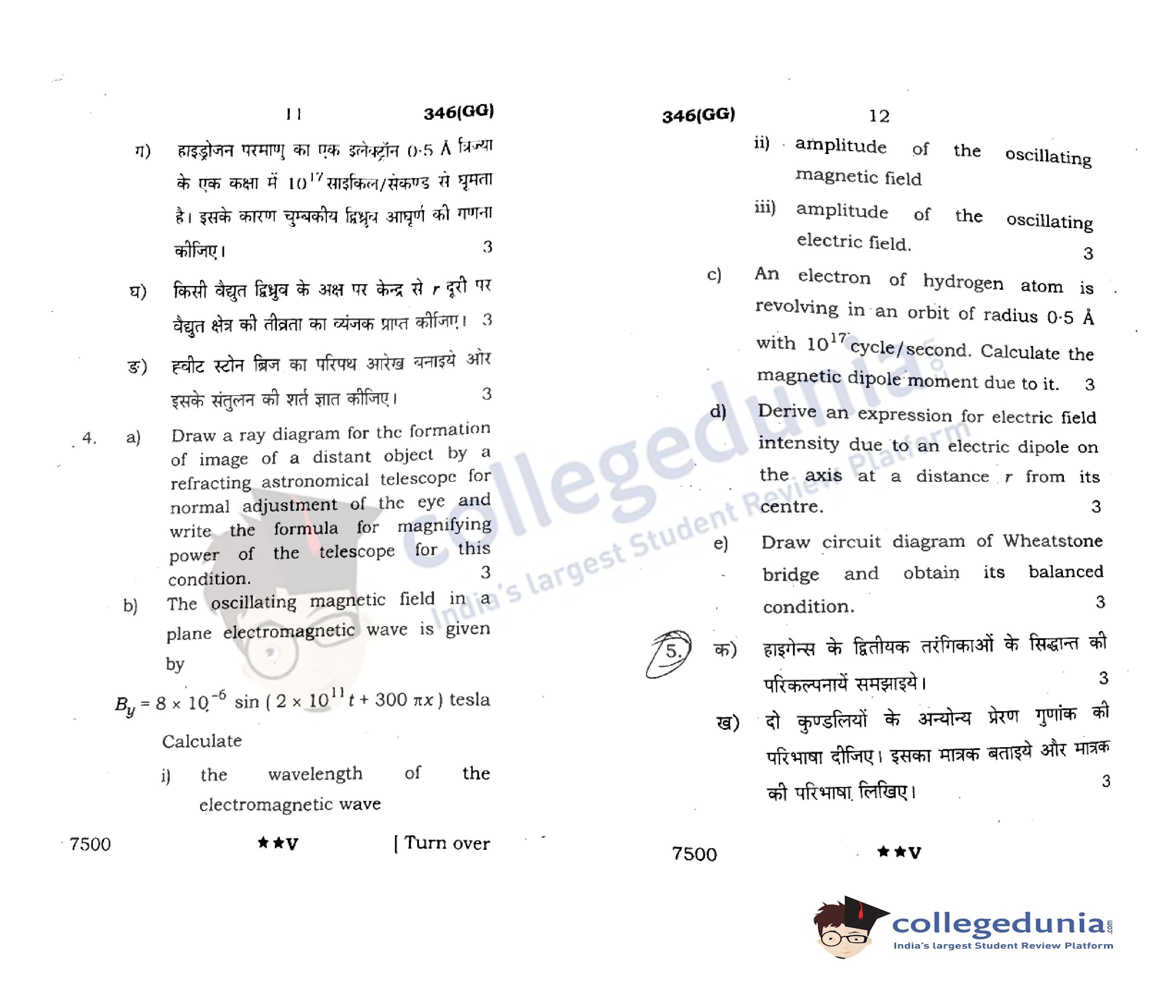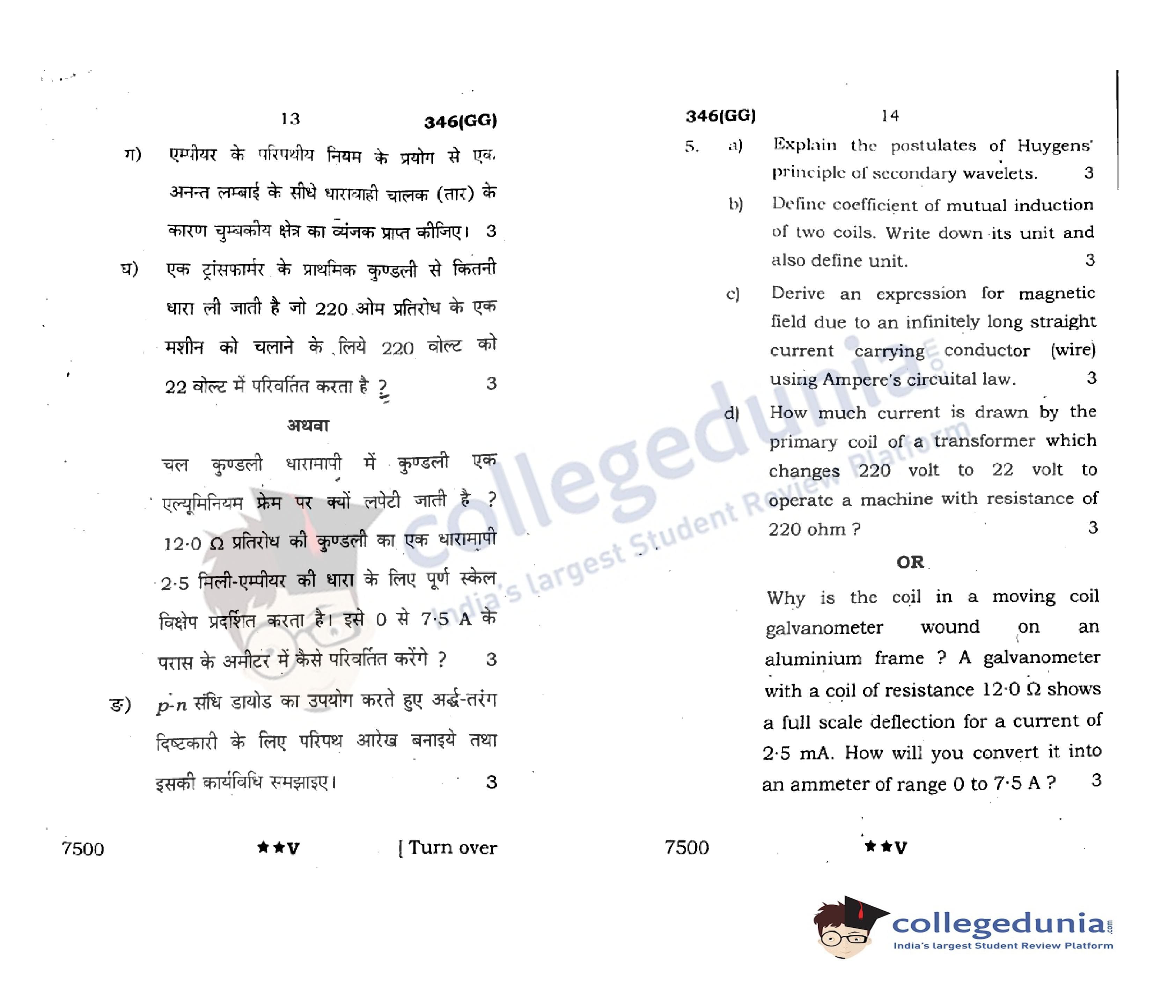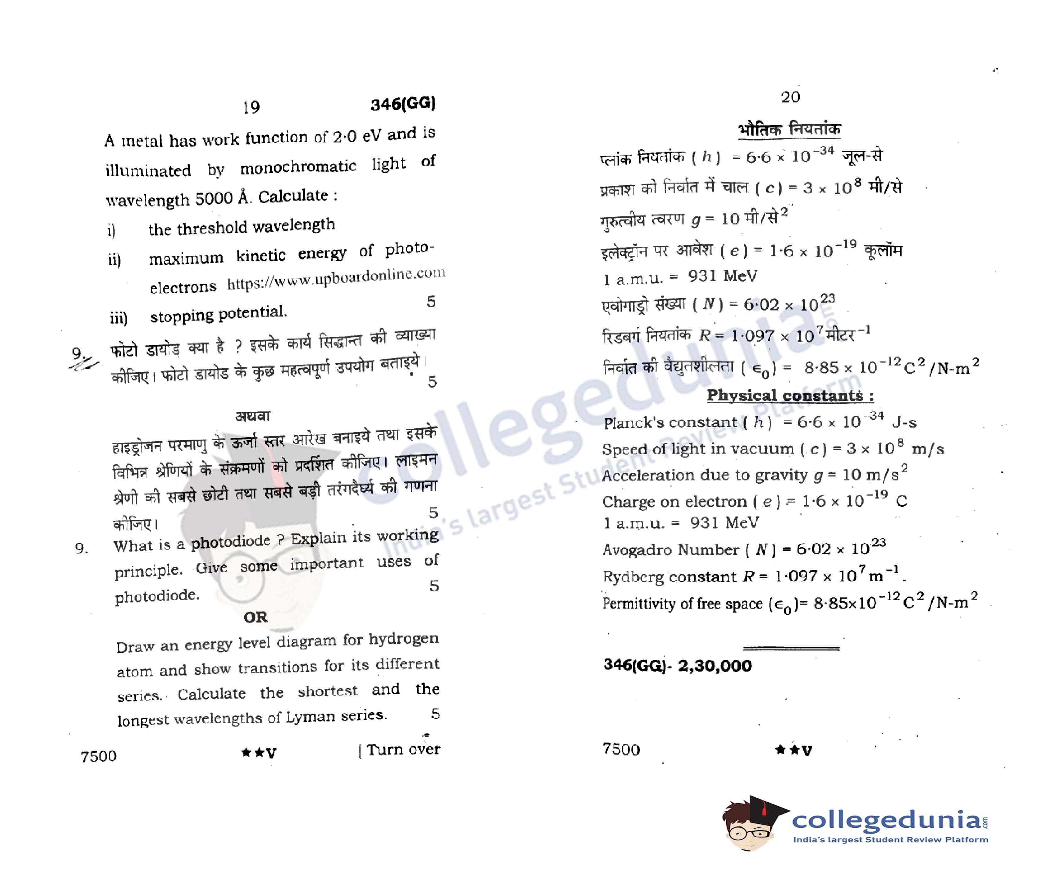 UP Board Class 12 Physics Question Paper 2022 with Answer Key Code 346(GG) is available for download. The exam was conducted by the Uttar Pradesh Madhyamik Shiksha Parishad (UPMSP) on April 7, 2022 in the Afternoon Session 2 PM to 5:15 PM. The medium of paper was English and Hindi. The question paper comprised a total of 9 questions.