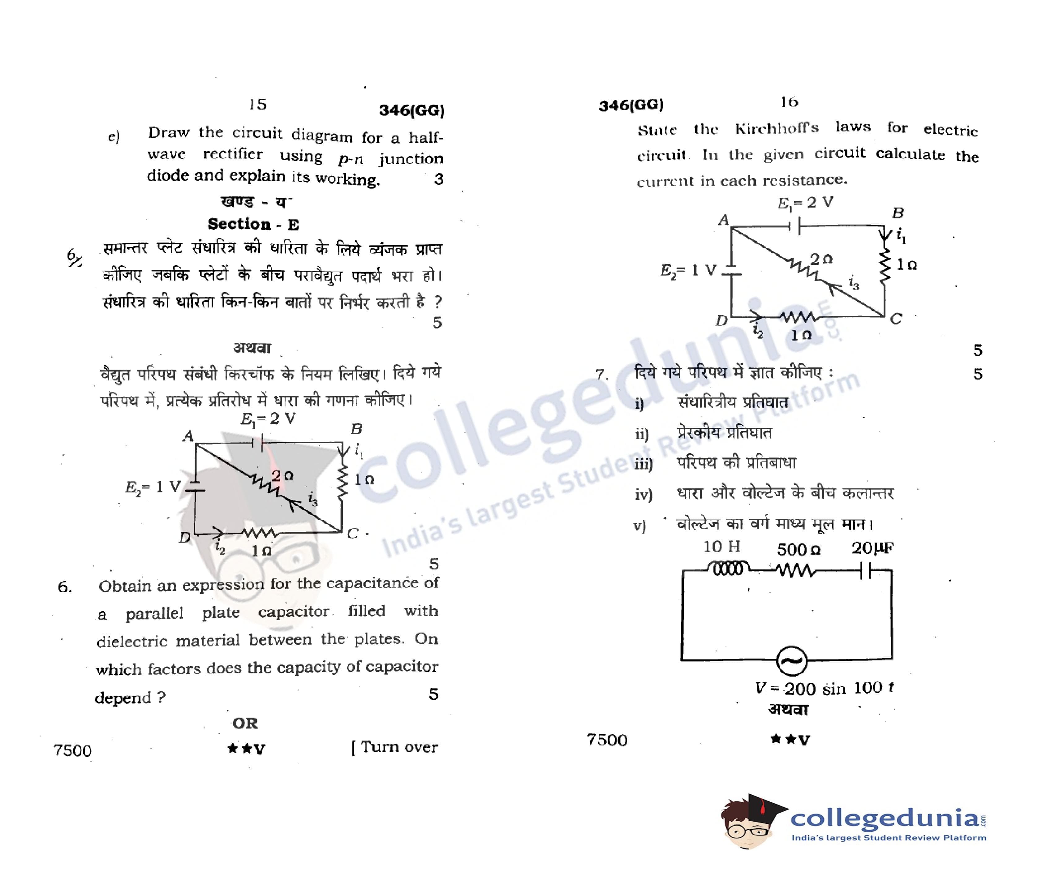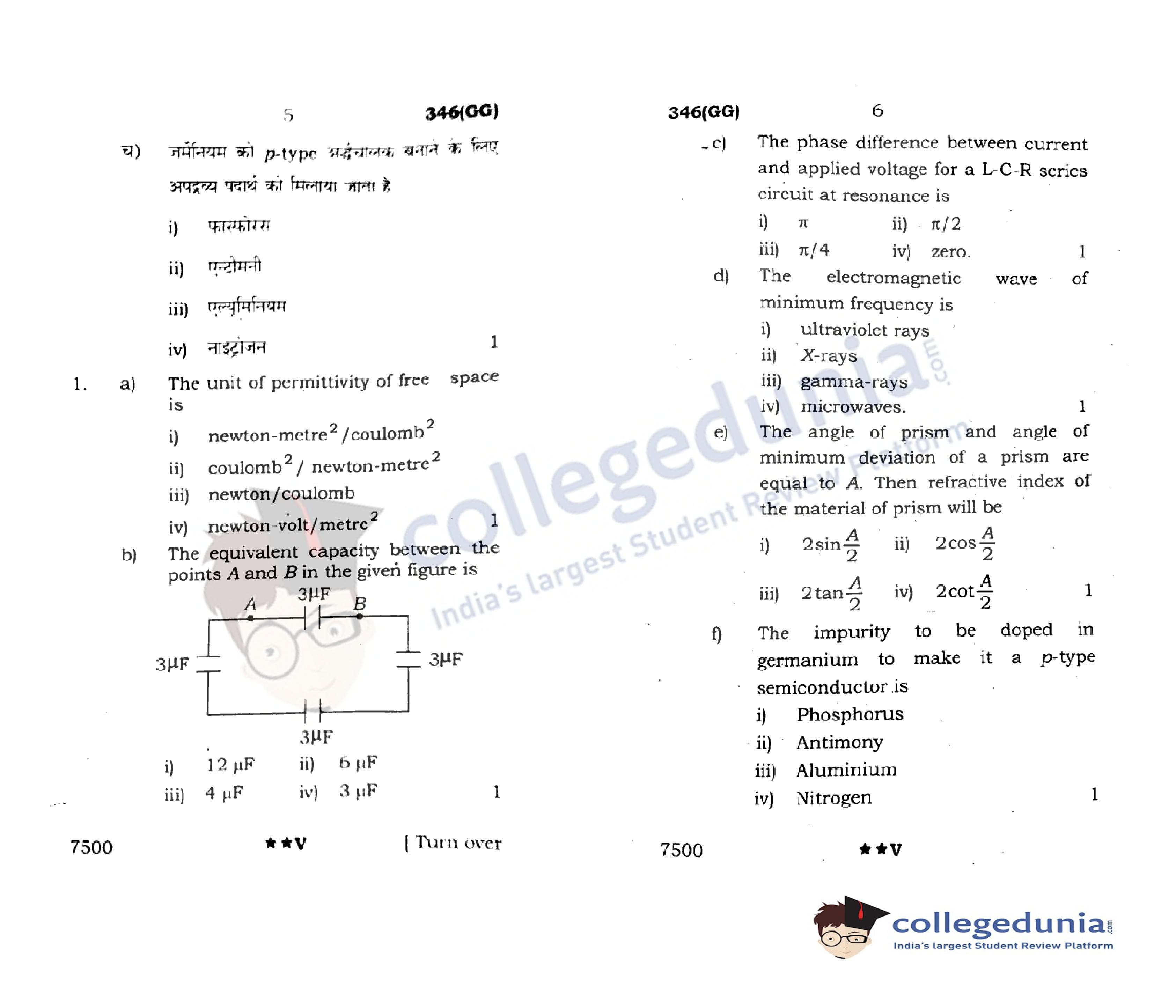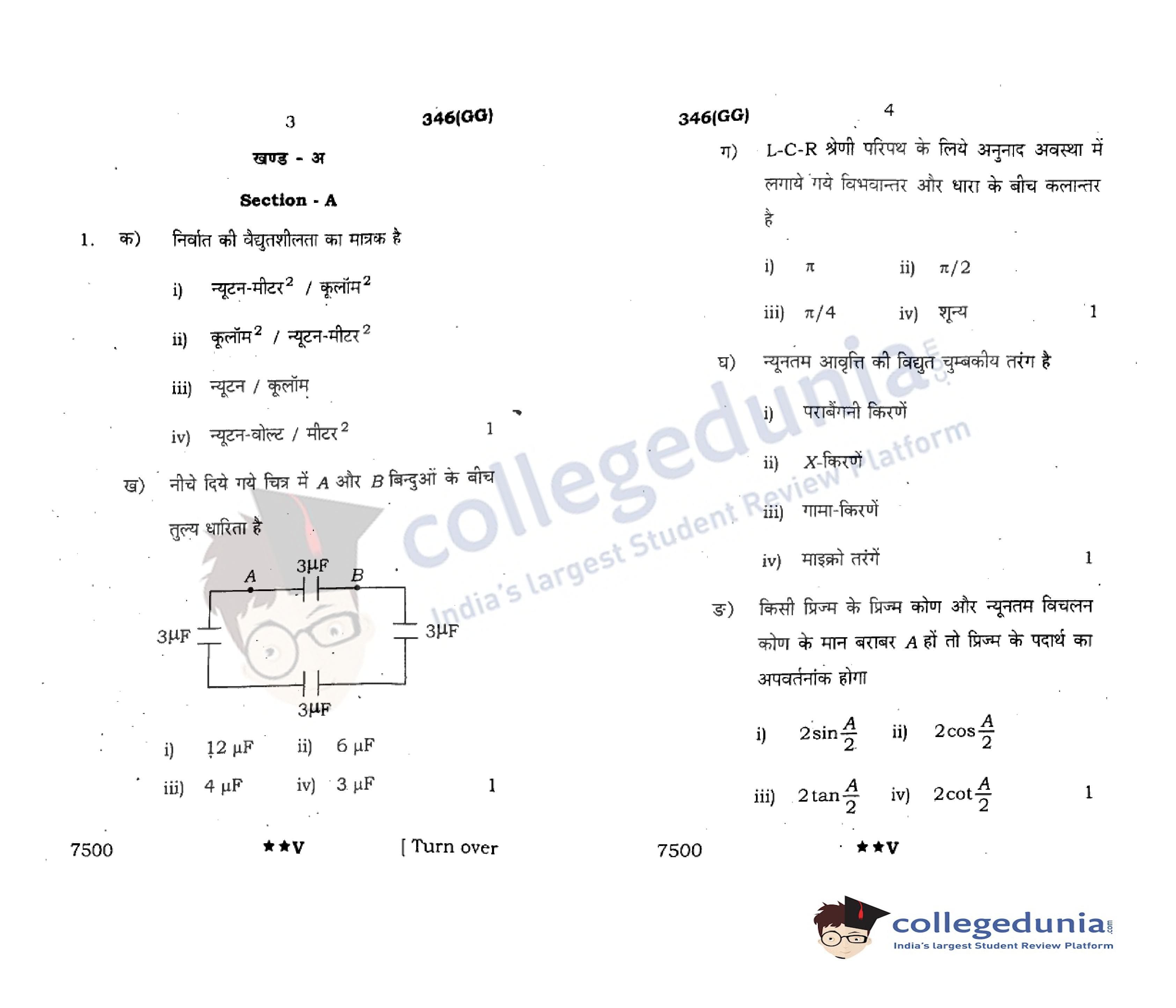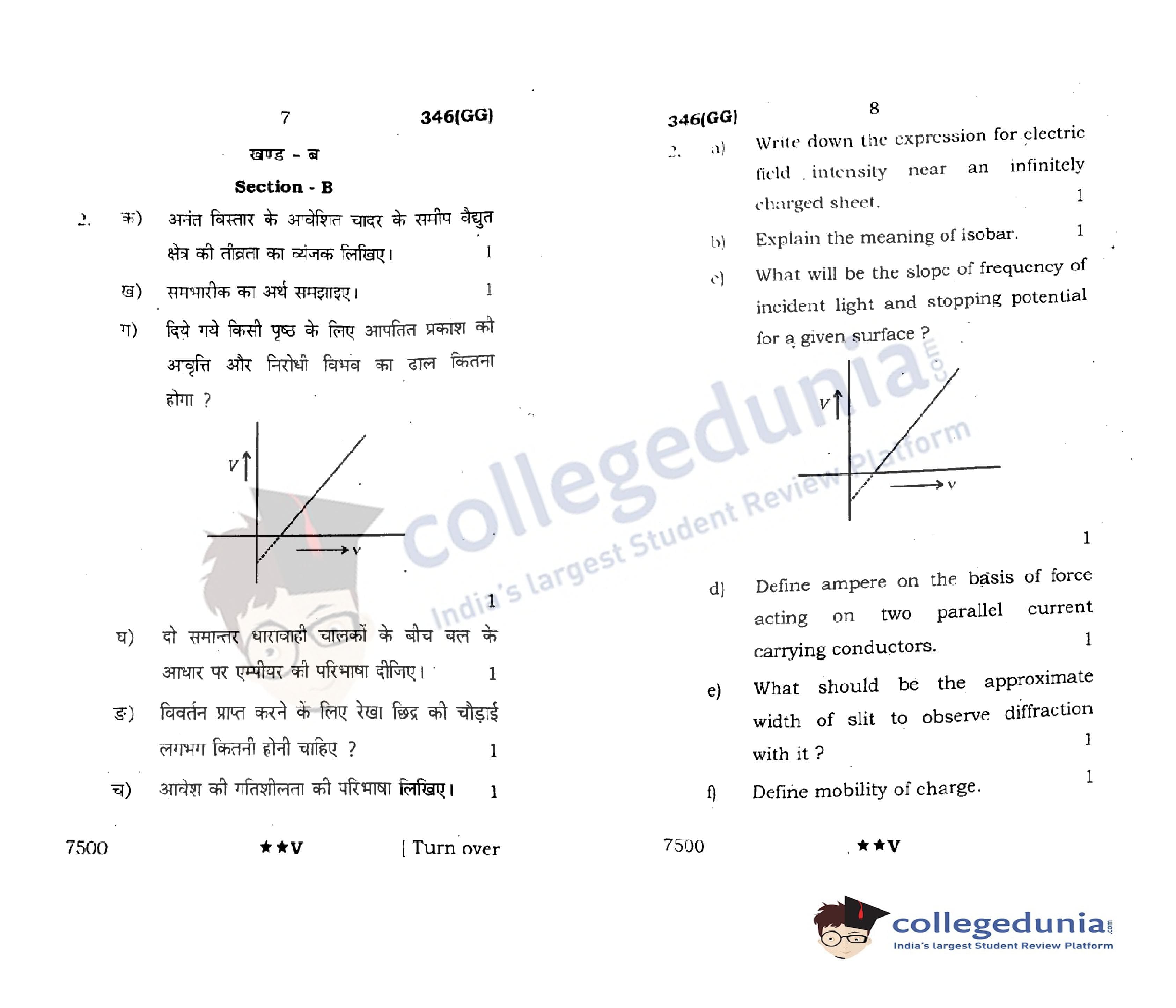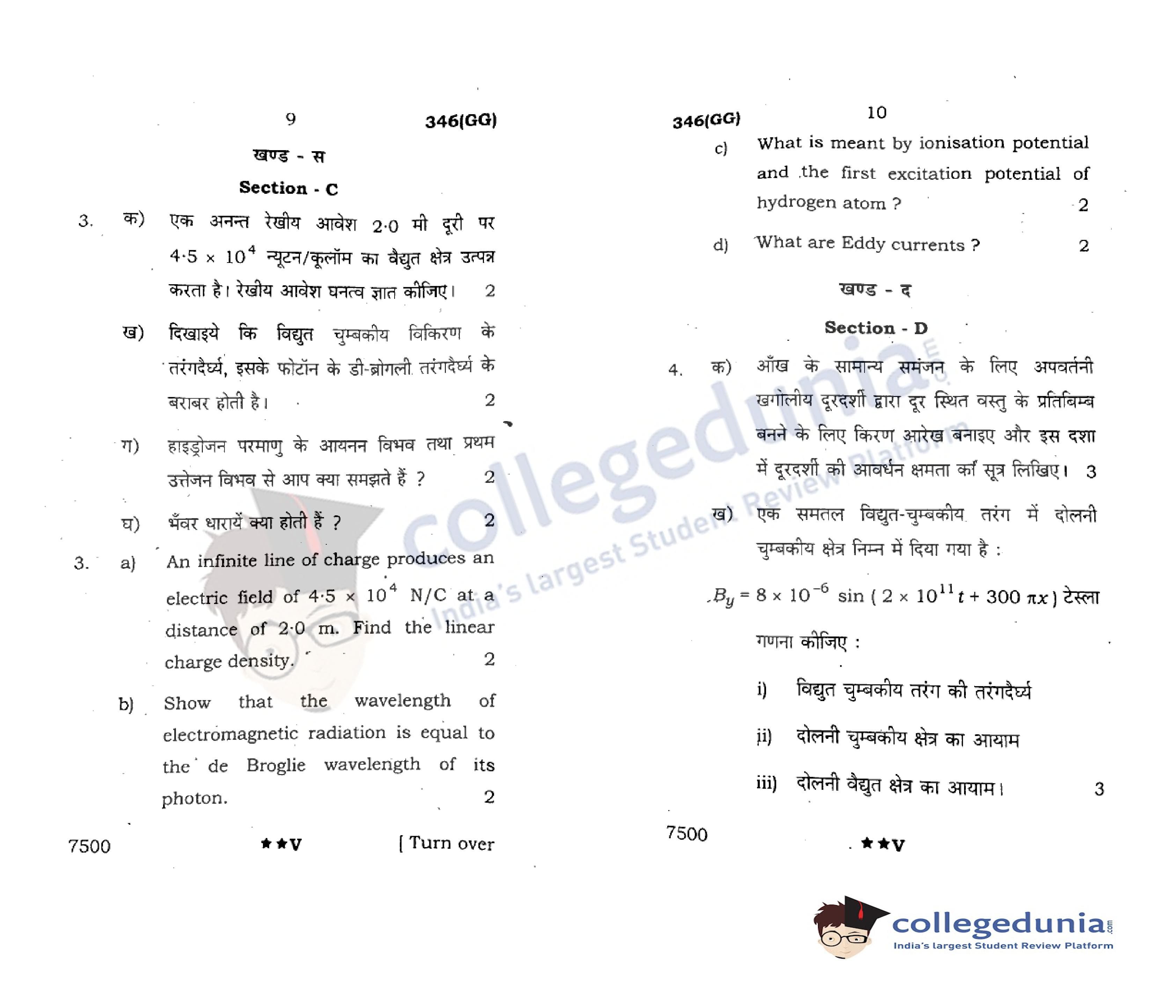 UP Board Class 12 Physics Code 346(GG) Question Paper 2022 with Answer Key (April 7)