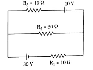 (i) Find the currents through the resistors \(R_1, R_2\), and \(R_3\) with the help of the given circuit. Internal resistances of the cells are negligible.