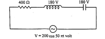 In the given circuit, find (i) voltage across resistance, (ii) current in the circuit, (iii) phase difference between voltages across inductance and capacitance.
